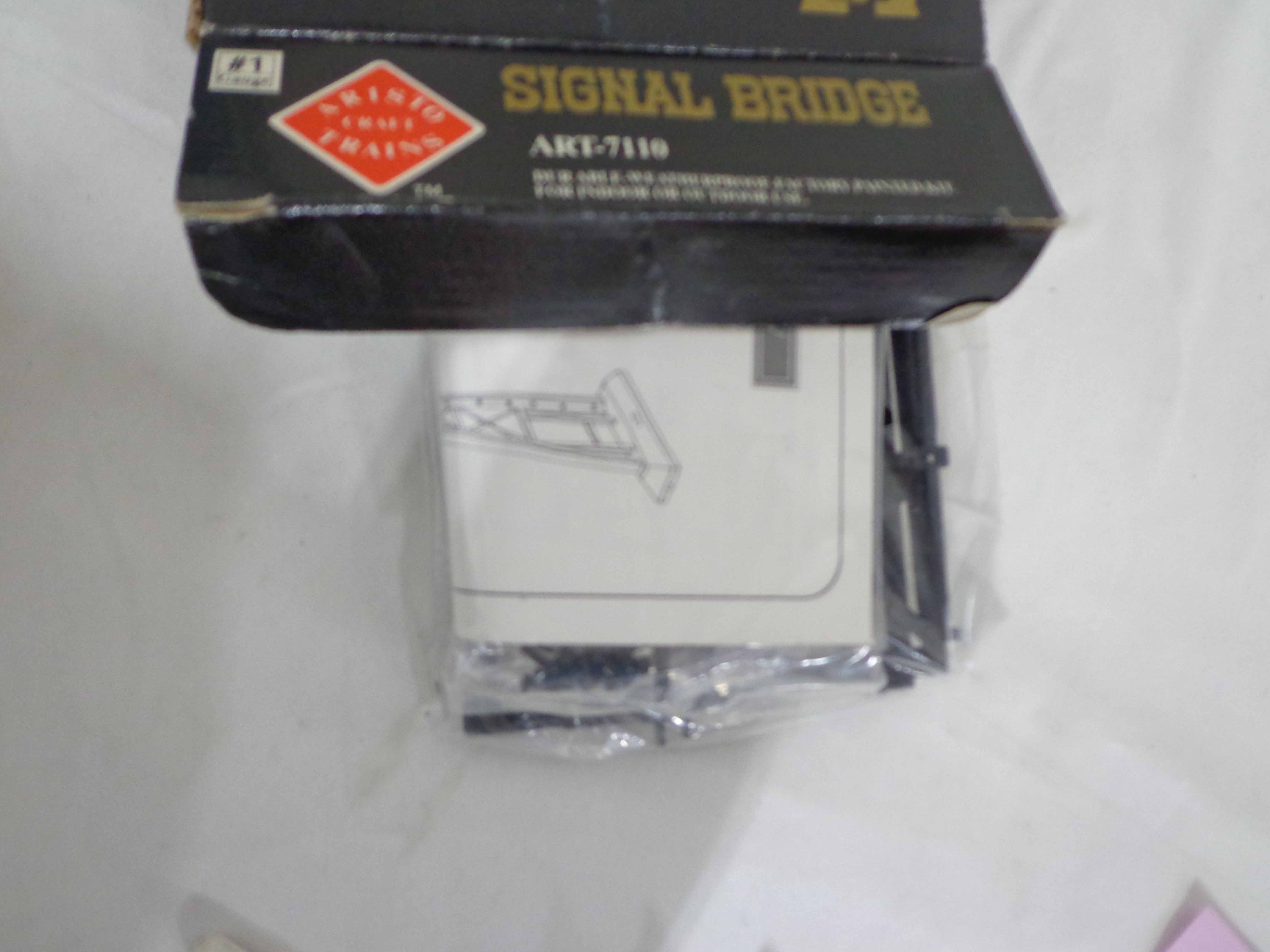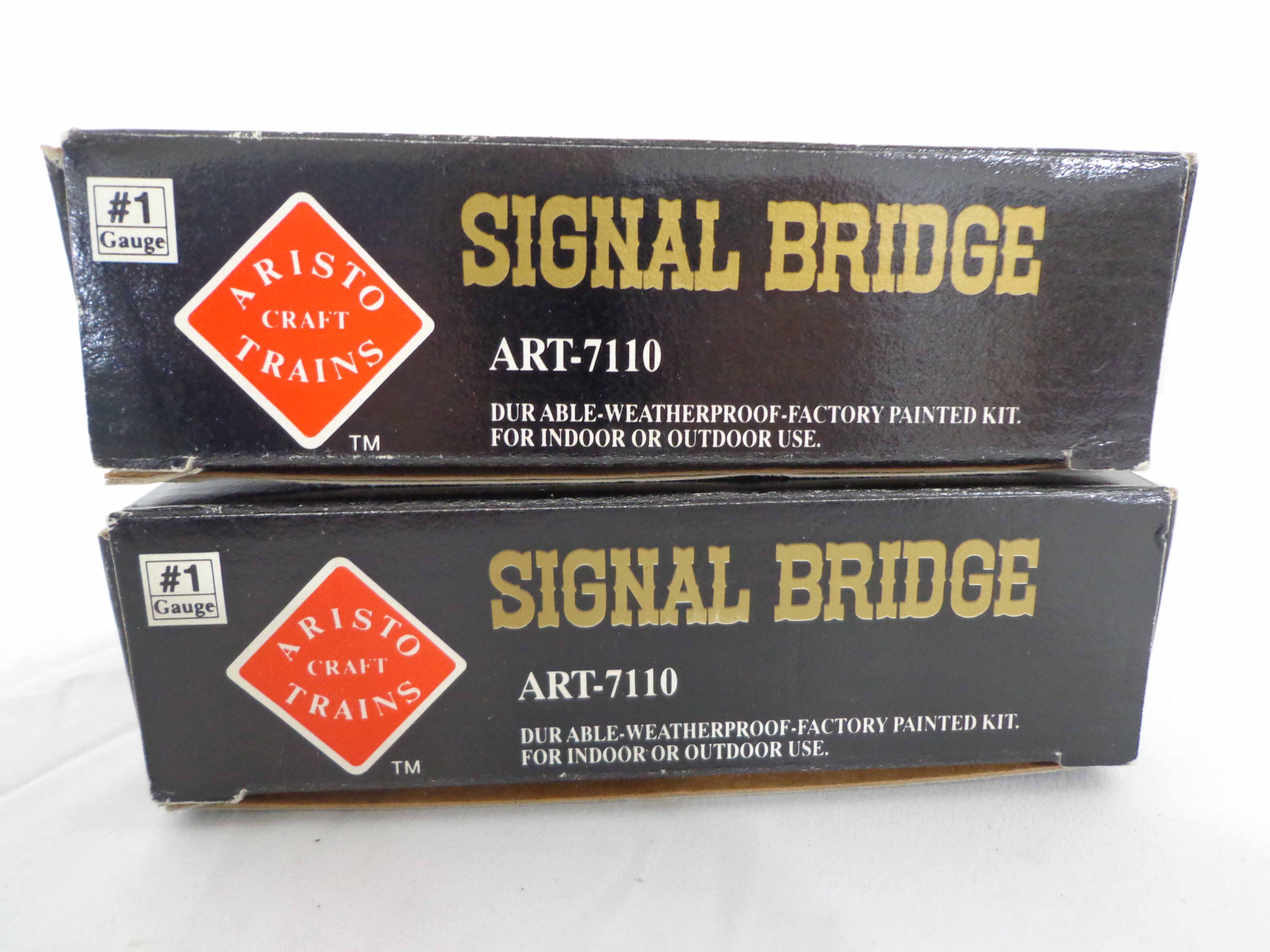 These are six Aristo-Craft Assorted Switch Tracks and Signal Bridges. Original Box. Examine closely; what is pictured is what you will receive. Please add $40.00 for US-48 Shipping and Insurance (more west of the Mississippi). |