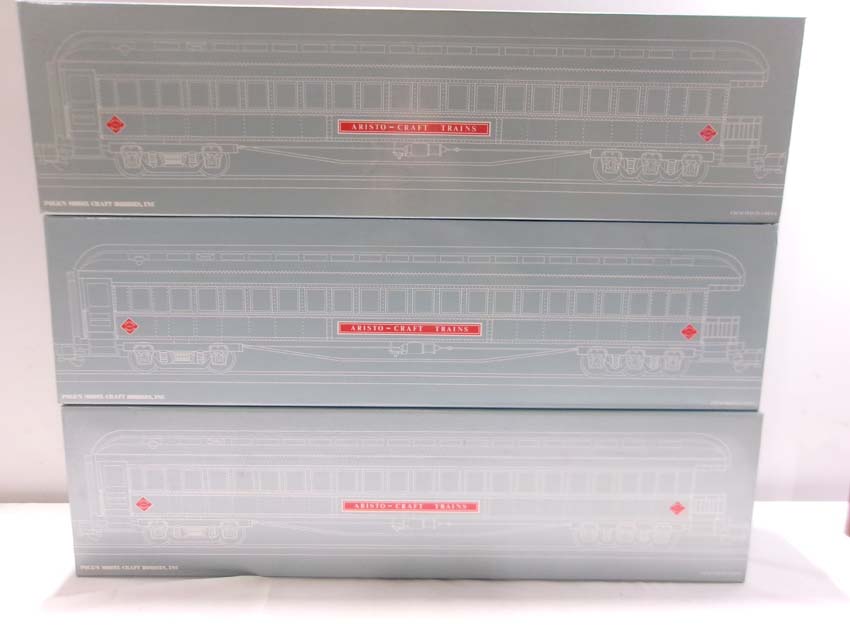 These are the #ART-31501 PRR Diner, #REA-31301 PRR Coach and #REA-31401 PRR Observation that Aristocraft made in G Scale a few years ago. Original Boxes. All Original in our Opinion. Please add $50.00 for US-48 Shipping and Insurance (more west of the Mississippi).