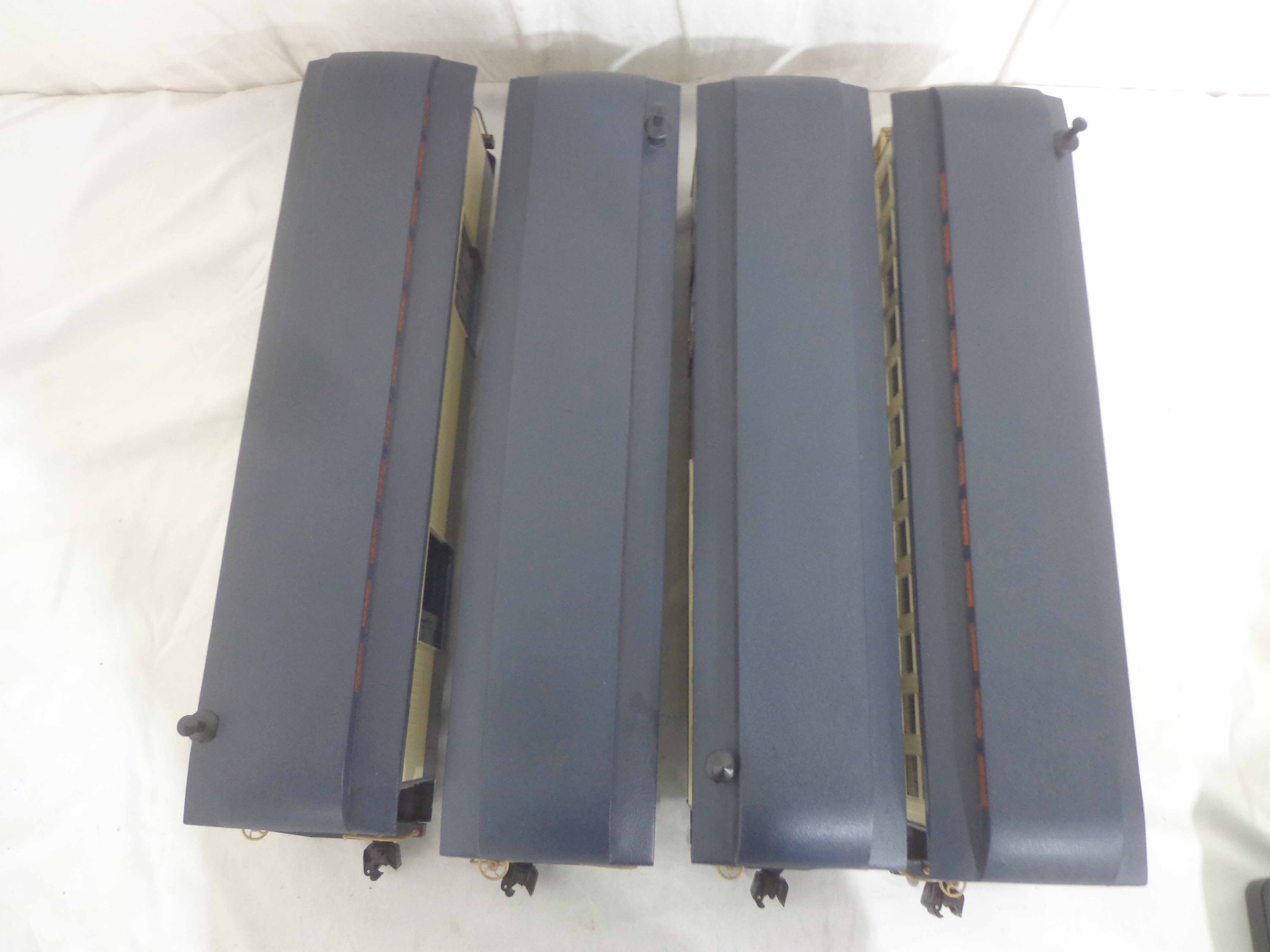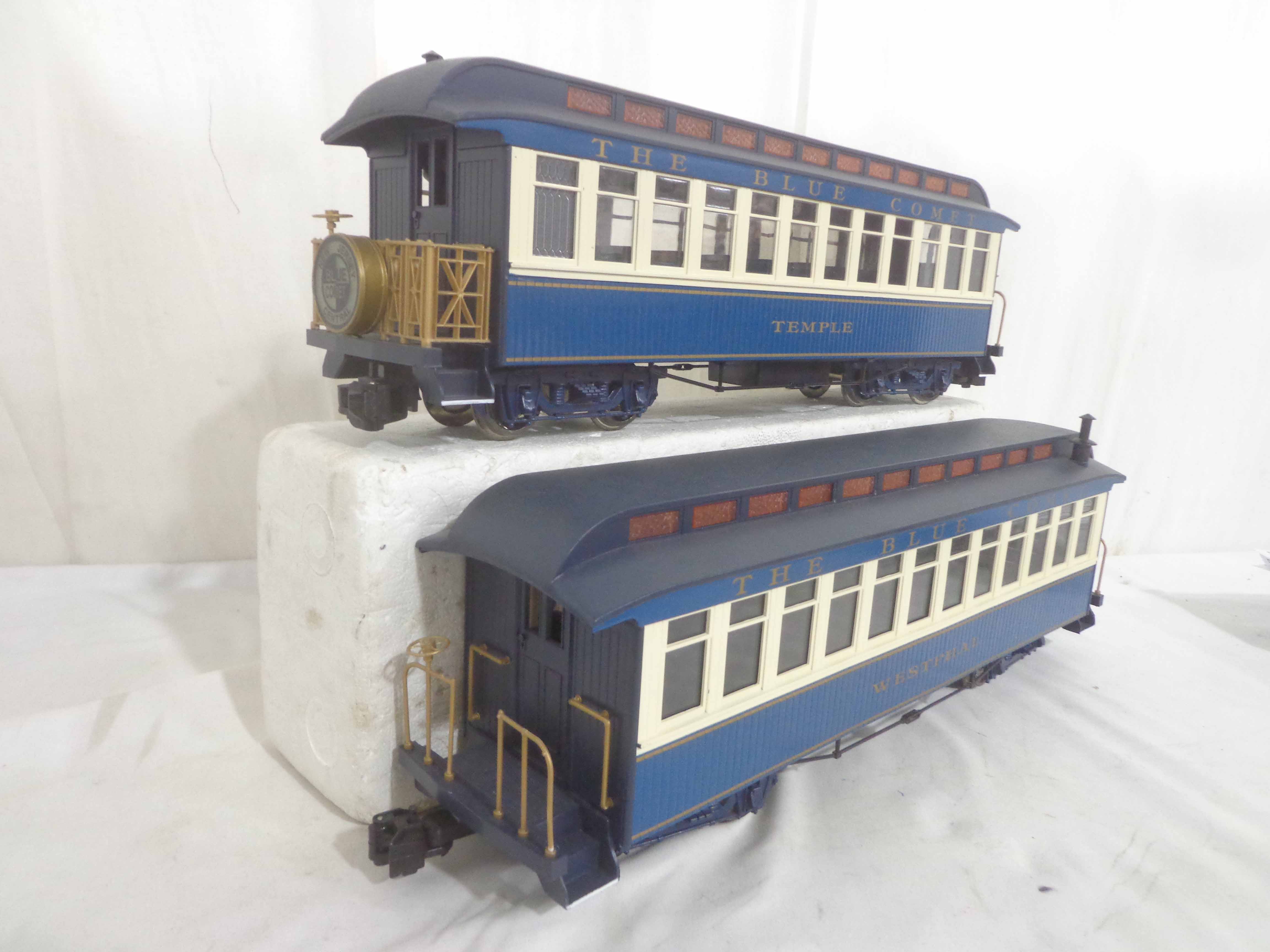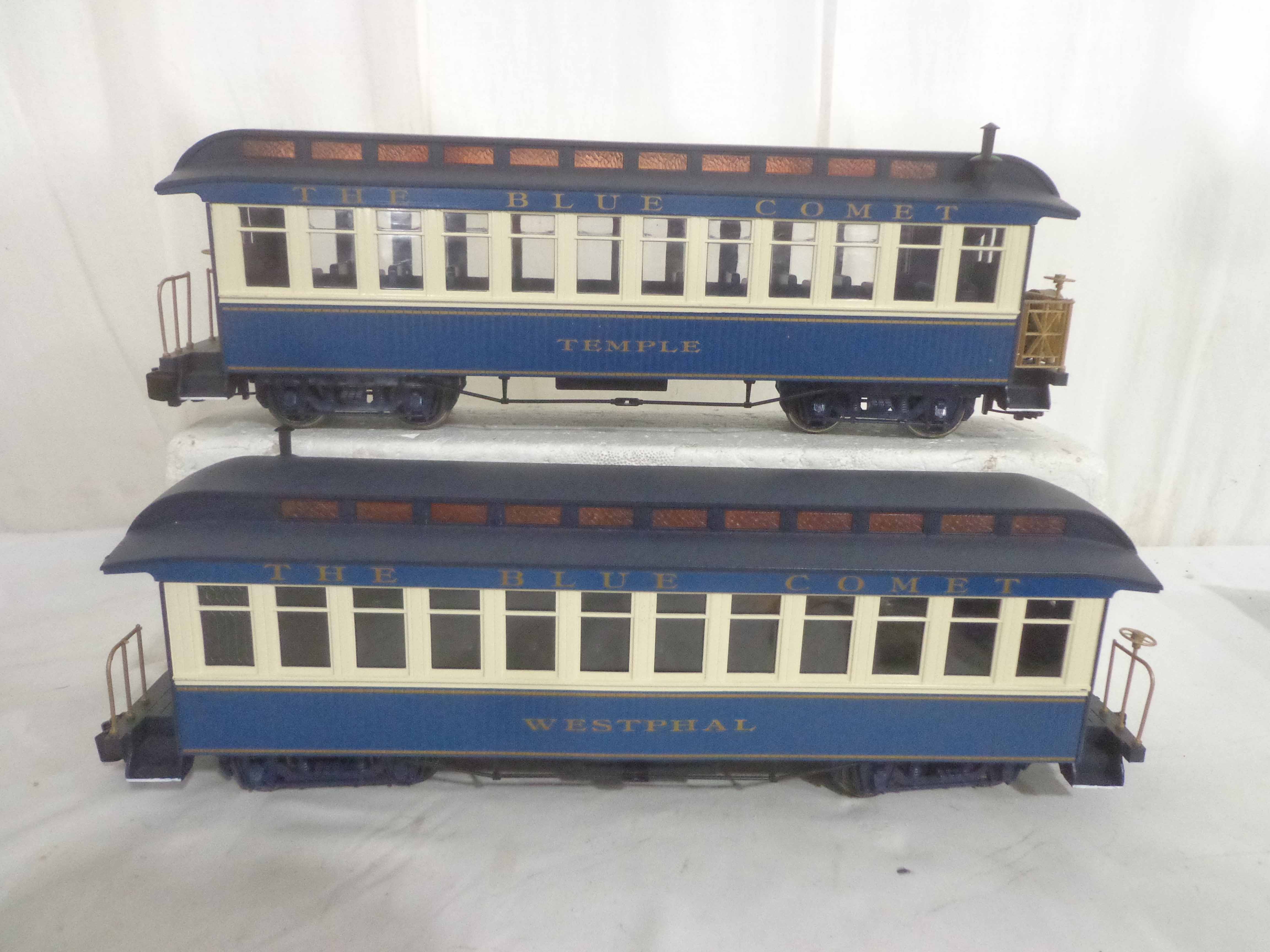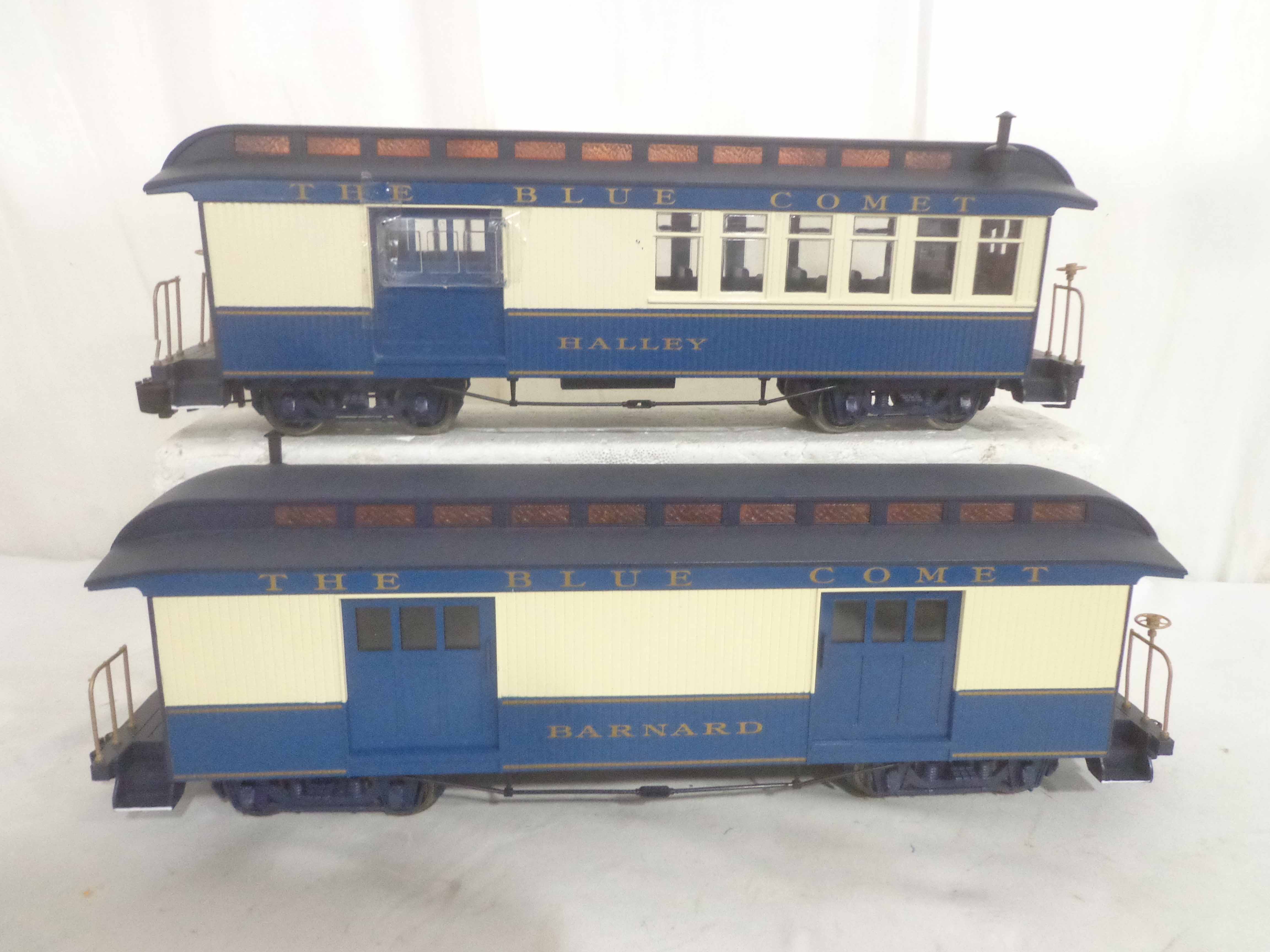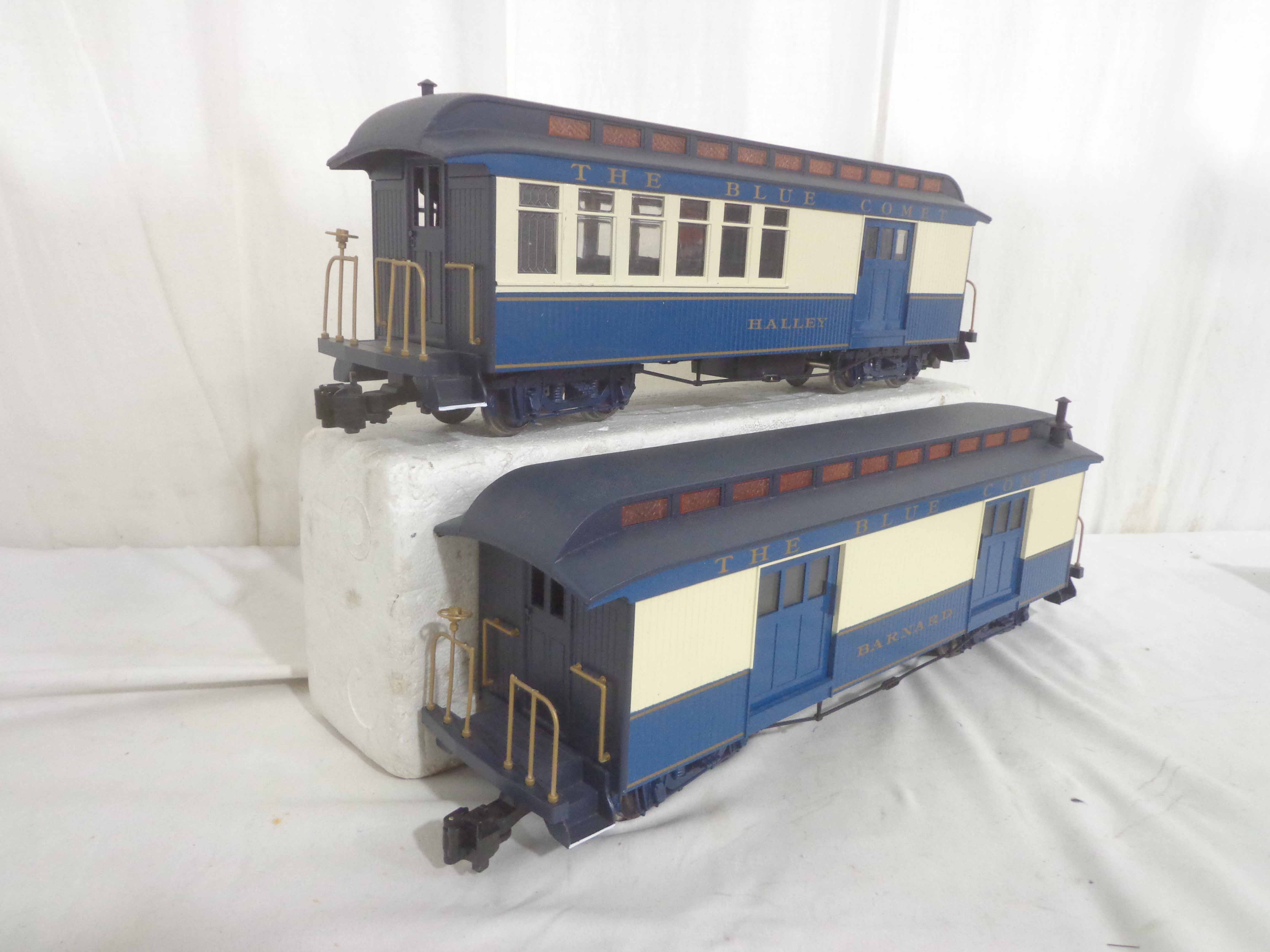 These are four Bachmann G Gauge Blue Comet Passenger Cars (no #s). Examine closely; what is pictured is what you will receive. Original Boxes. Please add $50.00 for US-48 Shipping and Insurance (more west of the Mississippi).