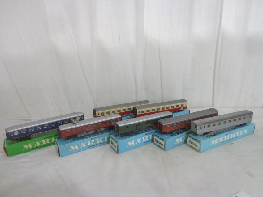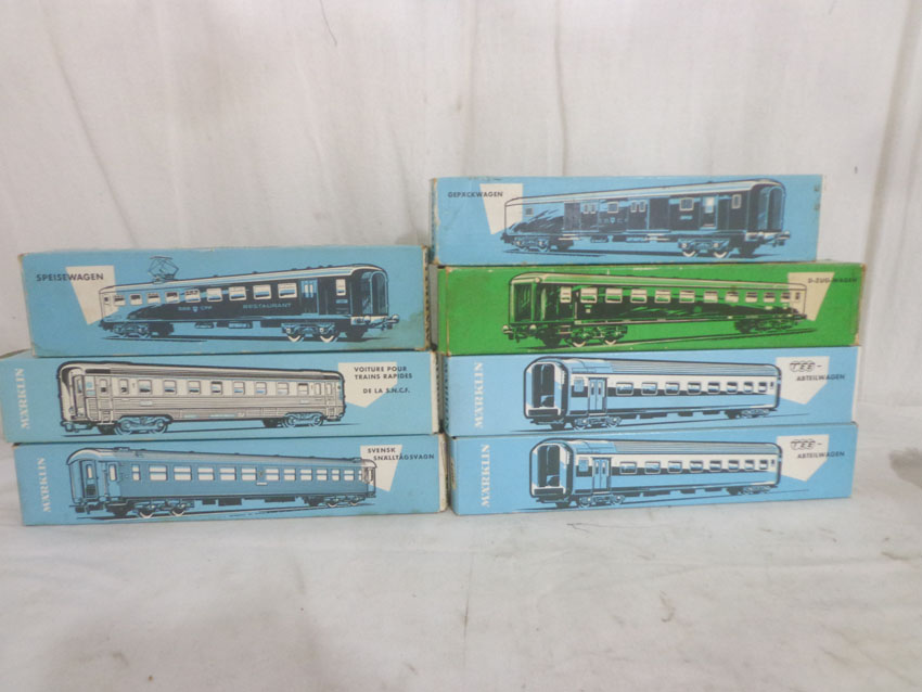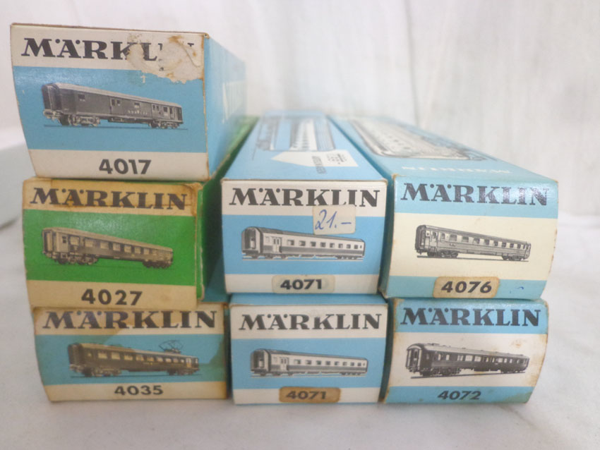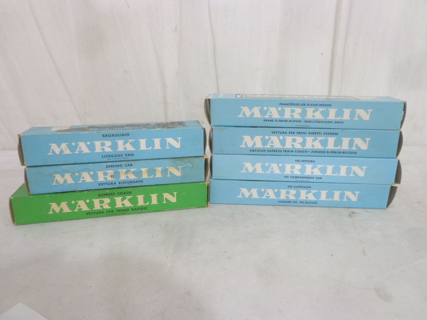 These are the Marklin HO Gauge #4017/4027/4035/4071/4071/4072/4076 Passenger Cars. Original Boxes. Examine closely; what is pictured is what you will receive. All Original in our Opinion. Please add $45.00 for US-48 Shipping and Insurance (more west of the Mississippi). |