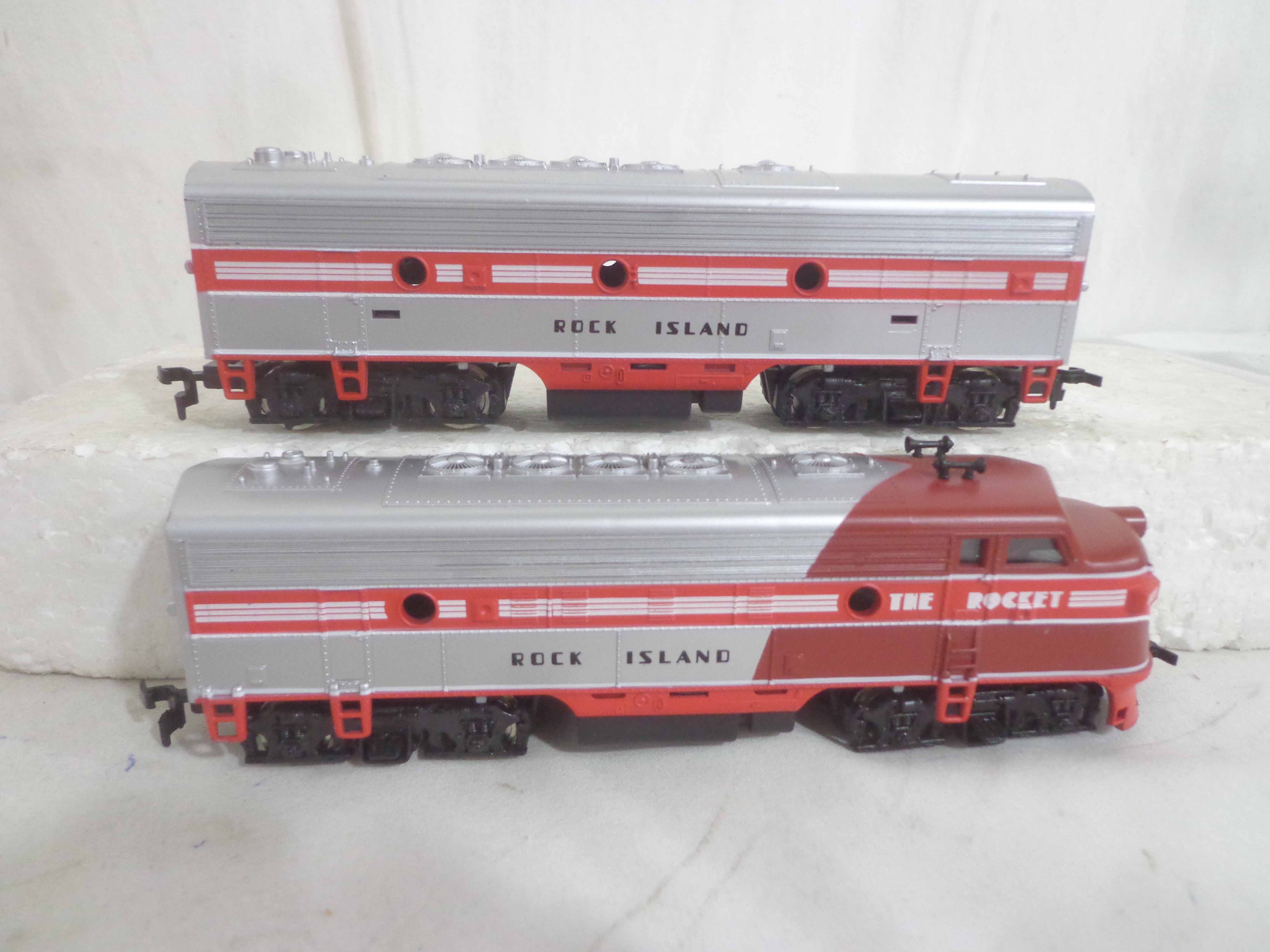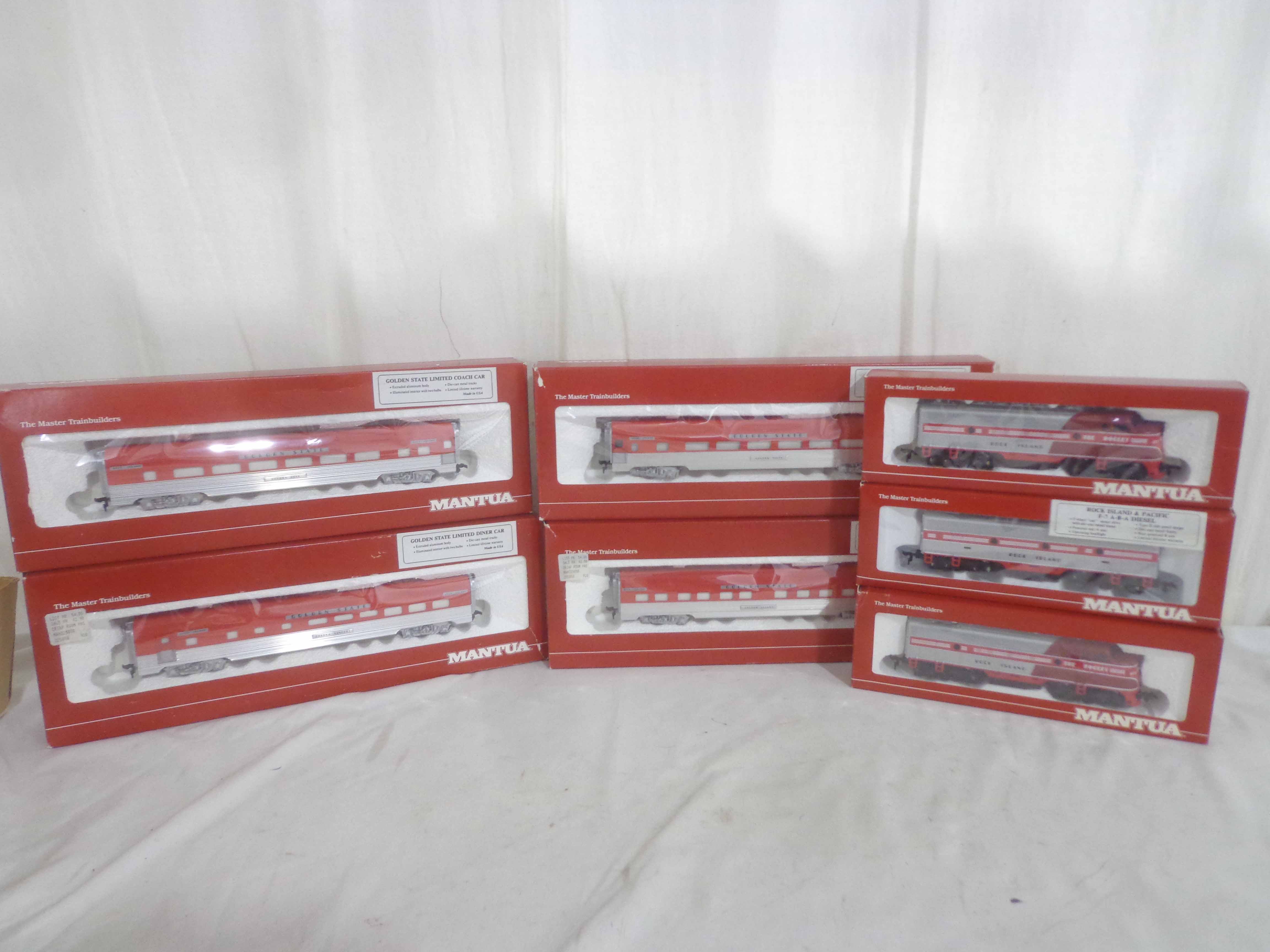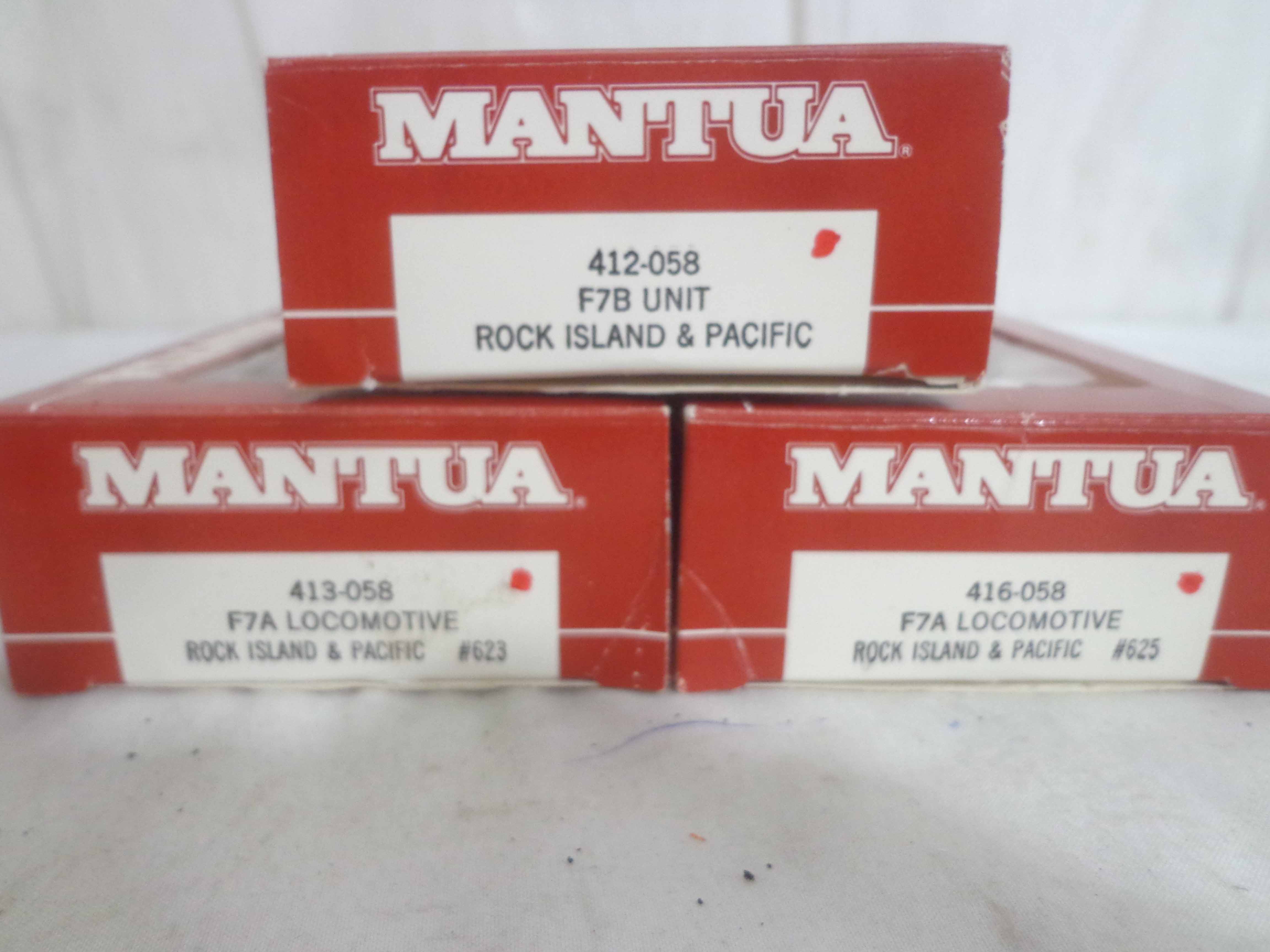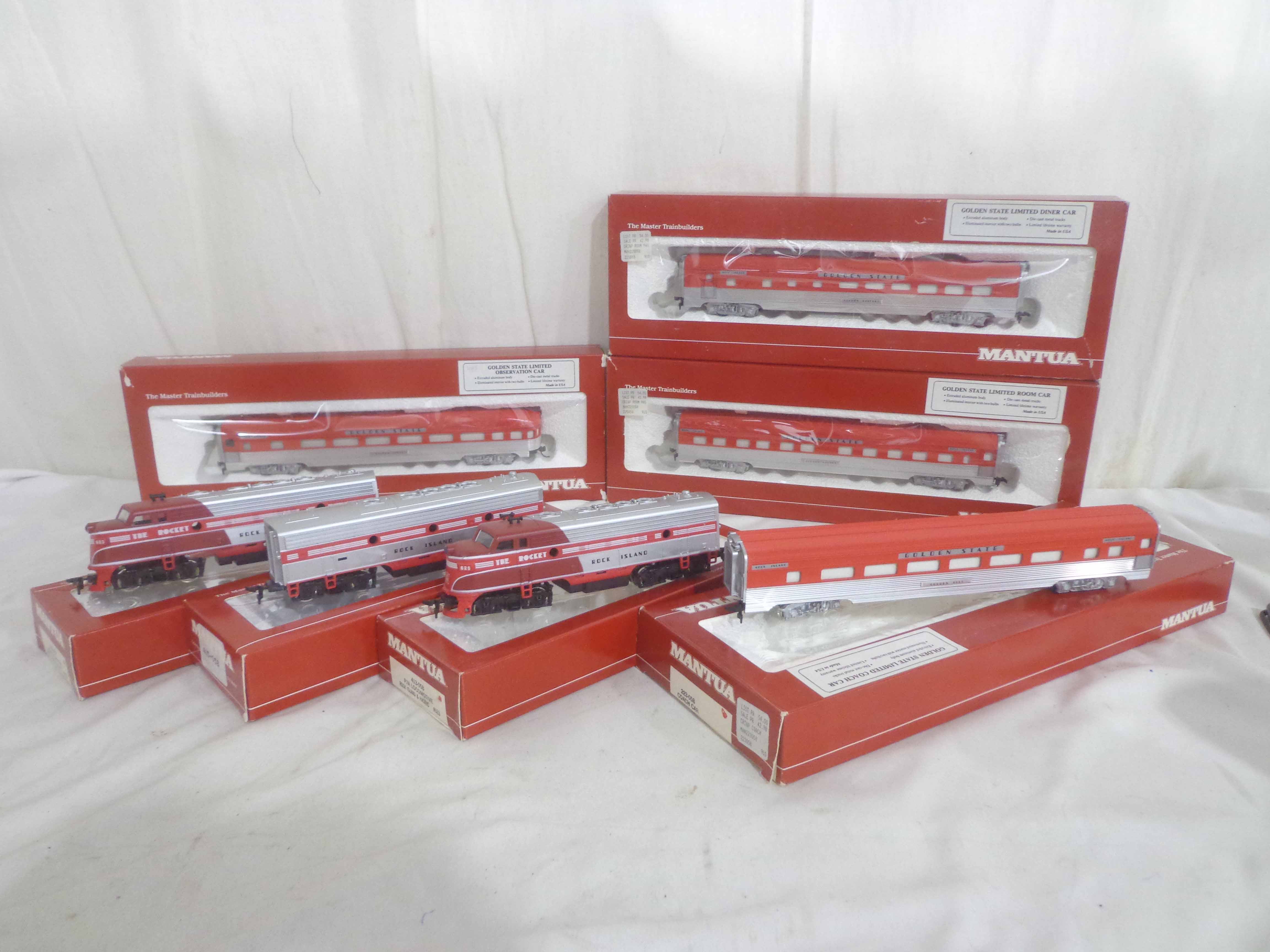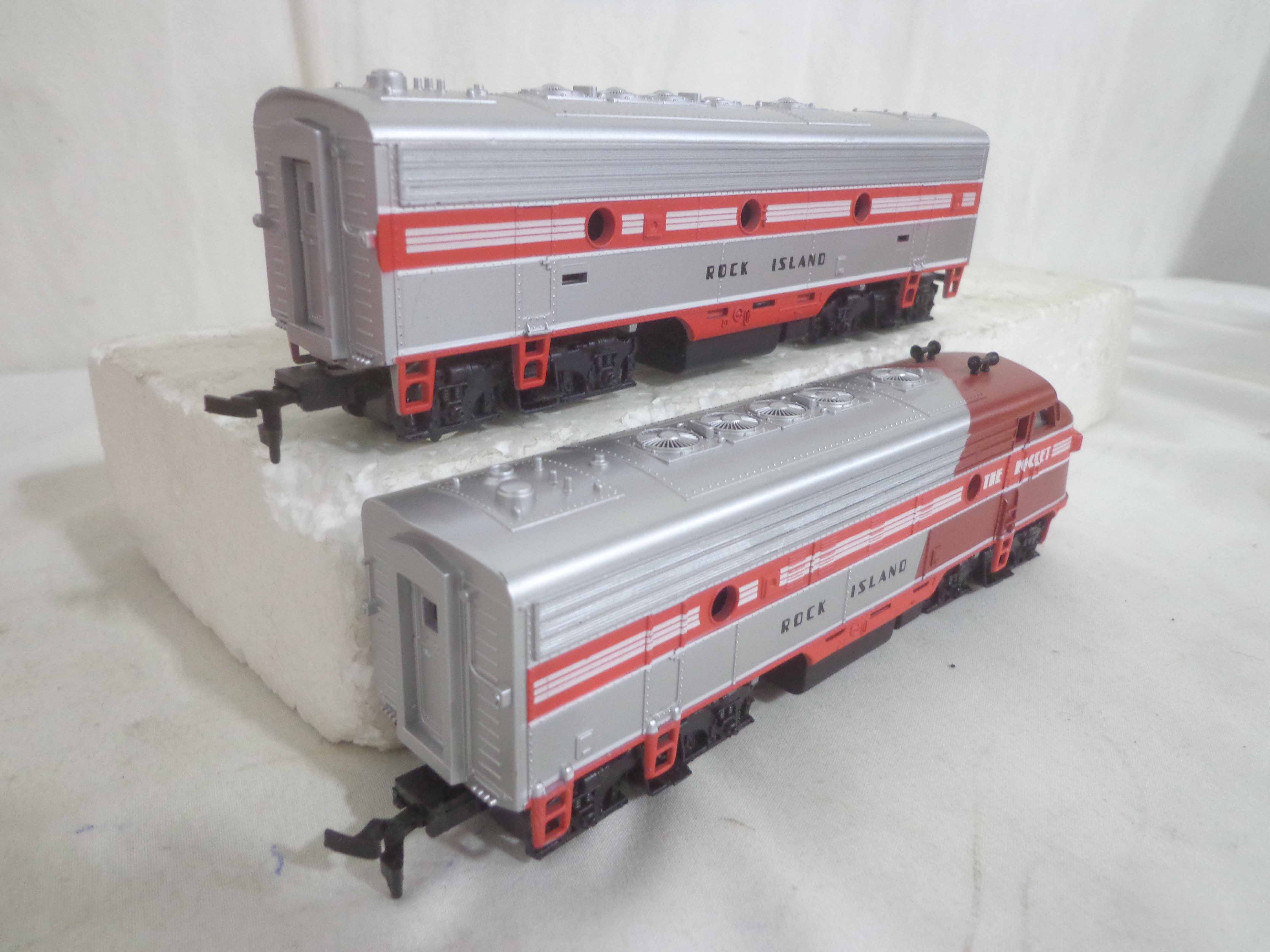 These are the Mantua HO Gauge #413-058/412-058/416-58 Rock Island ABA Units and #223-058/224-058/225-058/226-058 Rock Island Passenger Cars. Original Boxes. Examine very closely; what is pictured is what you will receive. Please add $45.00 for US-48 Shipping and Insurance (more west of the Mississippi). |