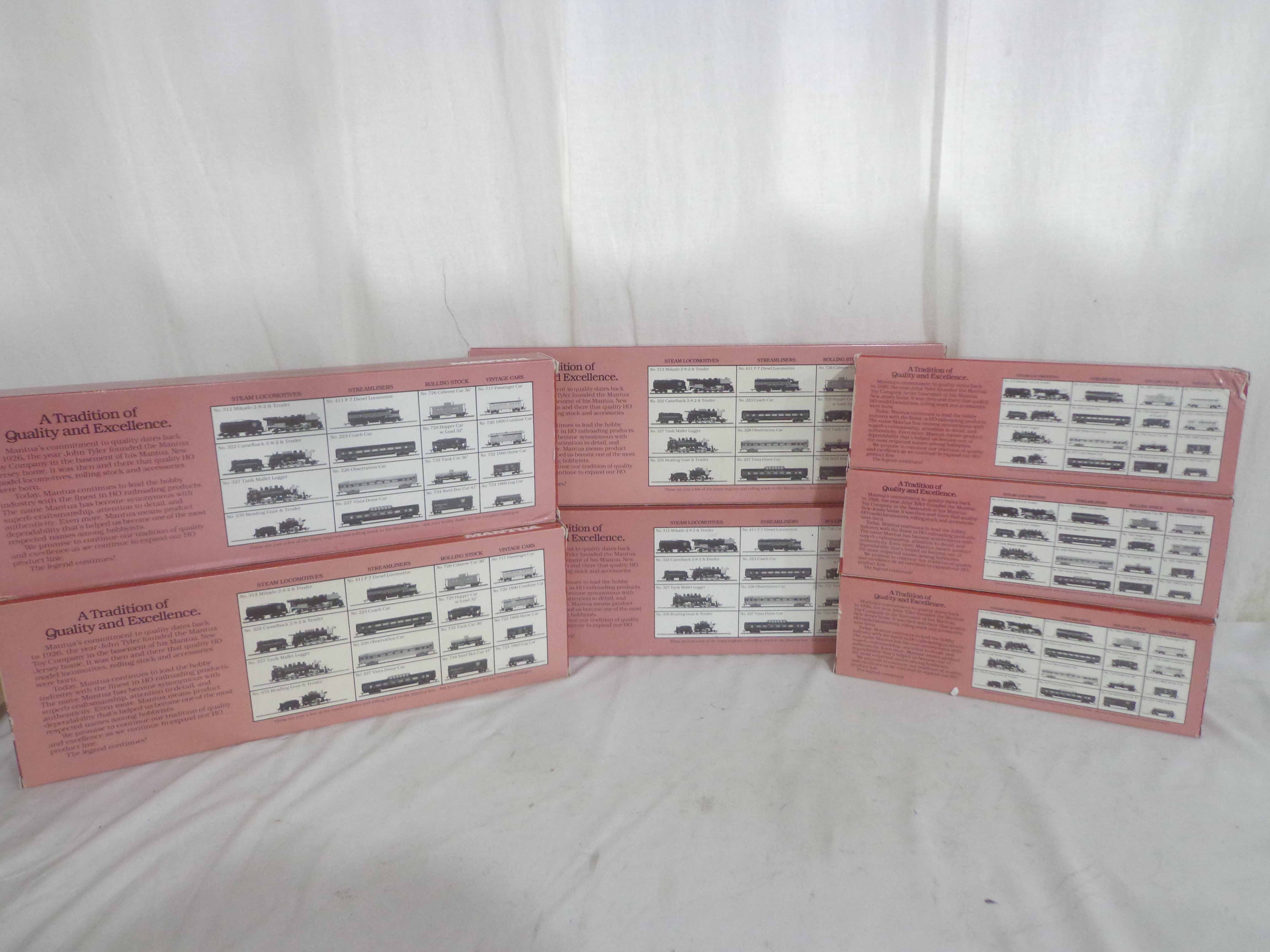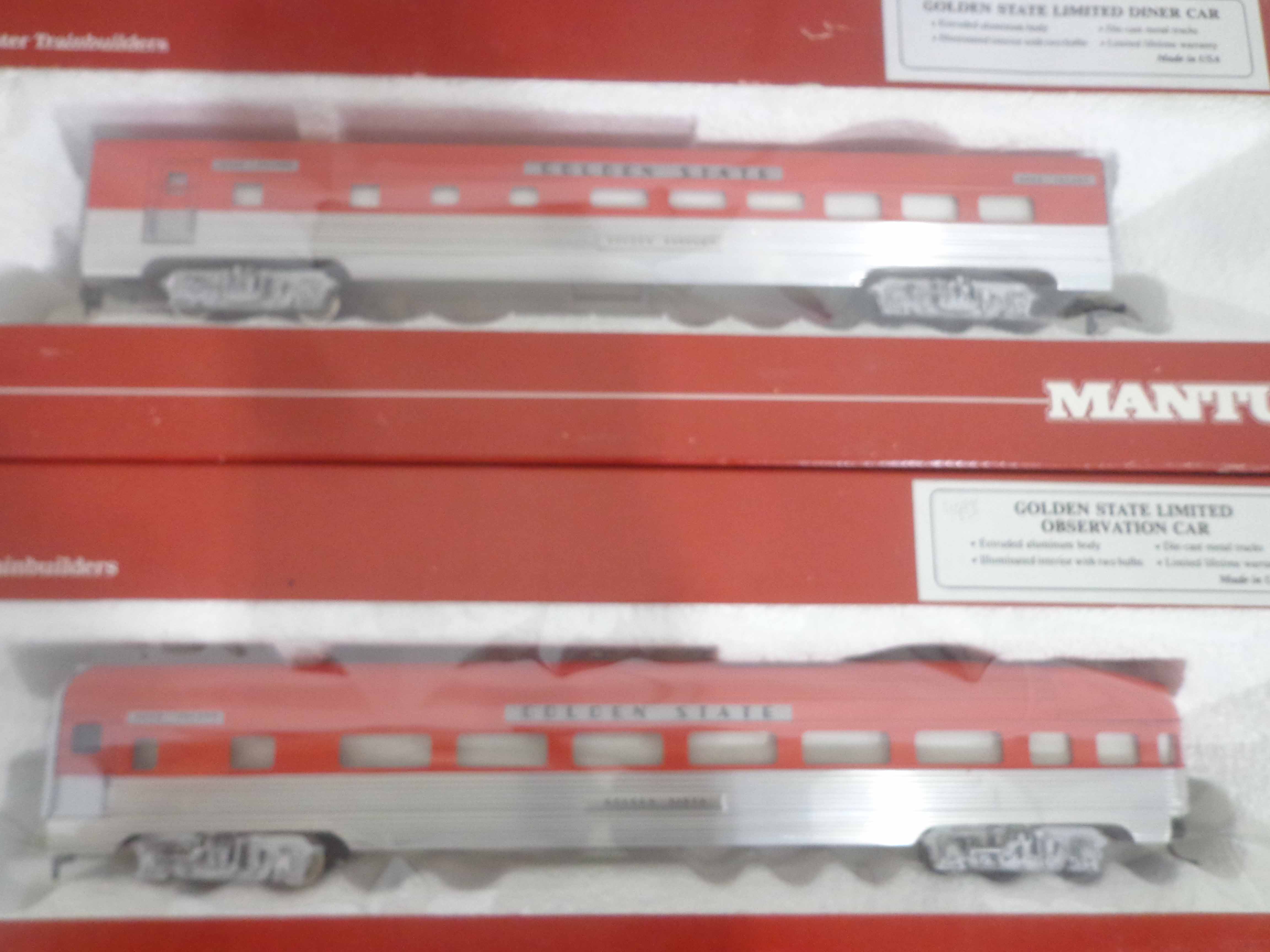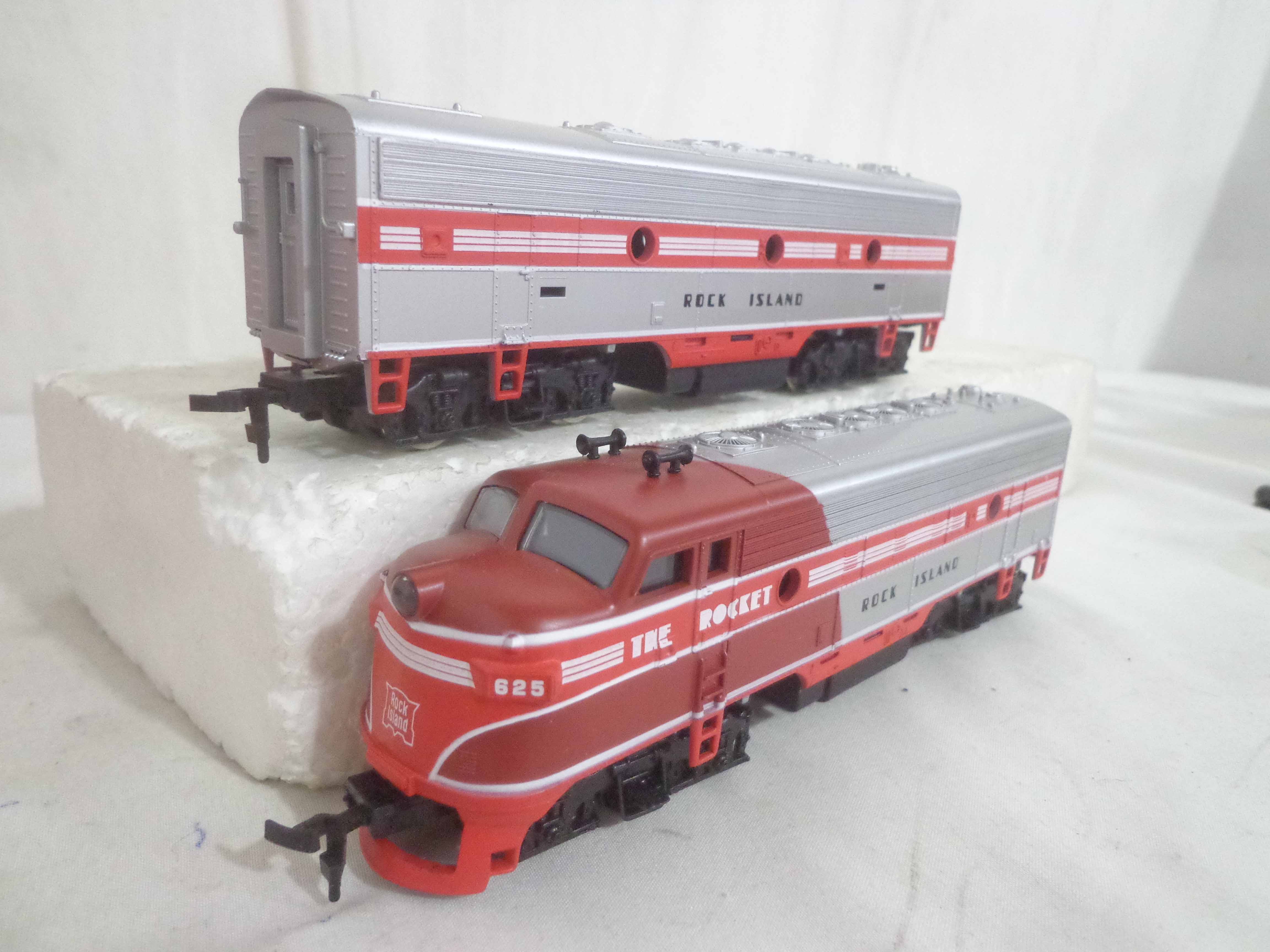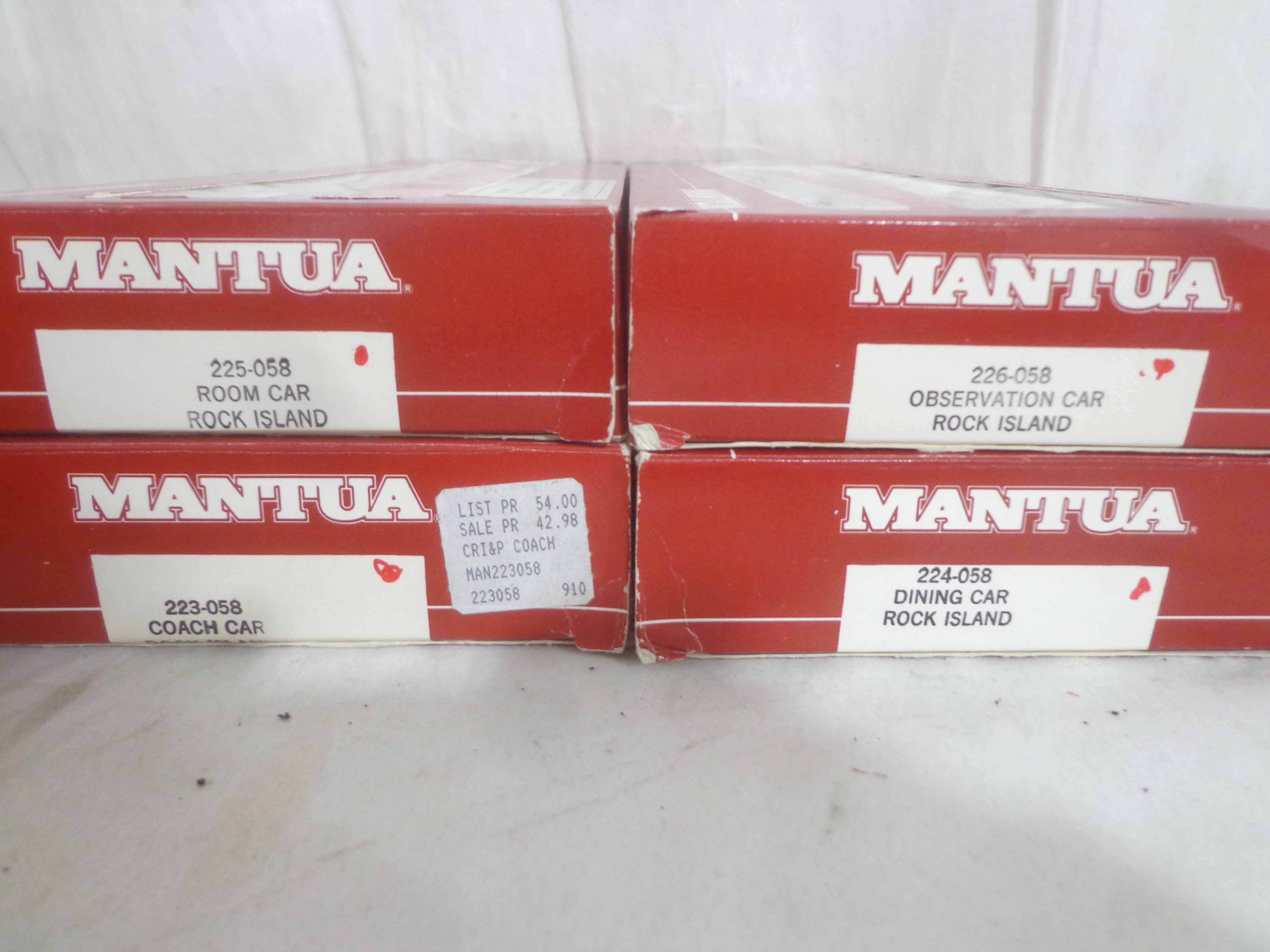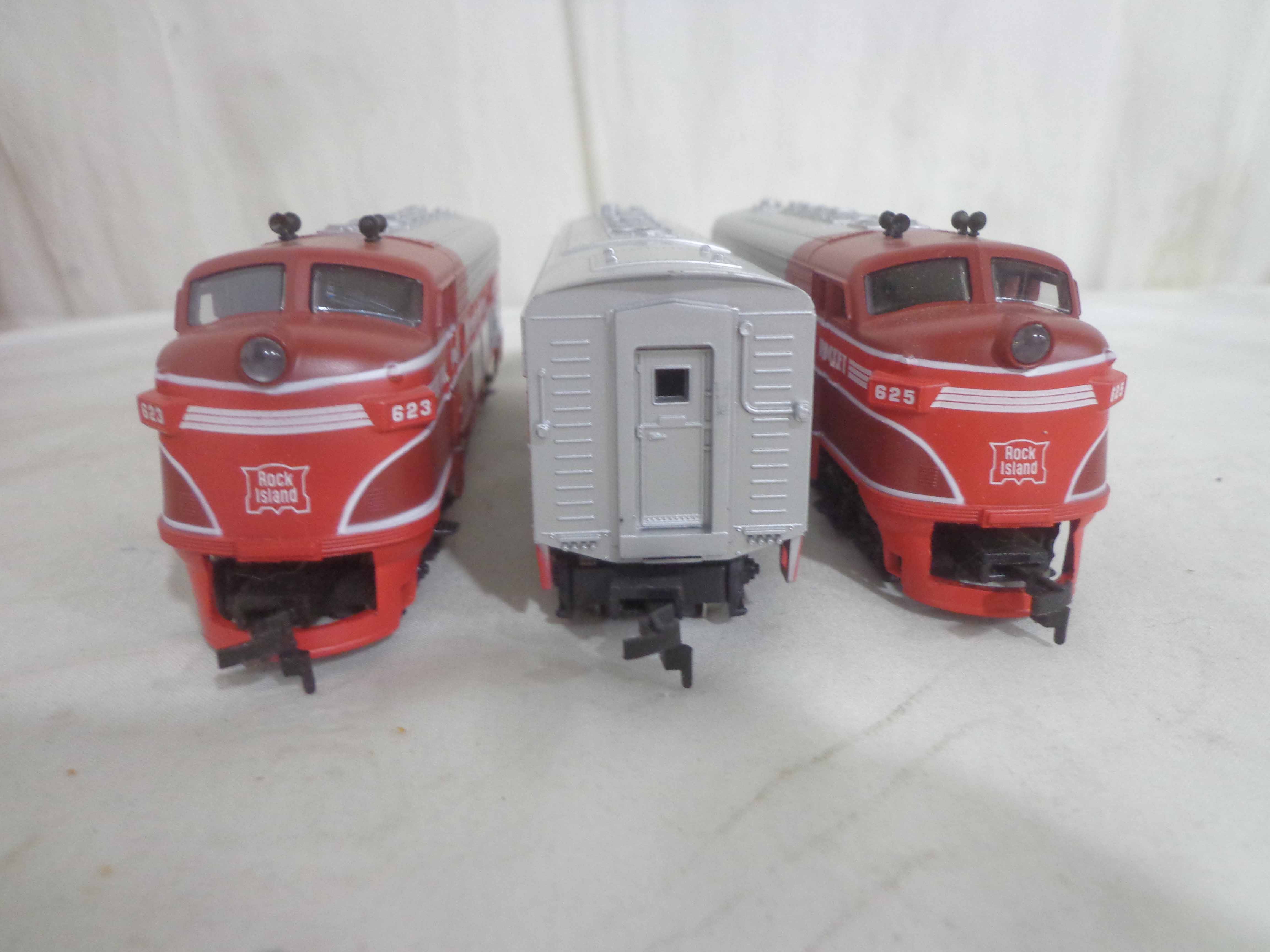 These are the Mantua HO Gauge #413-058/412-058/416-58 Rock Island ABA Units and #223-058/224-058/225-058/226-058 Rock Island Passenger Cars. Original Boxes. Examine very closely; what is pictured is what you will receive. Please add $45.00 for US-48 Shipping and Insurance (more west of the Mississippi). |
