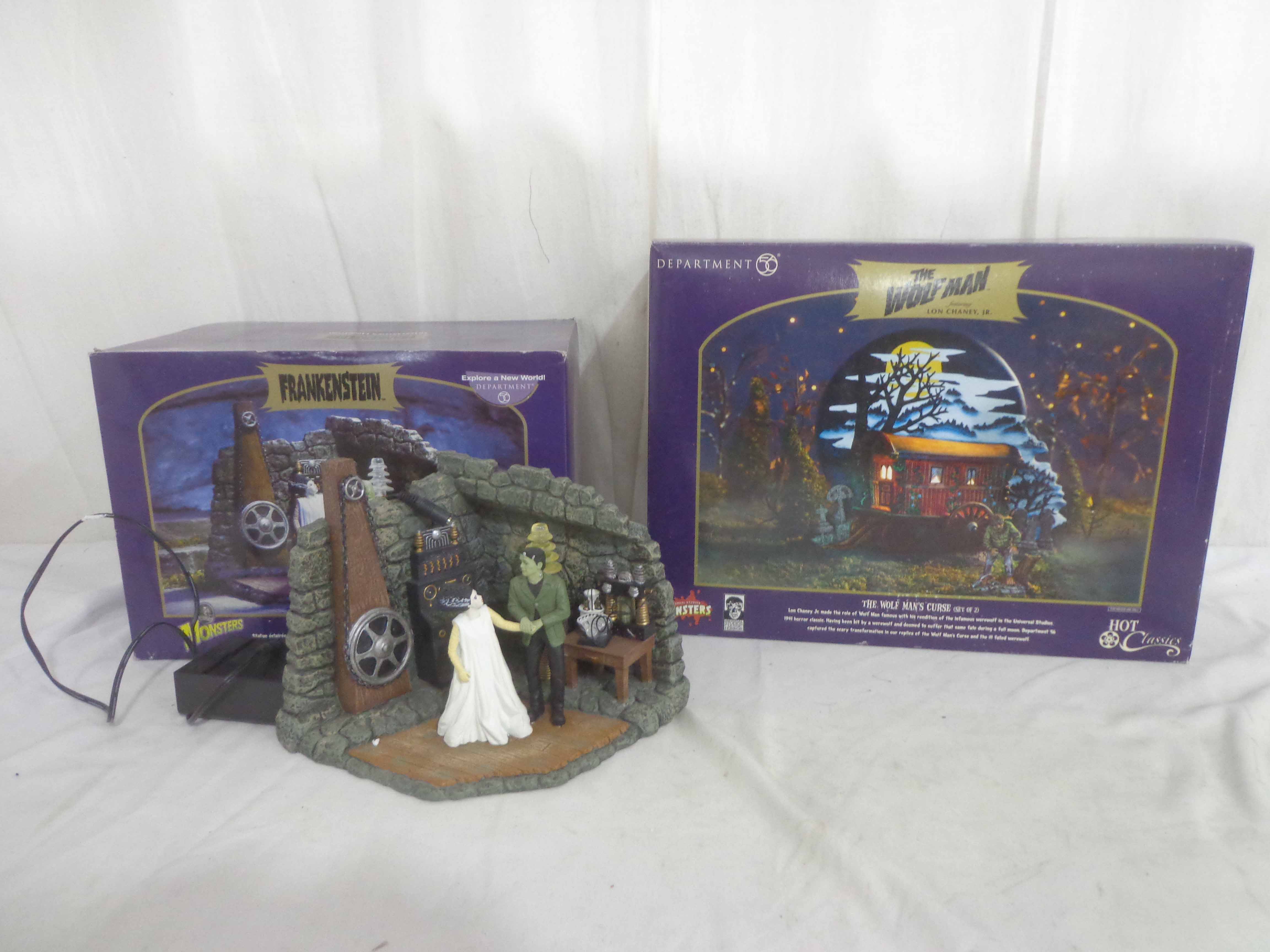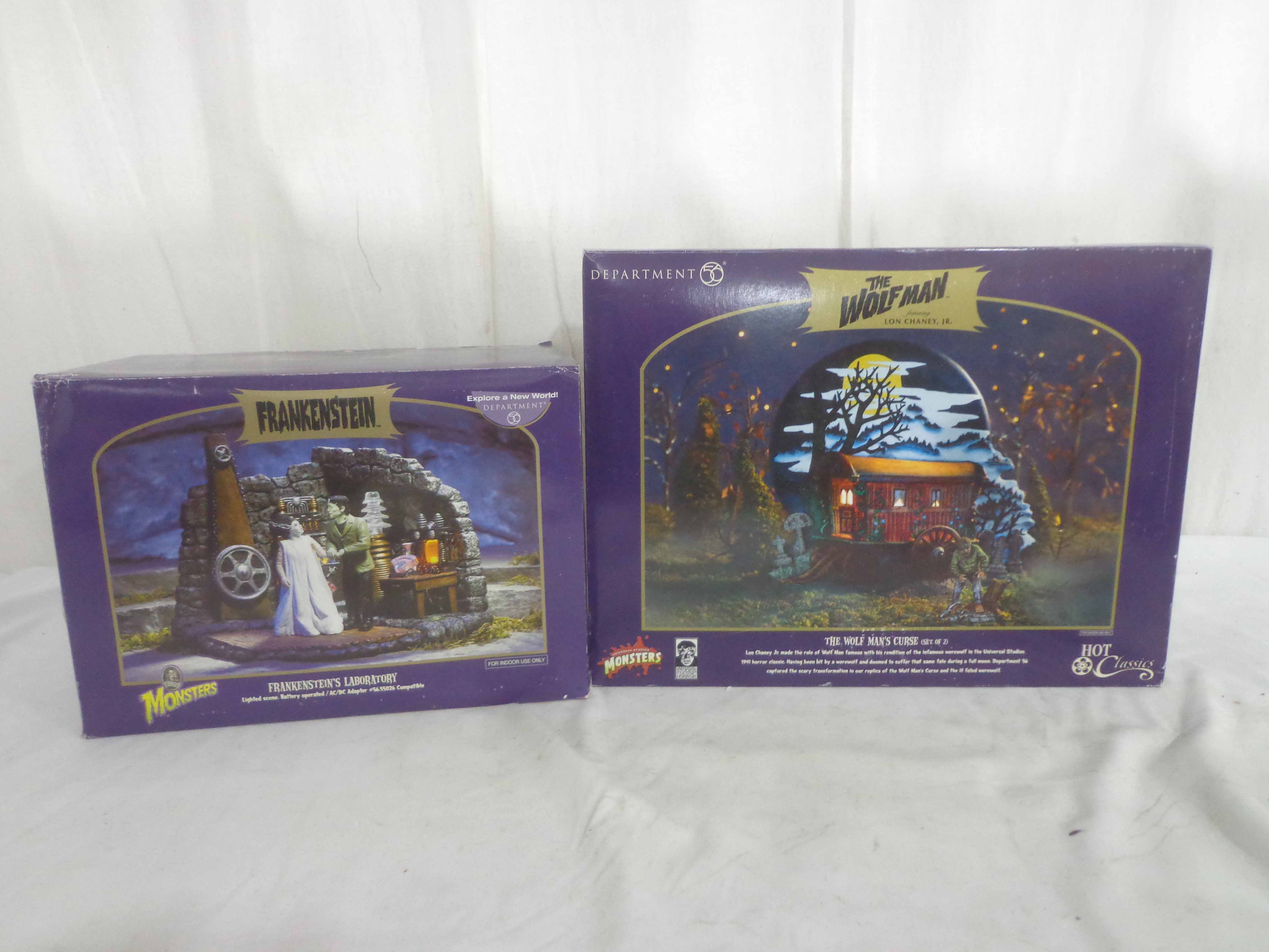 Dept 56 Monsters #56.59345 Frankenstein Laboratory and #56.59304 Wolfman Curse/OBs
