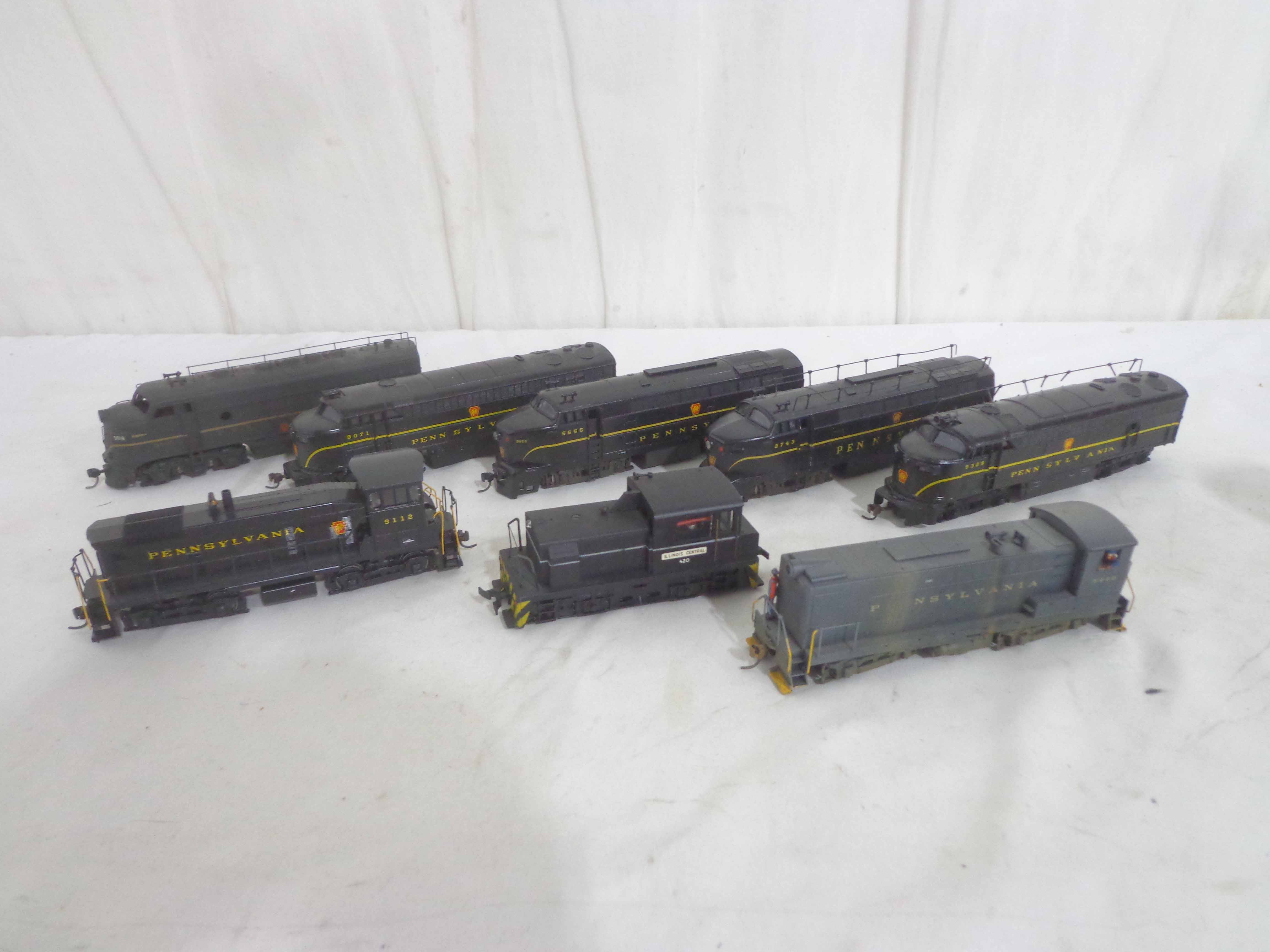 Assorted Manufactures HO Gauge: #2743/5655/5920/9112/9329/9818 Pennsylvania Engines, #9071 Pennsylvania Non Powered Engine and #420 Illinois Central Engine