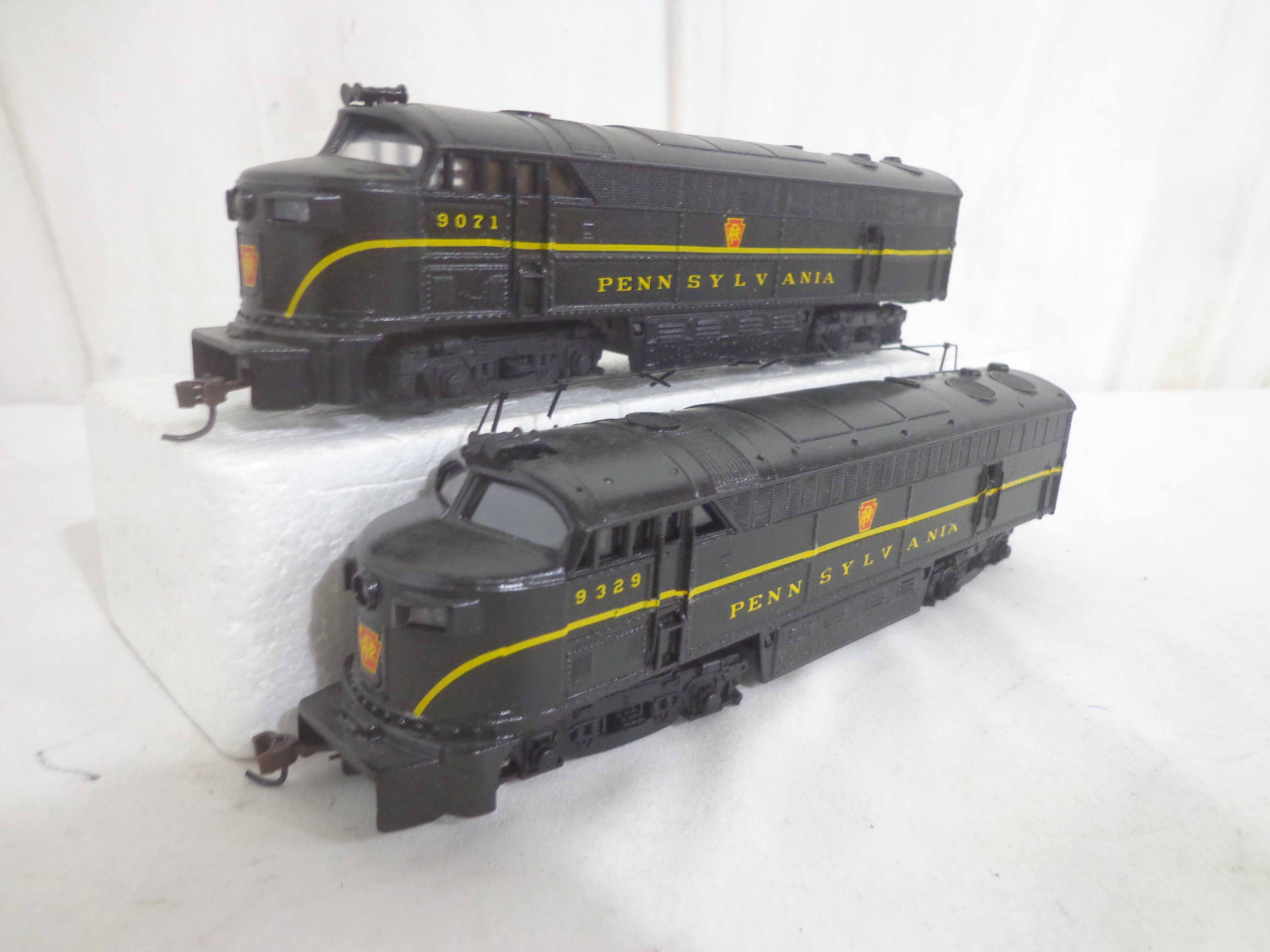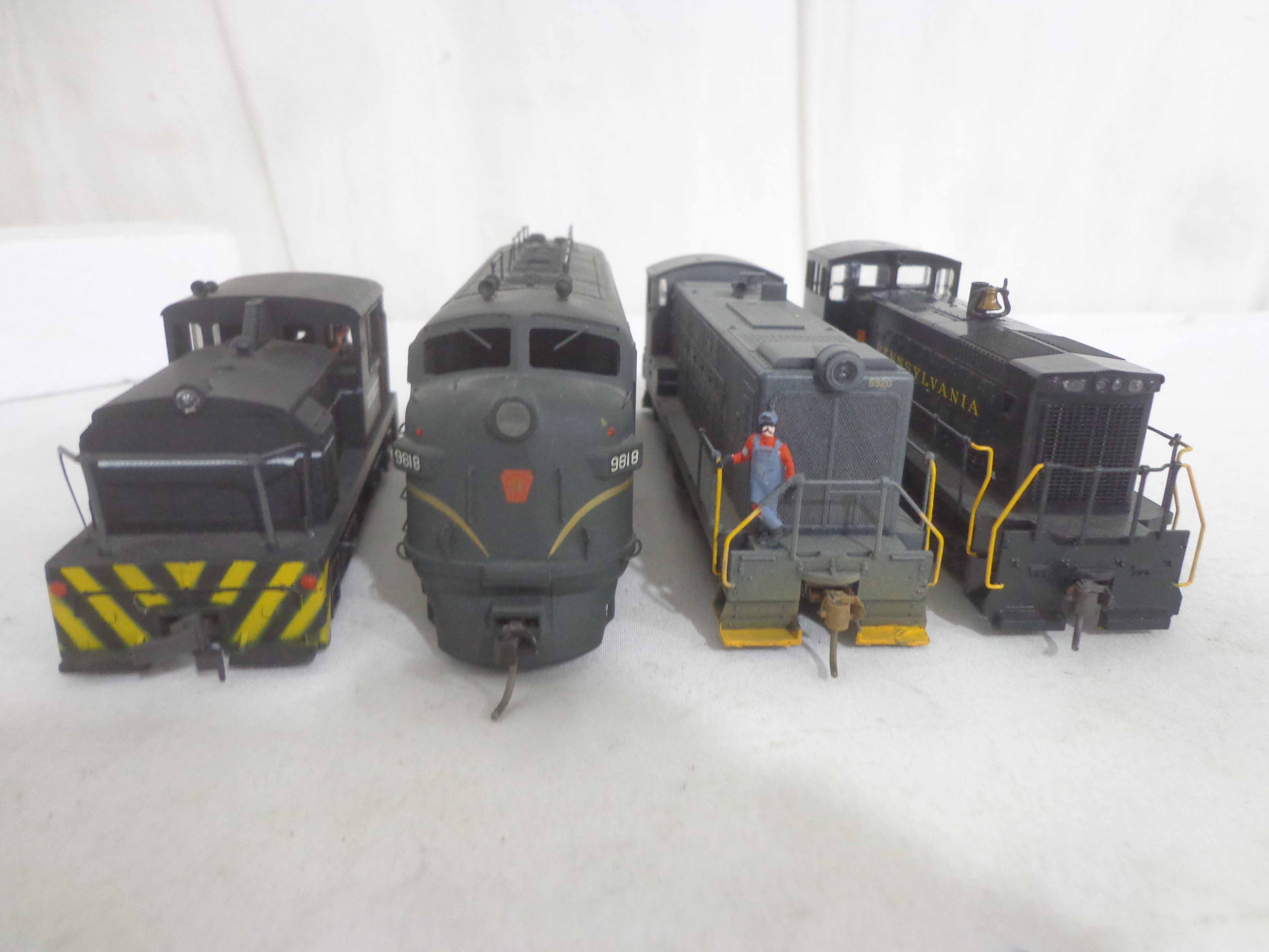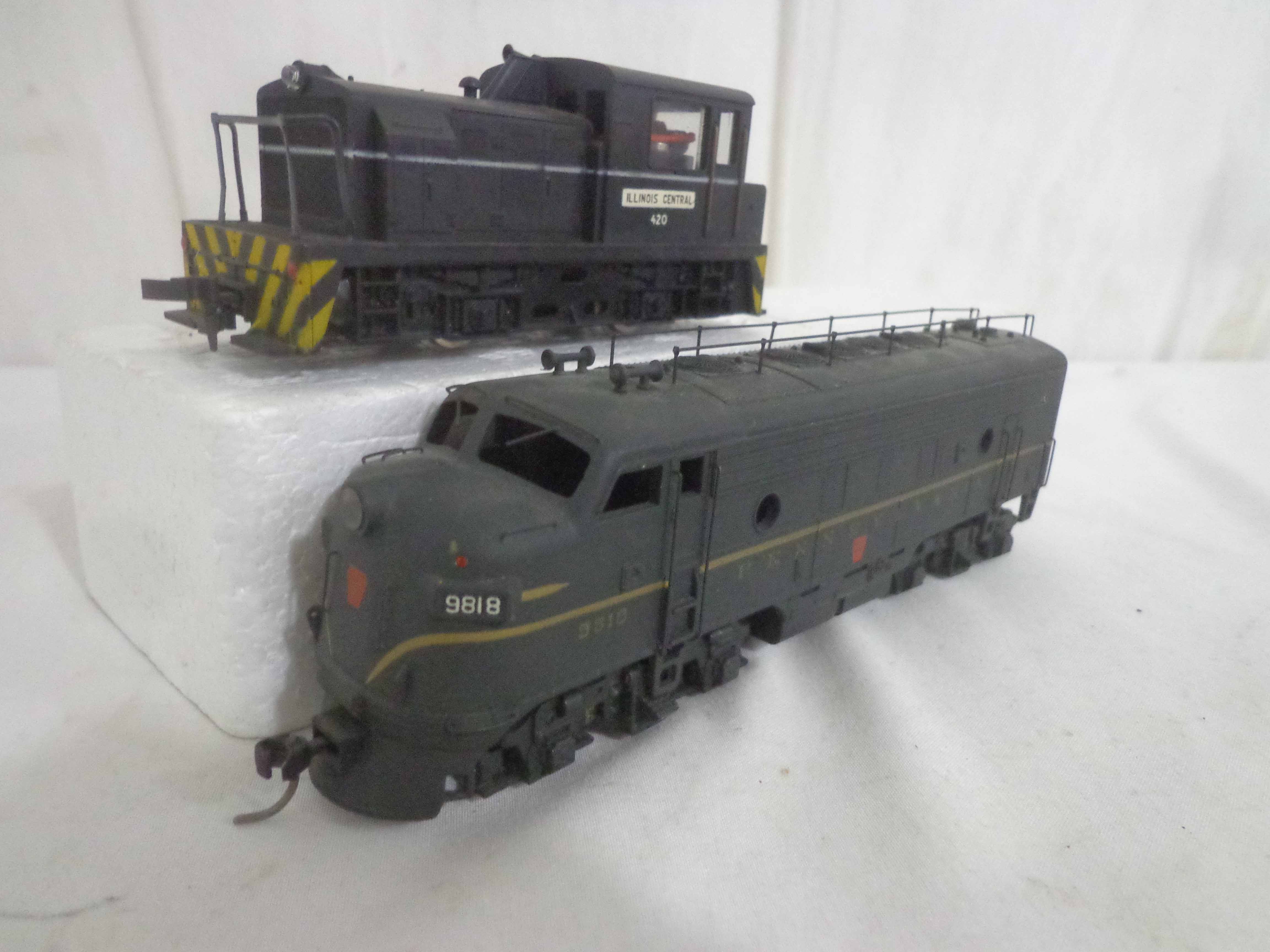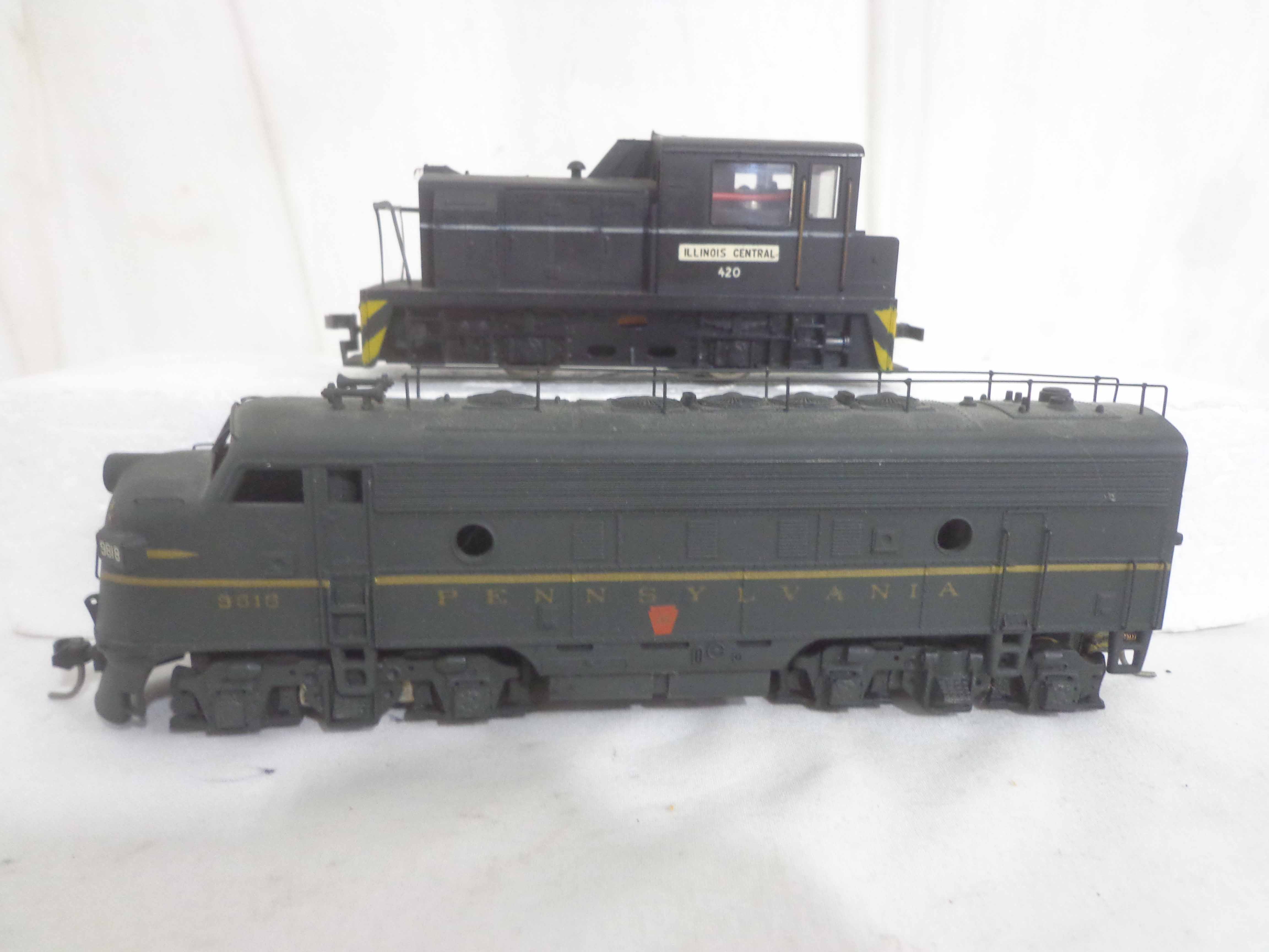 These are the Assorted Manufactures HO Gauge #2743/5655/5920/9112/9329/9818 Pennsylvania Engines, #9071 Pennsylvania Non Powered Engine and #420 Illinois Central Engine (broken antenna, some repainted). No Boxes. Examine closely; what is pictured is what you will receive. Please add $45.00 for US-48 Shipping and Insurance (more west of the Mississippi).