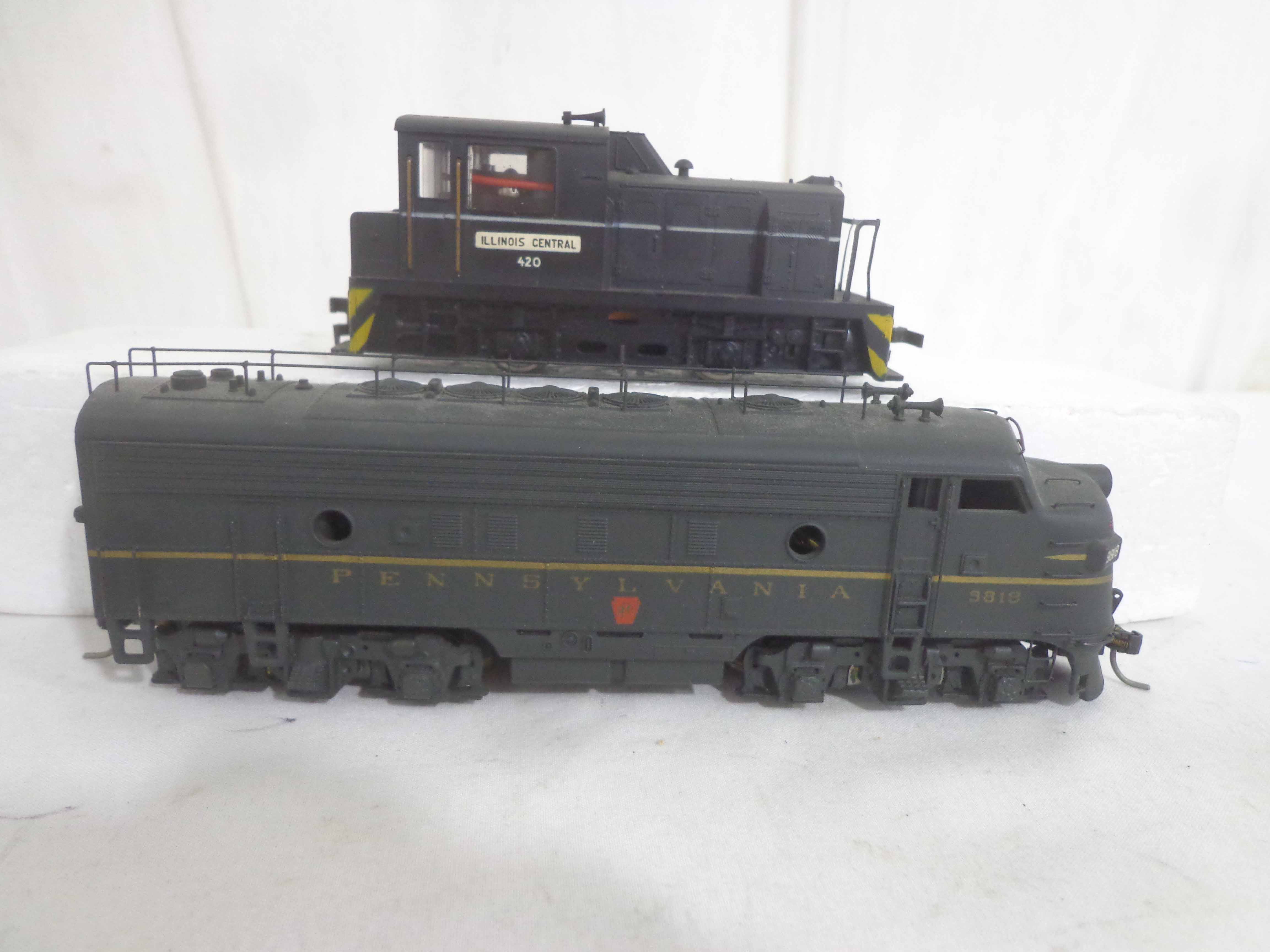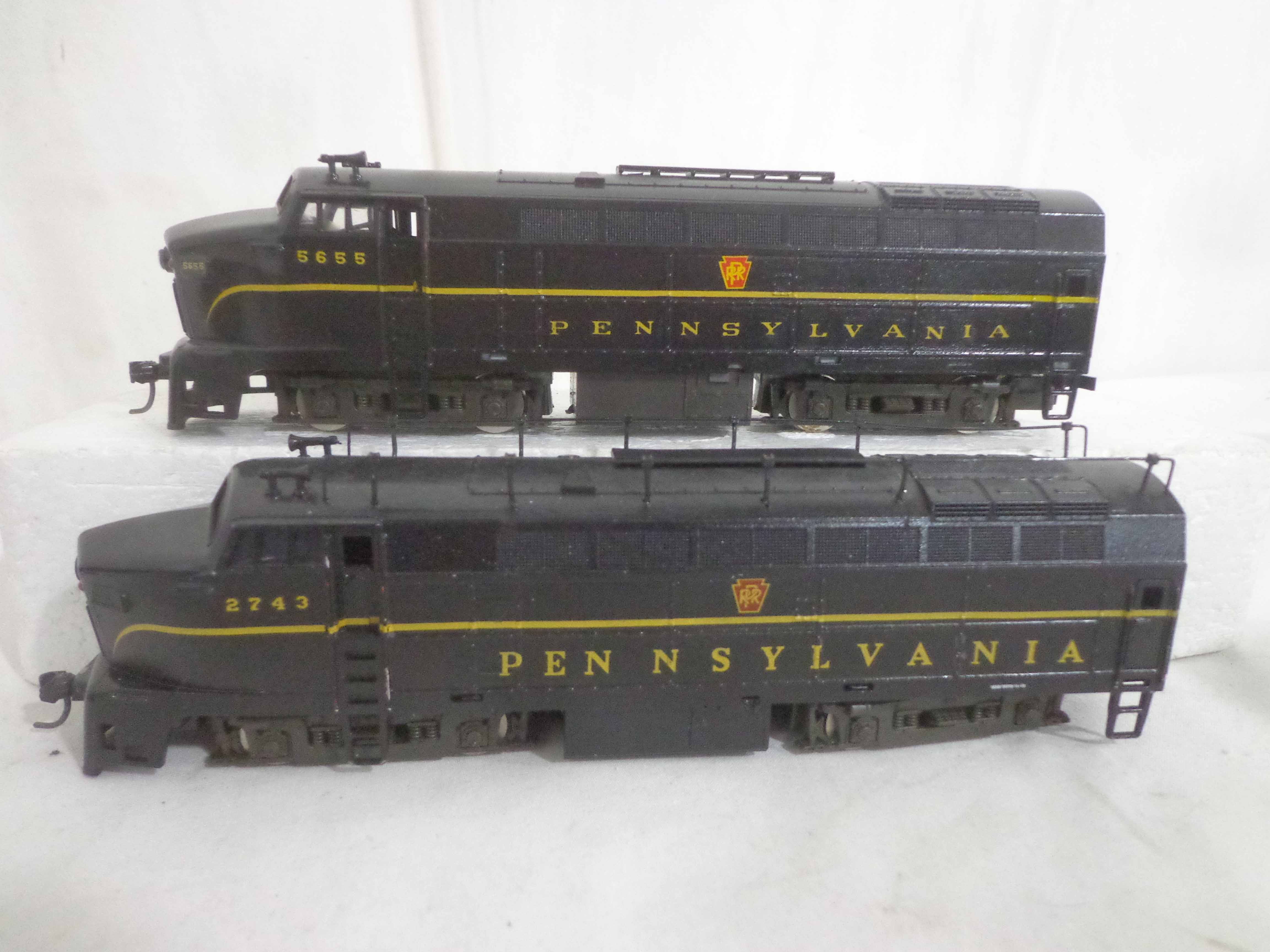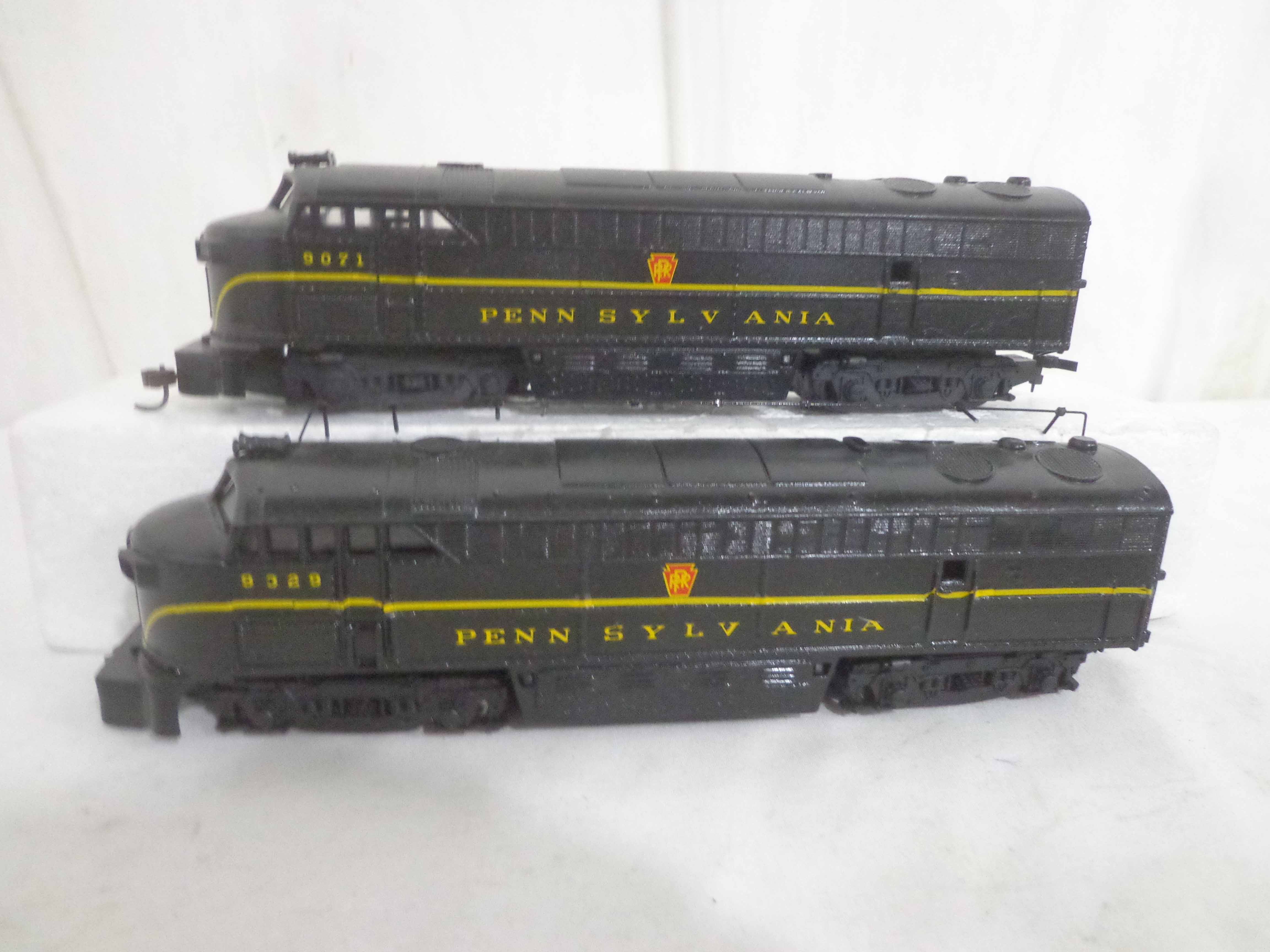 These are the Assorted Manufactures HO Gauge #2743/5655/5920/9112/9329/9818 Pennsylvania Engines, #9071 Pennsylvania Non Powered Engine and #420 Illinois Central Engine (broken antenna, some repainted). No Boxes. Examine closely; what is pictured is what you will receive. Please add $45.00 for US-48 Shipping and Insurance (more west of the Mississippi).