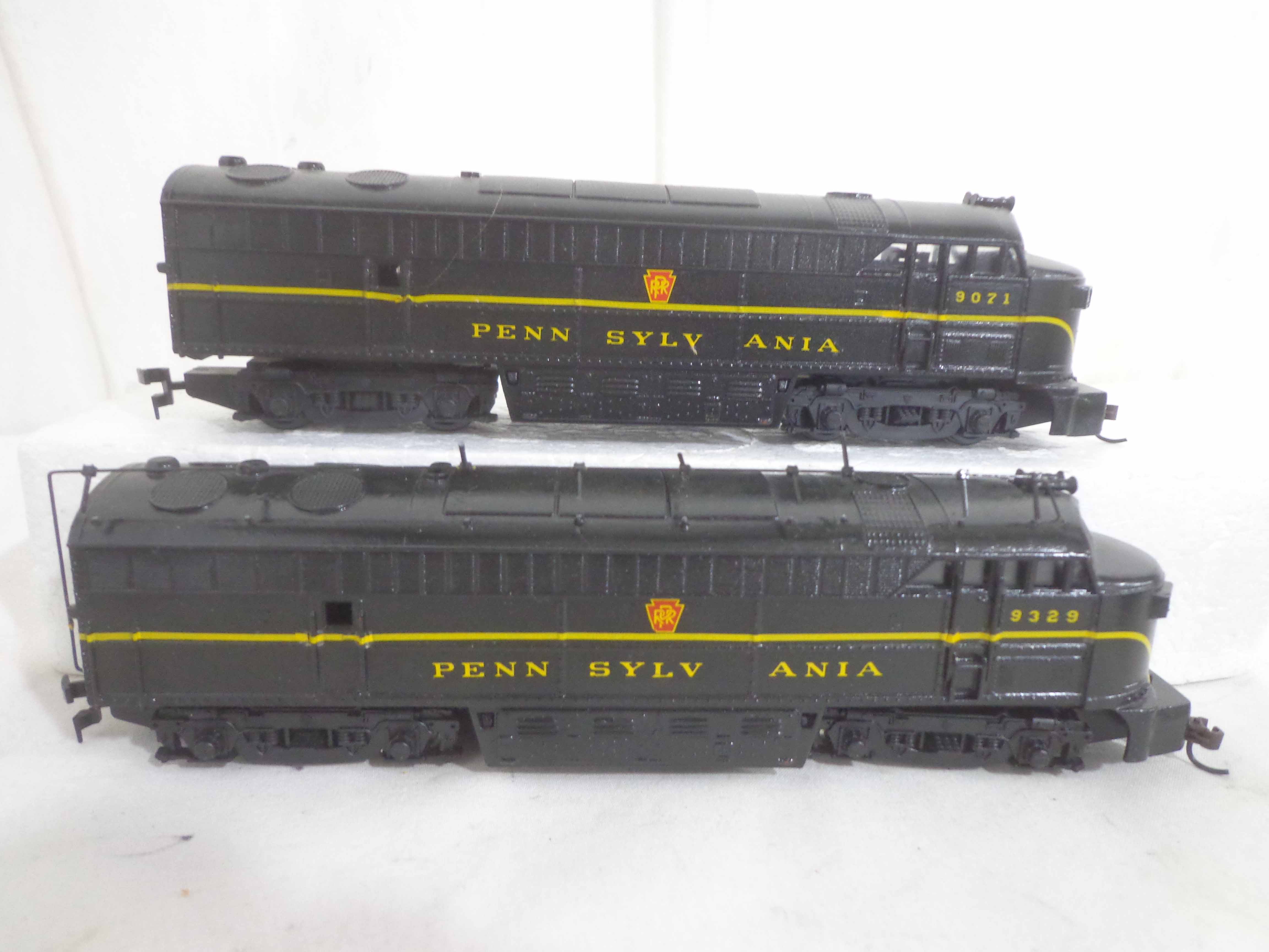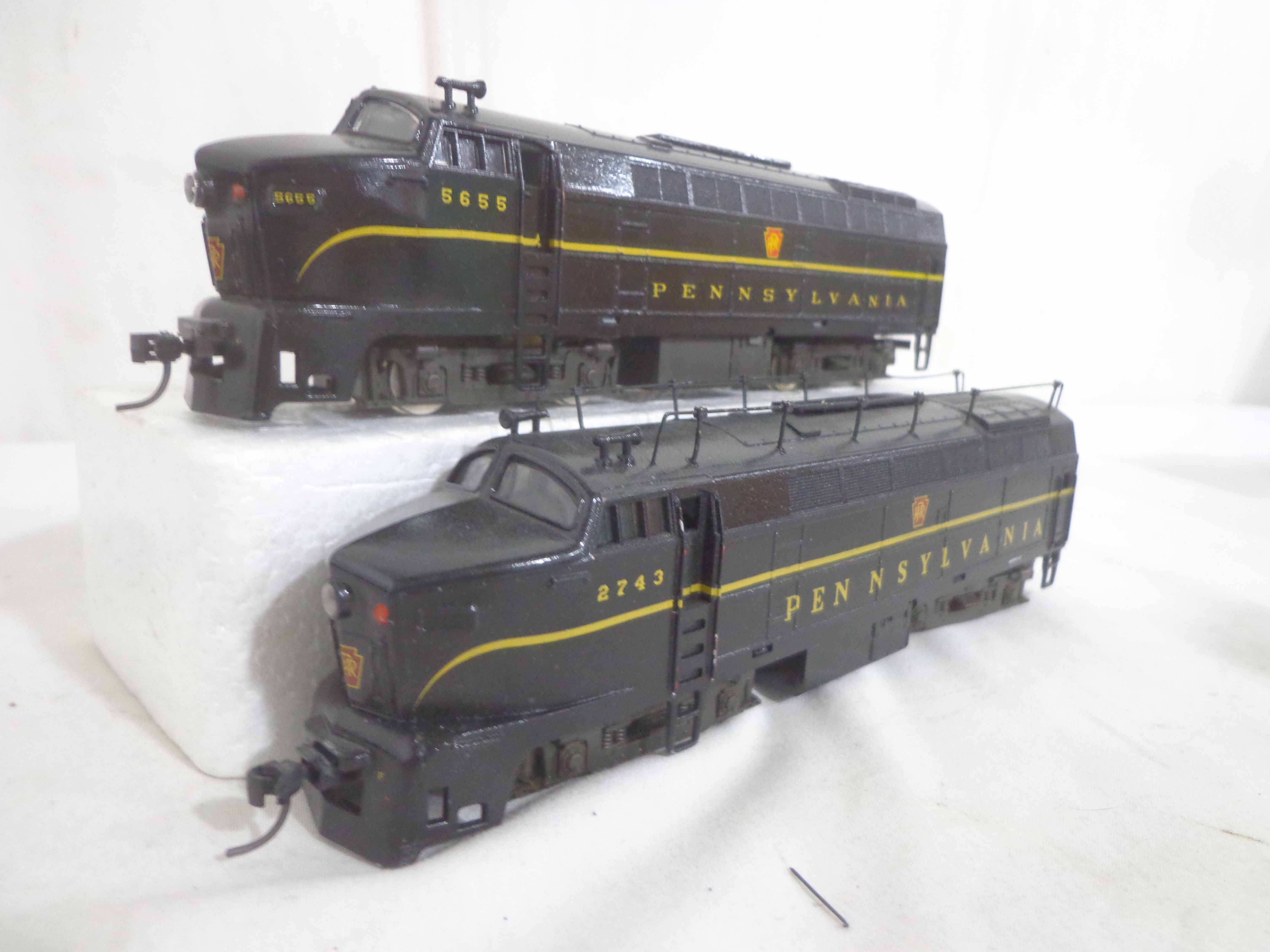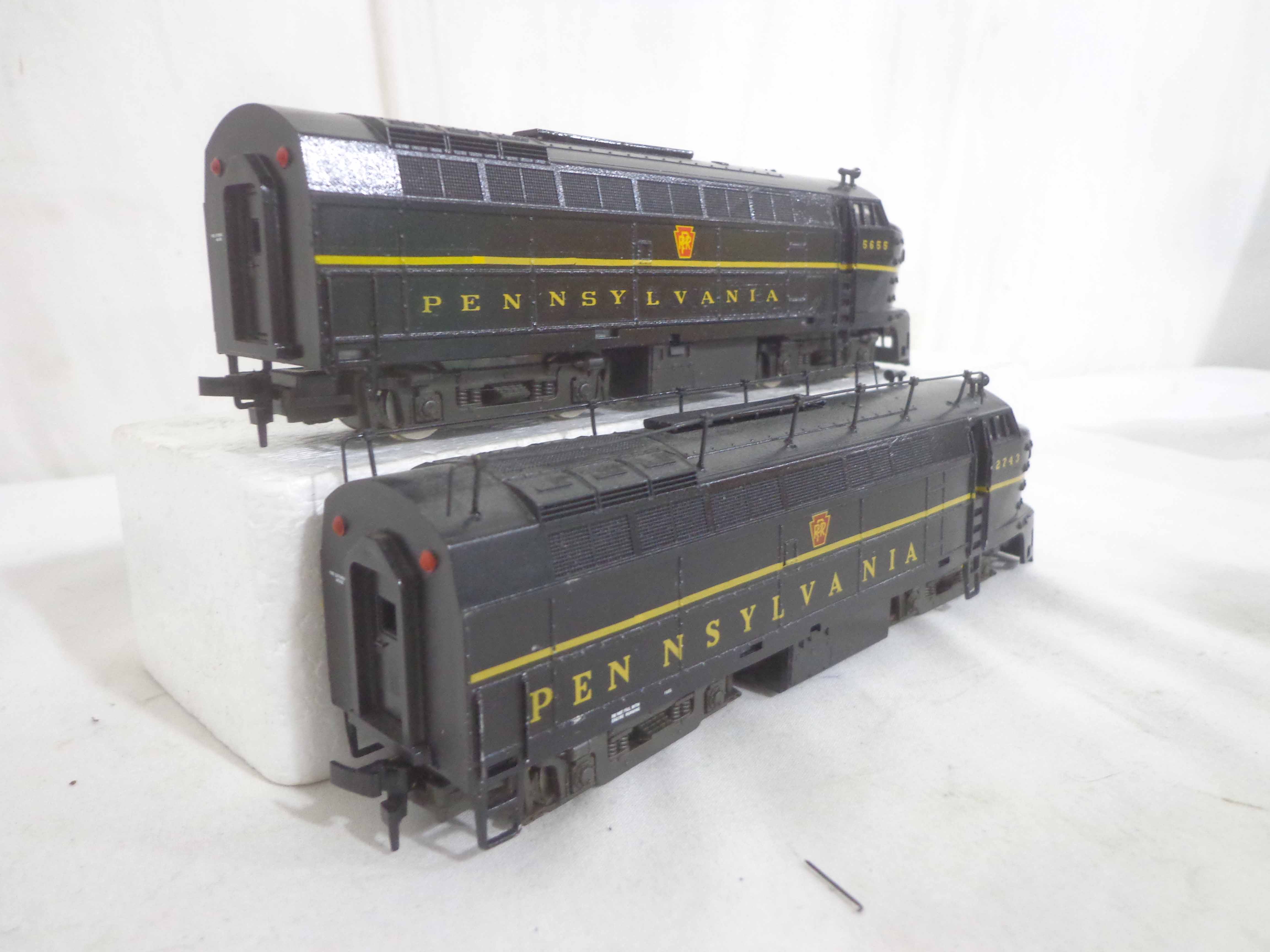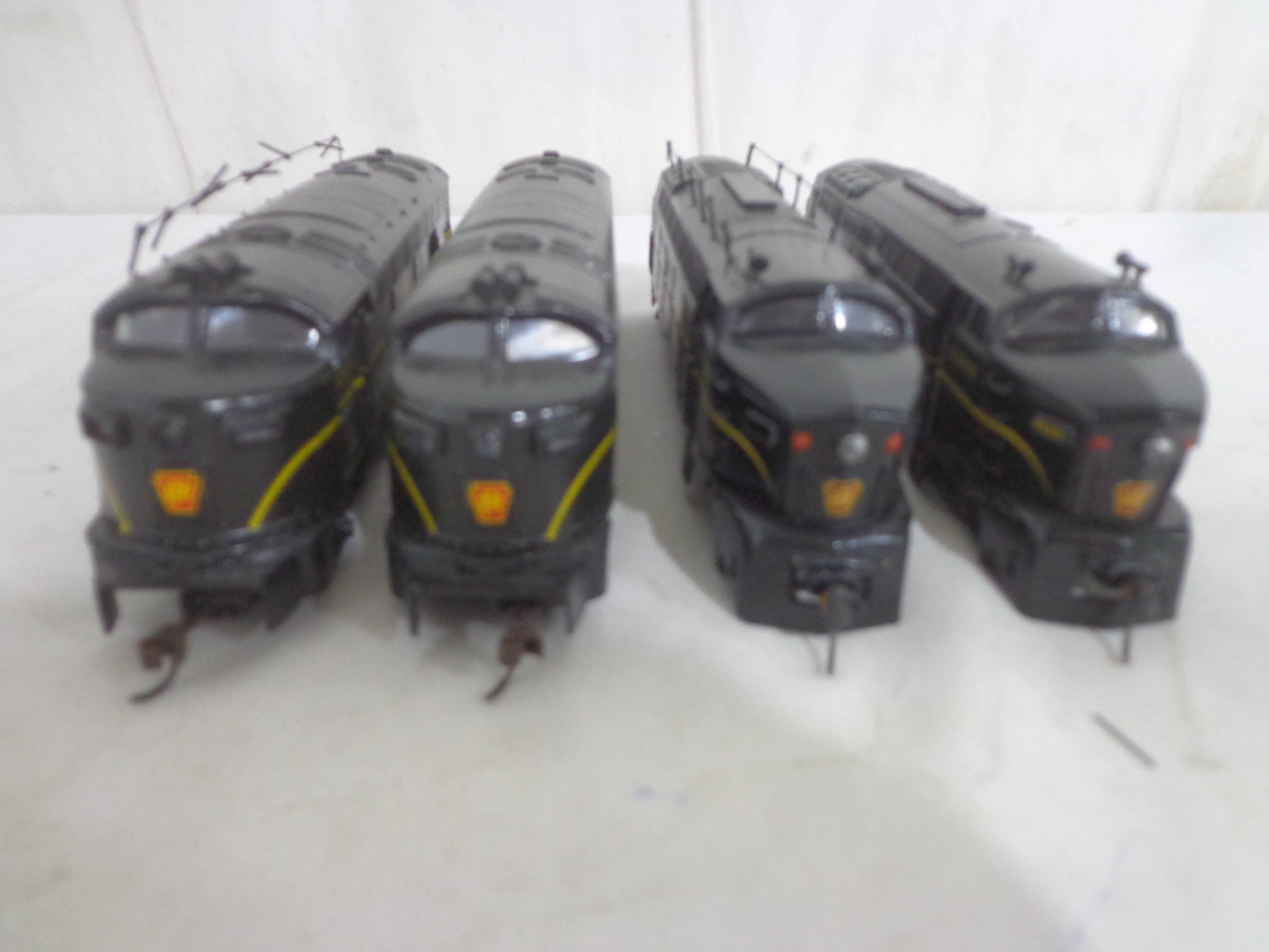 These are the Assorted Manufactures HO Gauge #2743/5655/5920/9112/9329/9818 Pennsylvania Engines, #9071 Pennsylvania Non Powered Engine and #420 Illinois Central Engine (broken antenna, some repainted). No Boxes. Examine closely; what is pictured is what you will receive. Please add $45.00 for US-48 Shipping and Insurance (more west of the Mississippi).