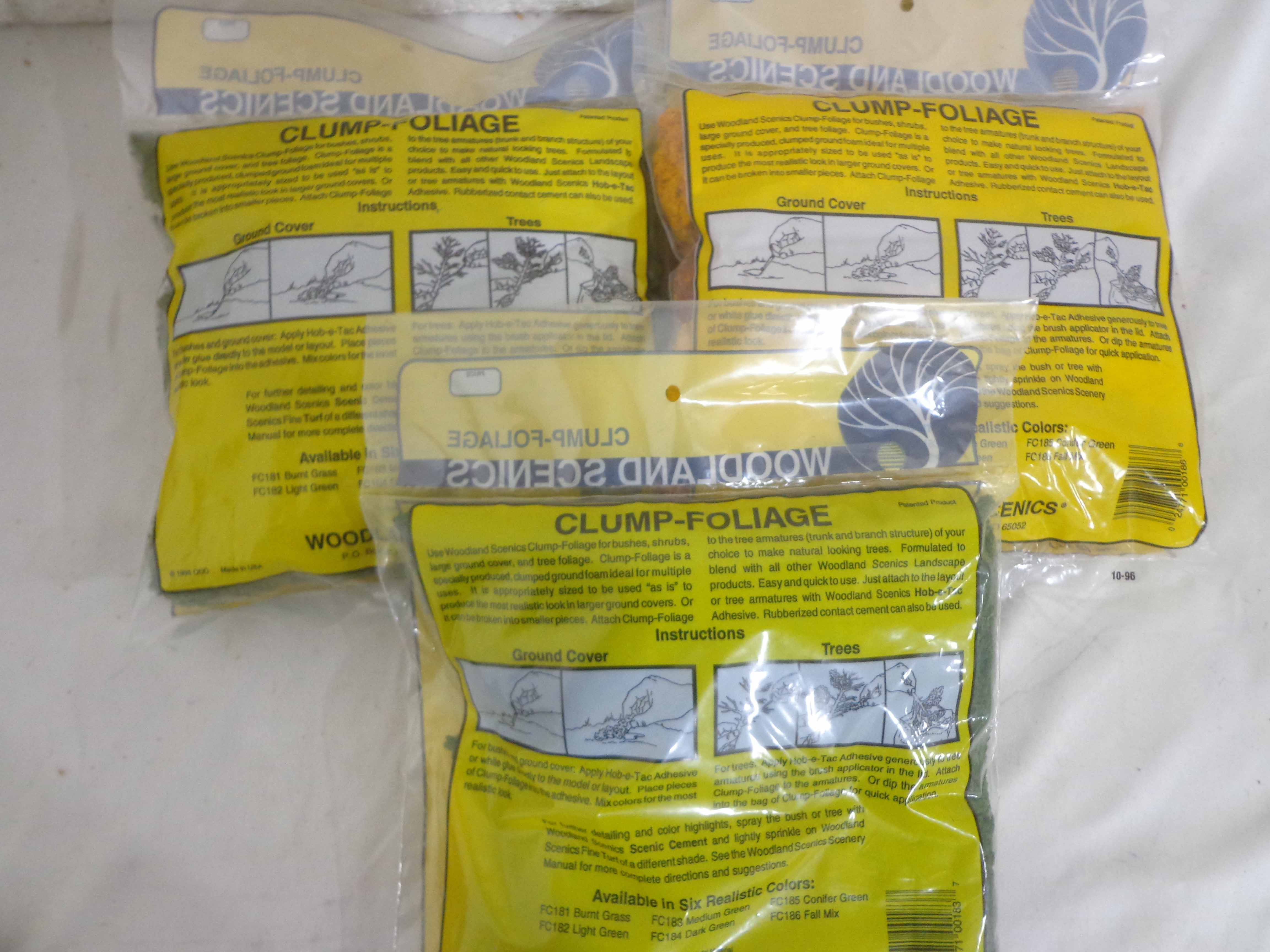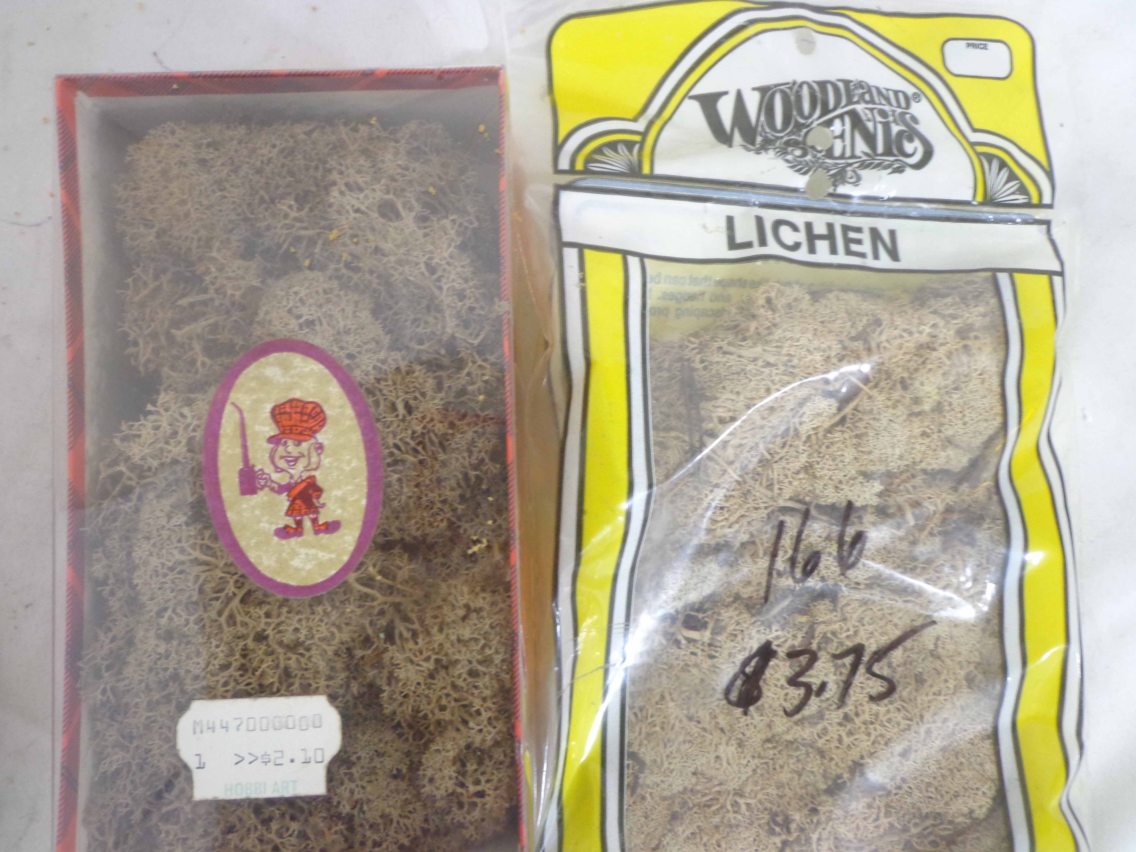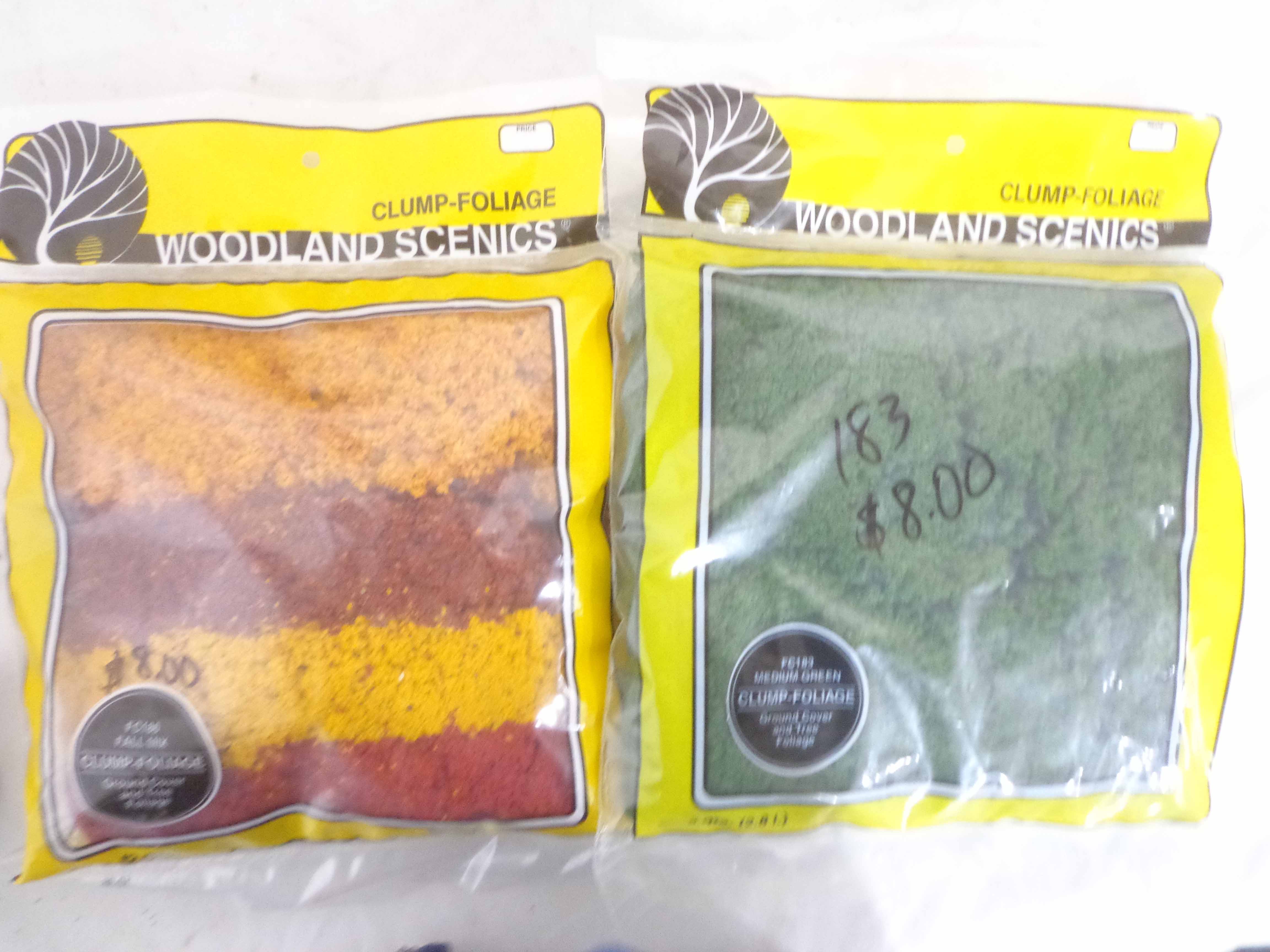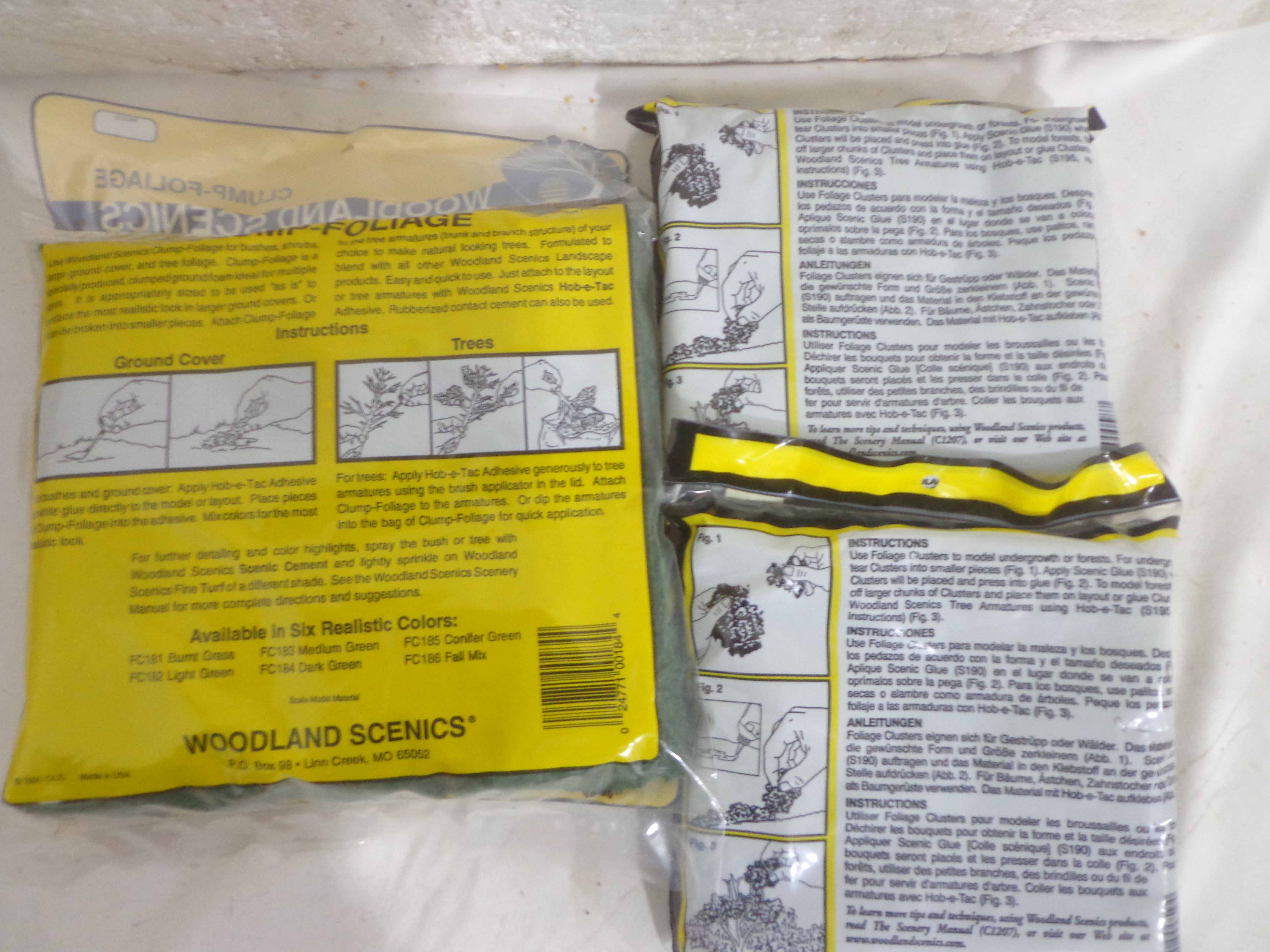 These are twenty-one Assorted Woodland Scenes/Good Earth Co. Landscaping Materials. Plastic Bags. Please look at all the pictures; what is pictured is what you will receive. Original Packages. Please add $45.00 for US-48 Shipping and Insurance (more west of the Mississippi).
