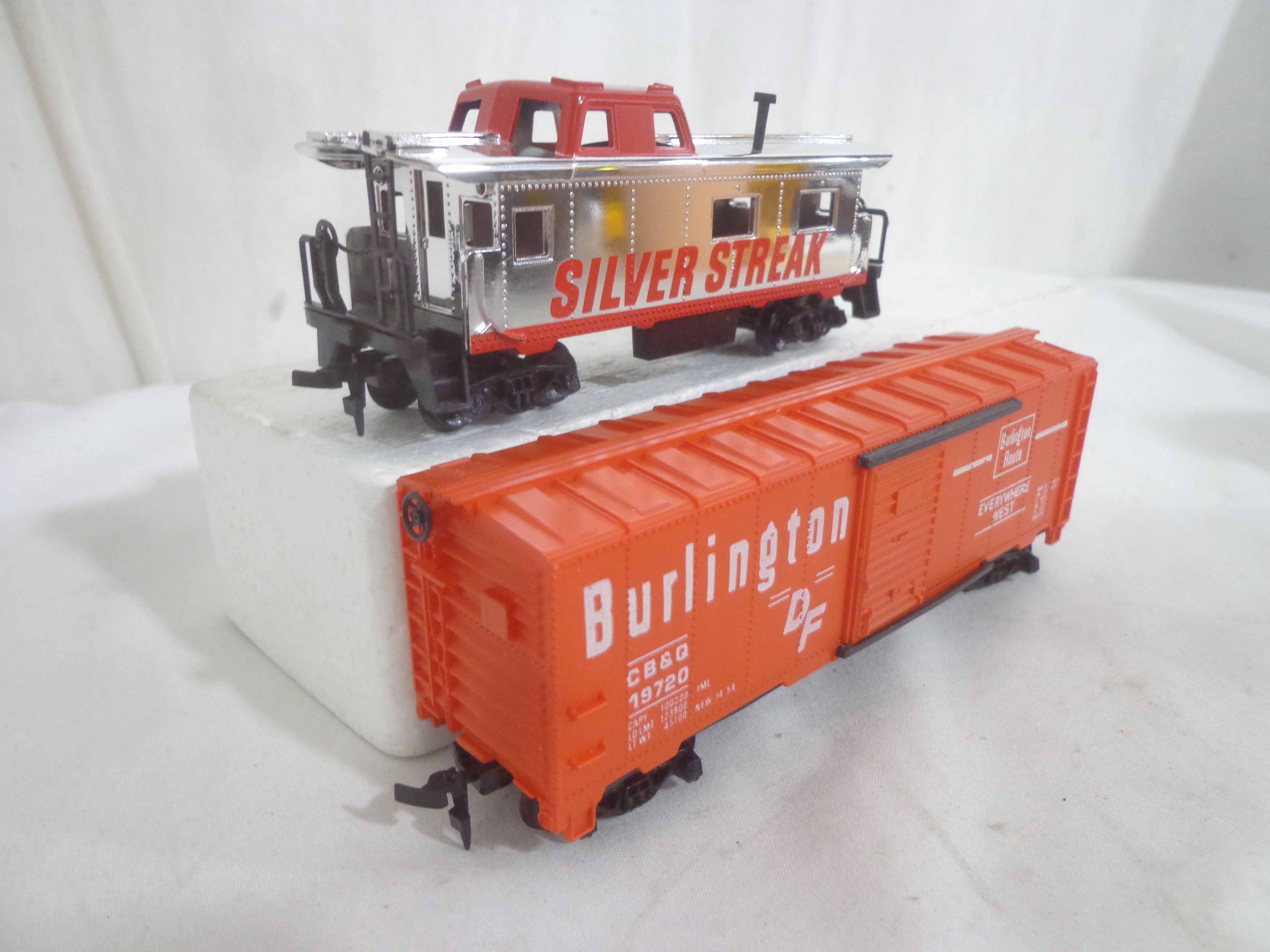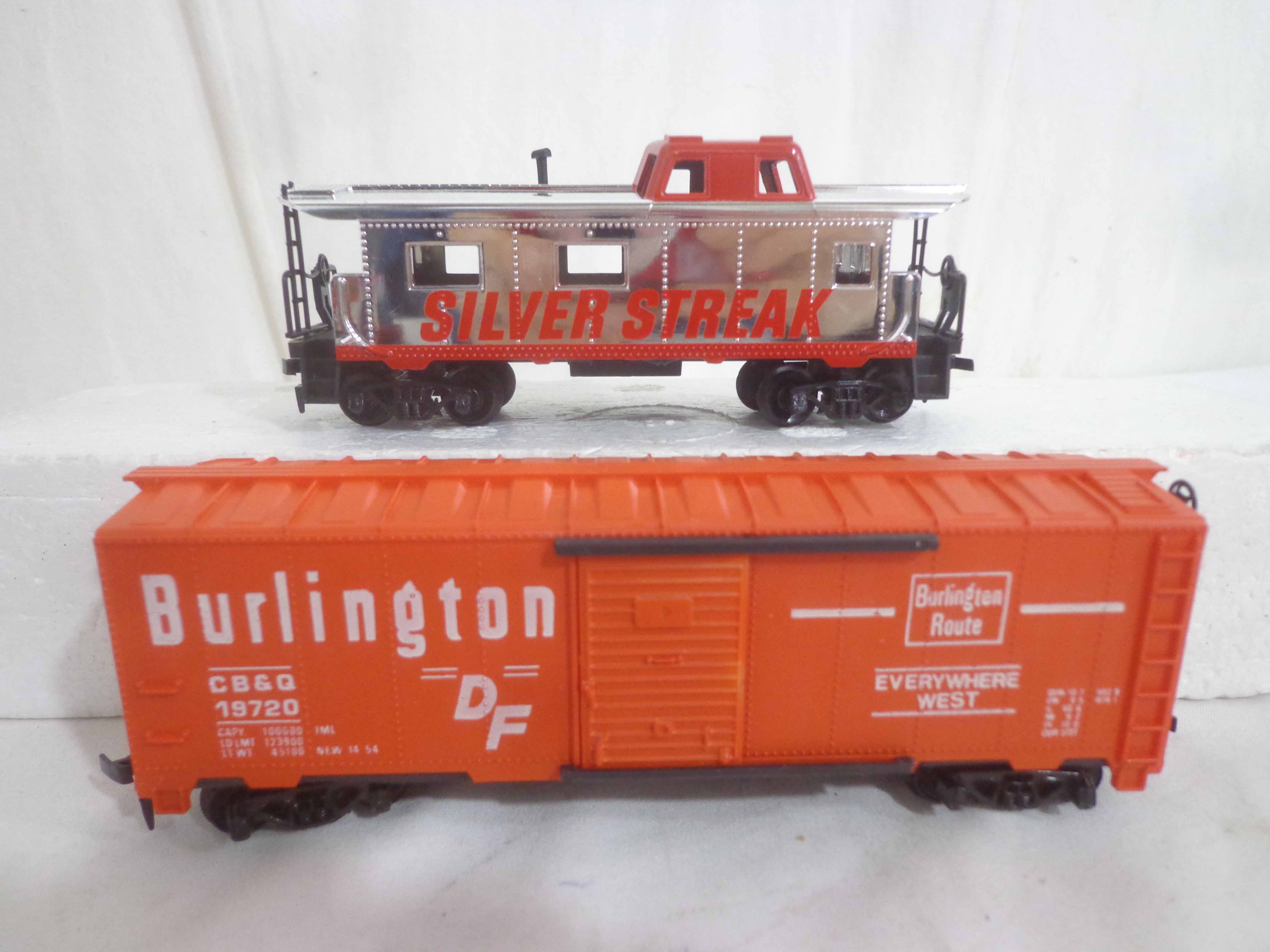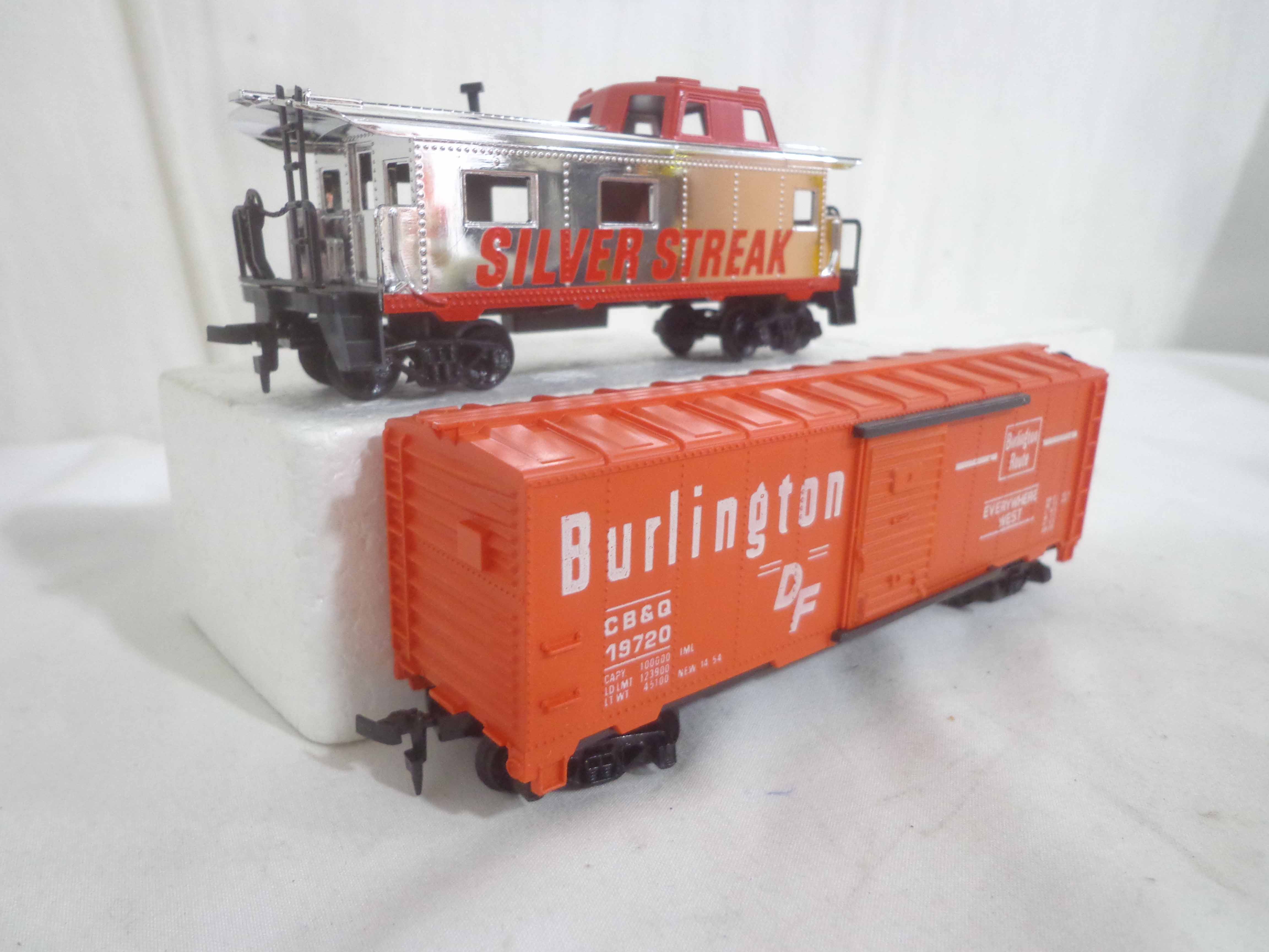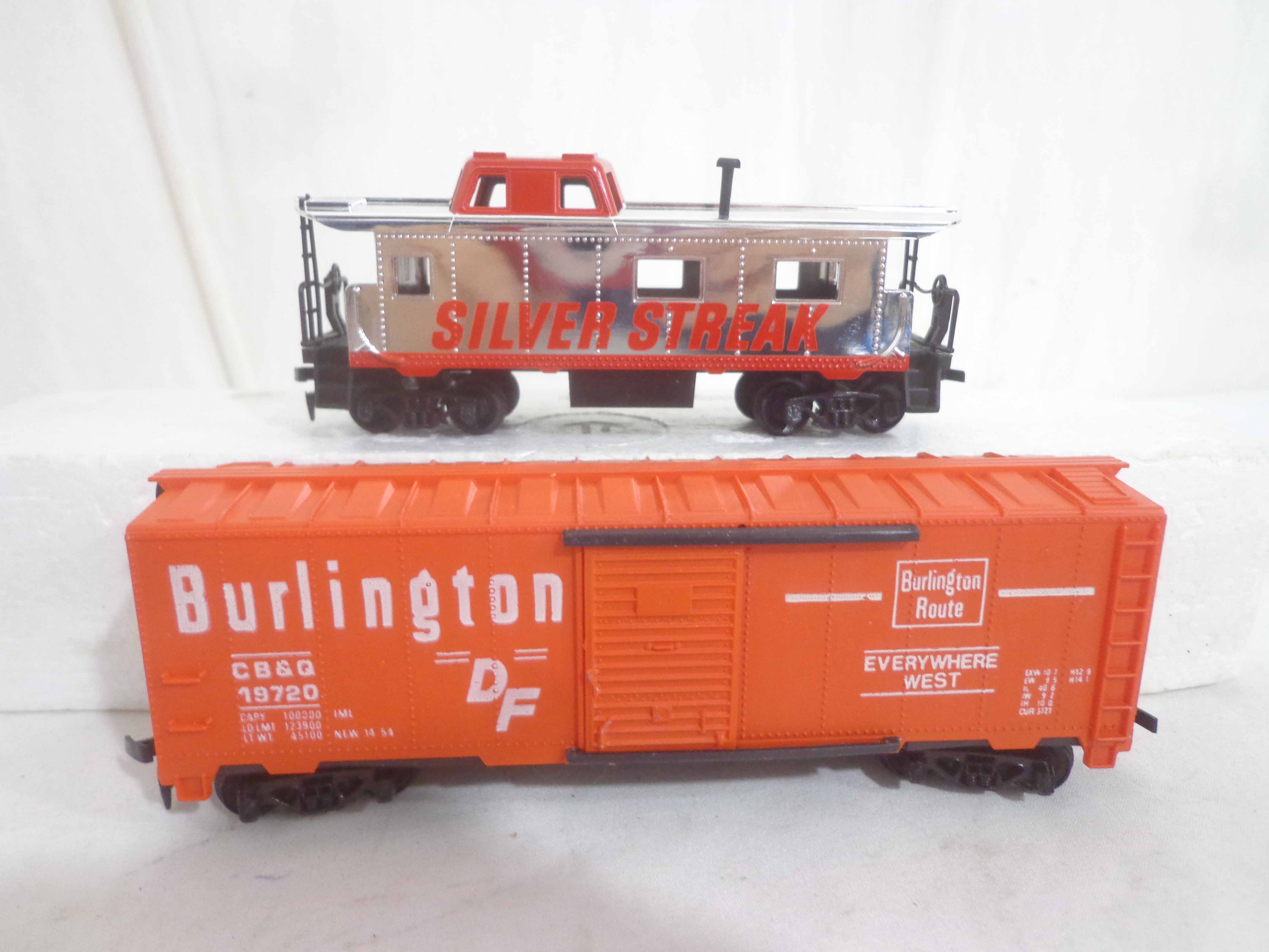 These are the Tyco HO Gauge #4301 Silver Streak Engine and twenty-five Assorted Freight Cars from the 1970s. Original Boxes. Examine closely; what is pictured is what you will receive. Please add $45.00 for US-48 Shipping and Insurance (more west of the Mississippi).
