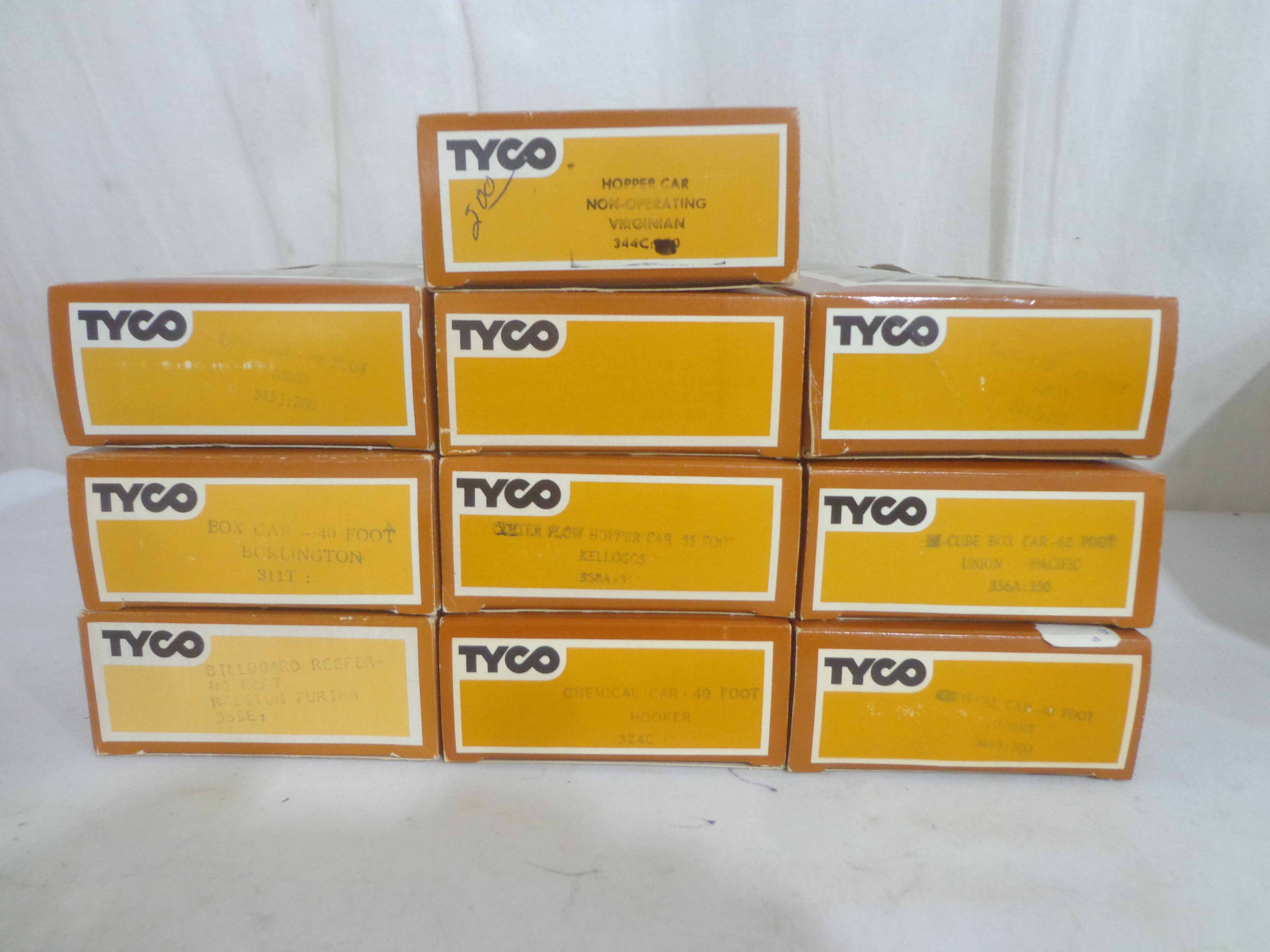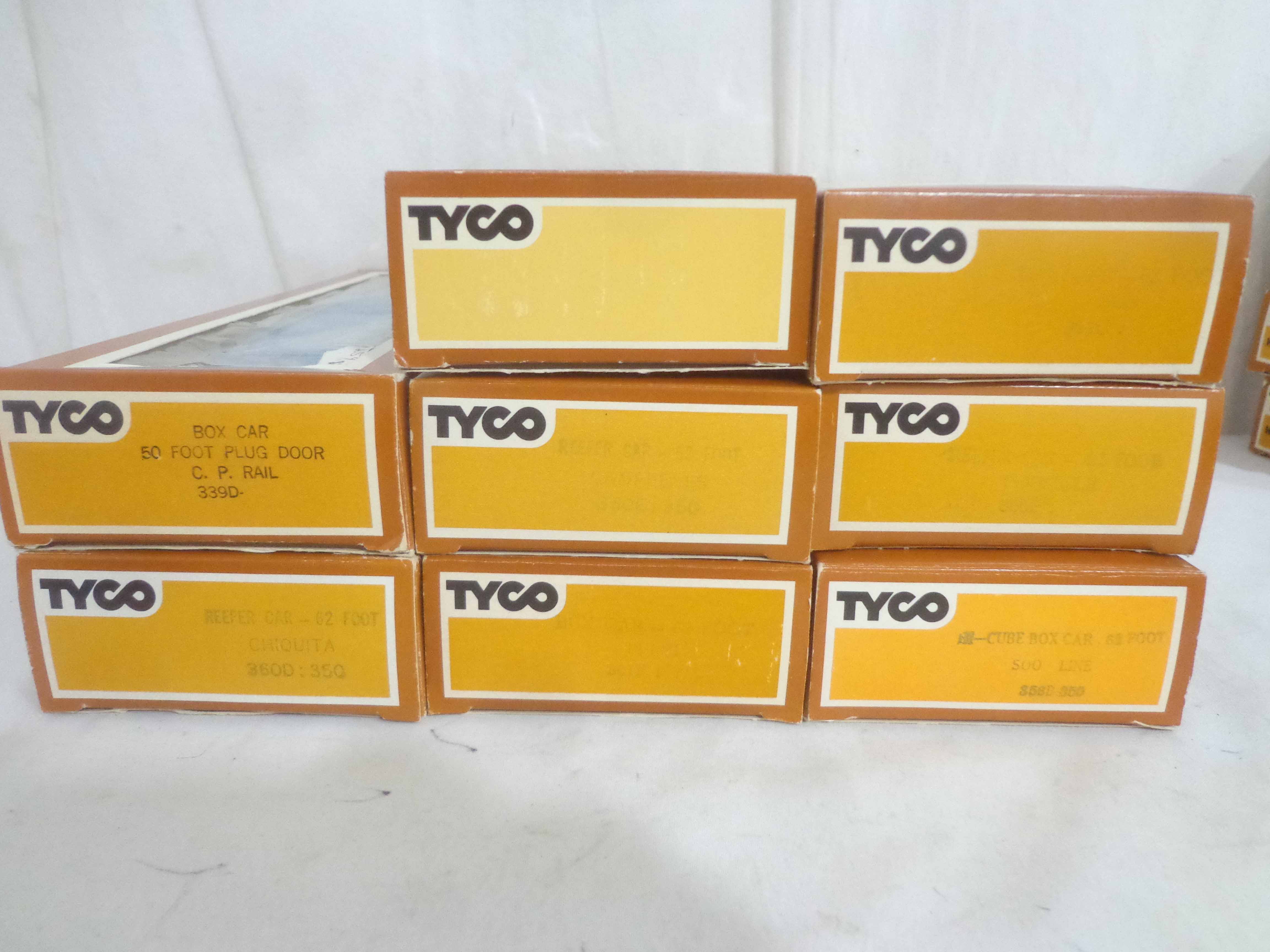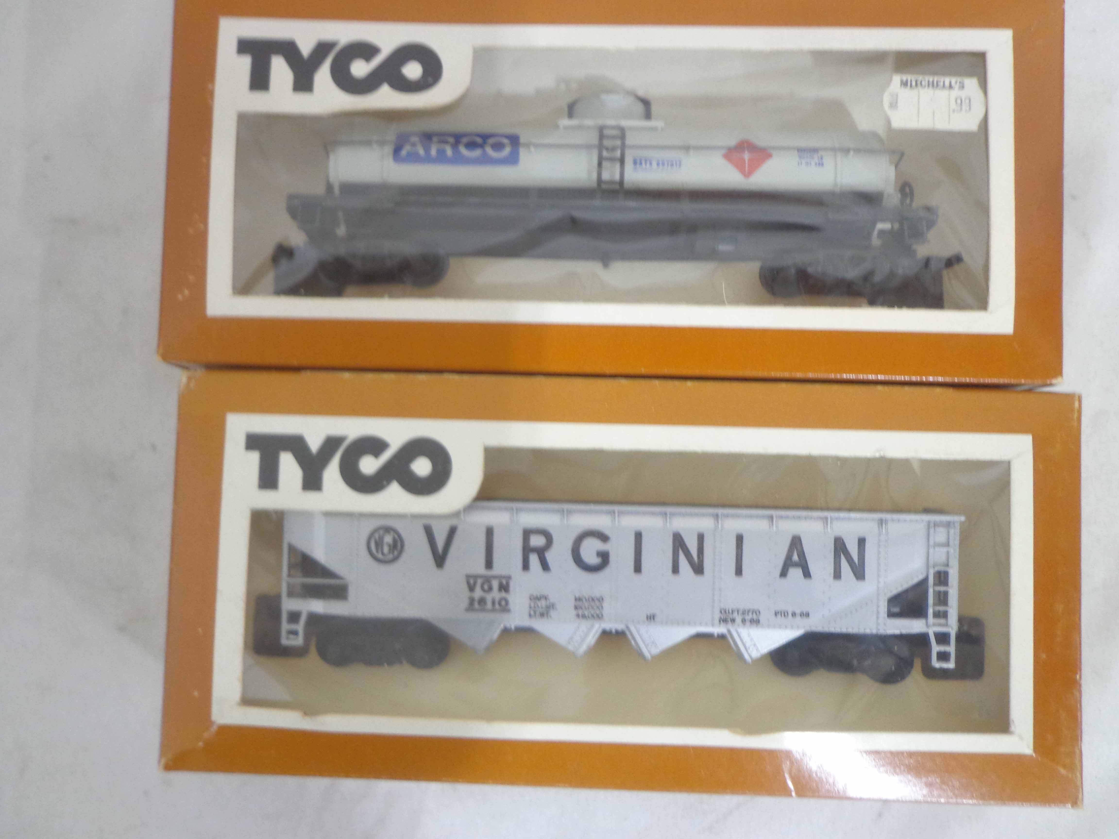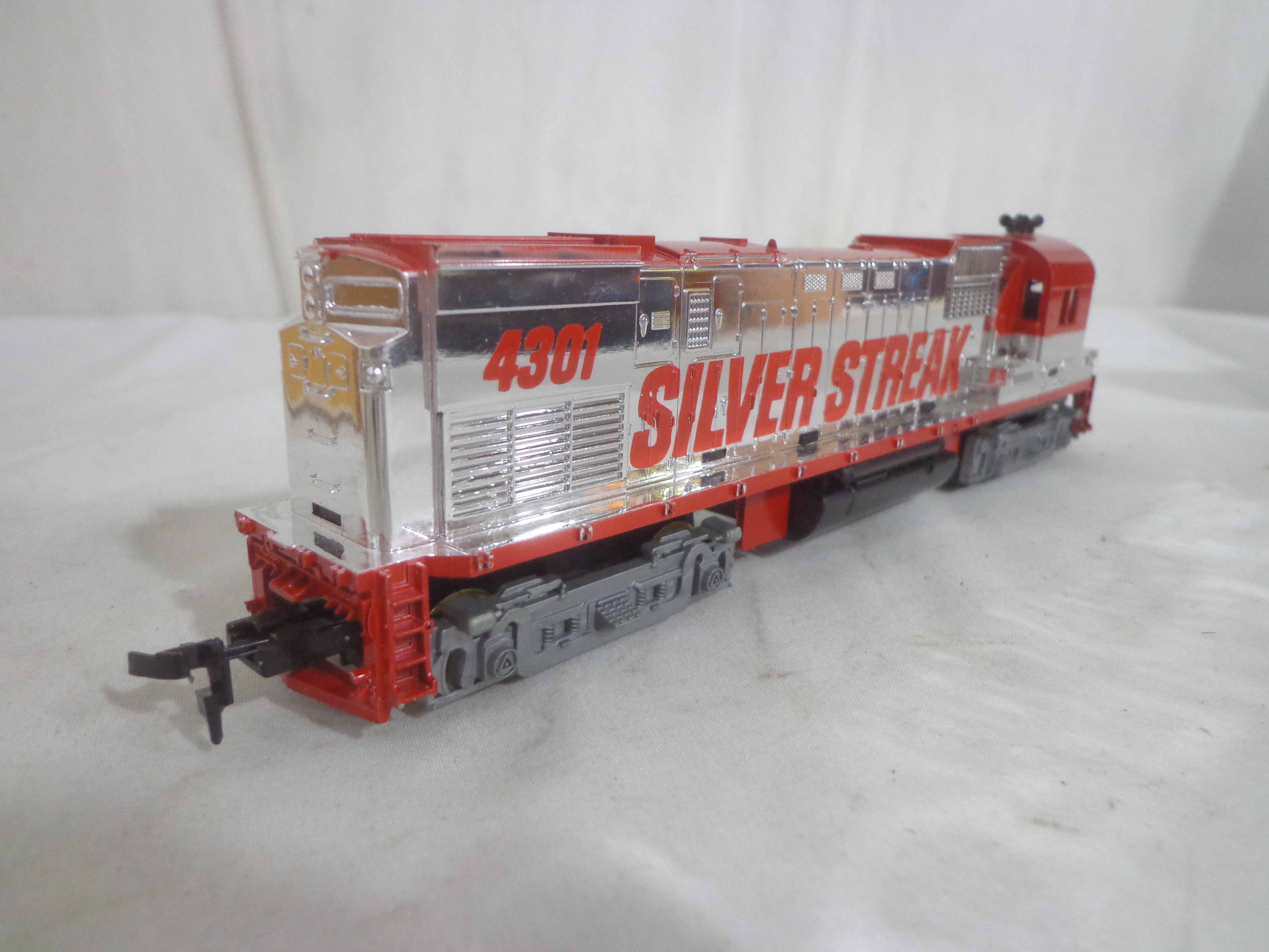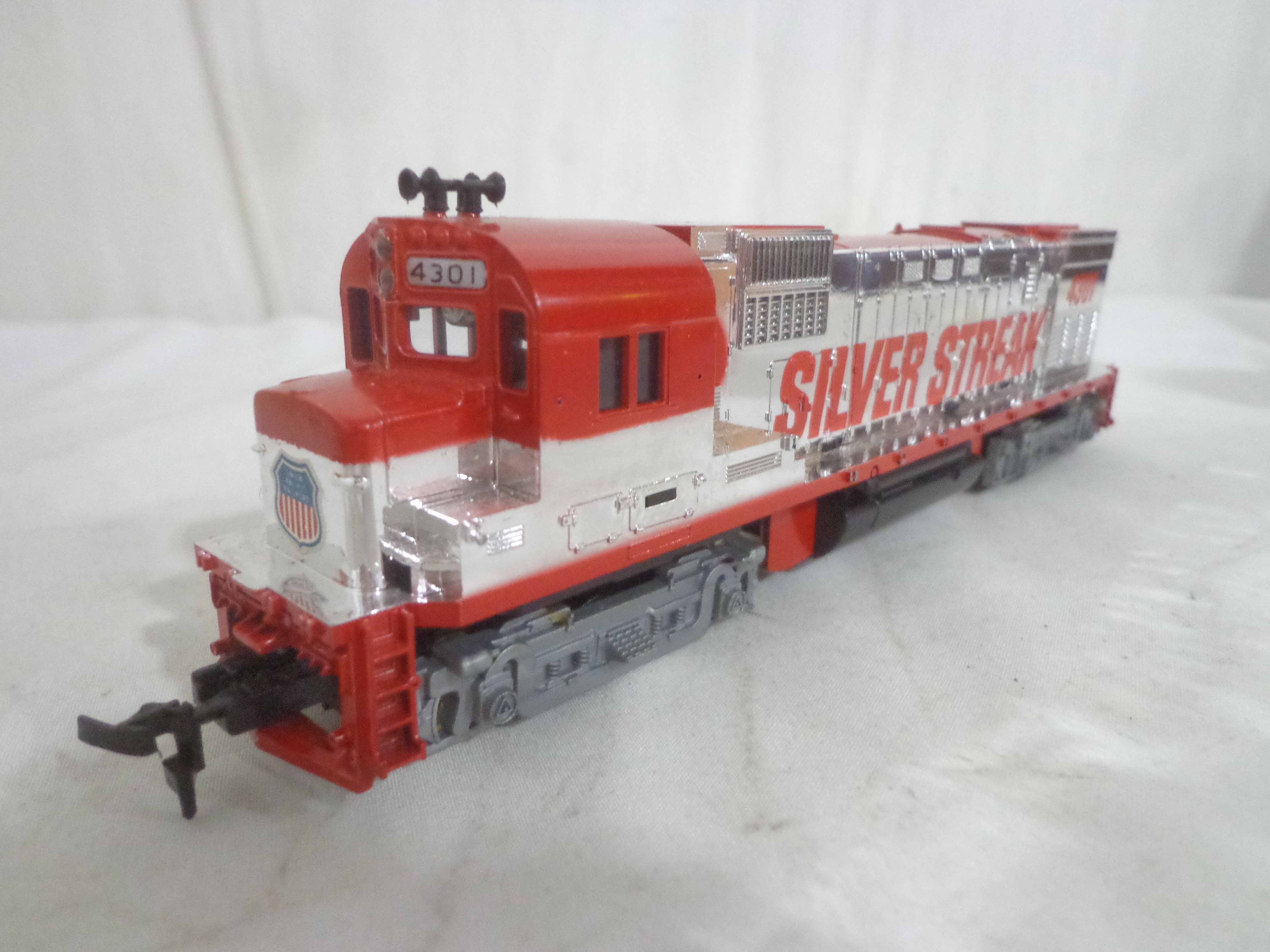These are the Tyco HO Gauge #4301 Silver Streak Engine and twenty-five Assorted Freight Cars from the 1970s. Original Boxes. Examine closely; what is pictured is what you will receive. Please add $45.00 for US-48 Shipping and Insurance (more west of the Mississippi).