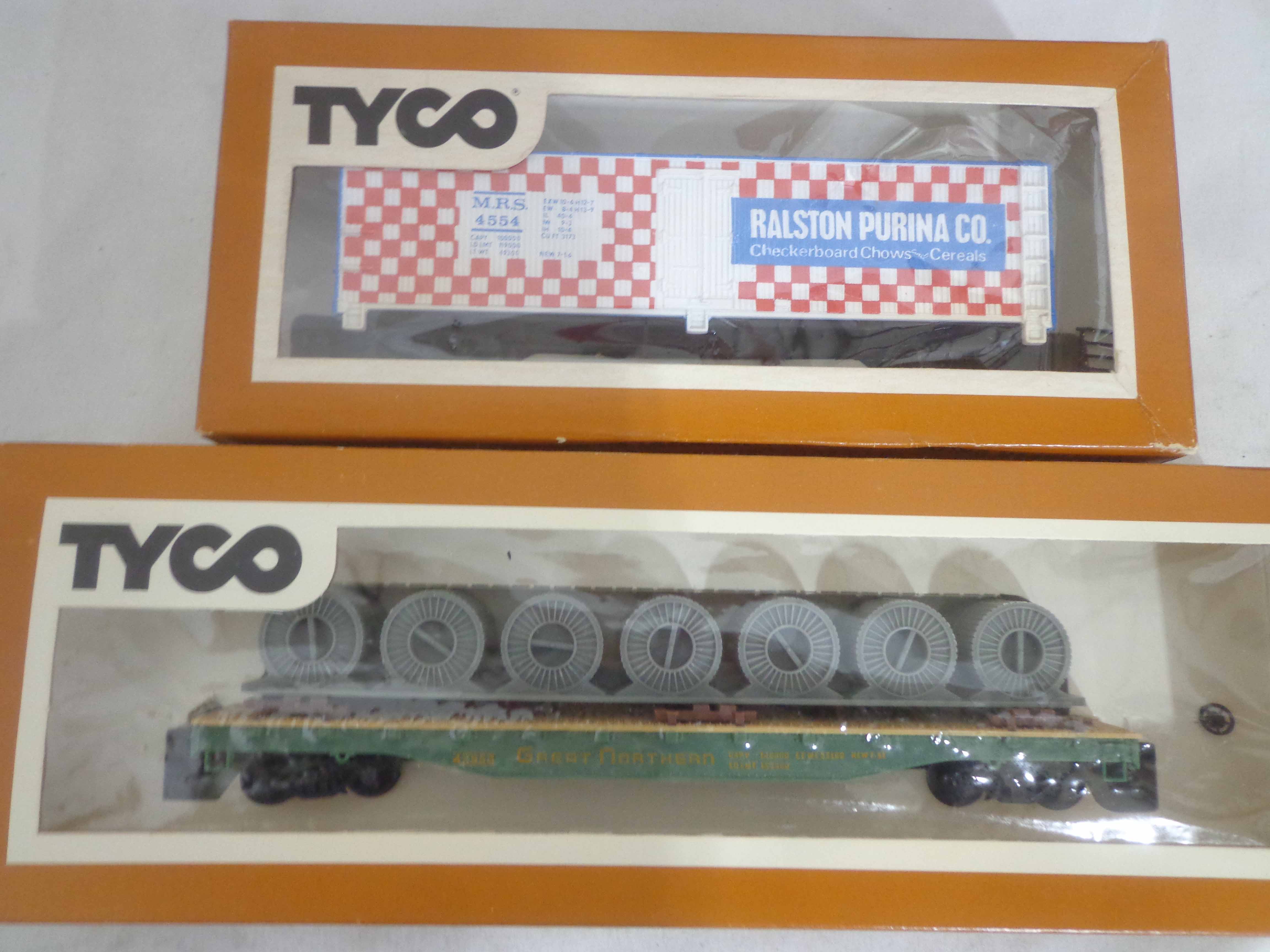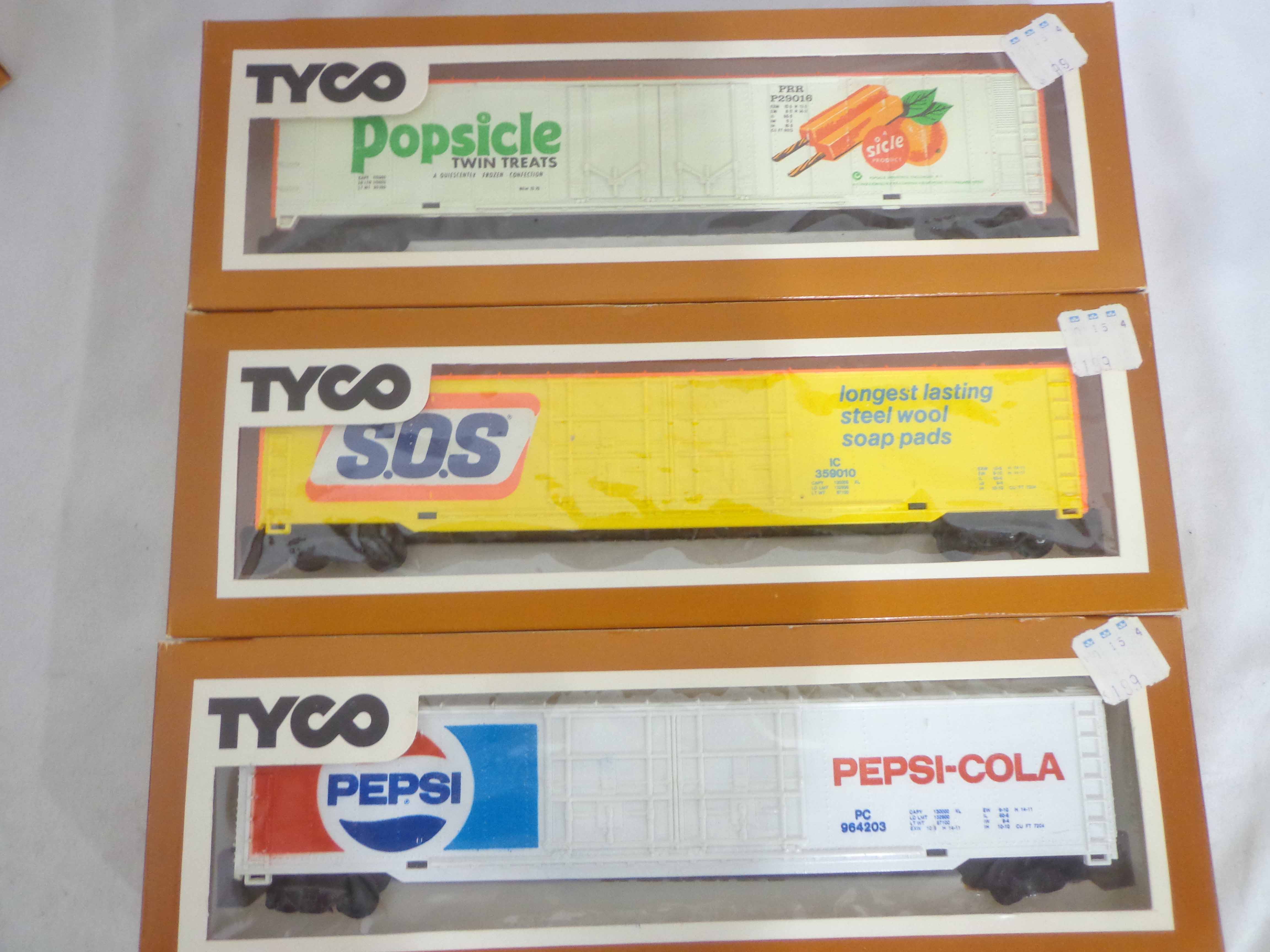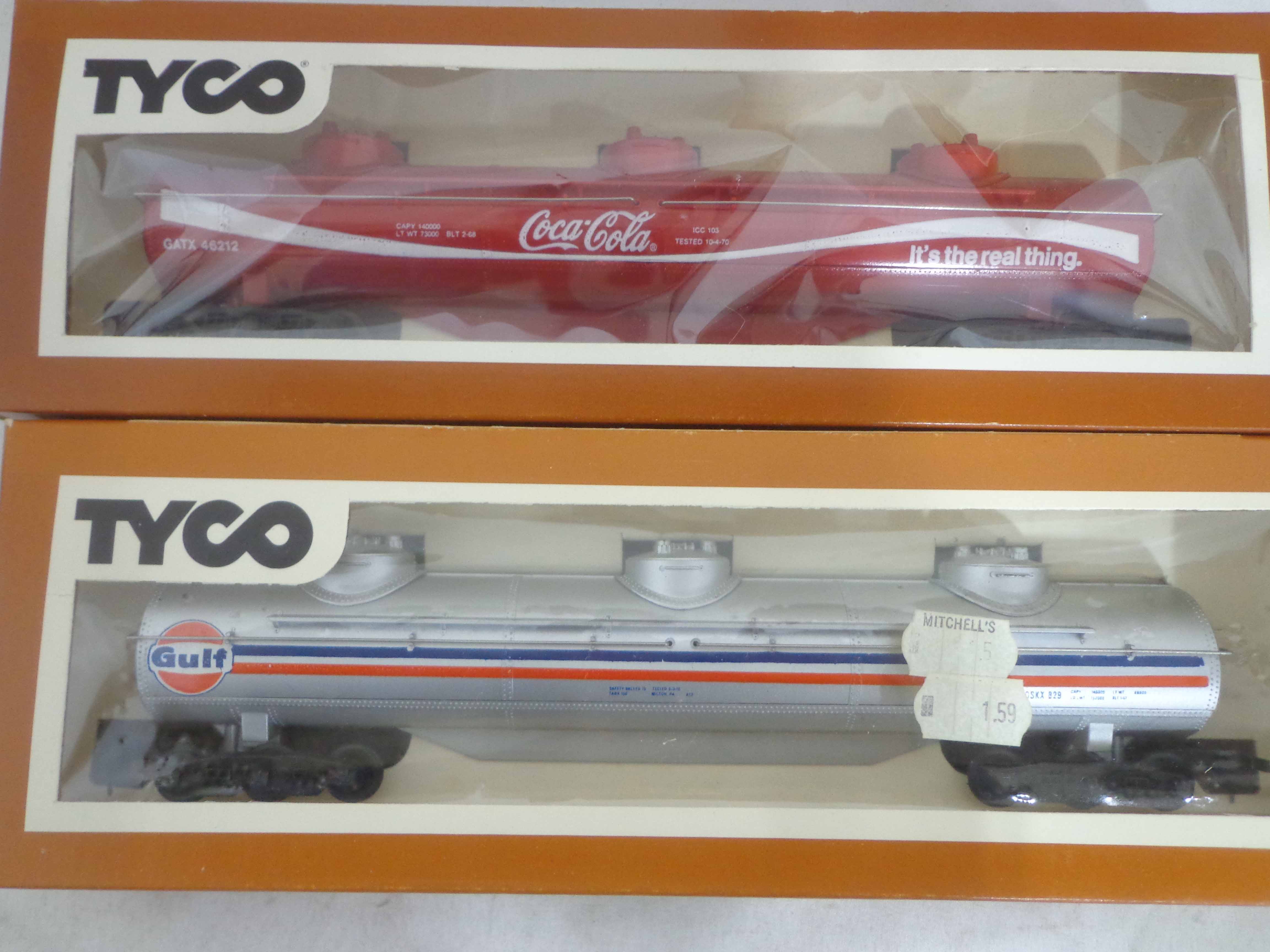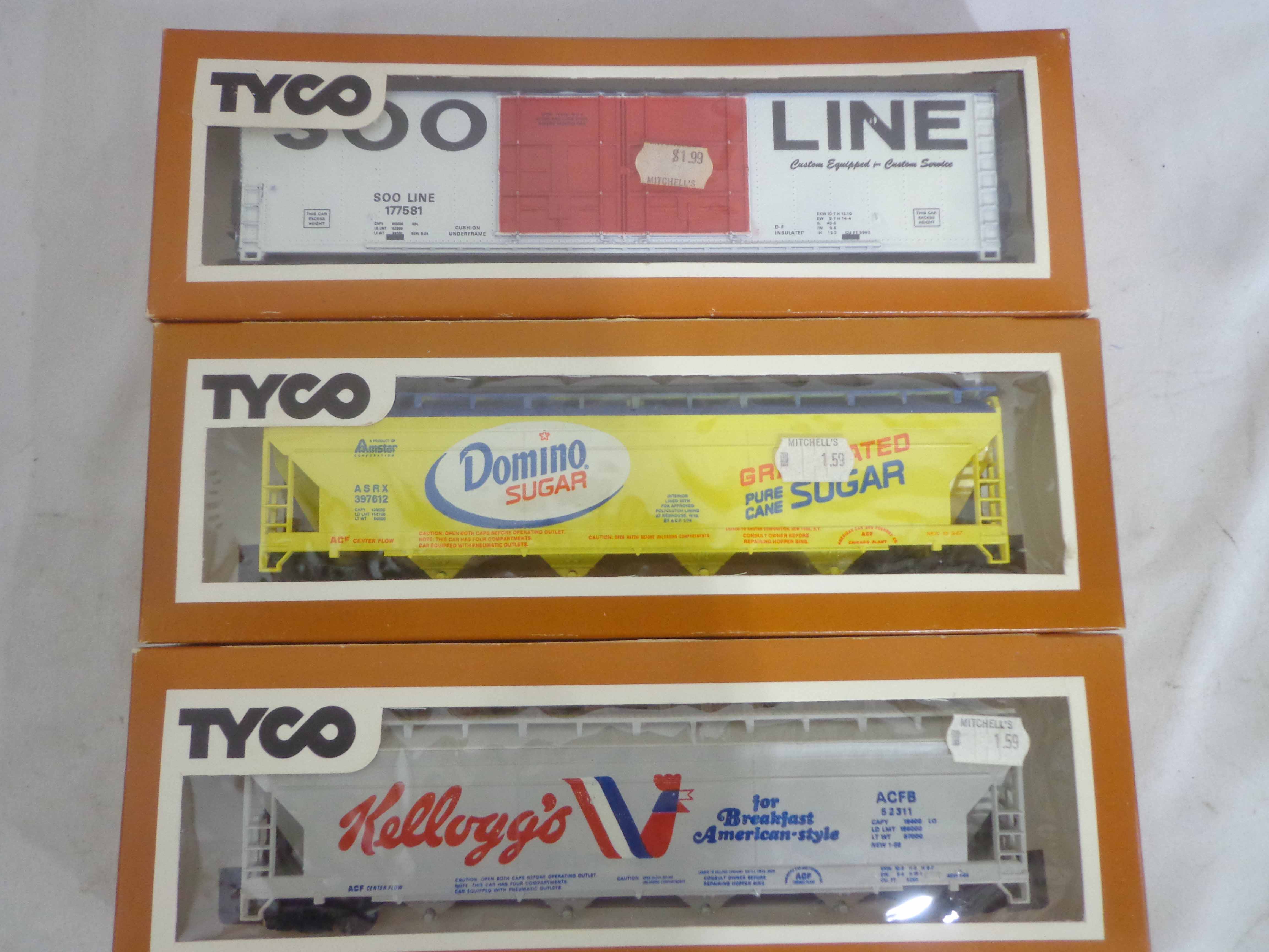 These are the Tyco HO Gauge #4301 Silver Streak Engine and twenty-five Assorted Freight Cars from the 1970s. Original Boxes. Examine closely; what is pictured is what you will receive. Please add $45.00 for US-48 Shipping and Insurance (more west of the Mississippi).