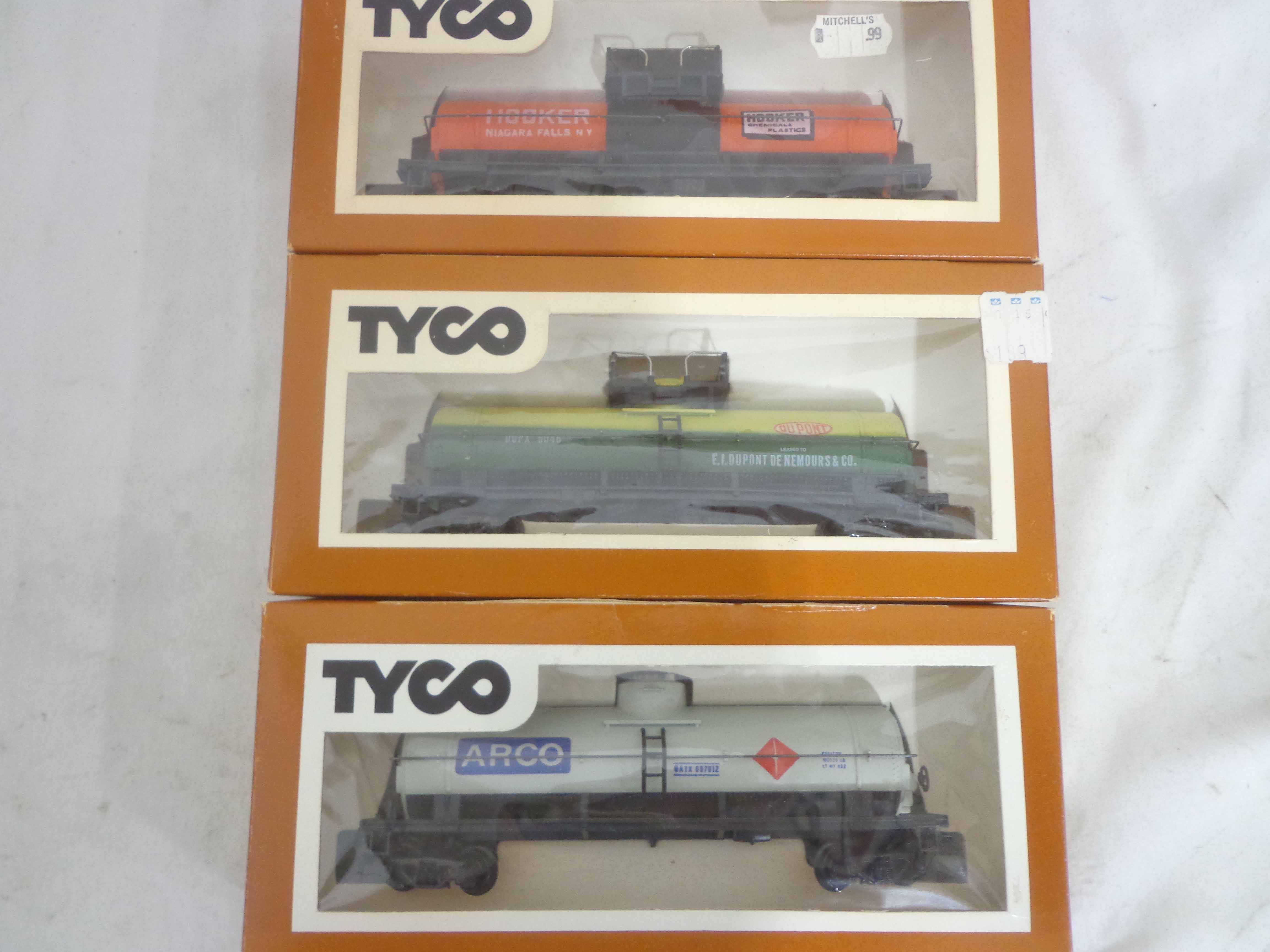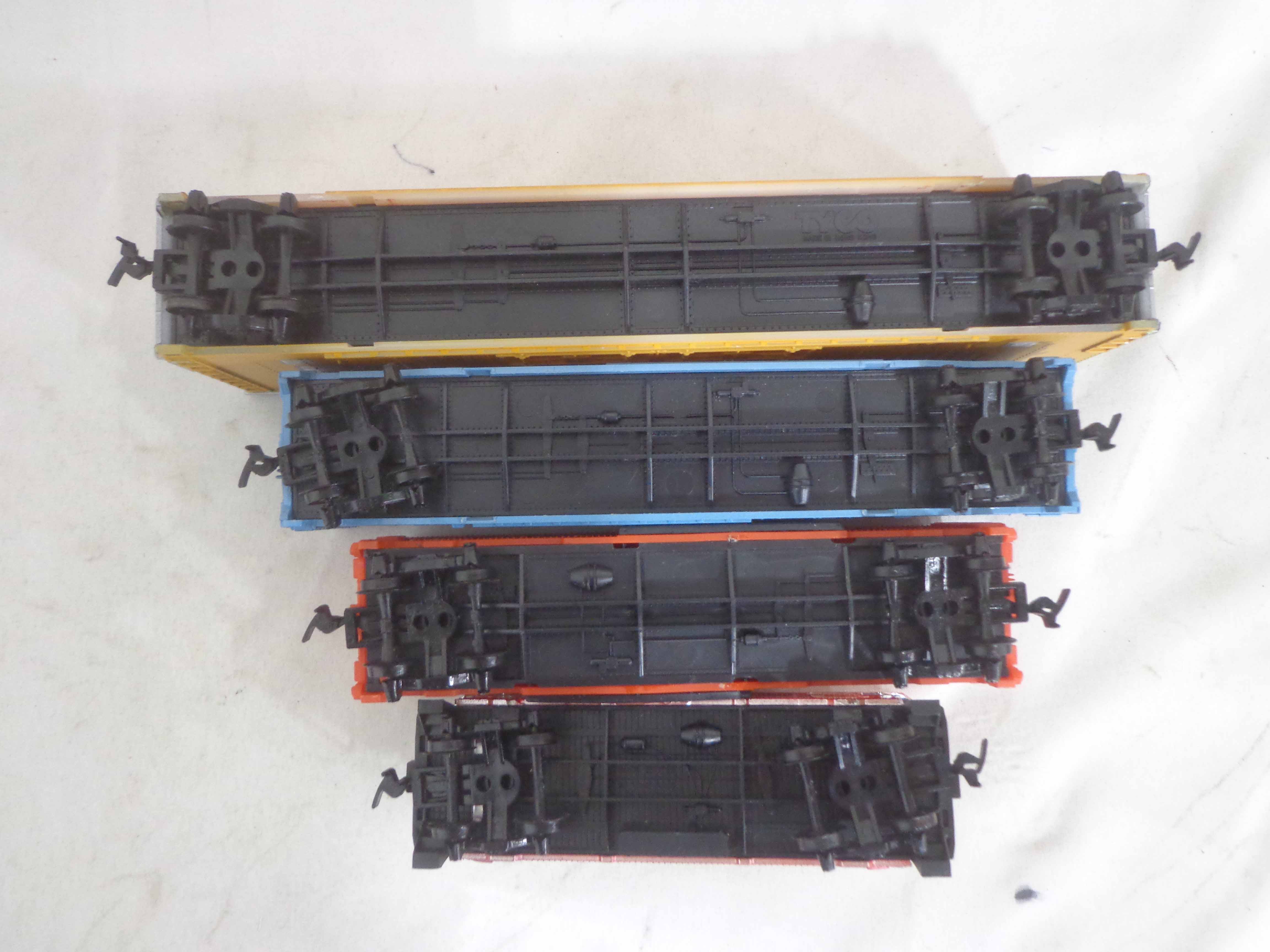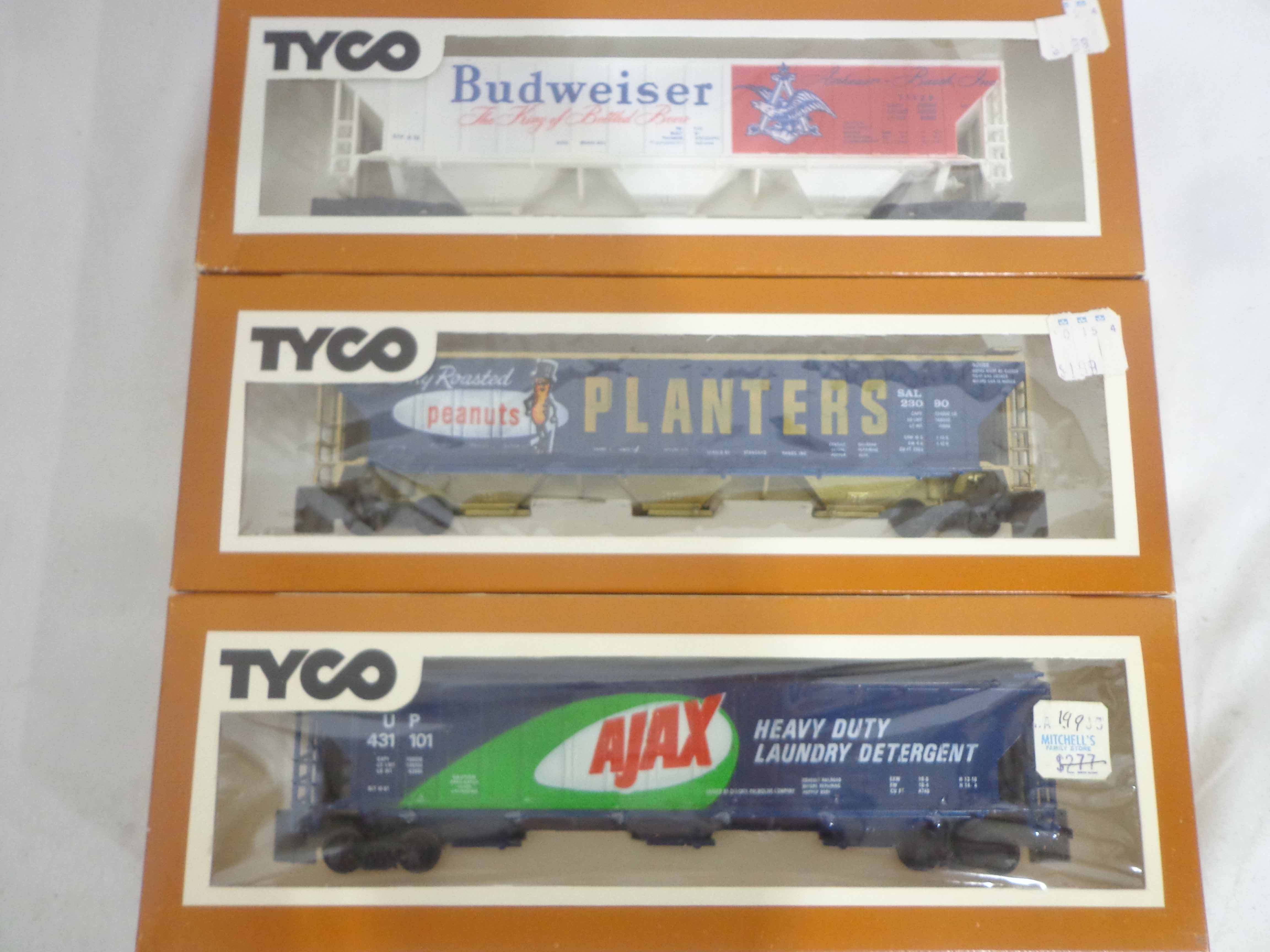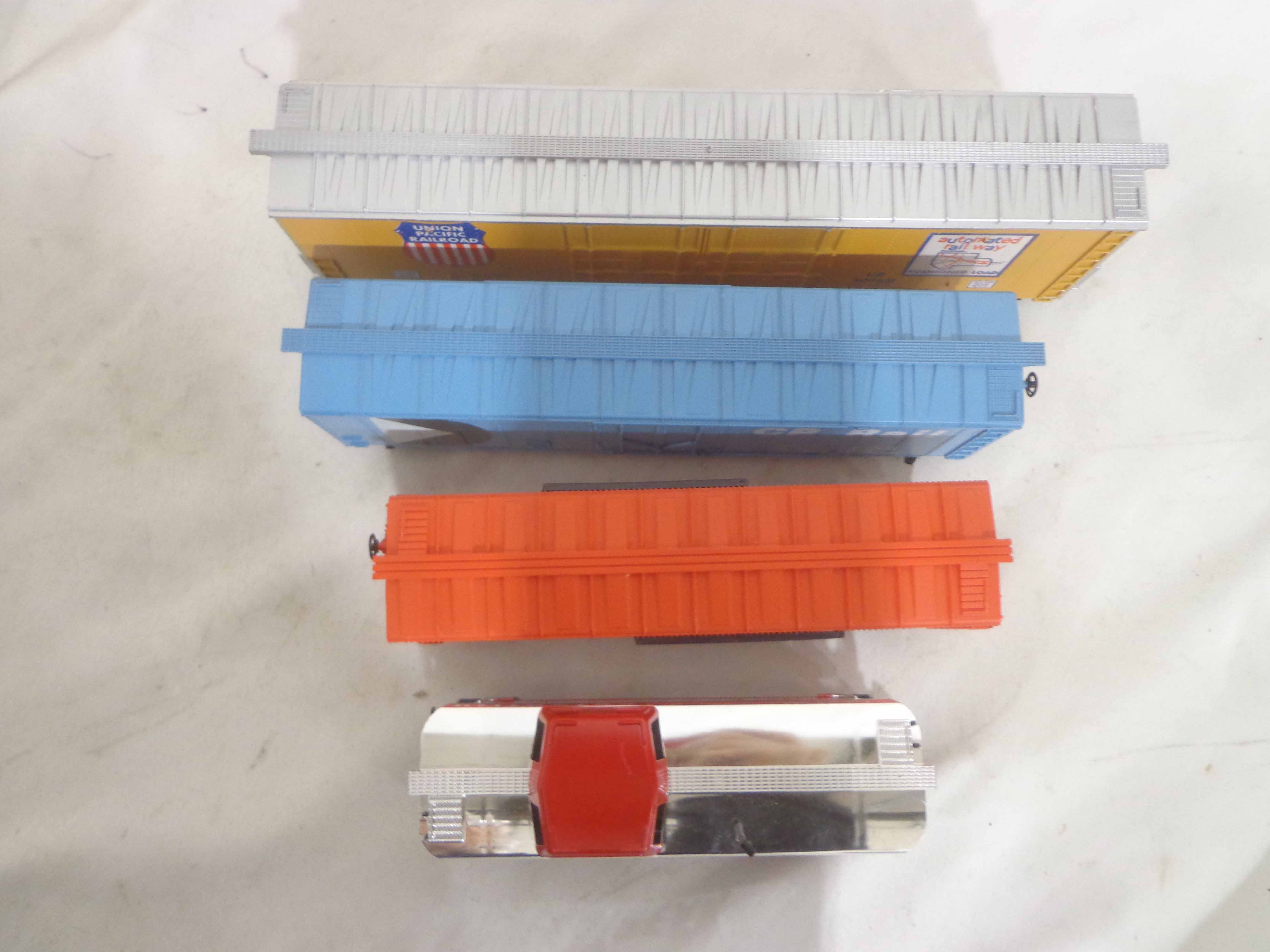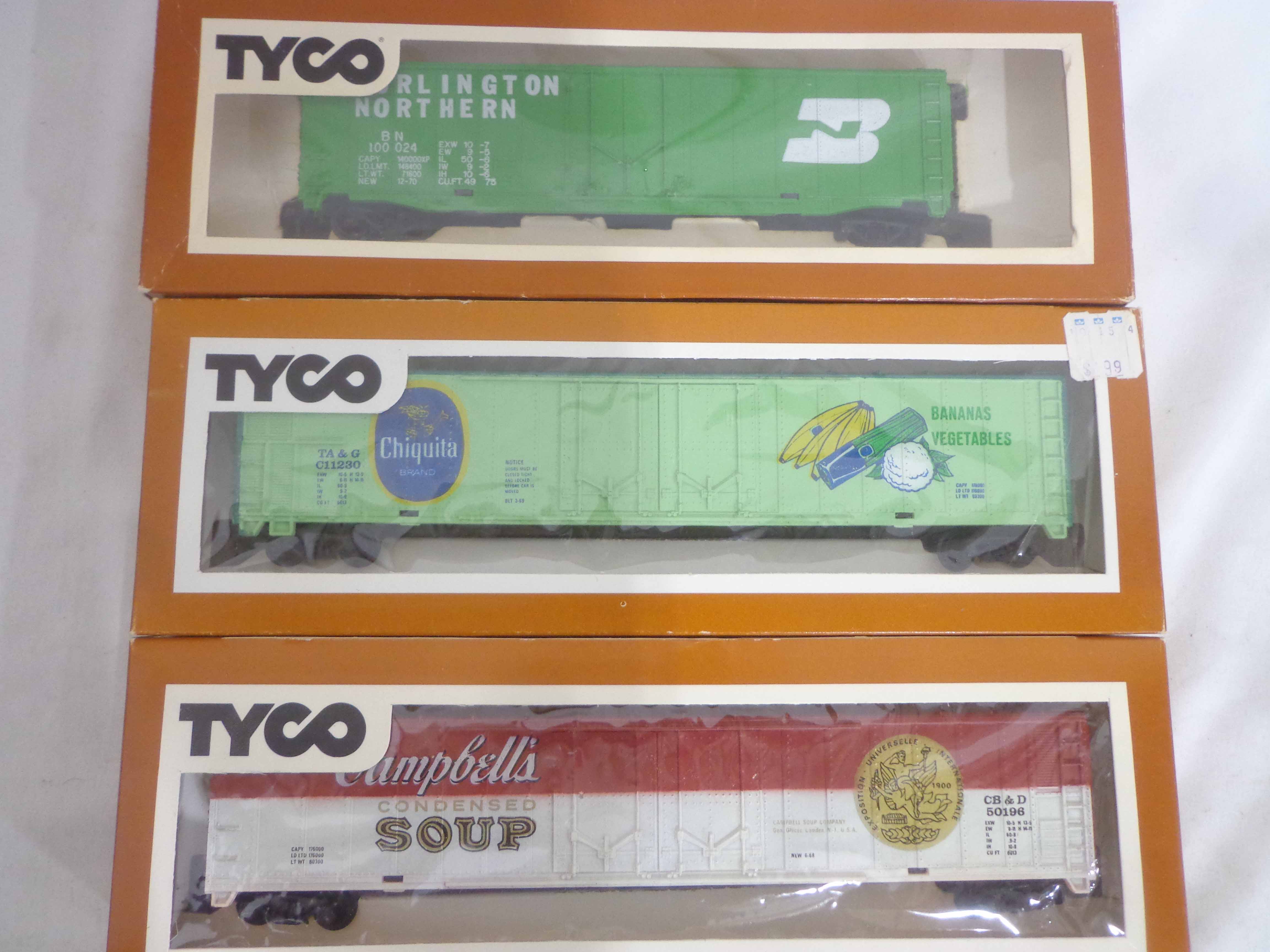 These are the Tyco HO Gauge #4301 Silver Streak Engine and twenty-five Assorted Freight Cars from the 1970s. Original Boxes. Examine closely; what is pictured is what you will receive. Please add $45.00 for US-48 Shipping and Insurance (more west of the Mississippi).