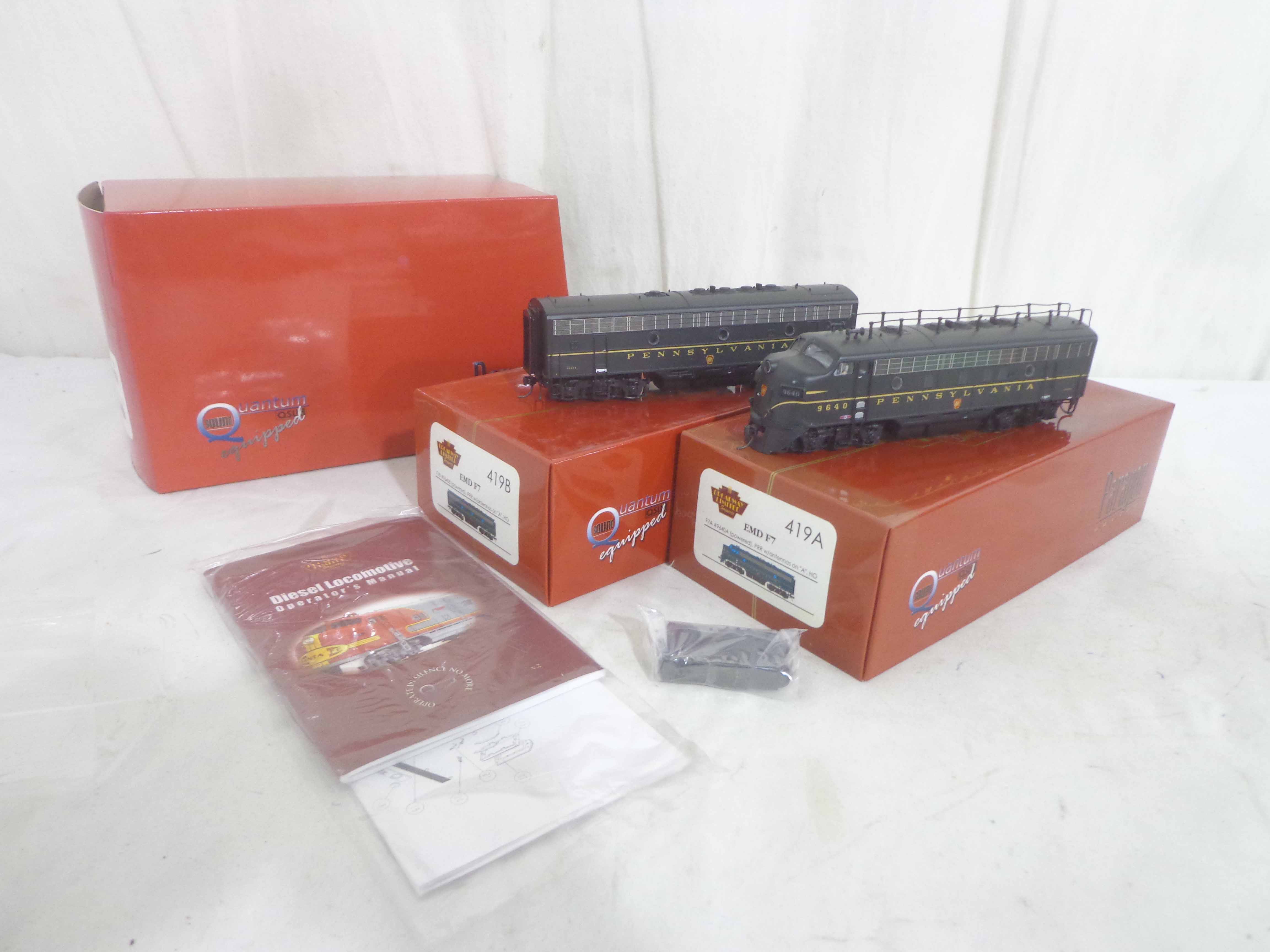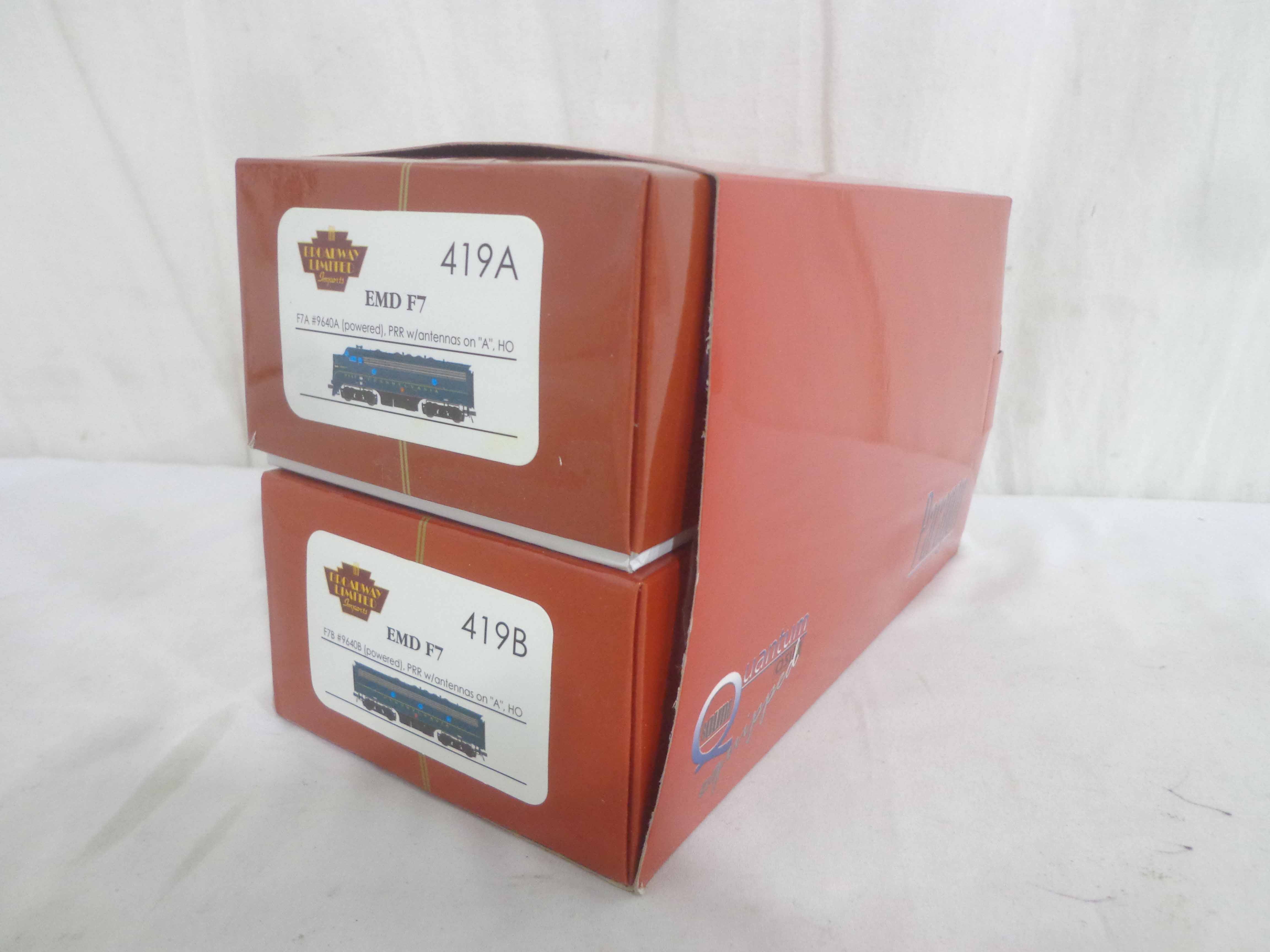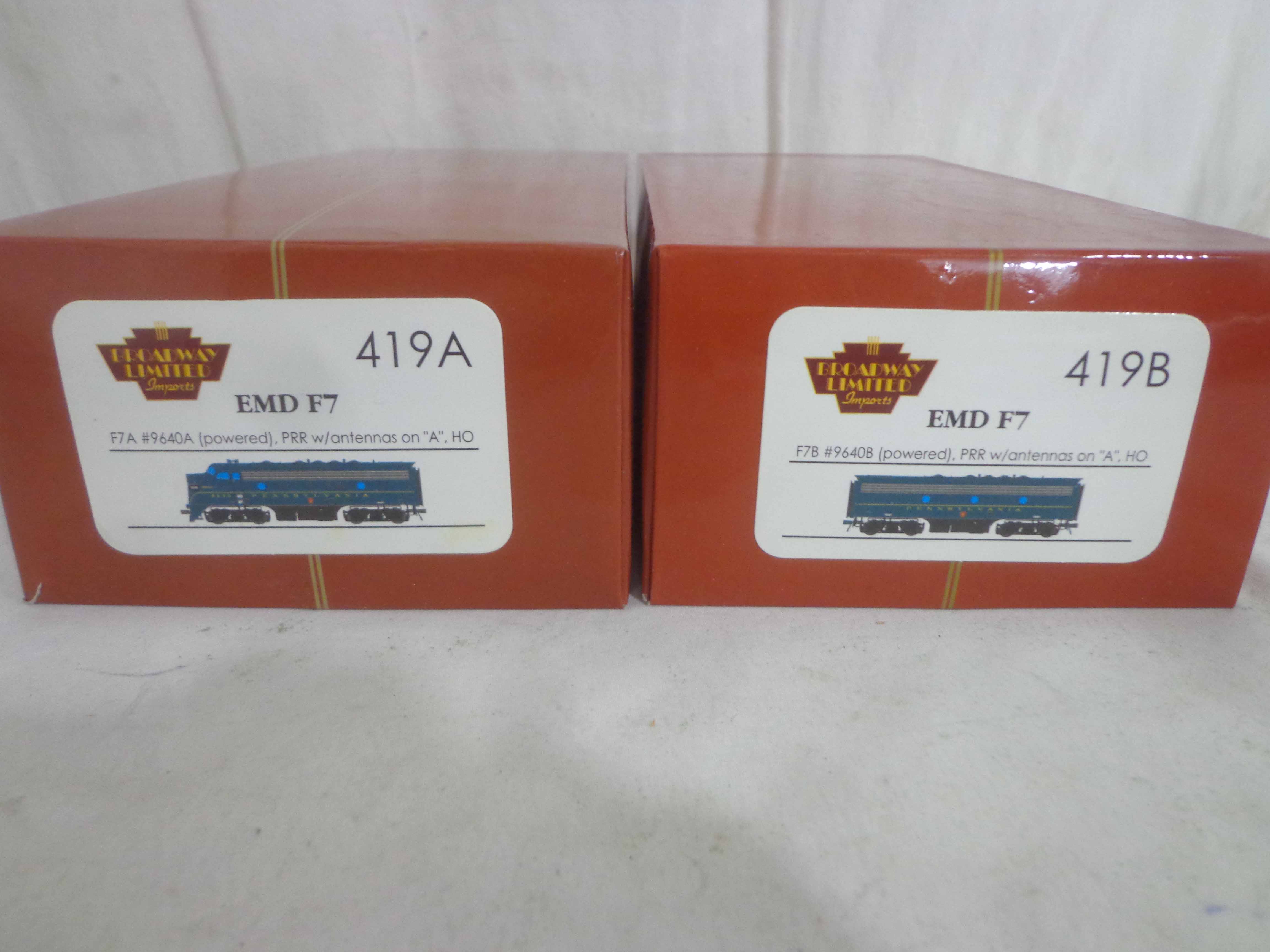 These are the Broadway Limited HO Gauge #419 EMD F7 AB Set (powered b unit). Original Boxes. Examine closely; what is pictured is what you will receive. Please add $30.00 for US-48 Shipping and Insurance (more west of the Mississippi).