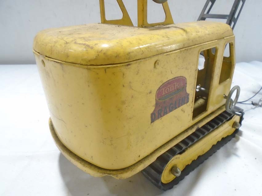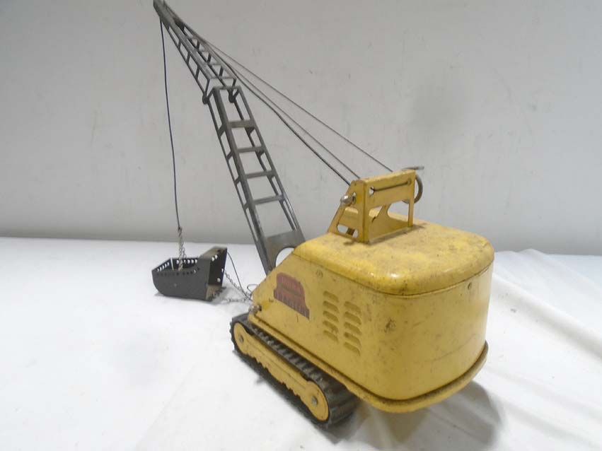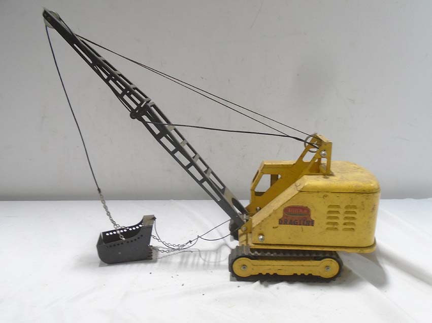 This is the 1964 Tonka #154 Dragline Crane (19"L x 16"H x 5"W). No Box. Examine closely; what is pictured is what you will receive. Please add $35.00 for US-48 Shipping and Insurance (more west of the Mississippi).