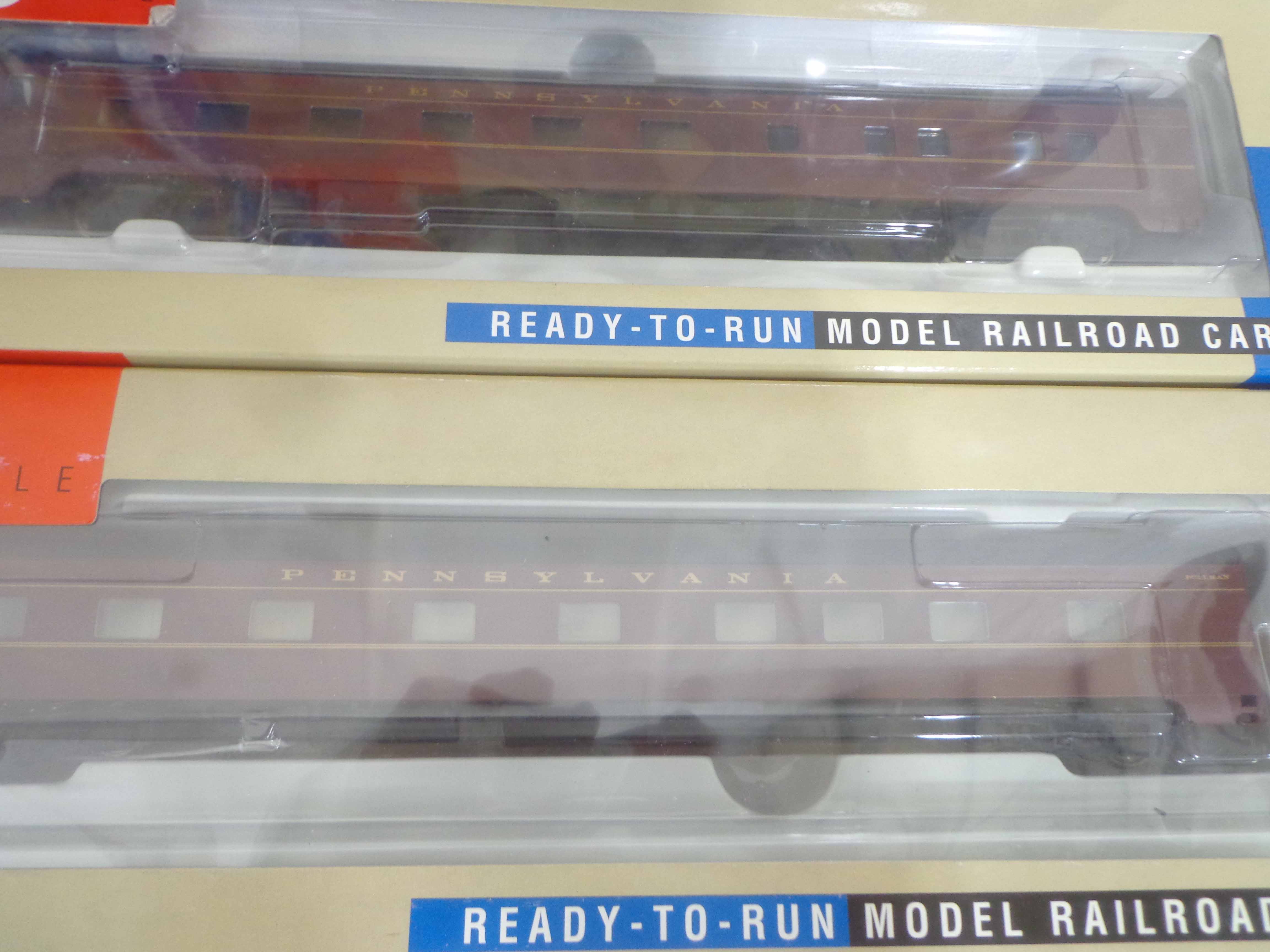 These are the Walthers HO Gauge #932-4655/932-5831/932-5833/932-5876/932-6707/932-6707/932-6747/932-6747/932-6767/932-6767/932-6767/932-6827 Pennsylvania Passenger Cars. Original Boxes. Examine closely; what is pictured is what you will receive. Please add $45.00 for US-48 Shipping and Insurance (more west of the Mississippi).