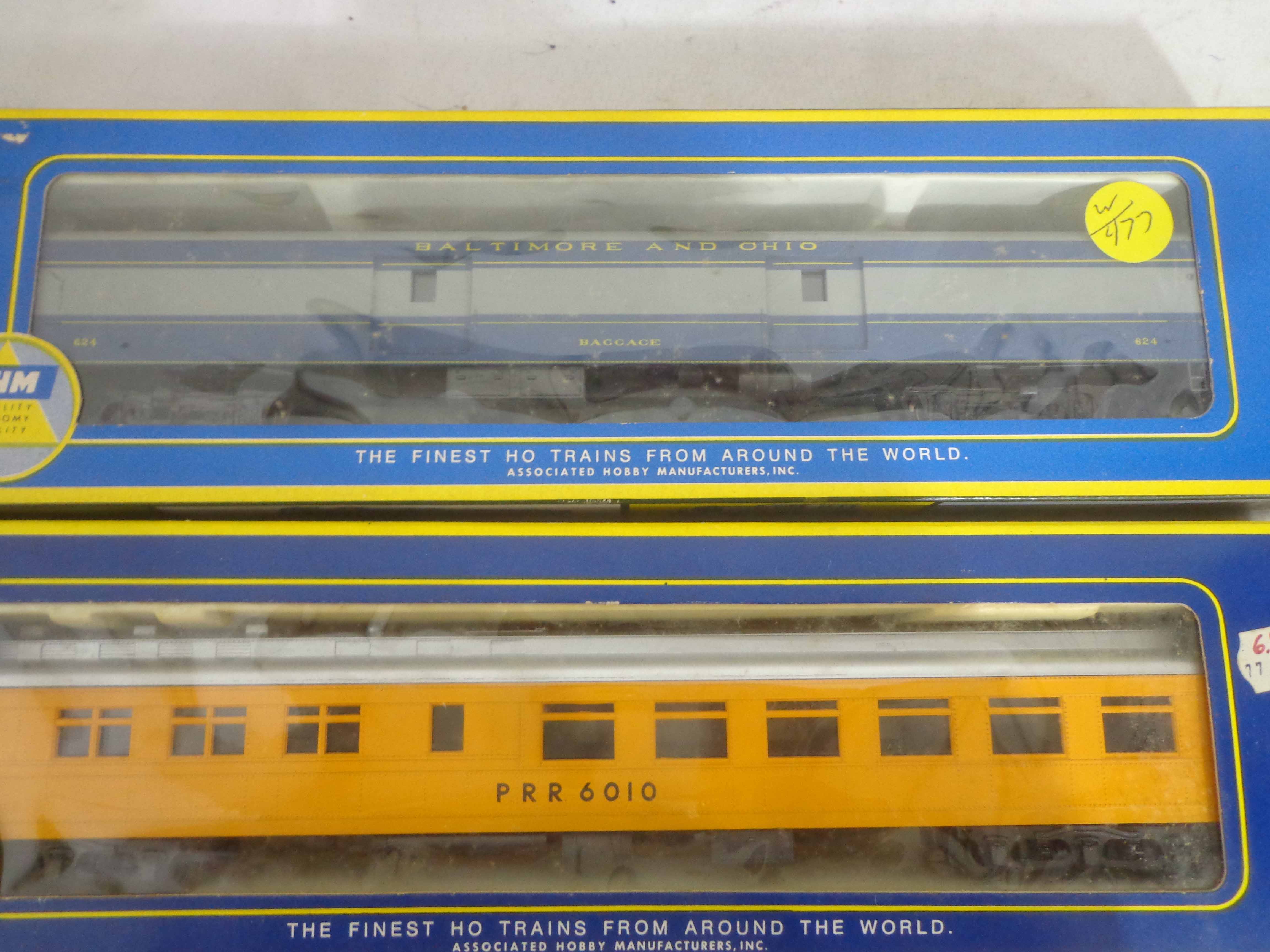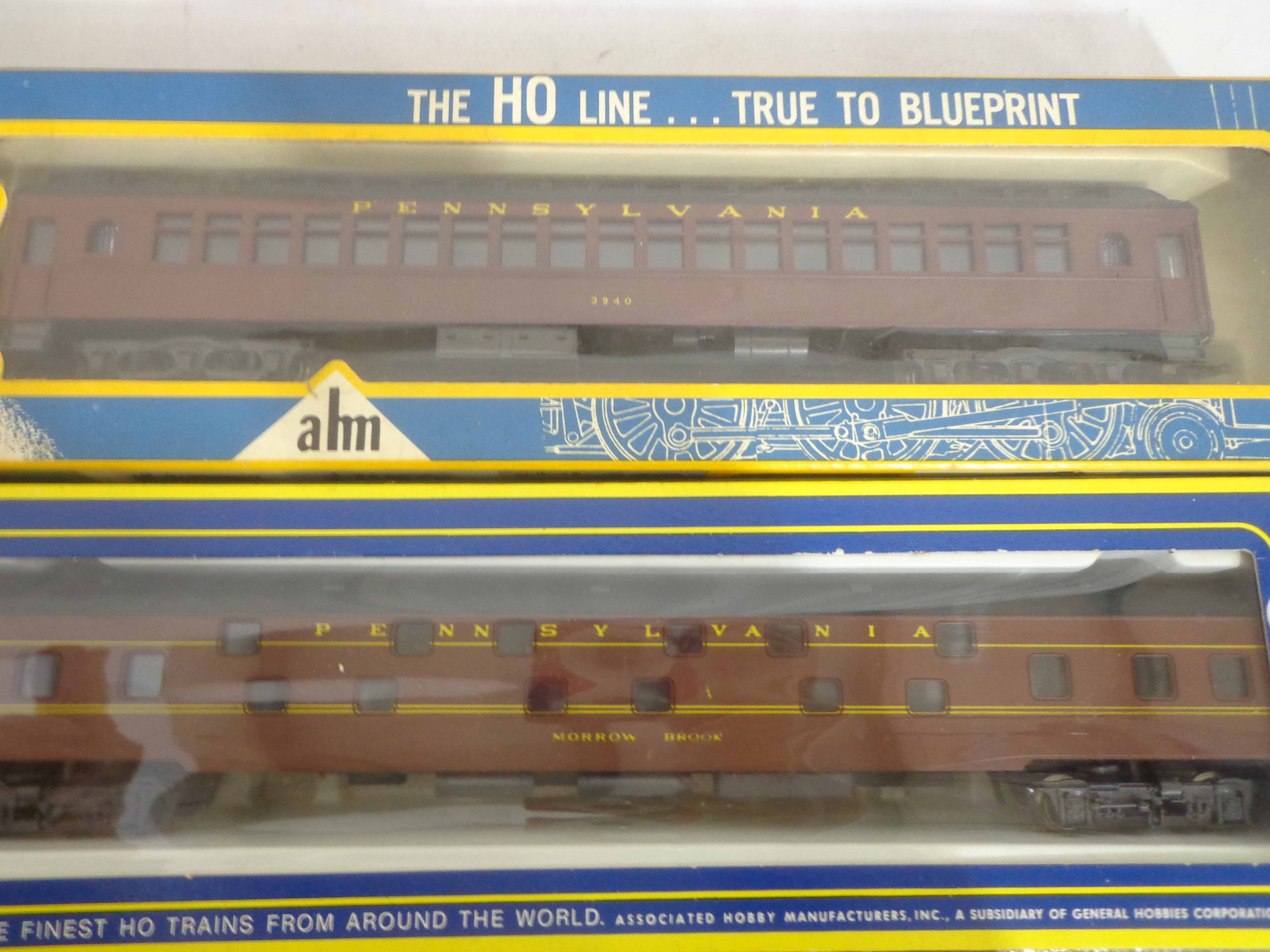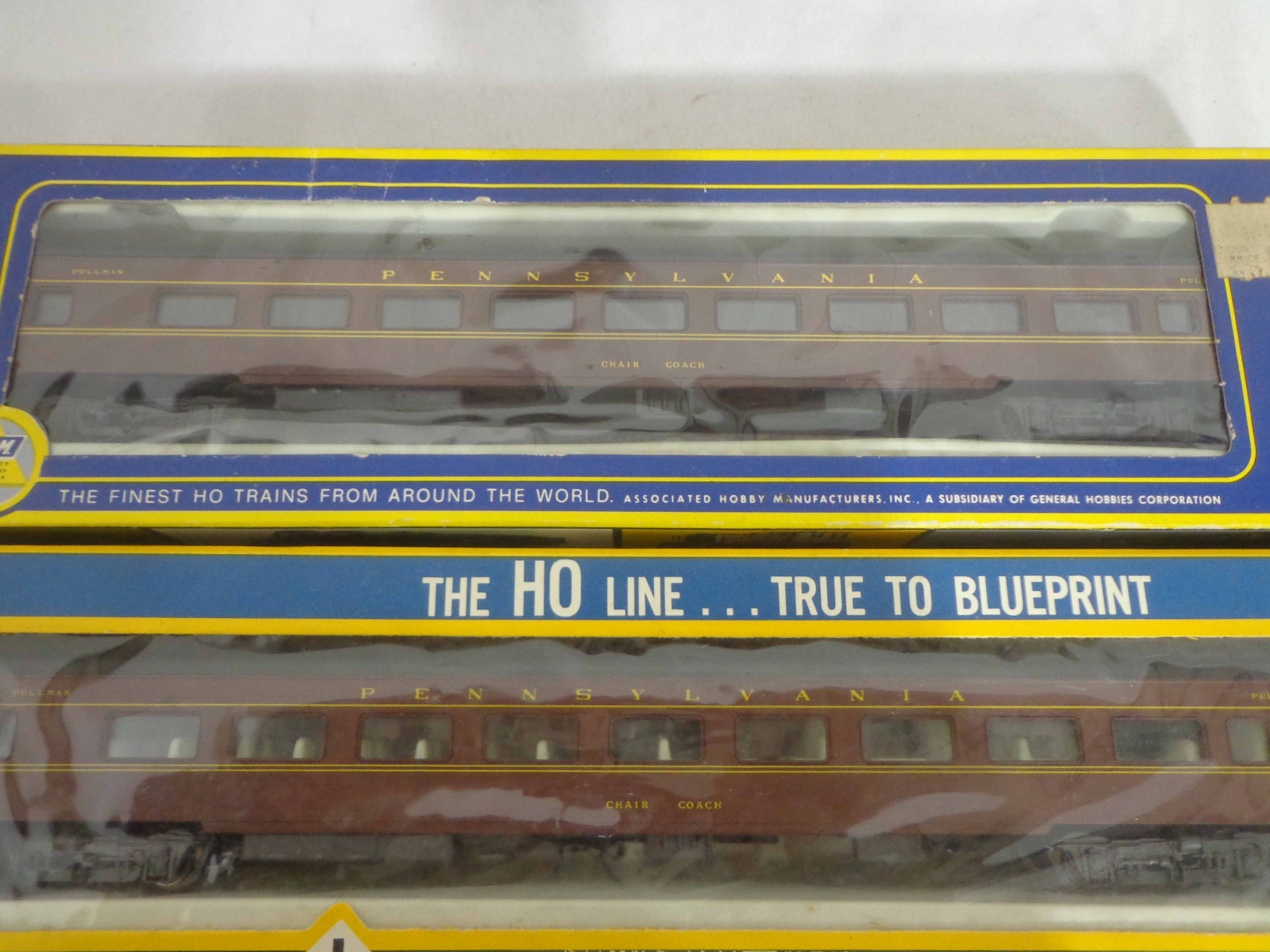 These are the AHM HO Gauge #6442/6443/6444 Northern Pacific Passenger Cars, #6240/6284-P/6271/6272/6263/6274/6404-P/6204-W Pennsylvania Passenger Cars and #6285 Baltimore and Ohio Passenger Car. Original Boxes. Examine closely; what is pictured is what you will receive. Please add $45.00 for US-48 Shipping and Insurance (more west of the Mississippi).