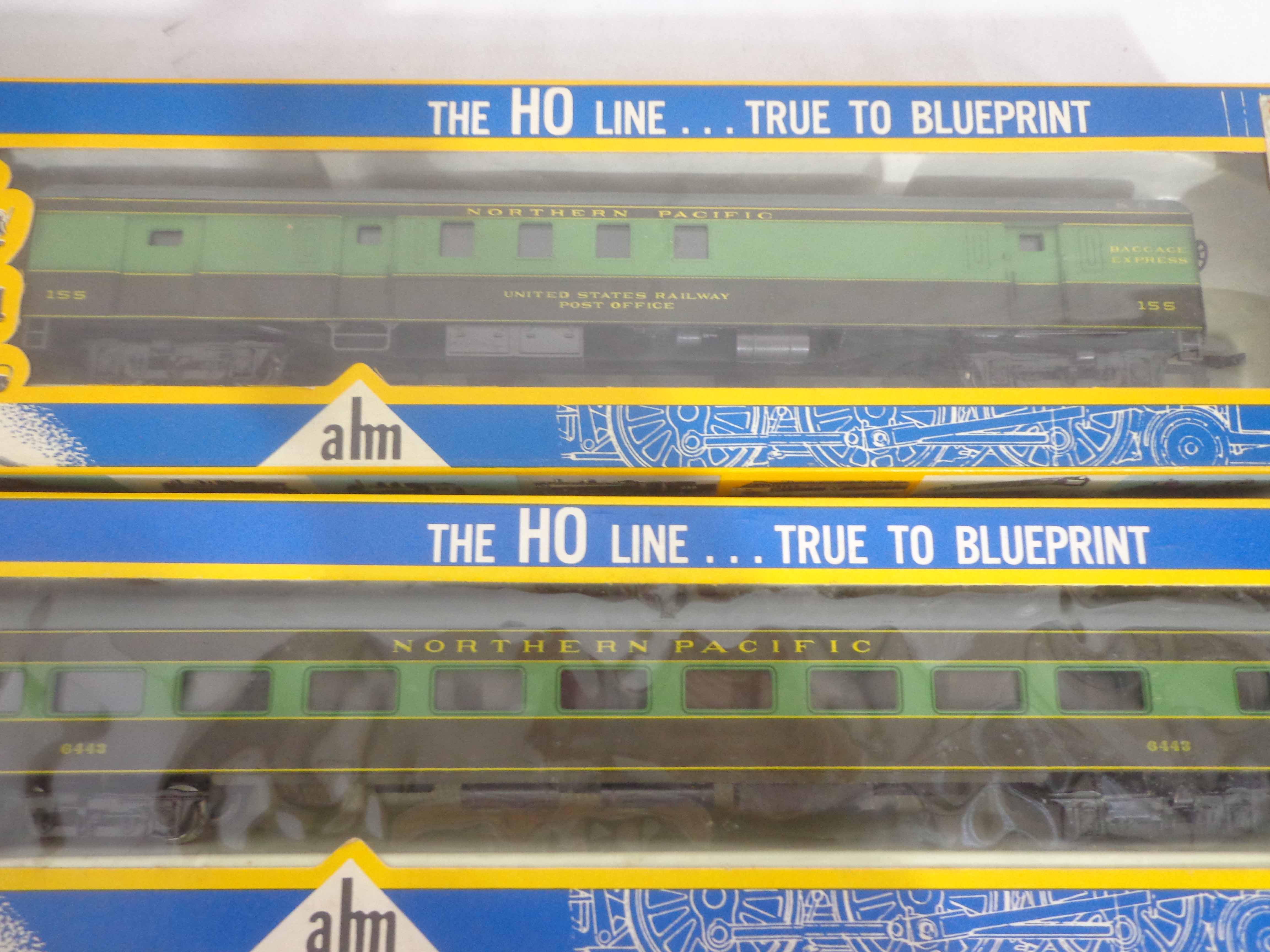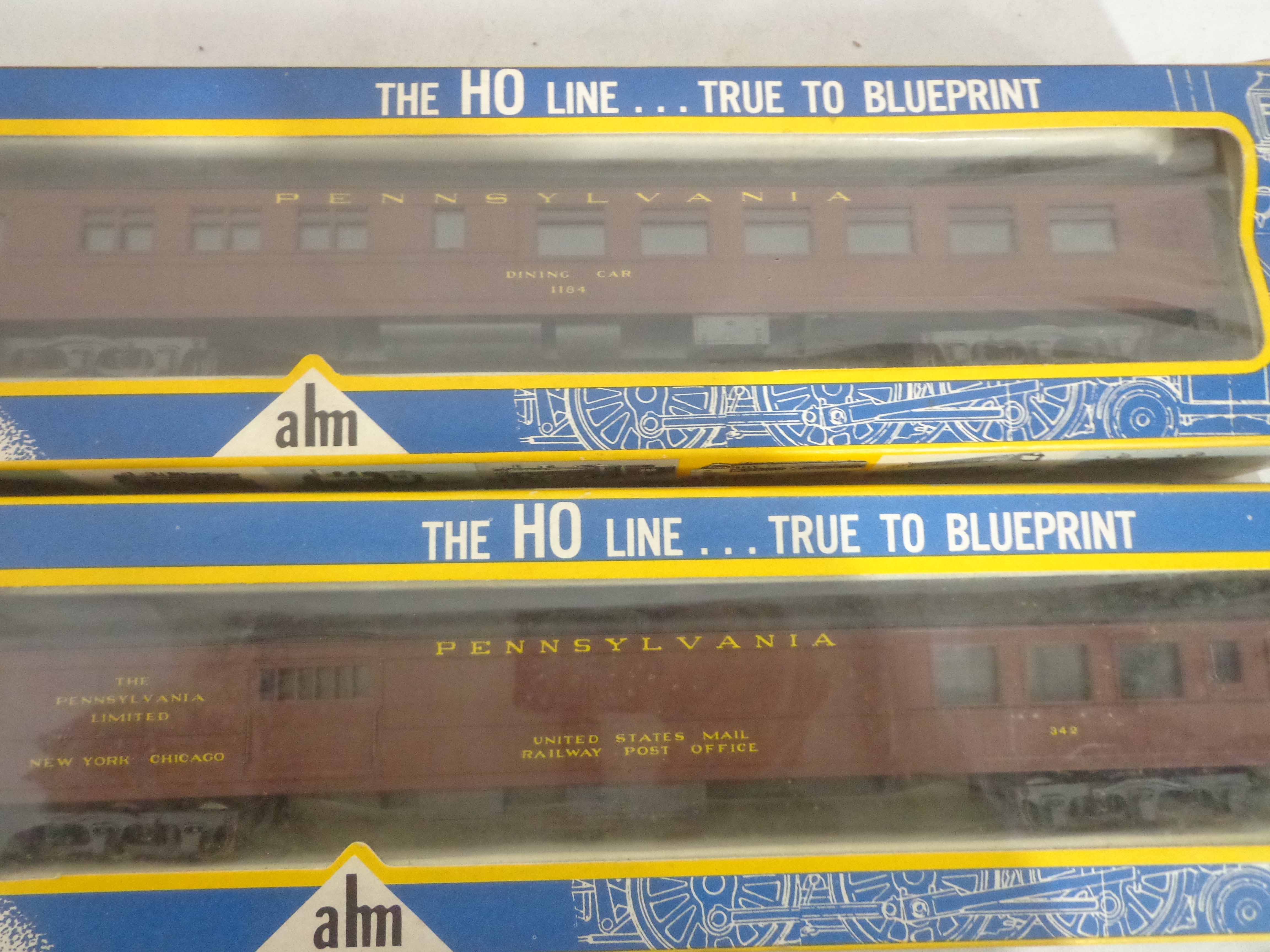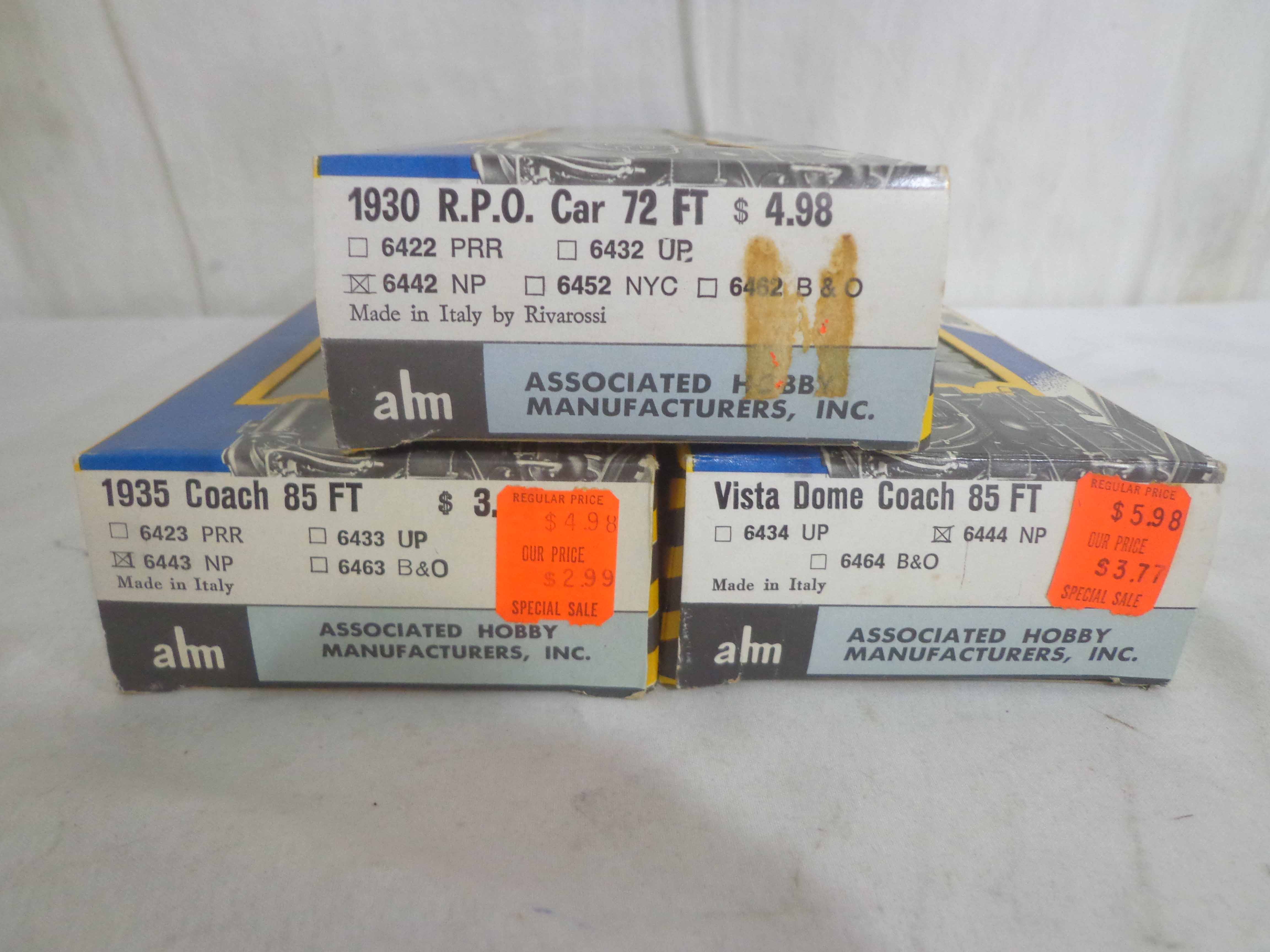 These are the AHM HO Gauge #6442/6443/6444 Northern Pacific Passenger Cars, #6240/6284-P/6271/6272/6263/6274/6404-P/6204-W Pennsylvania Passenger Cars and #6285 Baltimore and Ohio Passenger Car. Original Boxes. Examine closely; what is pictured is what you will receive. Please add $45.00 for US-48 Shipping and Insurance (more west of the Mississippi).