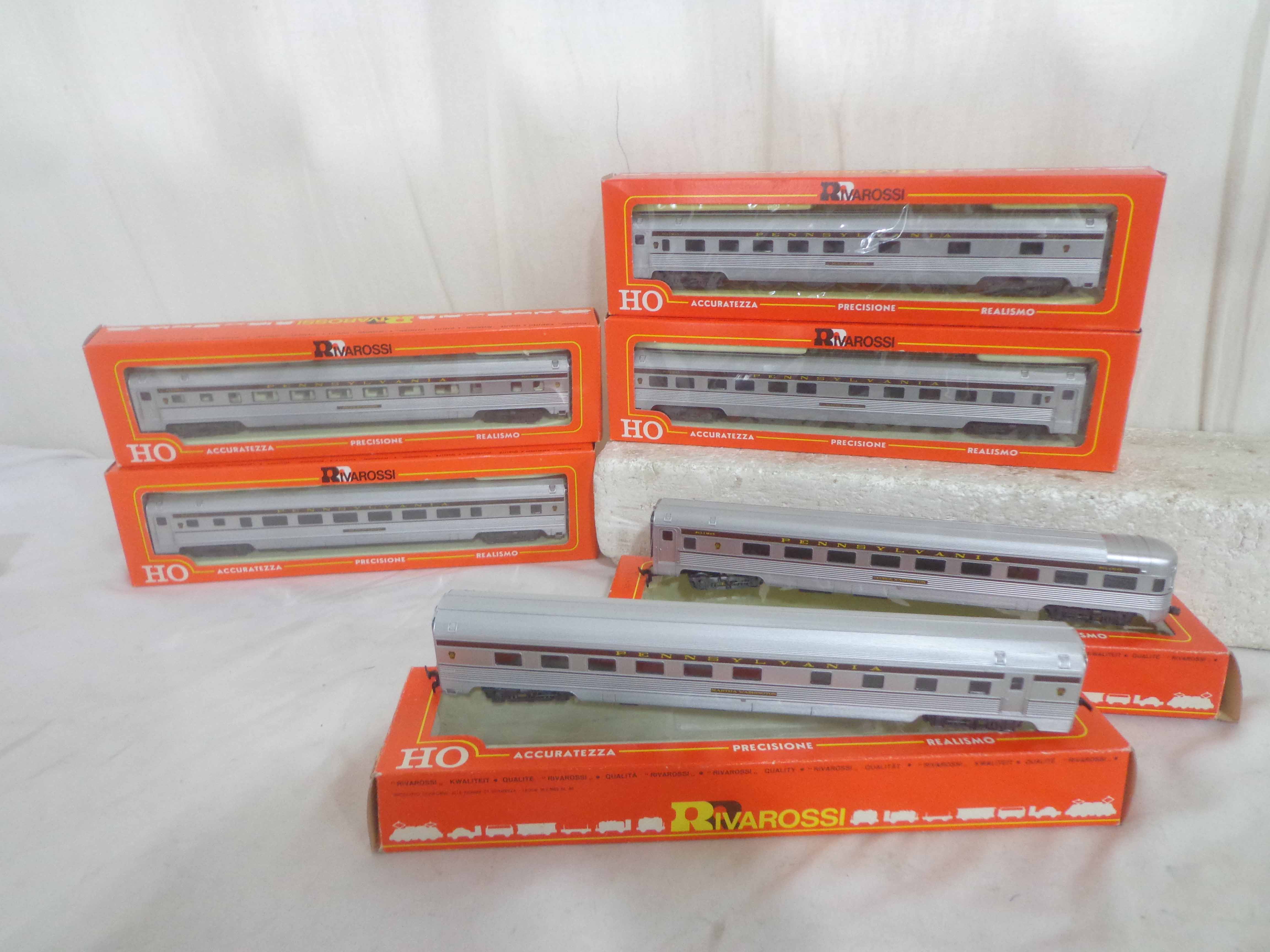 These are the Rivarossi HO Gauge #6730/6731/6731/6732/6732/6733 Pennsylvania Passenger Cars. Original Boxes. Examine closely; what is pictured is what you will receive. Please add $35.00 for US-48 Shipping and Insurance (more west of the Mississippi).