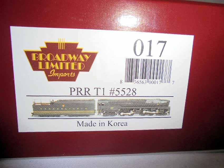 These are the #017 PRR T1 5528 Locomotive & Tender that Broadway Limited Imports made in HO Gauge some time in the past. Original Box. Examine closely; what is pictured is what you will receive. Please add $30.00 for US-48 Shipping and Insurance (more west of the Mississippi).