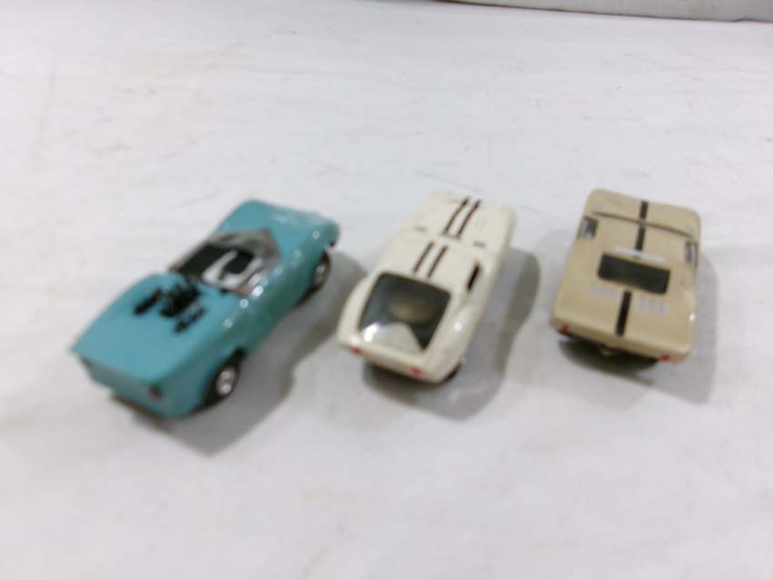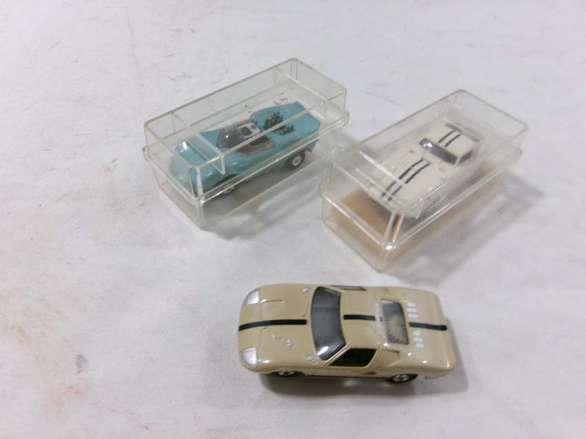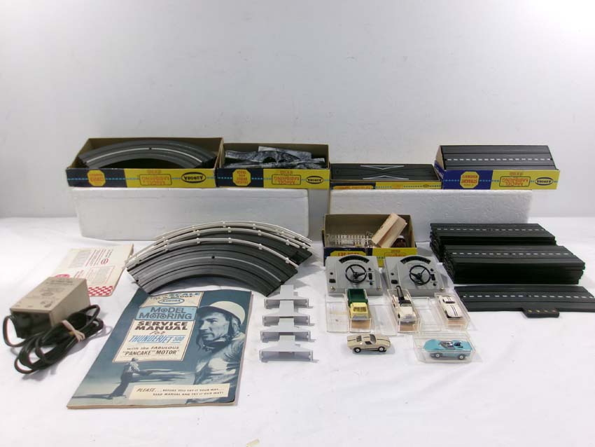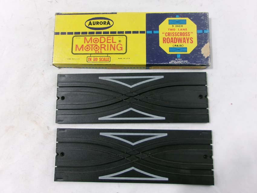 These are the Aurora Model Motoring 1:64 (HO) Scale Assorted Cars, Track, Controllers, Power Pack, Guardrail, Trestles, Joiners & Locks and Paperwork. Five Original Boxes. Examine closely; what is pictured is what you will receive. Please add $50.00 for US-48 Shipping and Insurance (more west of the Mississippi).
