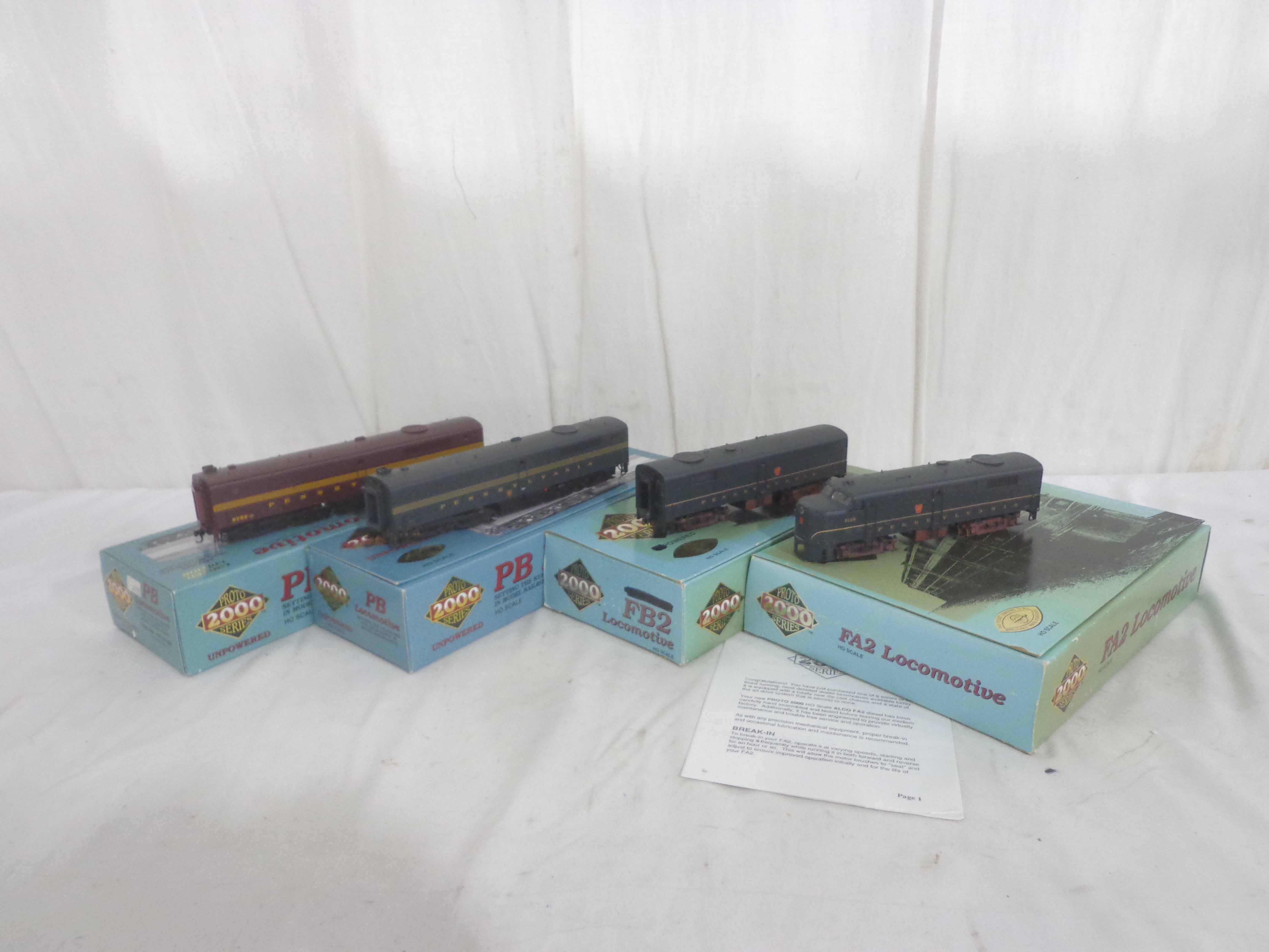 These are the Life-Like HO Gauge #9628 Pennsylvania Non-Powered Engine, #8376 Pennsylvania Powered B Unit and #21669/21686 Pennsylvania B Units. Three Original Boxes. Examine closely; what is pictured is what you will receive. Please add $40.00 for US-48 Shipping and Insurance (more west of the Mississippi).