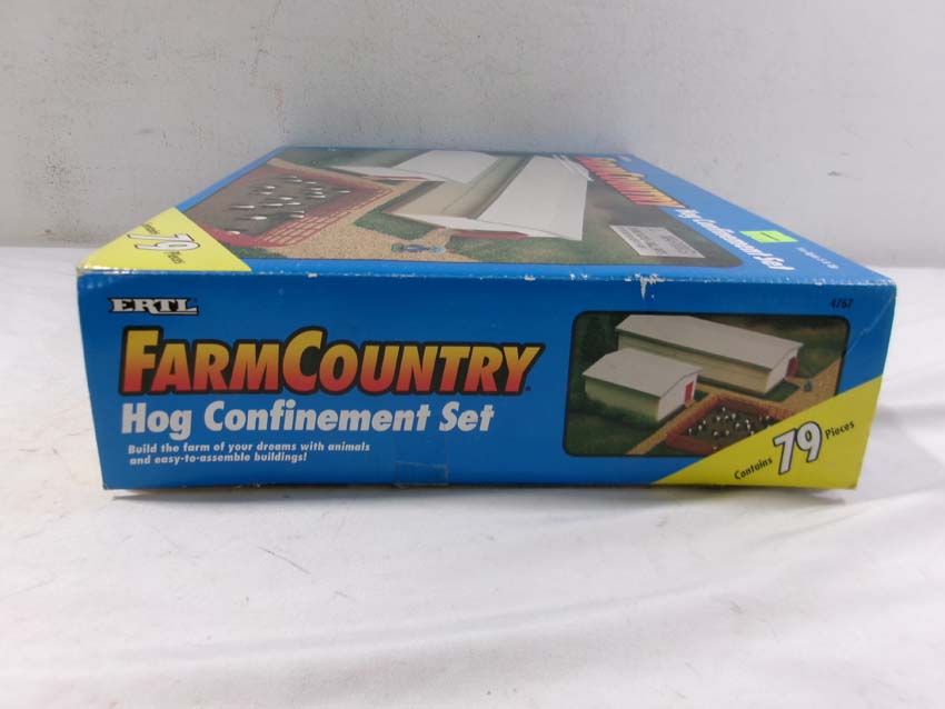 These are the Ertl 1:64 Scale #4767 Farm Country Hog Confinement Set and #37009 Farm Toy Playset. Original Boxes. Examine closely; what is pictured is what you will receive. Please add $40.00 for US-48 Shipping and Insurance (more west of the Mississippi). |