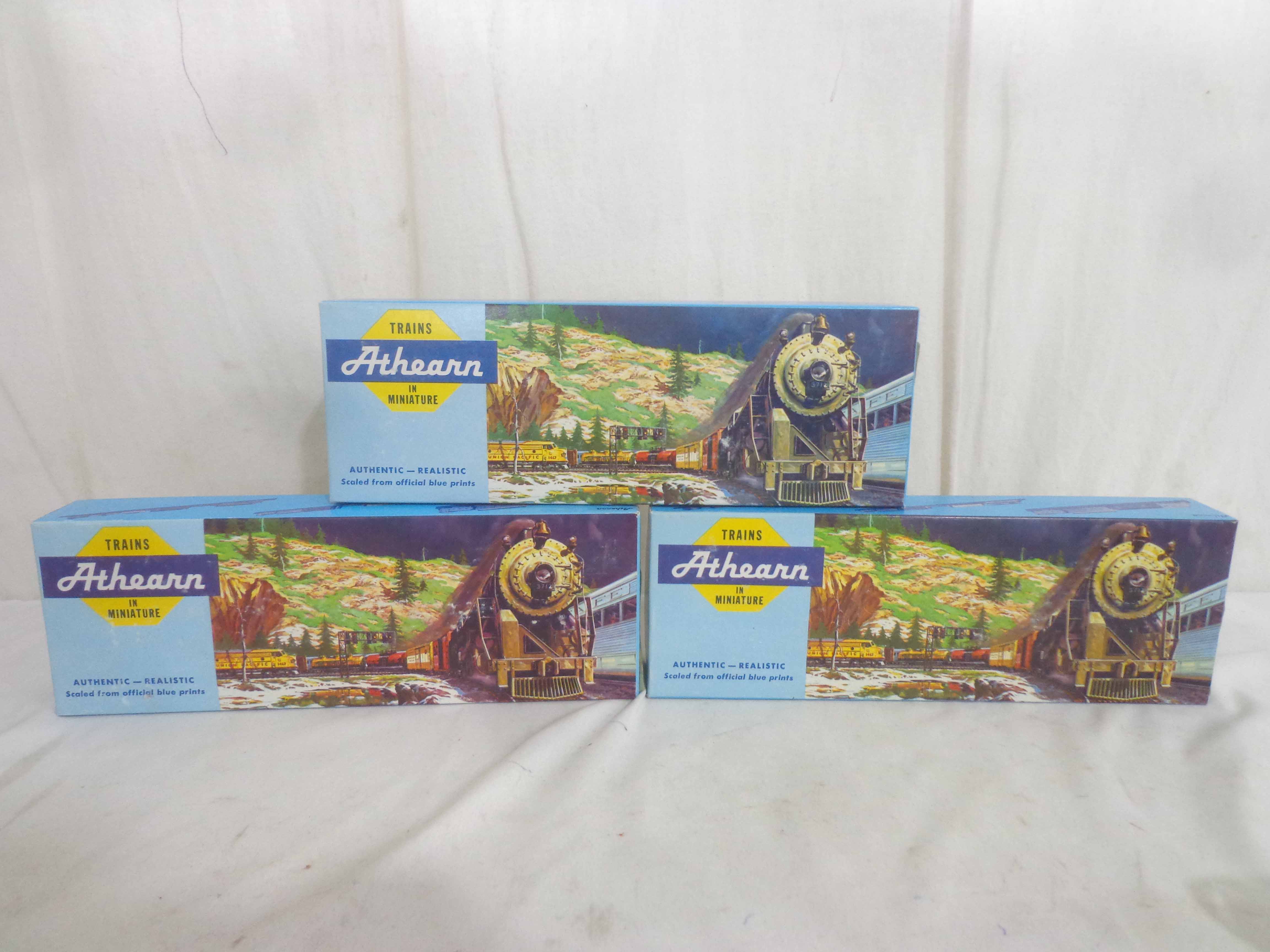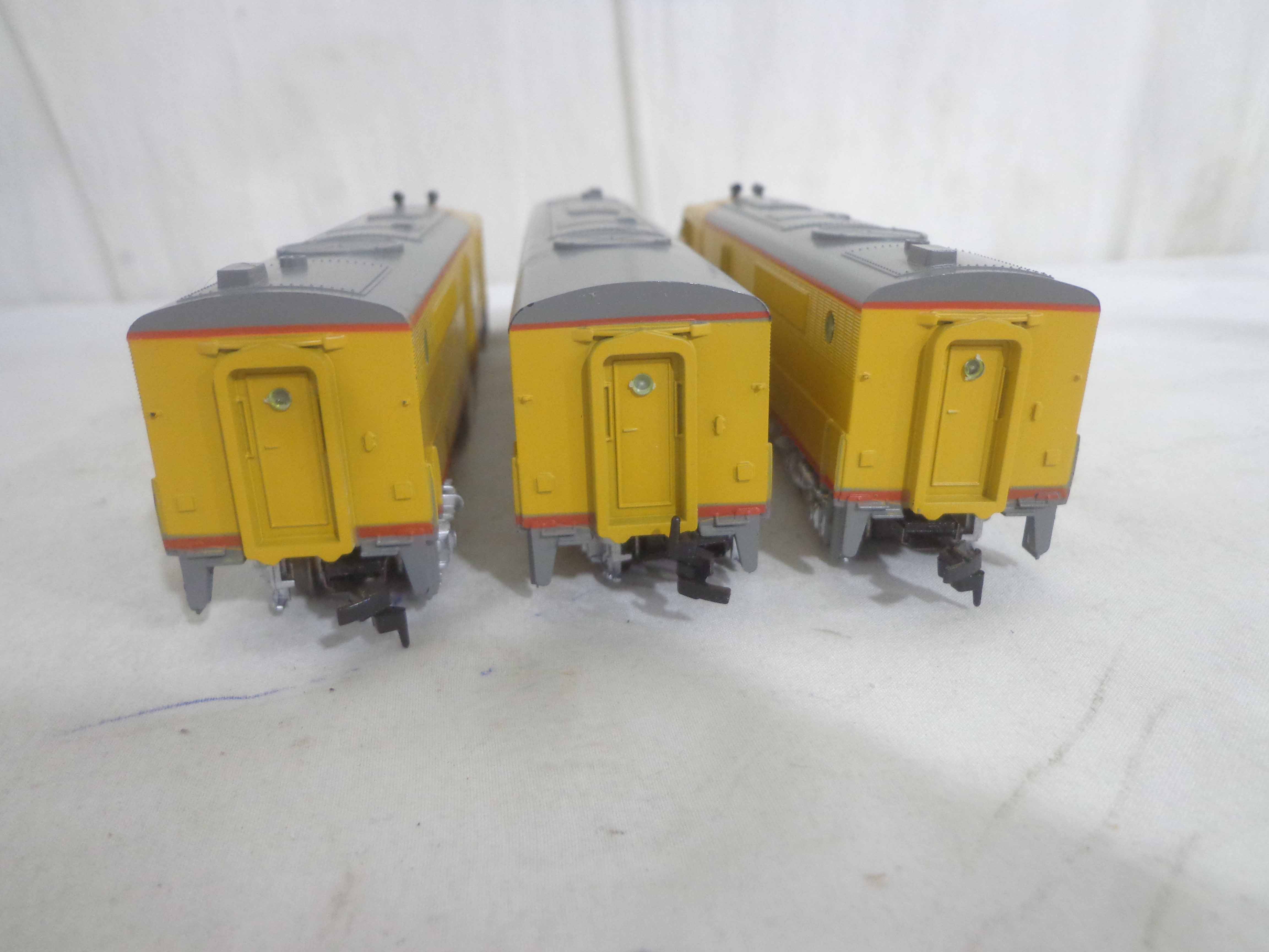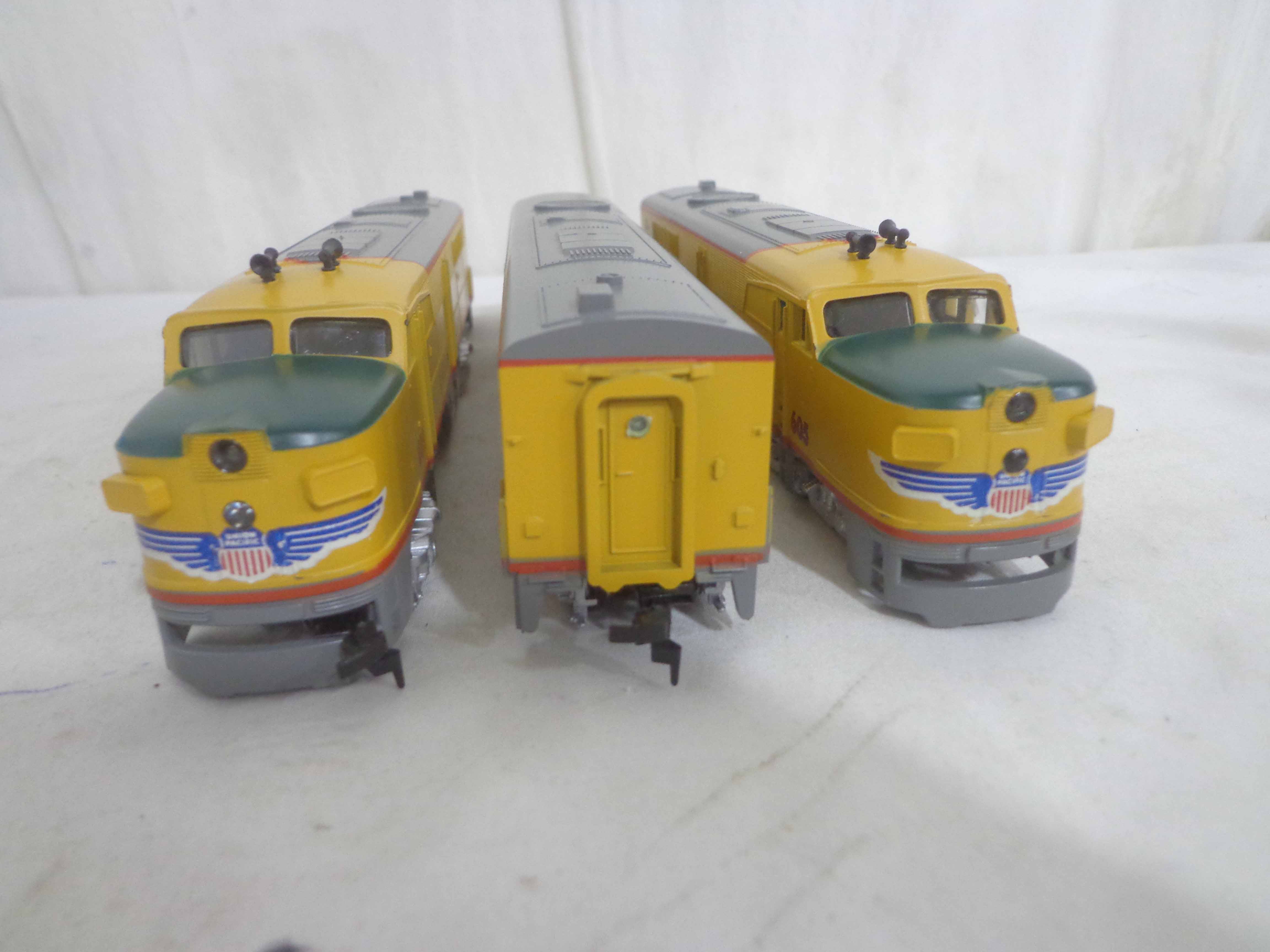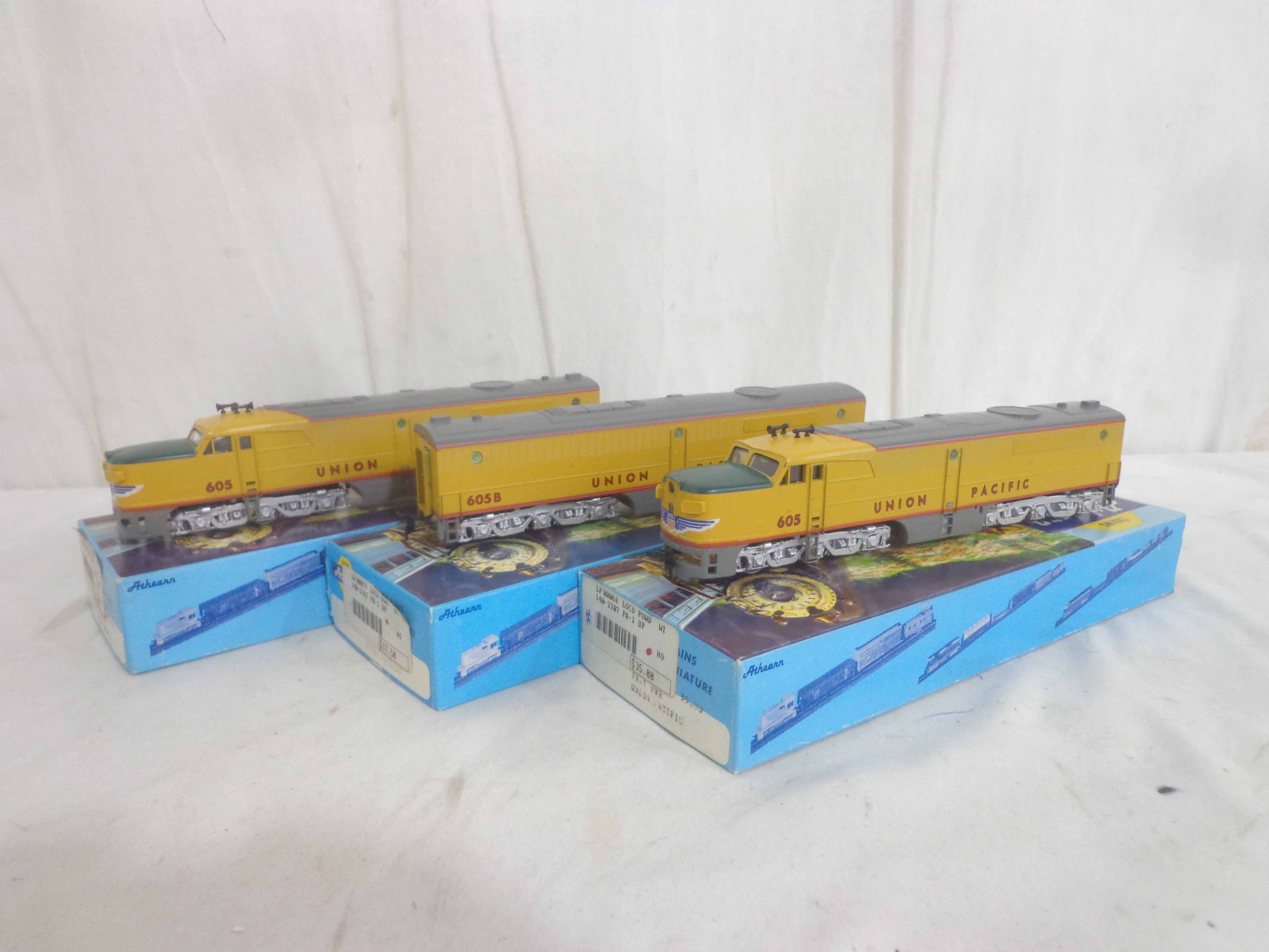 These are the Athearn HO Gauge two #140-3307 Union Pacific PA-1 Powered Engines and #140-3367 Union Pacific B Unit. Original Boxes. Examine closely; what is pictured is what you will receive. Please add $35.00 for US-48 Shipping and Insurance (more west of the Mississippi). |