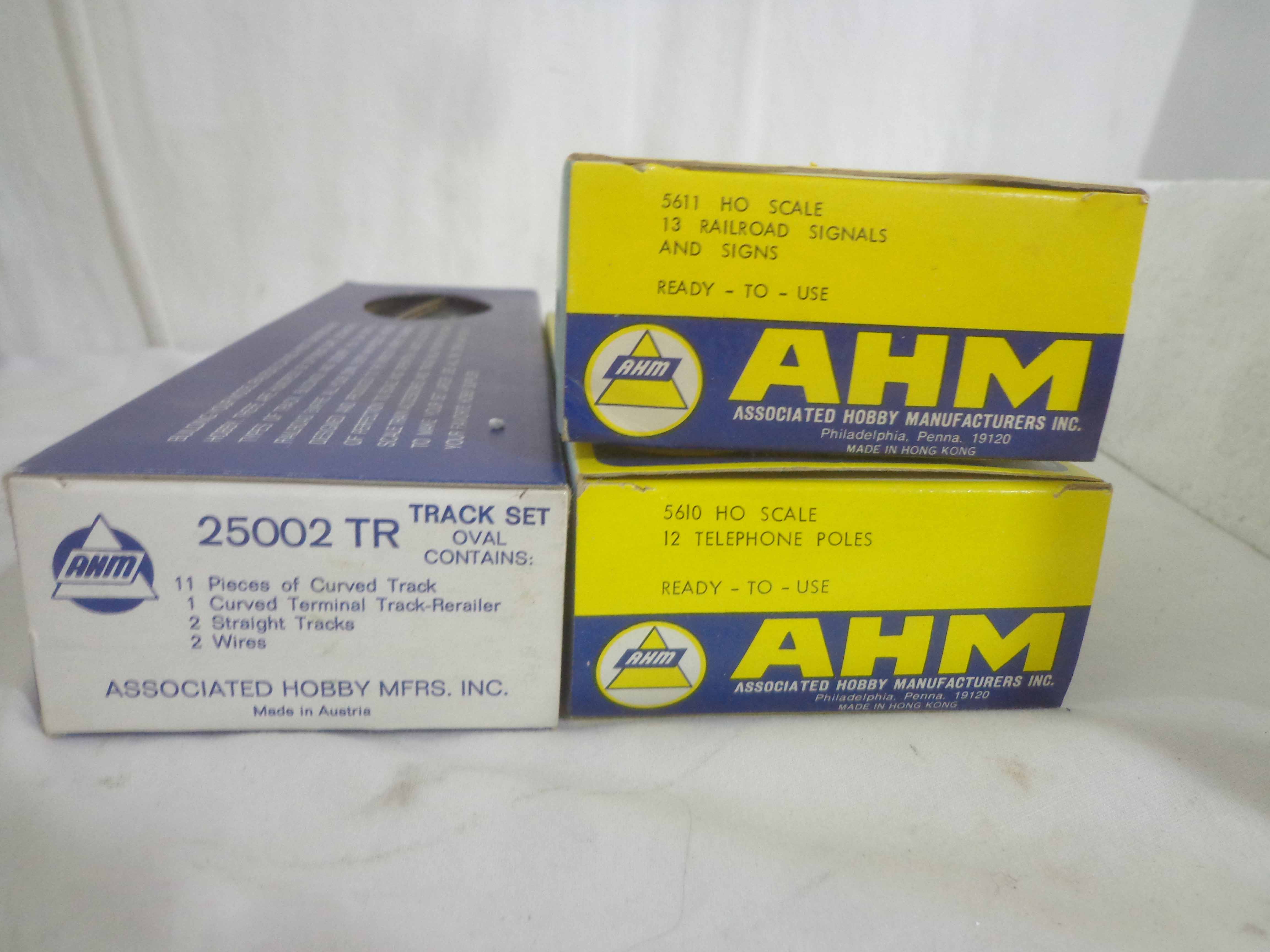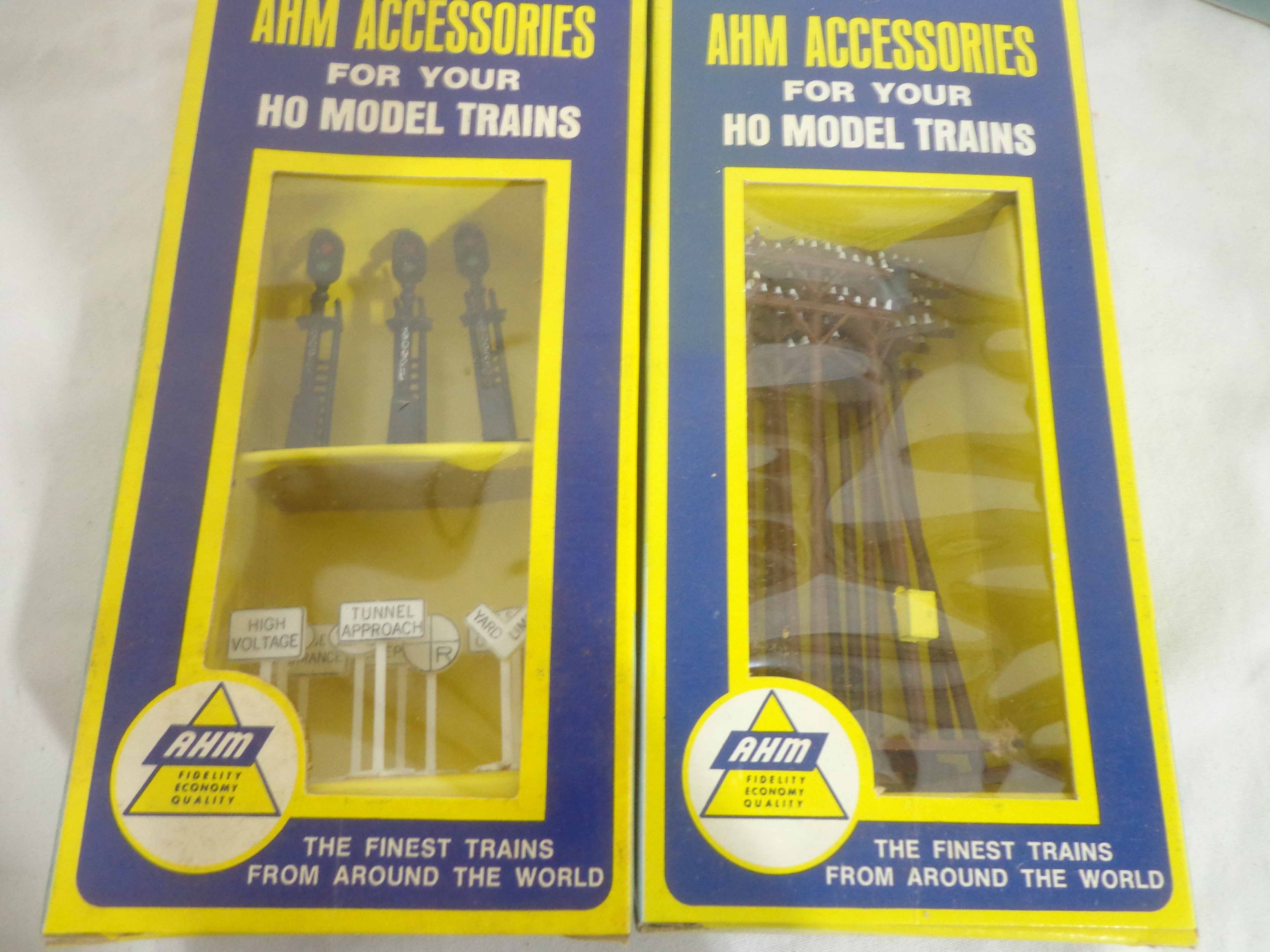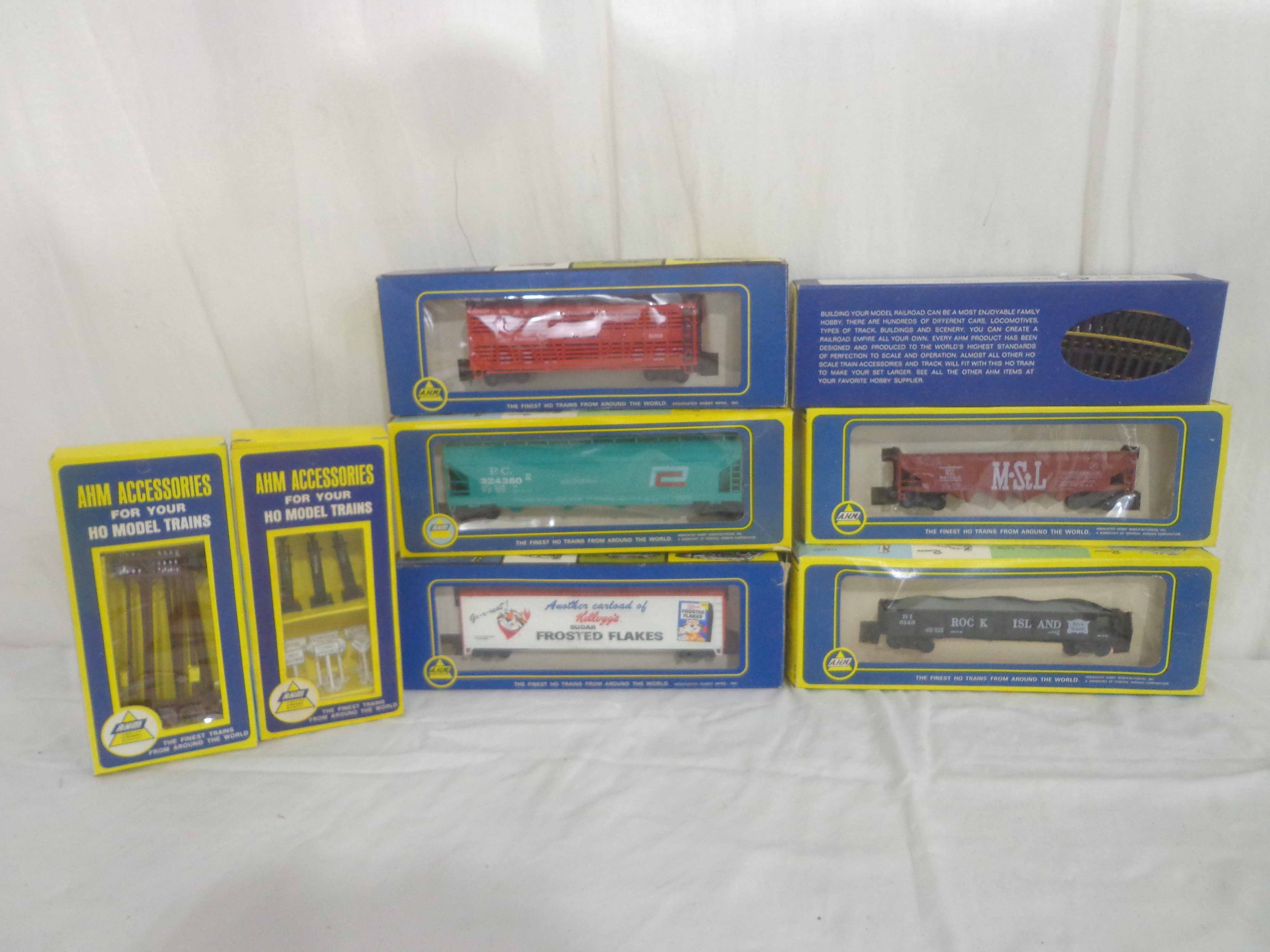 These are five Freight Cars and six Accessories that AHM made in HO Gauge. Eight Original Boxes. Examine closely; what is pictured is what you will receive. Please add $40.00 for US-48 Shipping and Insurance (more west of the Mississippi).