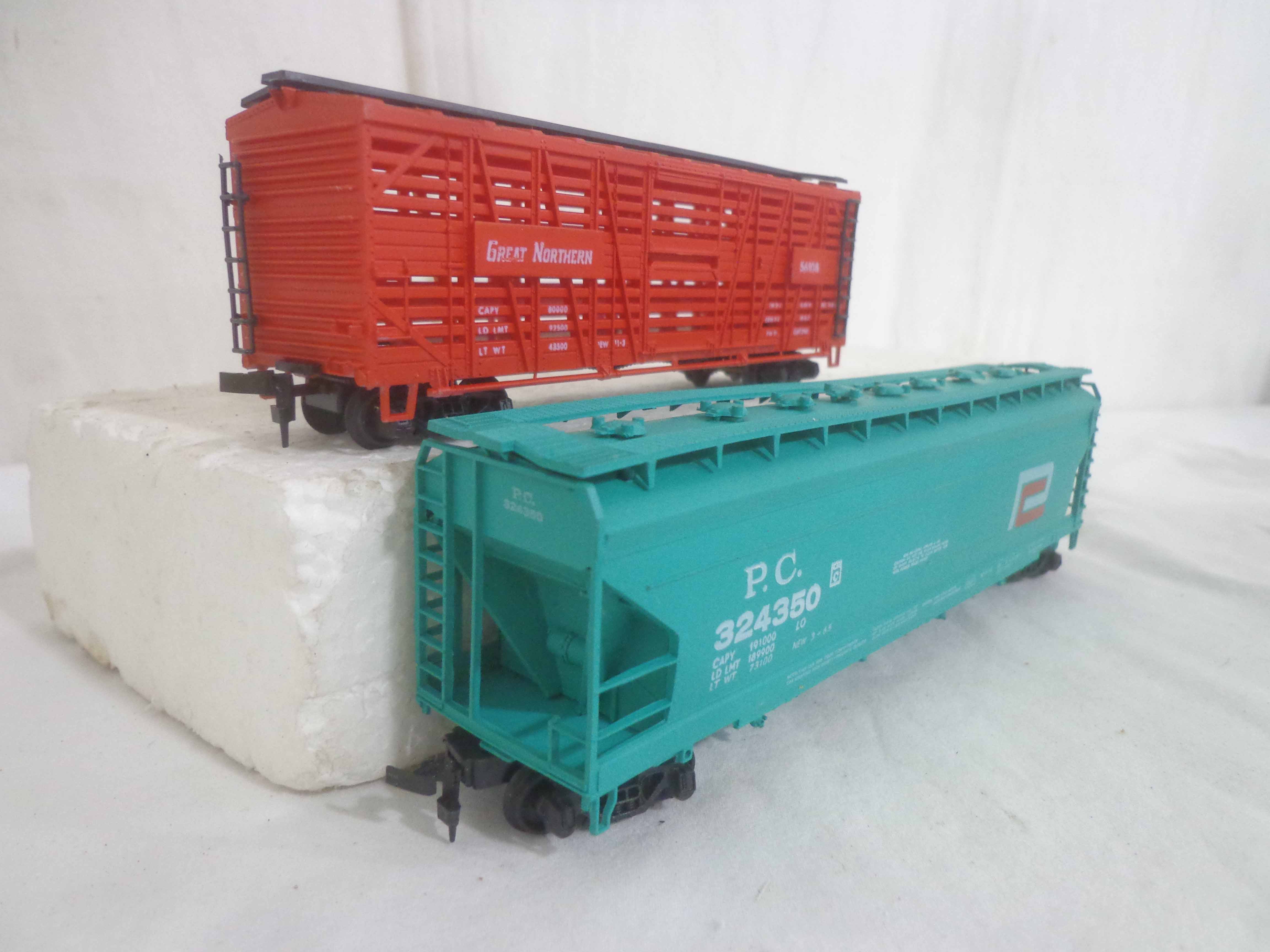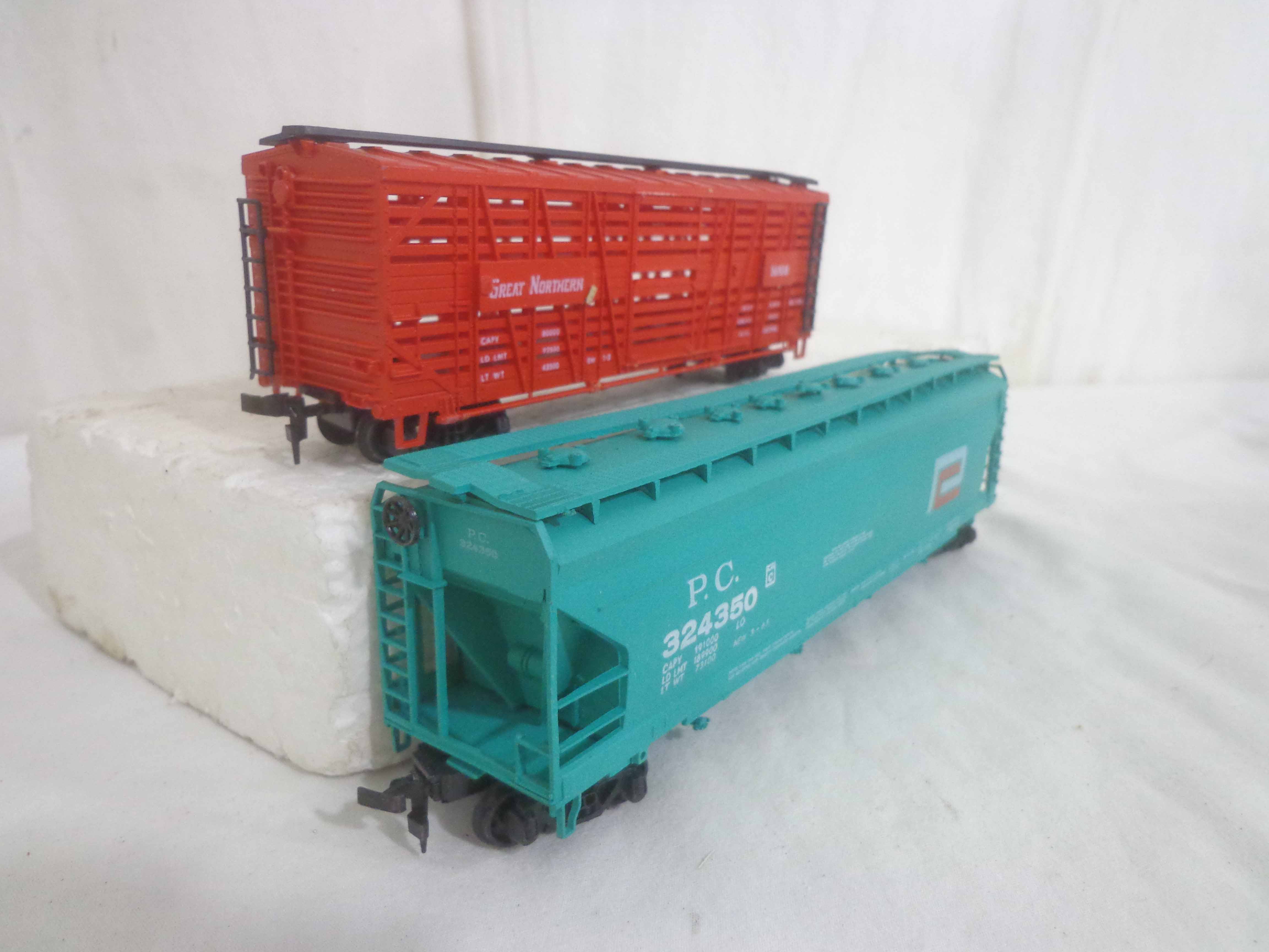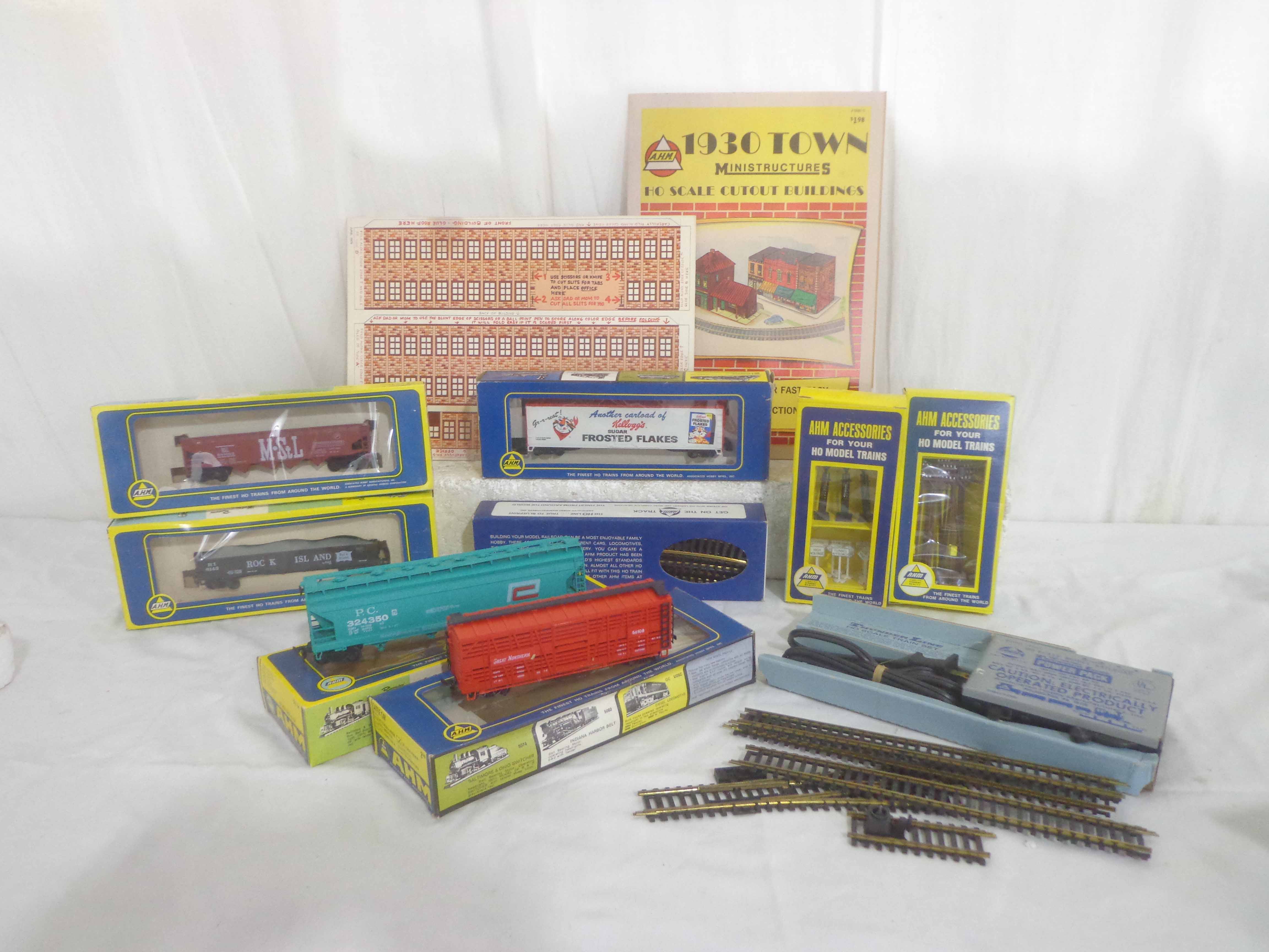 AHM HO Gauge: 5 Freight Cars and 6 Assorted Accessories/OBs