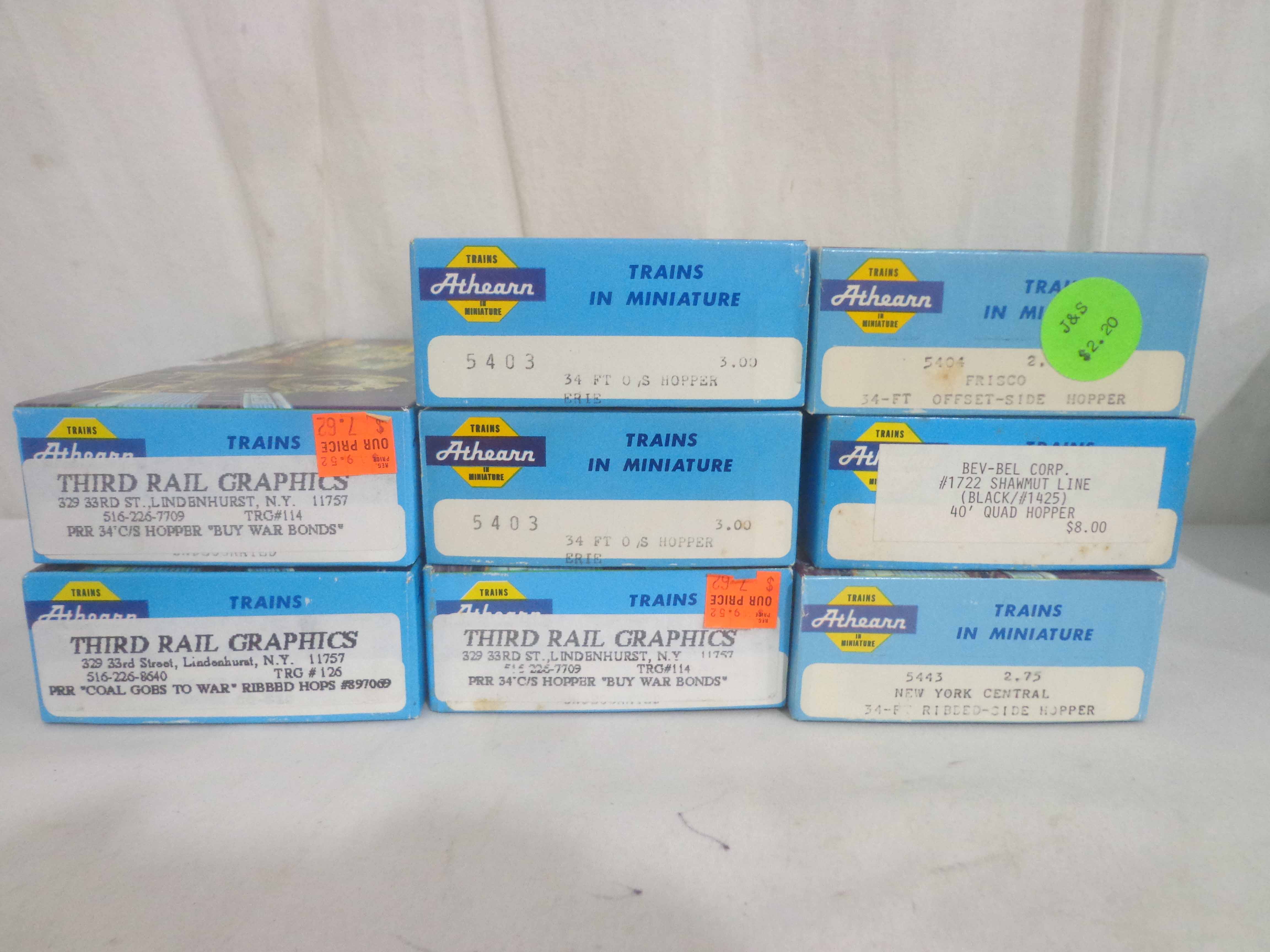 These are twenty-three Assorted Cars that Athearn made in HO Gauge some time in the past. Original Boxes. Examine very, very closely; what is clearly pictured is what you will receive. Please add $45.00 for US-48 Shipping and Insurance (more west of the Mississippi). |