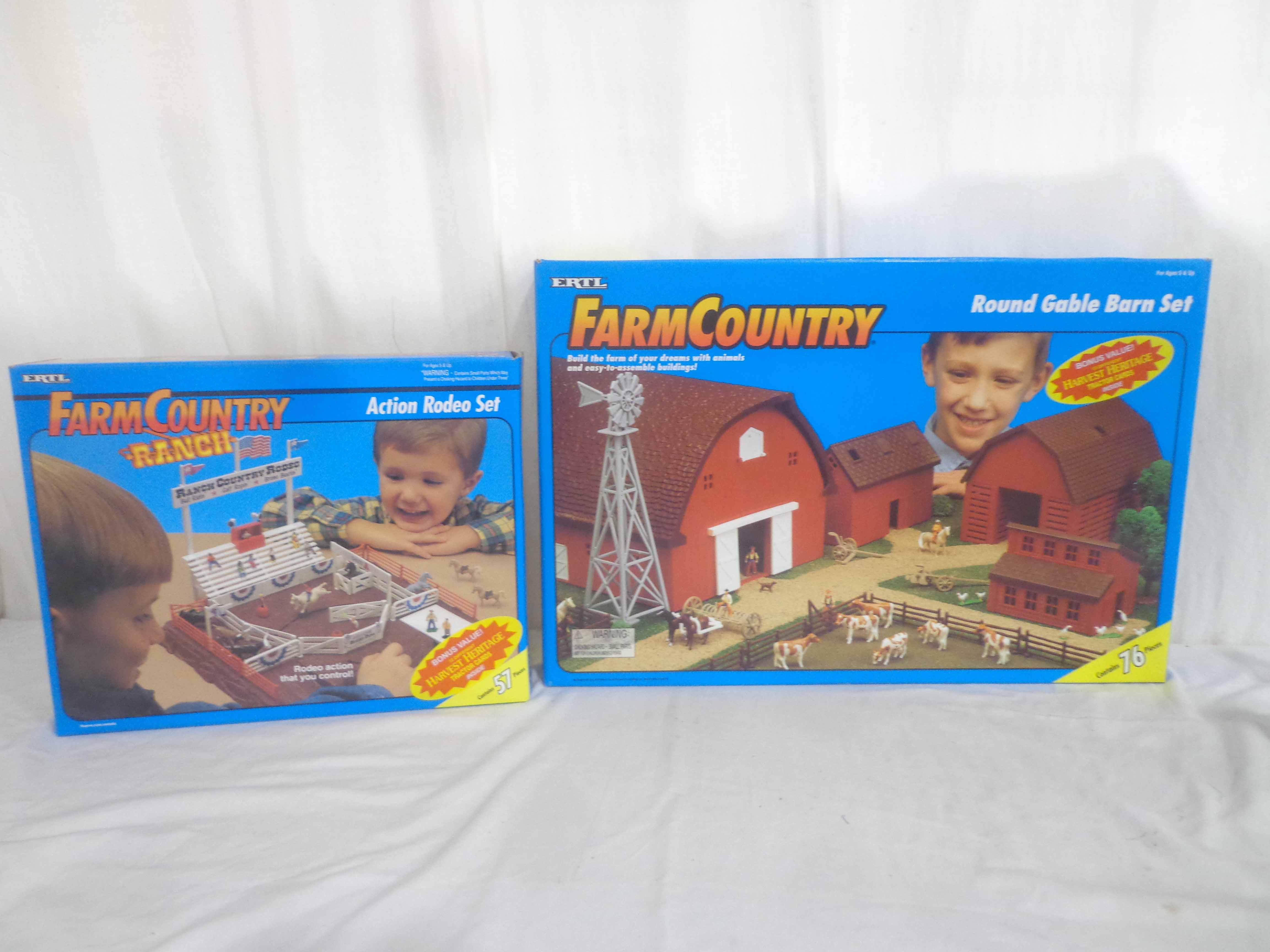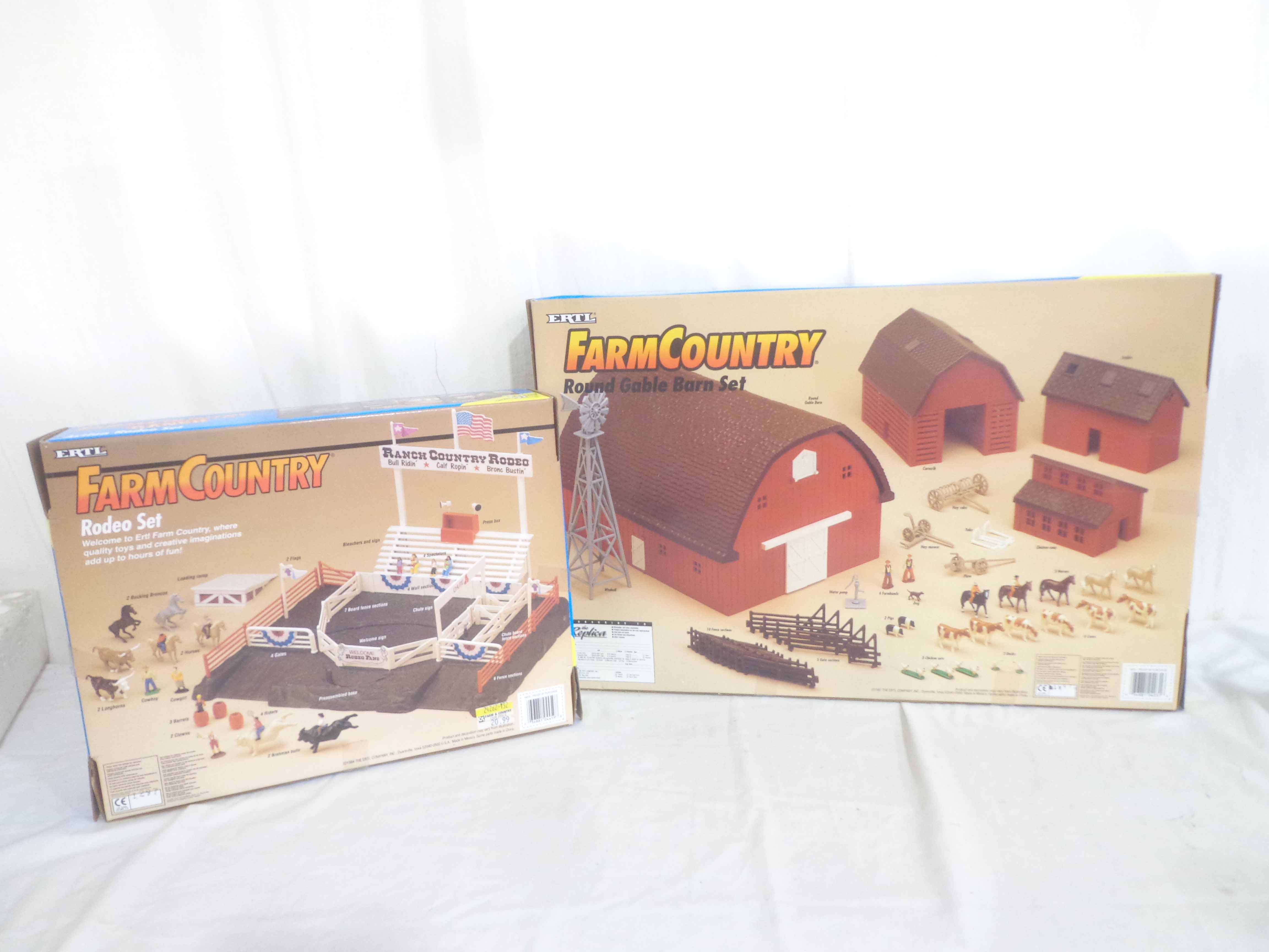 Ertl Farm Country #4031 Round Gable Barn Set and #4459 Action Rodeo Set/OBs