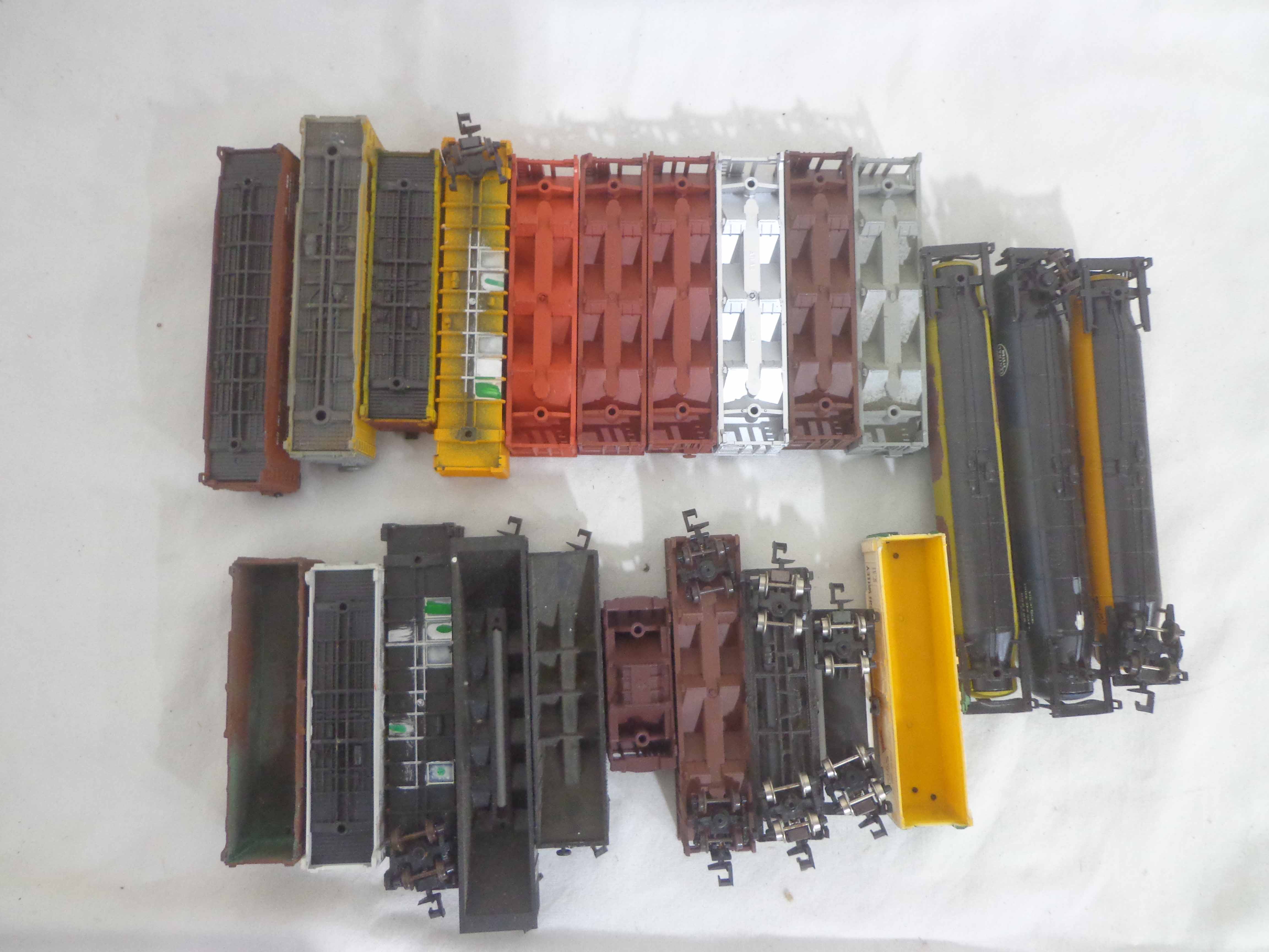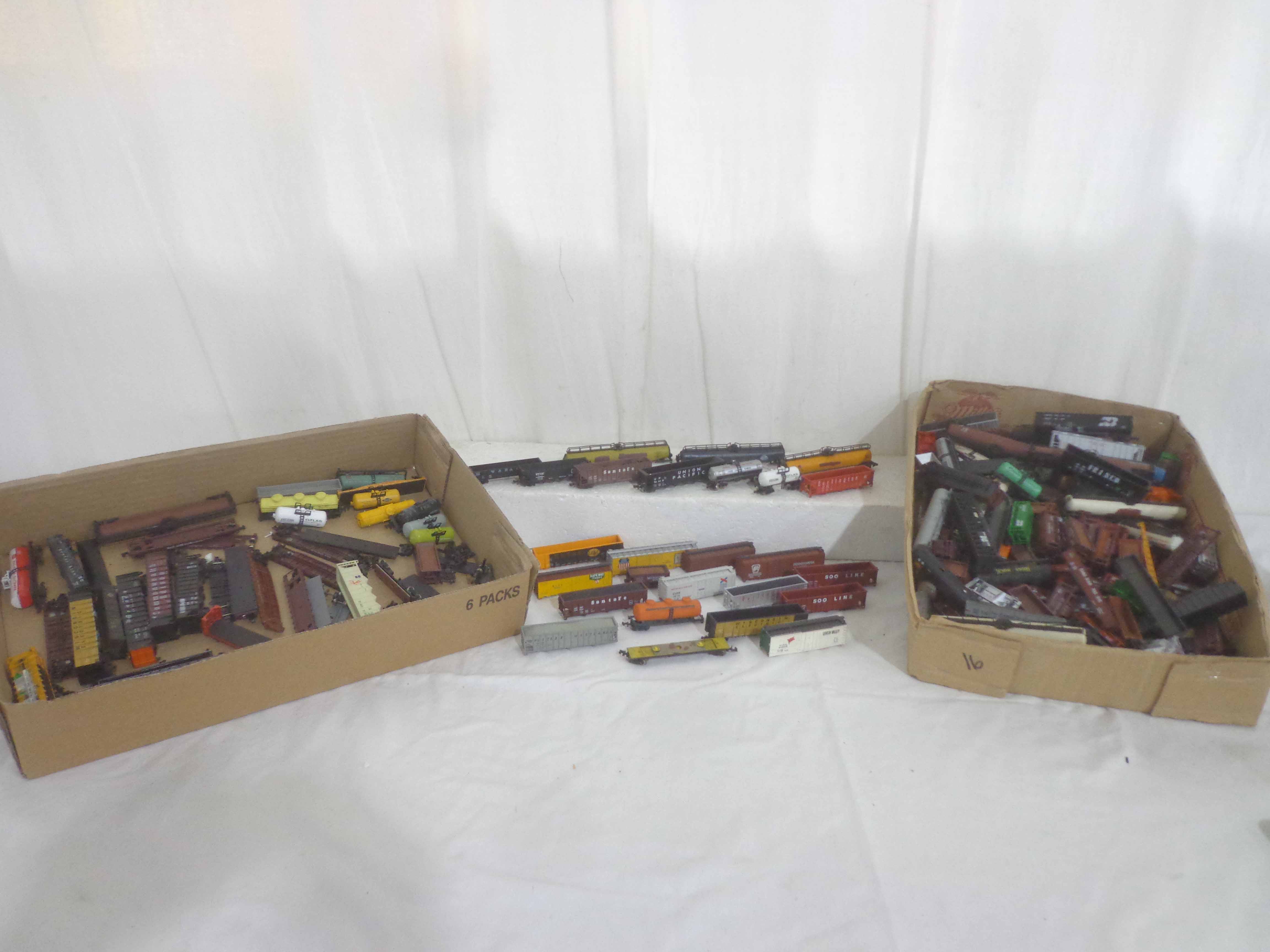 These are one hundred-fifty plus Assorted Manufactures N Gauge Assorted Freight Cars (many missing trucks/wheels). Examine closely; what is pictured is what you will receive. Please add $75.00 for US-48 Shipping and Insurance (more west of the Mississippi). |