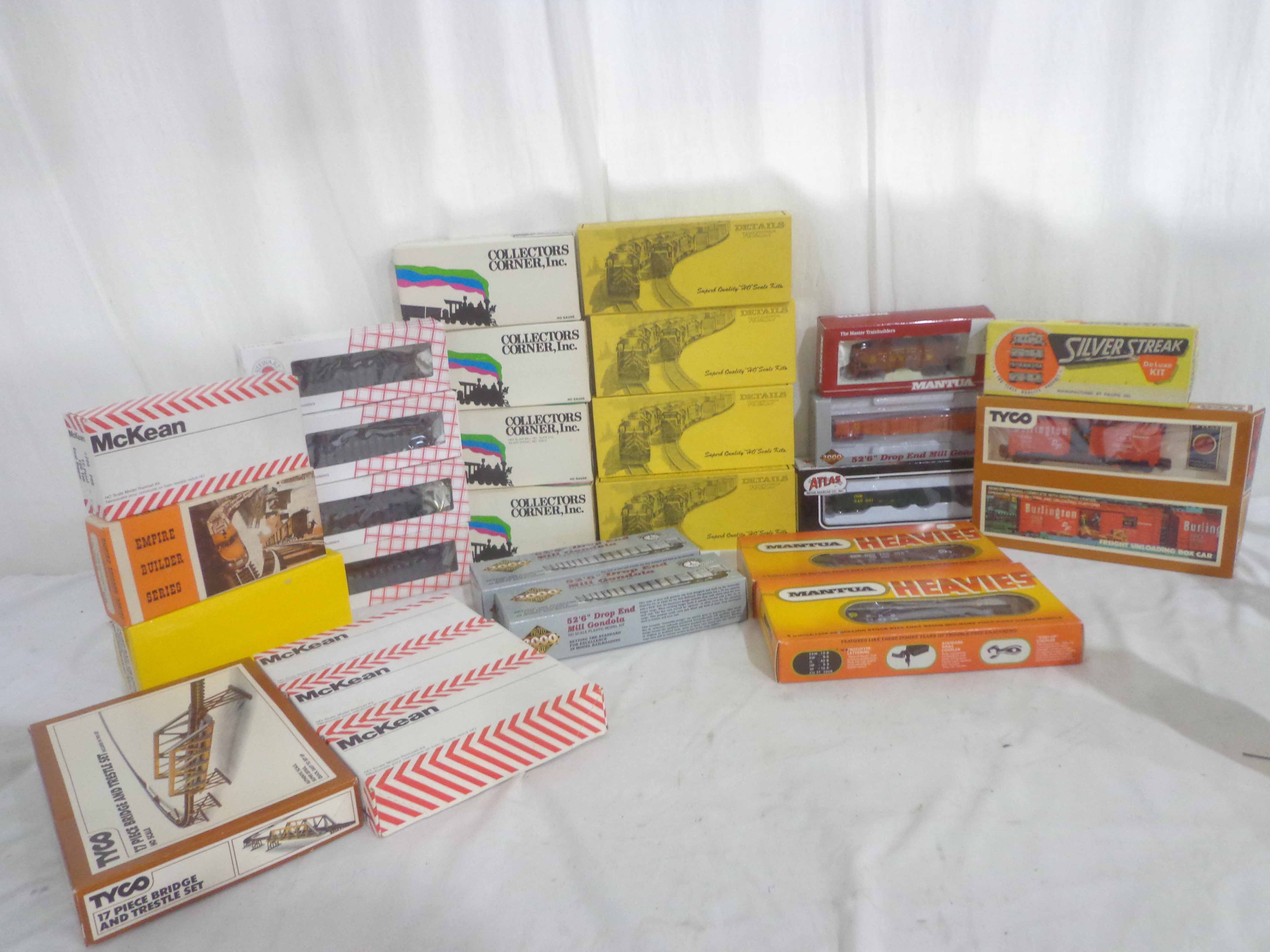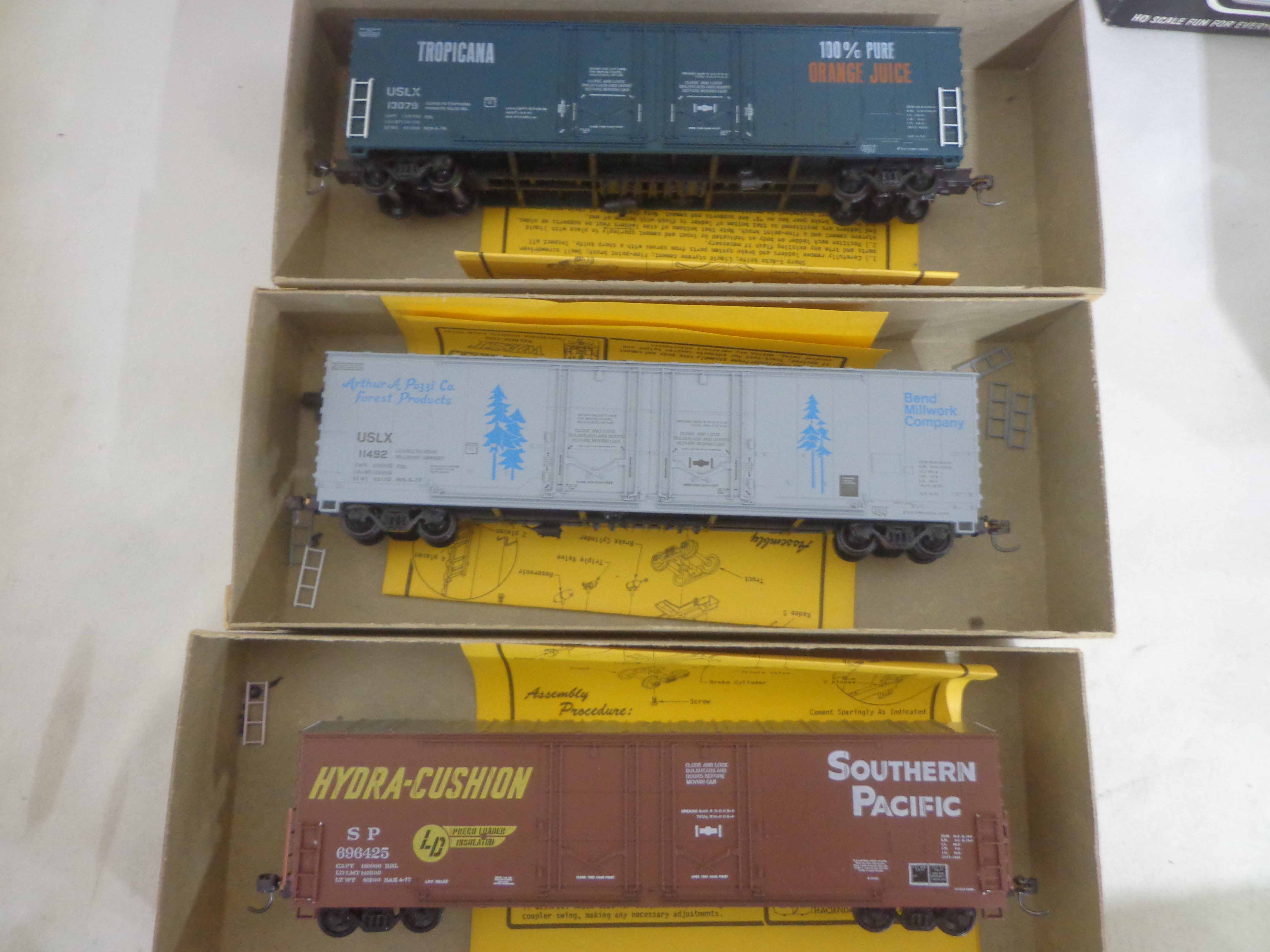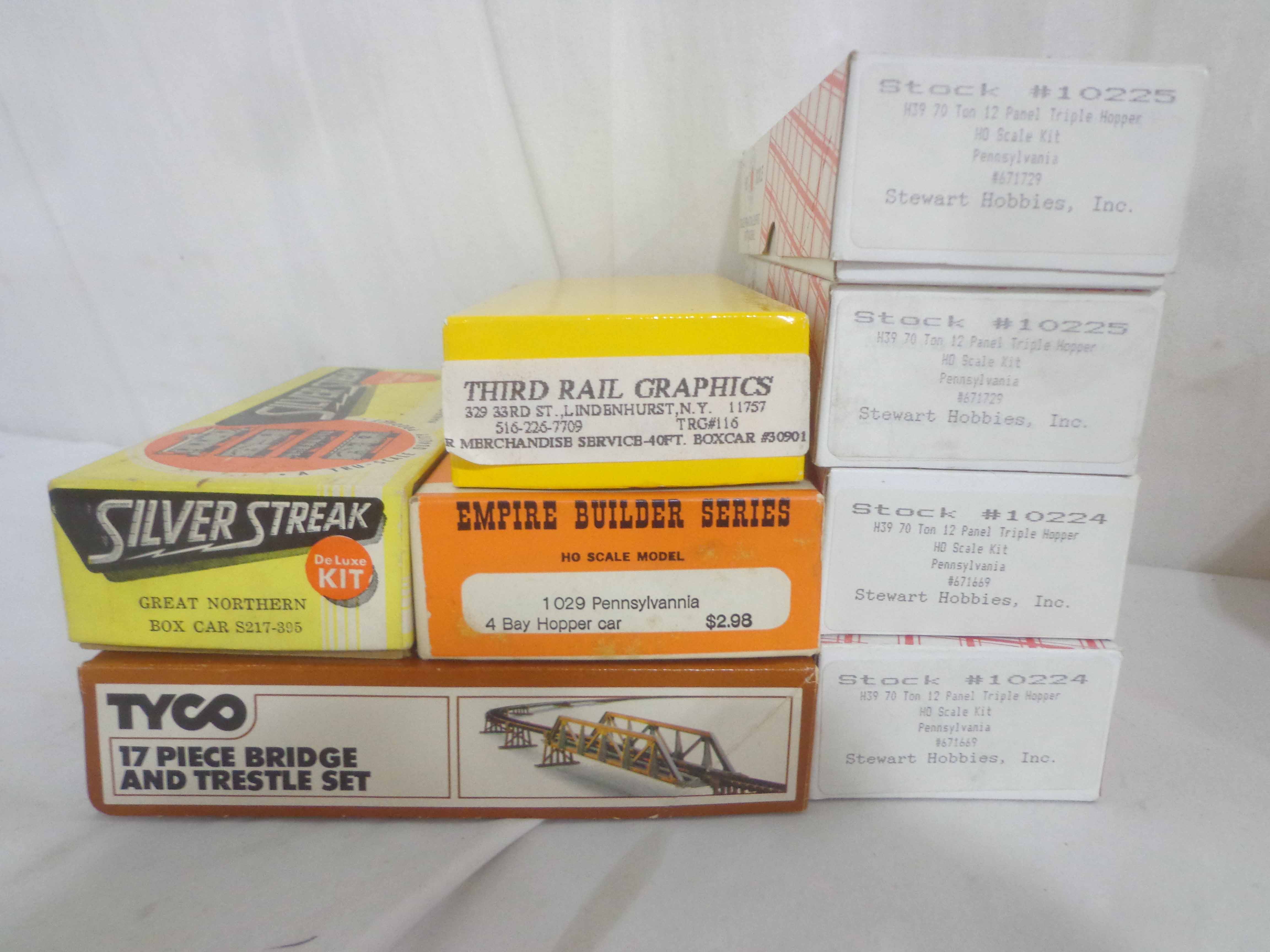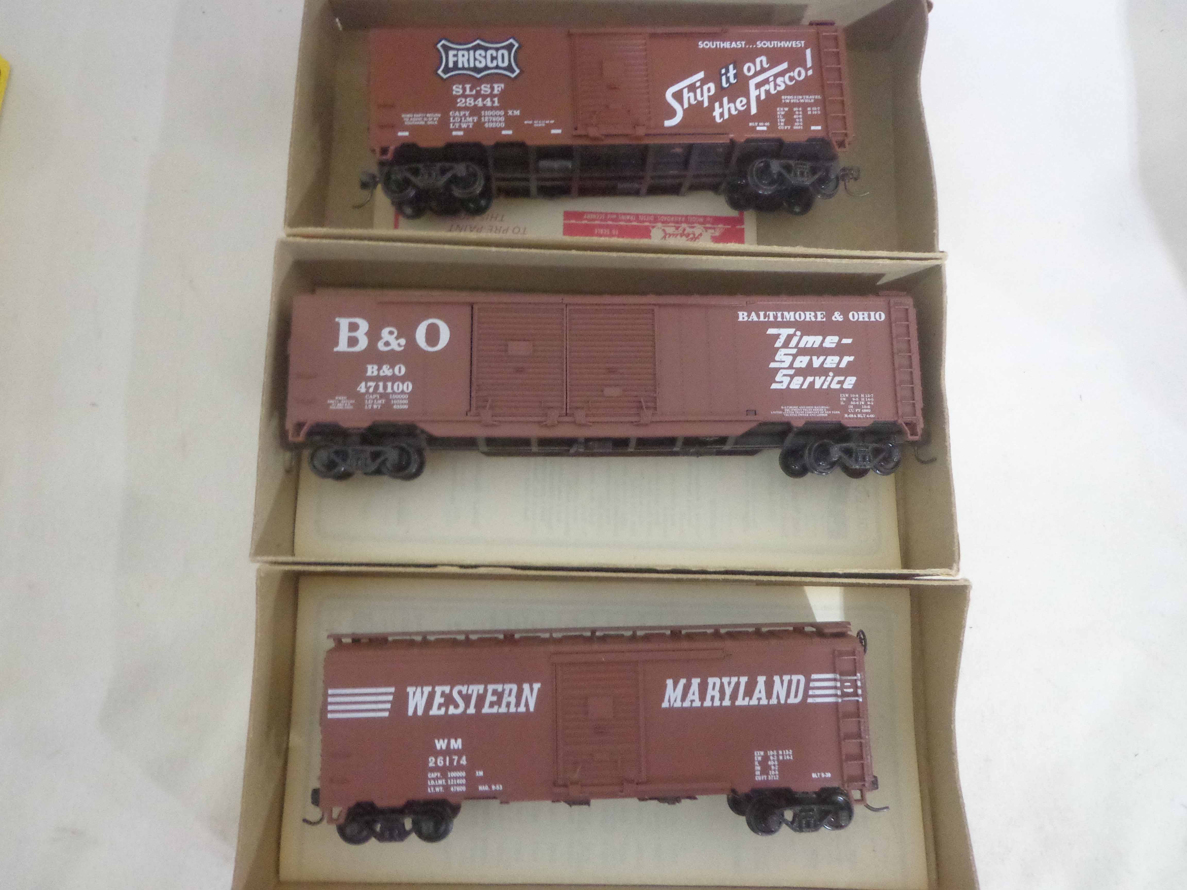 These are twenty-eight Assorted Manufactures HO Gauge Assorted Freight Cars and Kits. Original Boxes. Examine closely; what is pictured is what you will receive. Please add $45.00 for US-48 Shipping and Insurance (more west of the Mississippi)
