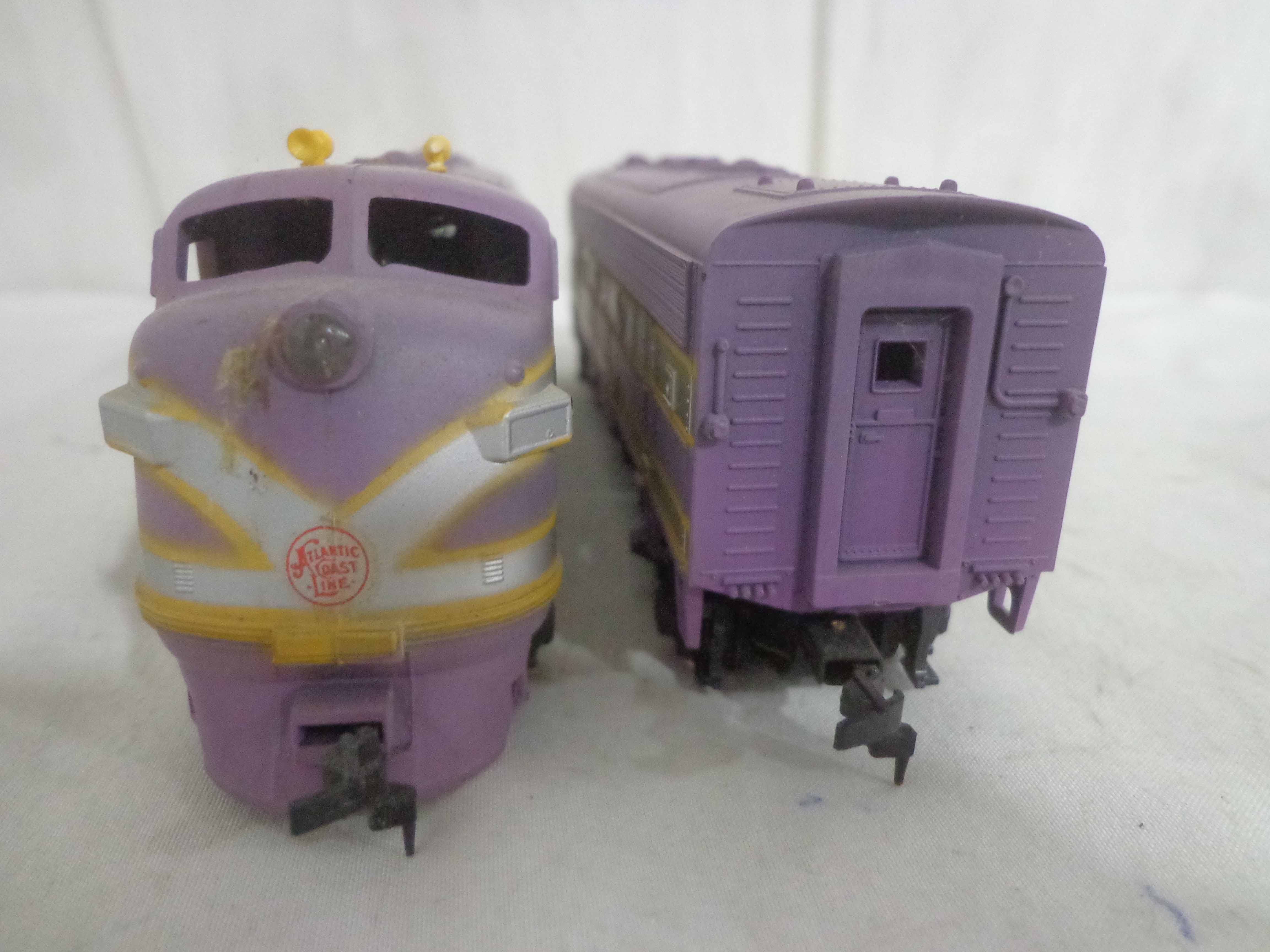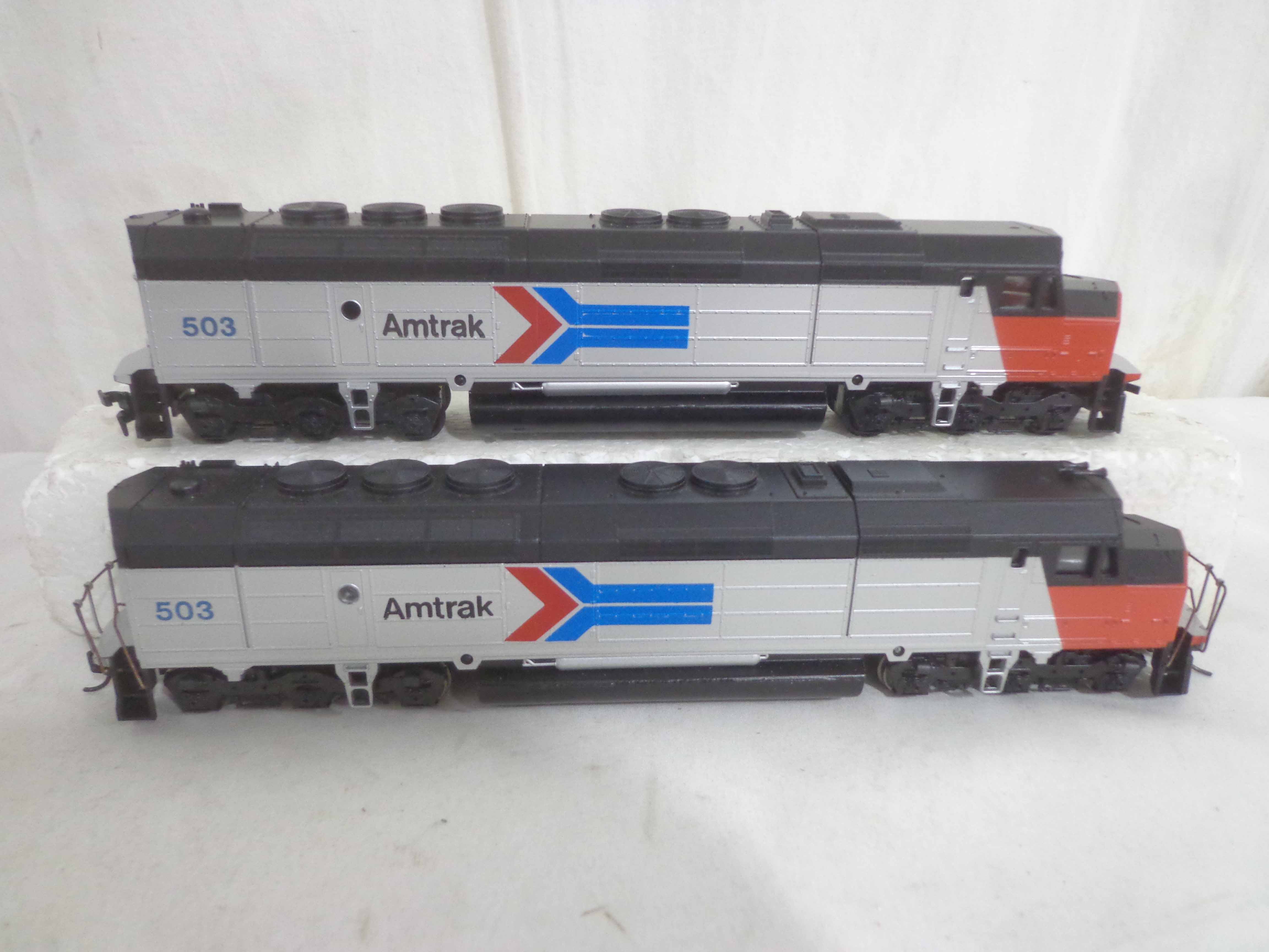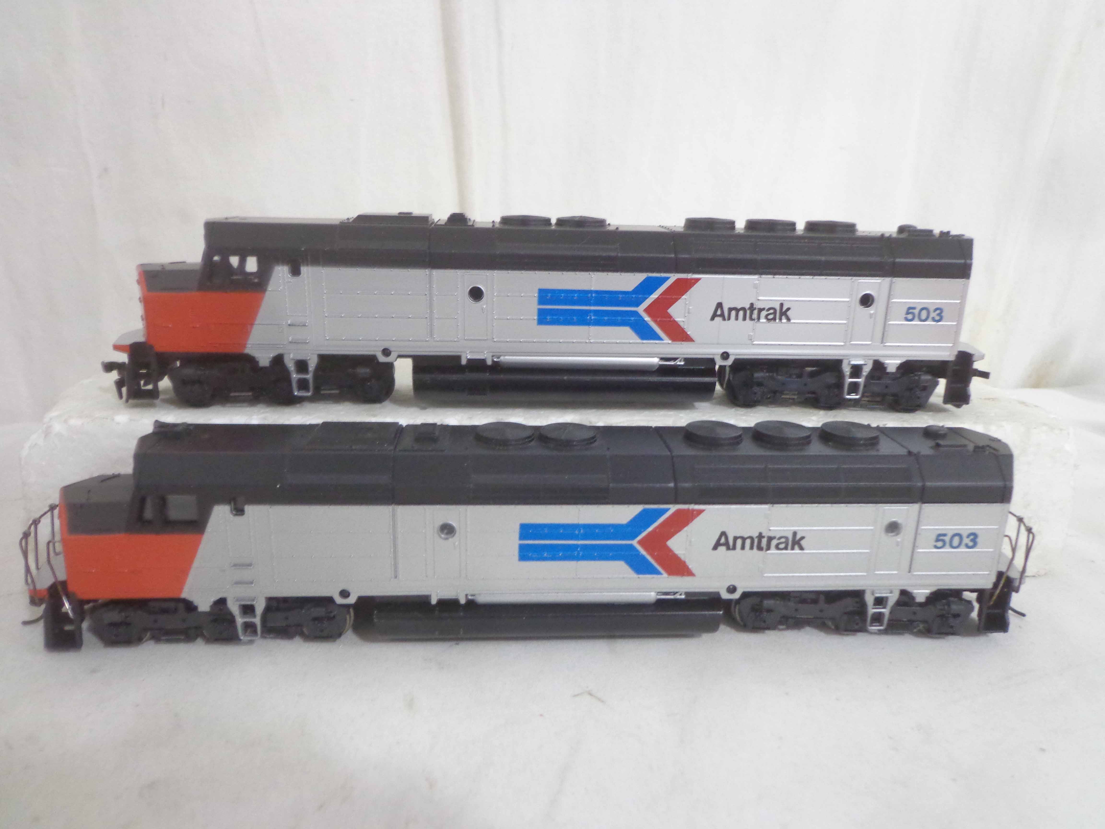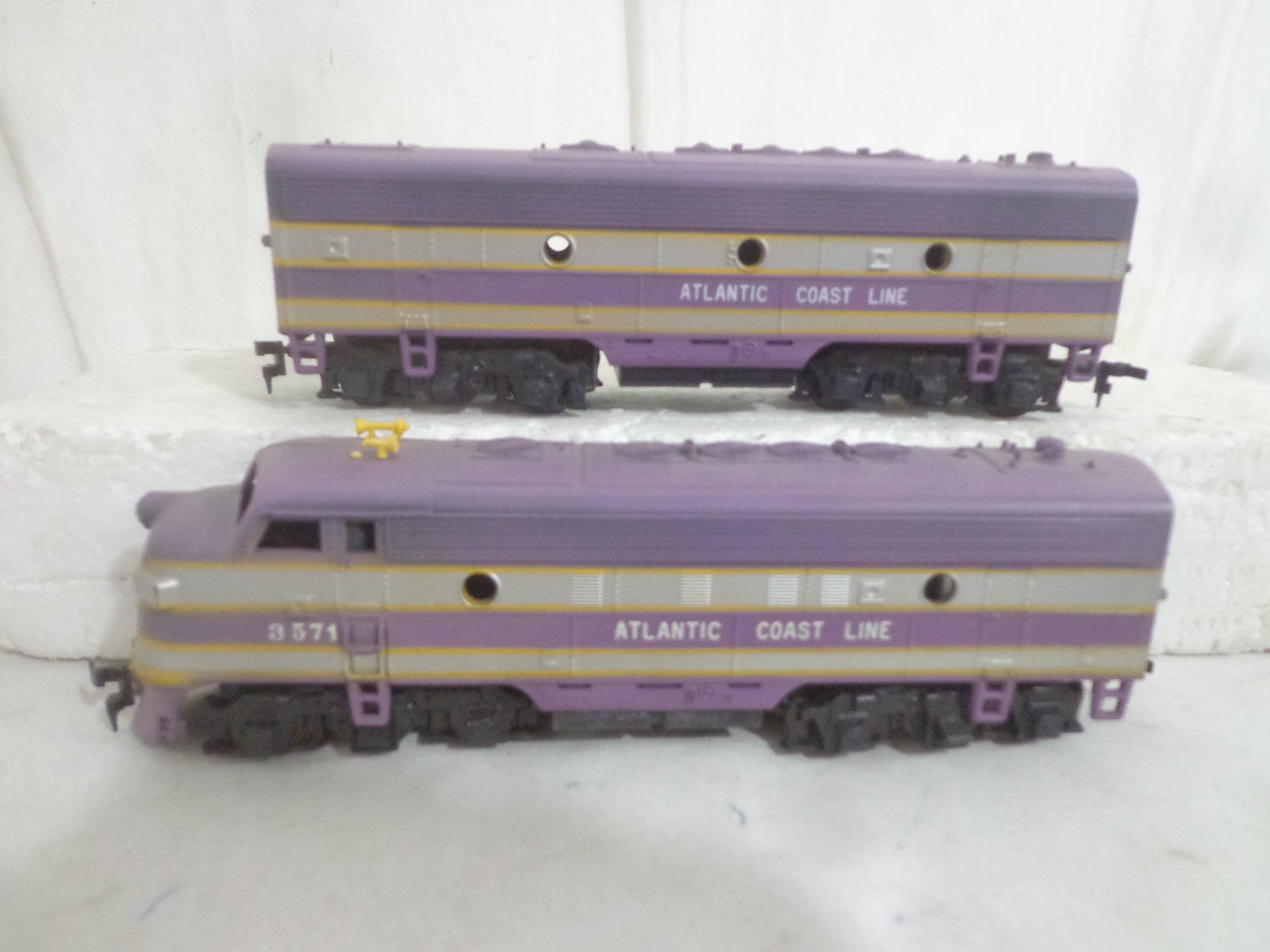 These are the Athearn/Tyco HO Gauge #3624/3624 Amtrak FP45 Engines, #3634 Amtrak Non-Powered Engine, #3571/T230C:398 Atlantic Coast Line AB Units and two Freight Cars. Six Original Boxes. Examine closely; what is pictured is what you will receive. Please add $40.00 for US-48 Shipping and Insurance (more west of the Mississippi).