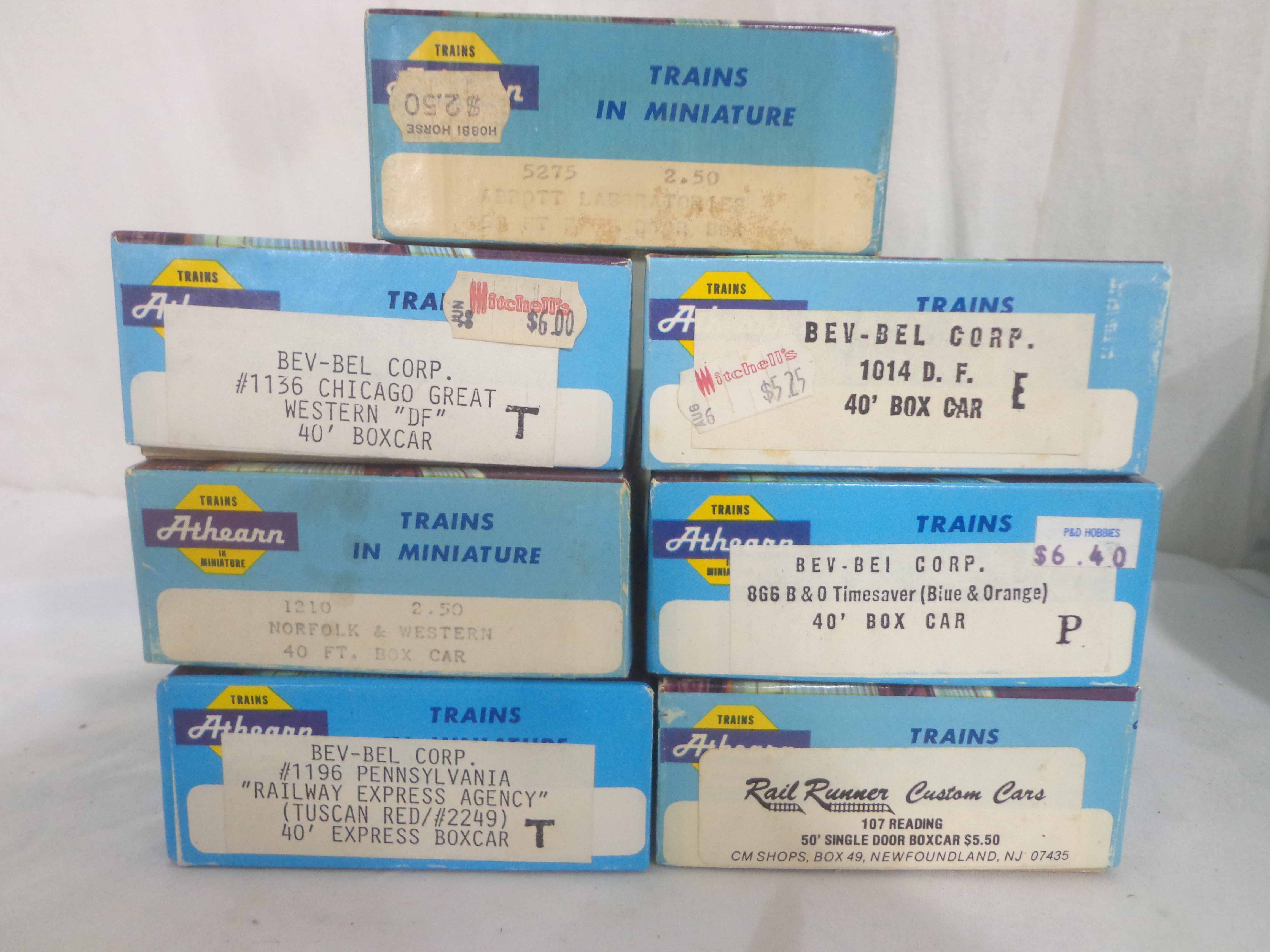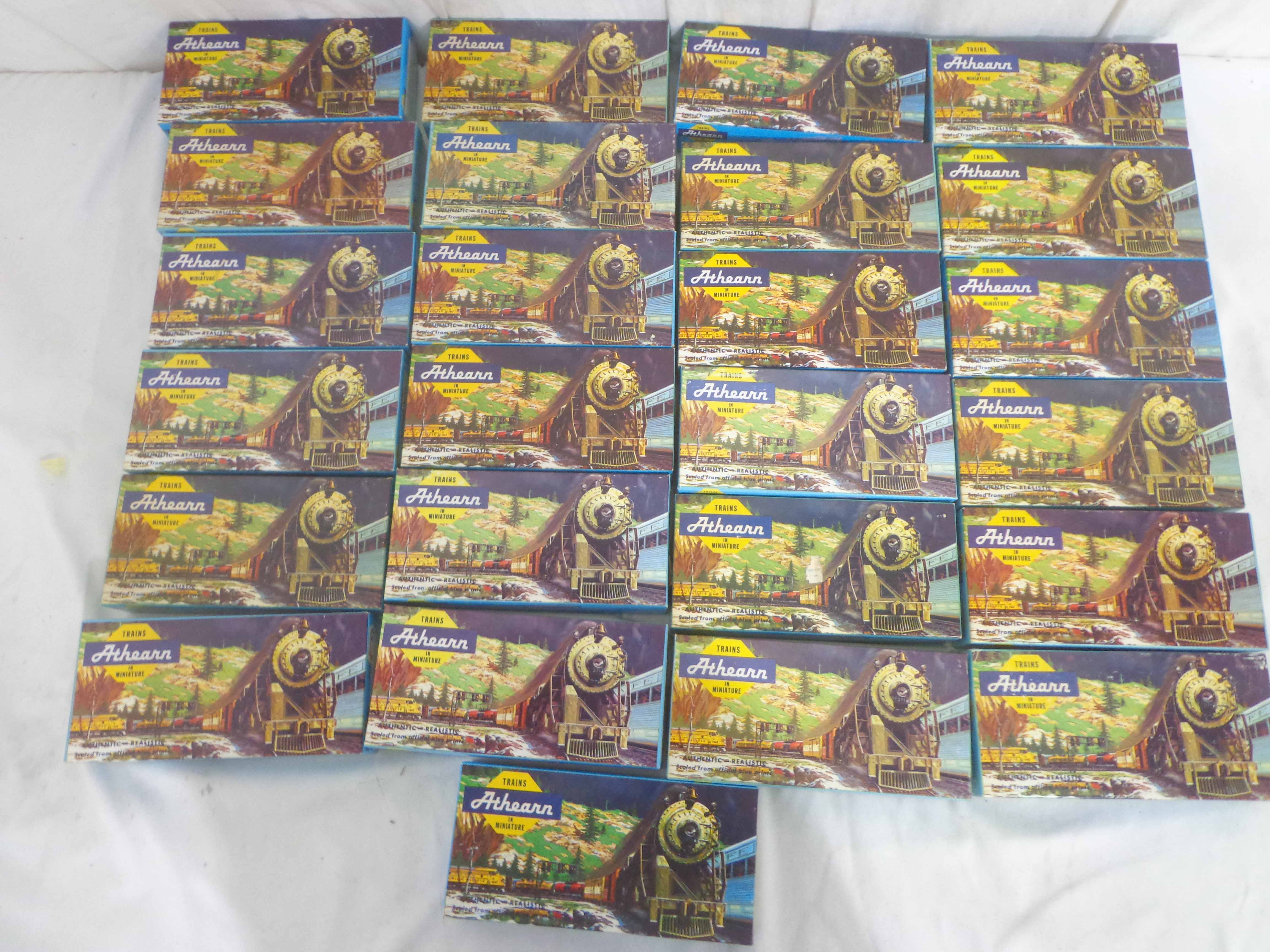 These are twenty-five Assorted Freight Cars that Athearn made in HO Gauge in the 1960s/70s. Original Boxes. Examine very, very closely; what is clearly pictured is what you will receive. Please add $50.00 for US-48 Shipping and InsuranceExamine closely; what is pictured is what you will receive (more west of the Mississippi). |