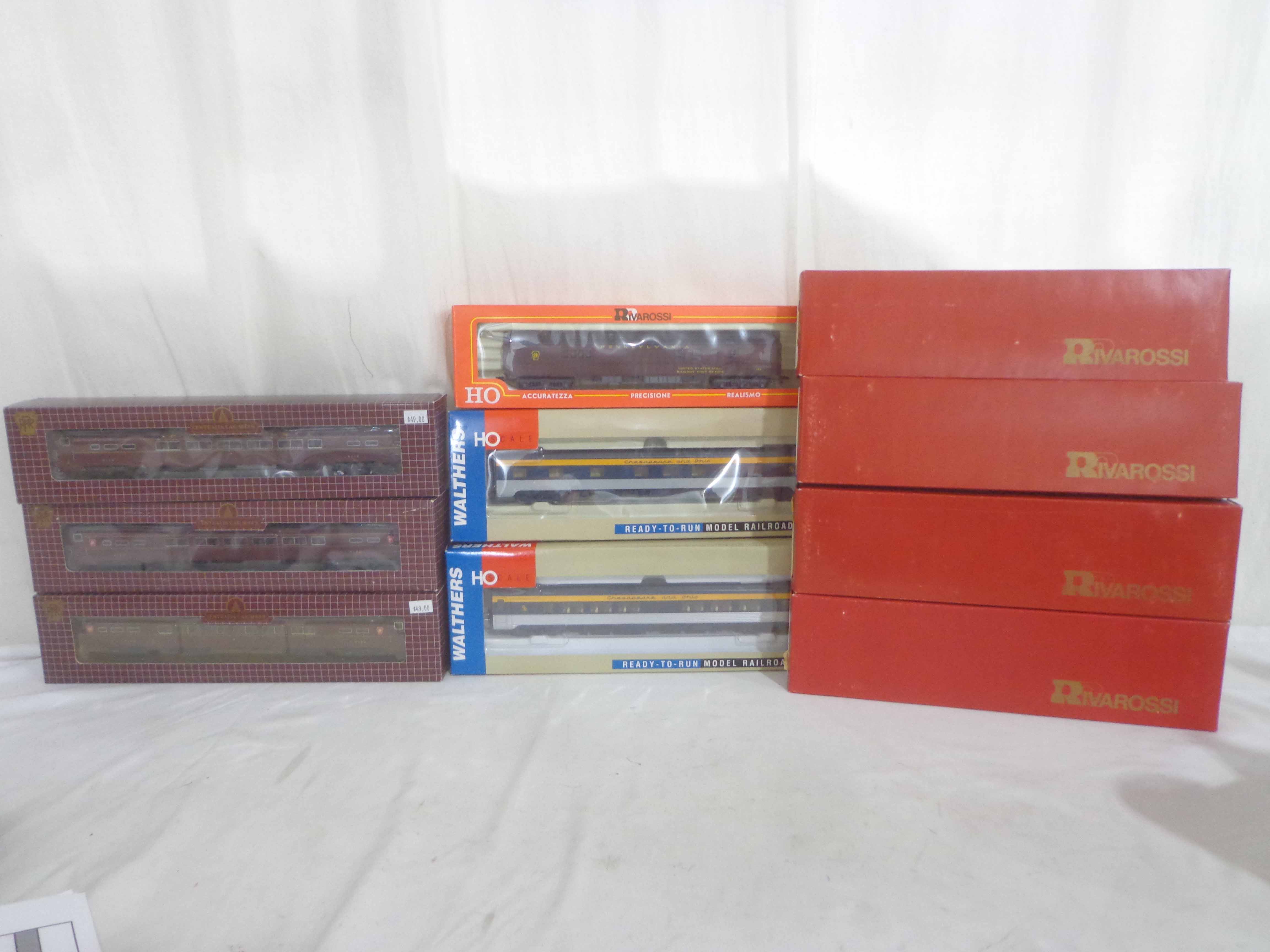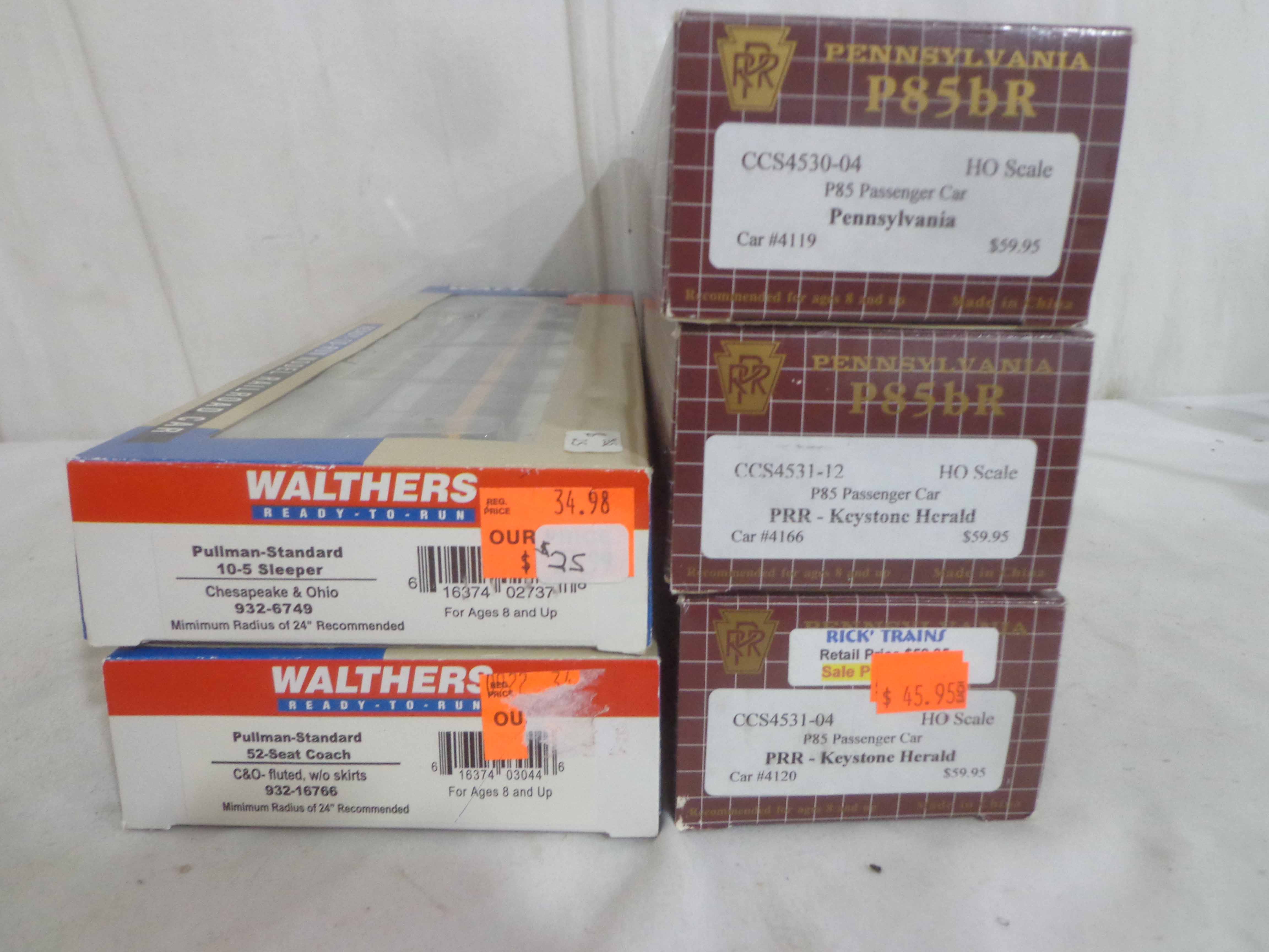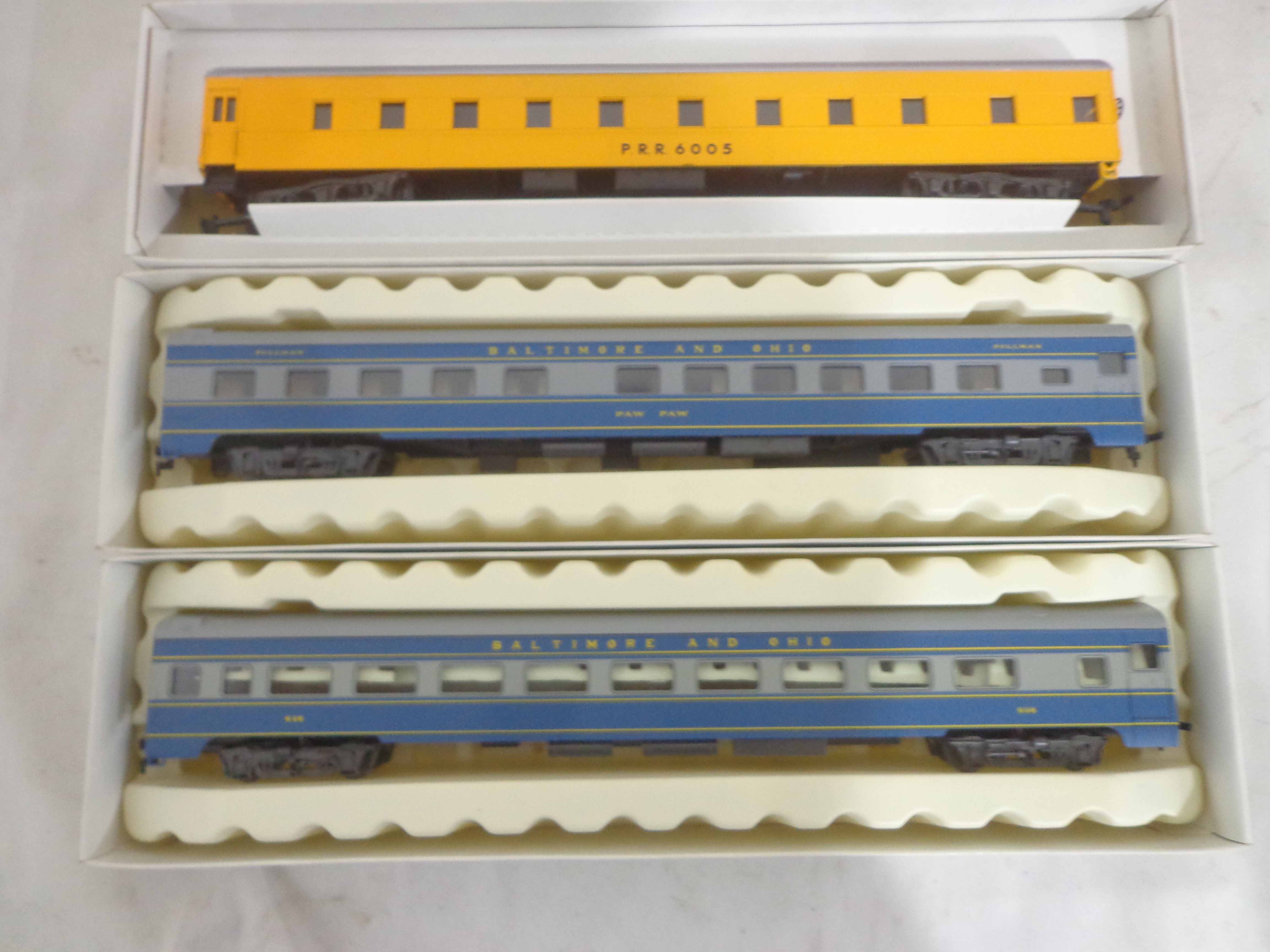 These are the Rivarossi/Walthers/Centralia Car Shops HO Gauge #2771-0/2776-0 Baltimore and Ohio Passenger Cars, #932-6749/932-16766 Chesapeake and Ohio Passenger Cars and #2816-0/2952-0/2806/CCS4531-04/CCS4531-04/CCS4531-04--12 Pennsylvania Passenger Car. Ten Original Boxes. Examine closely; what is pictured is what you will receive. Please add $45.00 for US-48 Shipping and Insurance (more west of the Mississippi). |