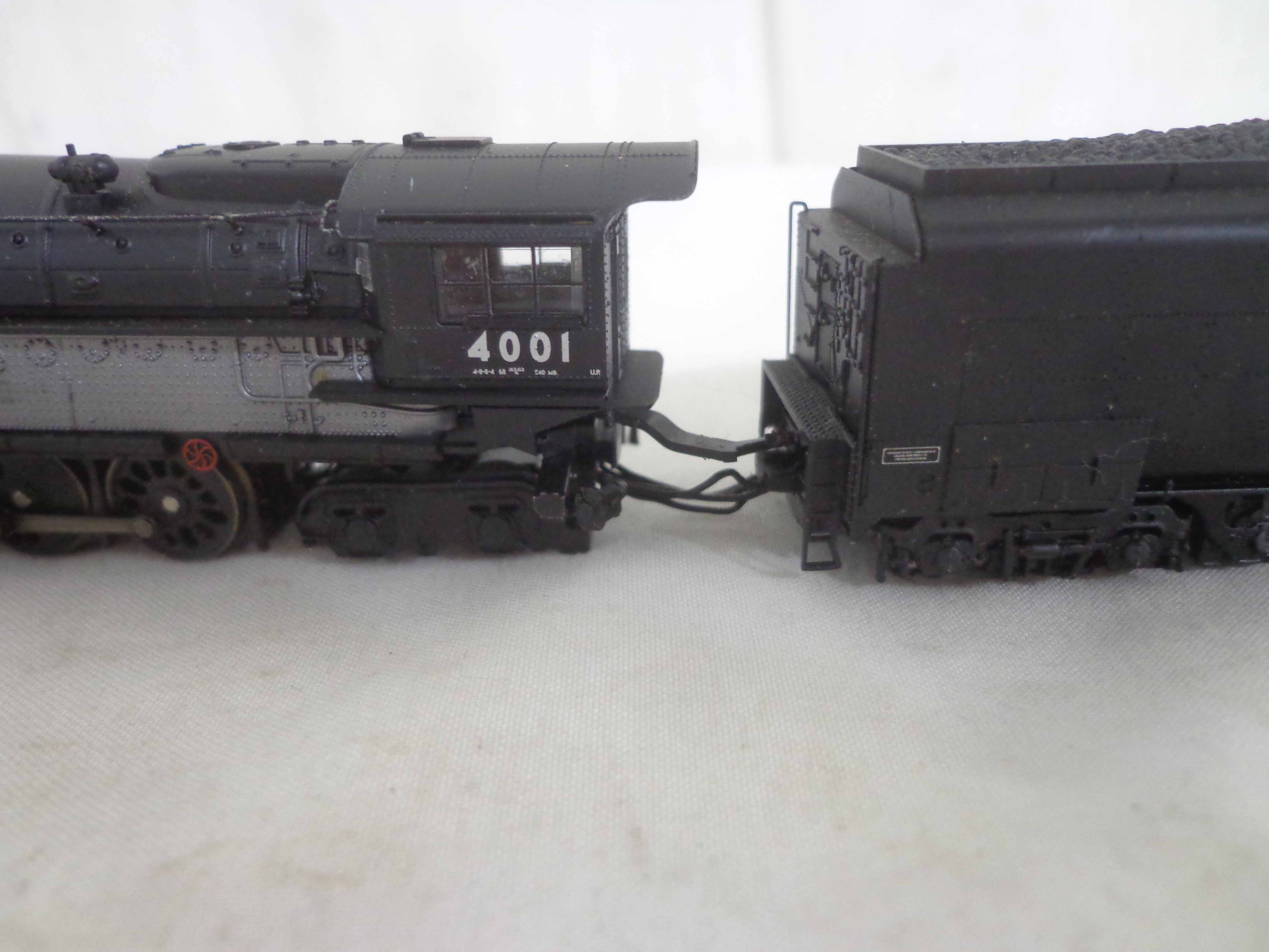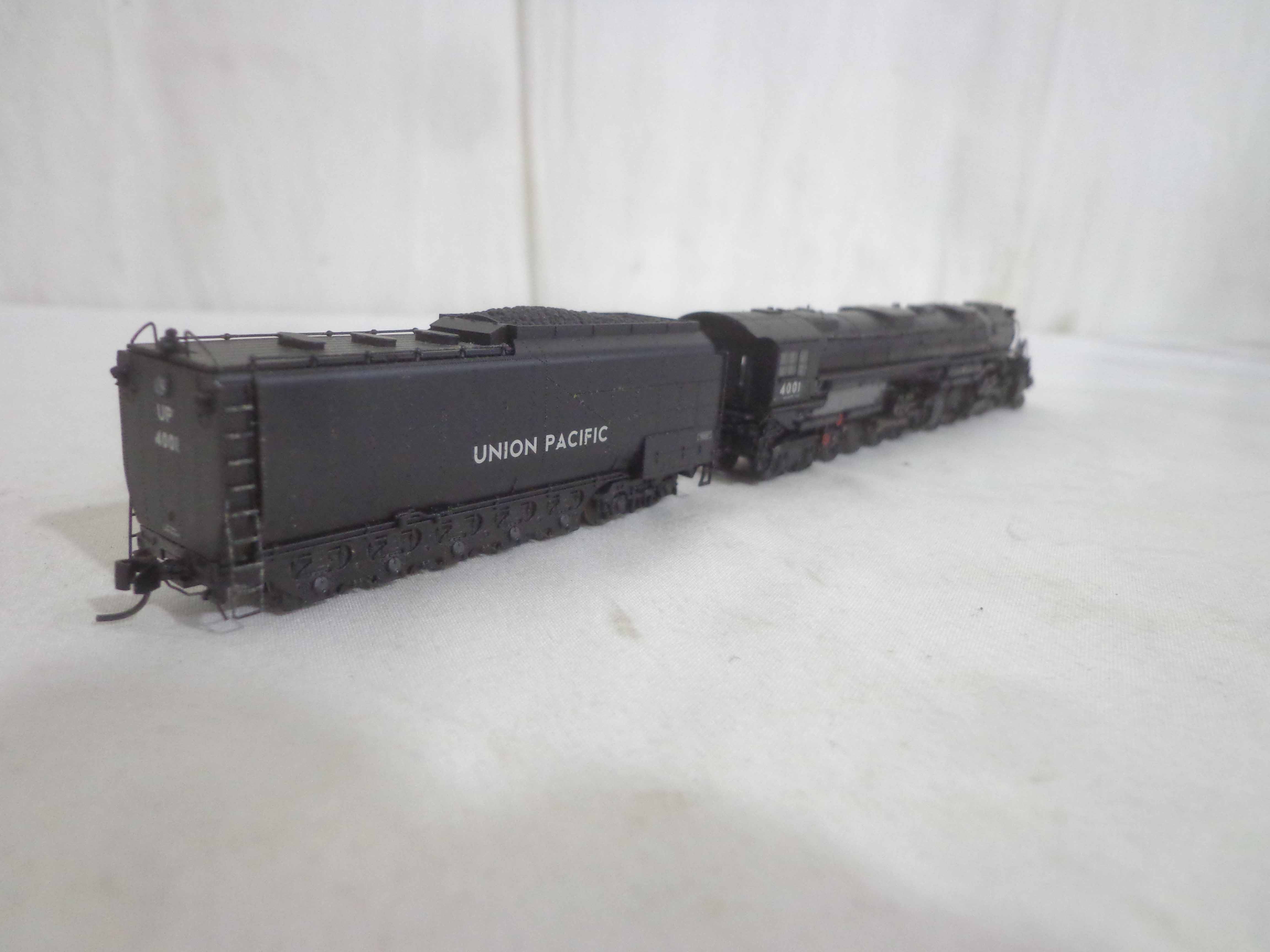 These are the #11828 Union Pacific 4-8-8-4 Engine and Tender with Sound (remote) that Athearn made in N Gauge a few years ago. Examine closely; what is pictured is what you will receive. Original Box. Please add $30.00 for US-48 Shipping and Insurance (more west of the Mississippi).