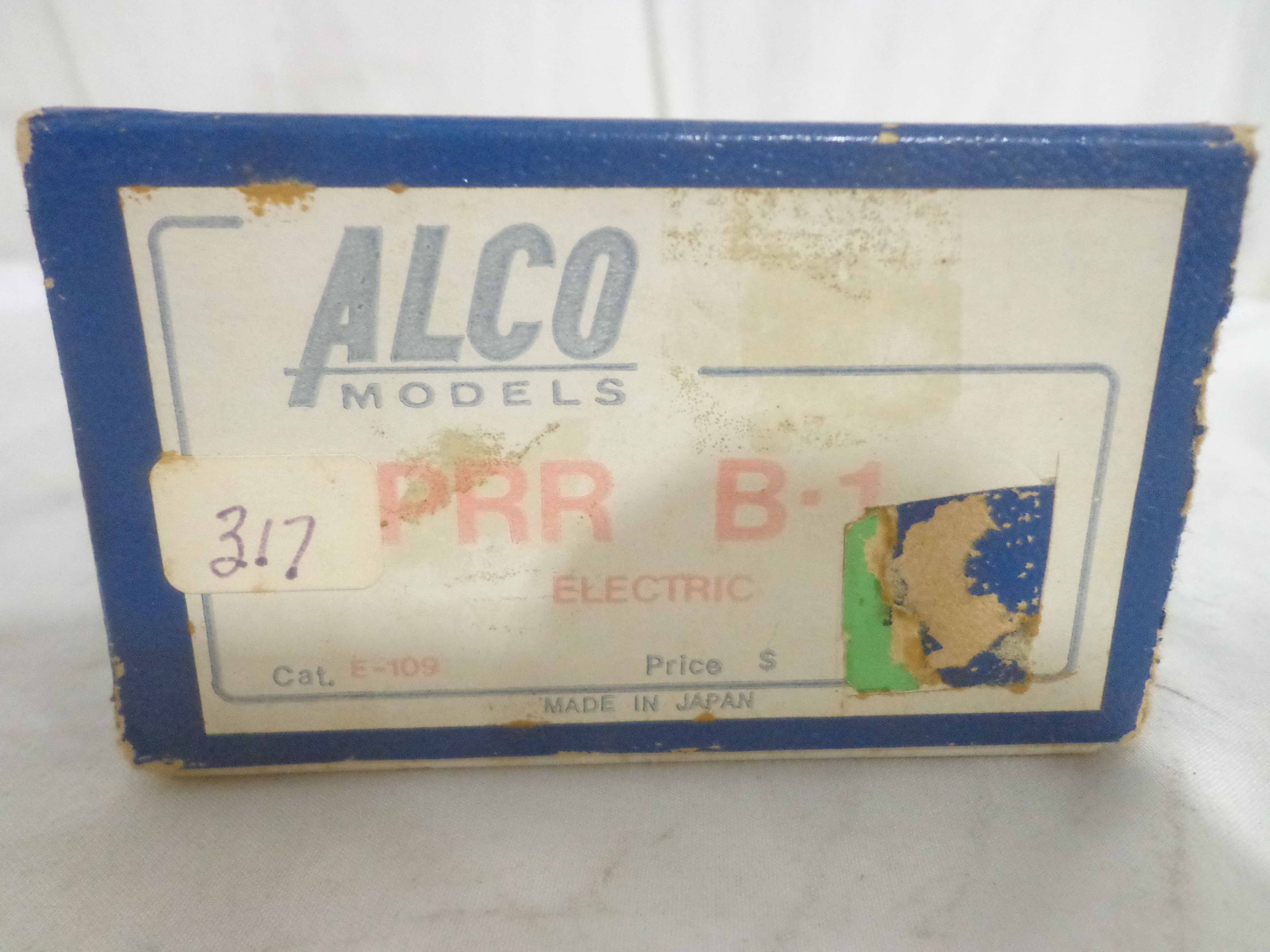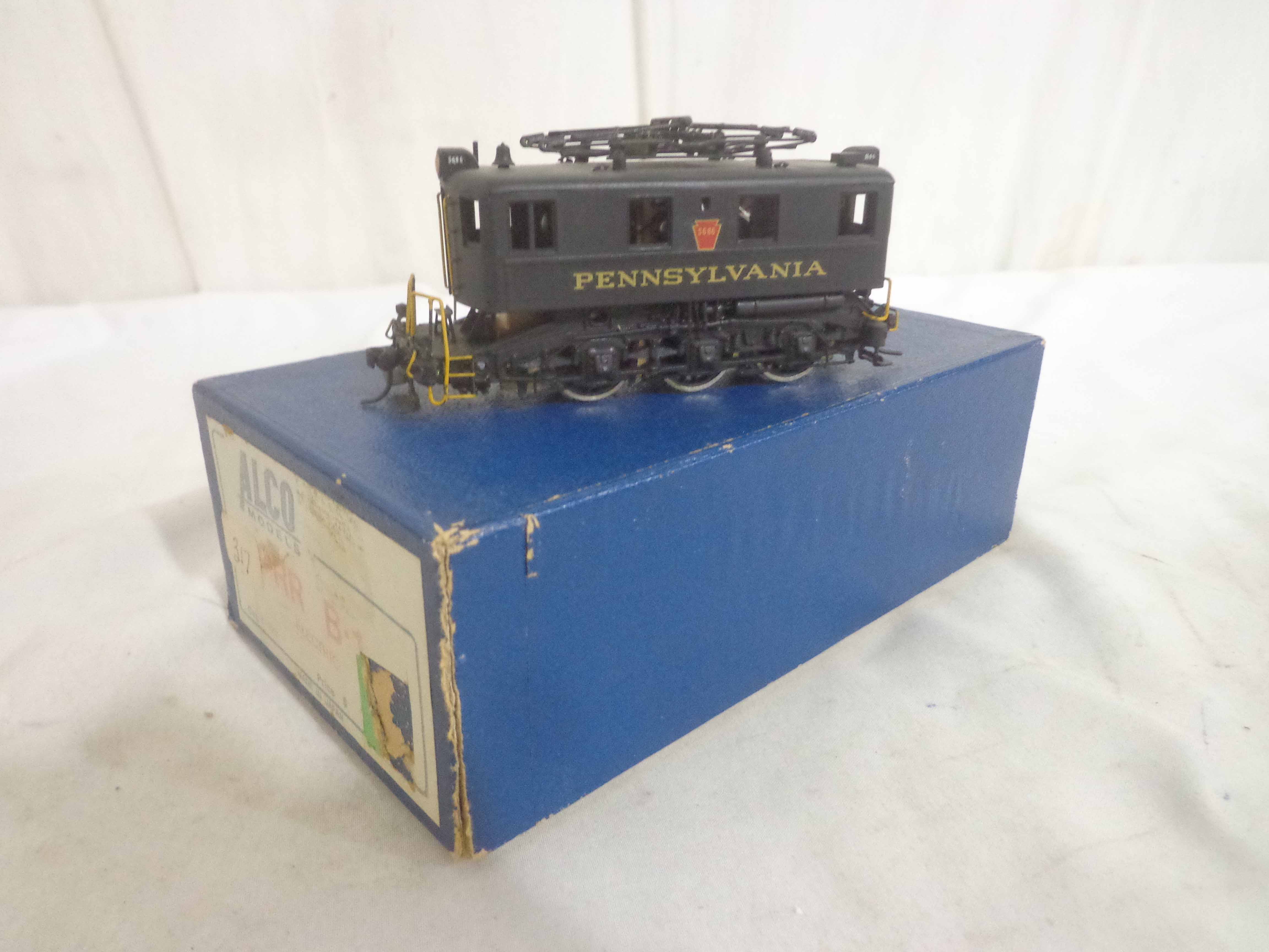 This is the Alco HO Gauge Brass #E-109 Pennsylvania B-1 Electric Engine. Original Box. Examine closely; what is pictured is what you will receive. Please add $35.00 for US-48 Shipping and Insurance (more west of the Mississippi).