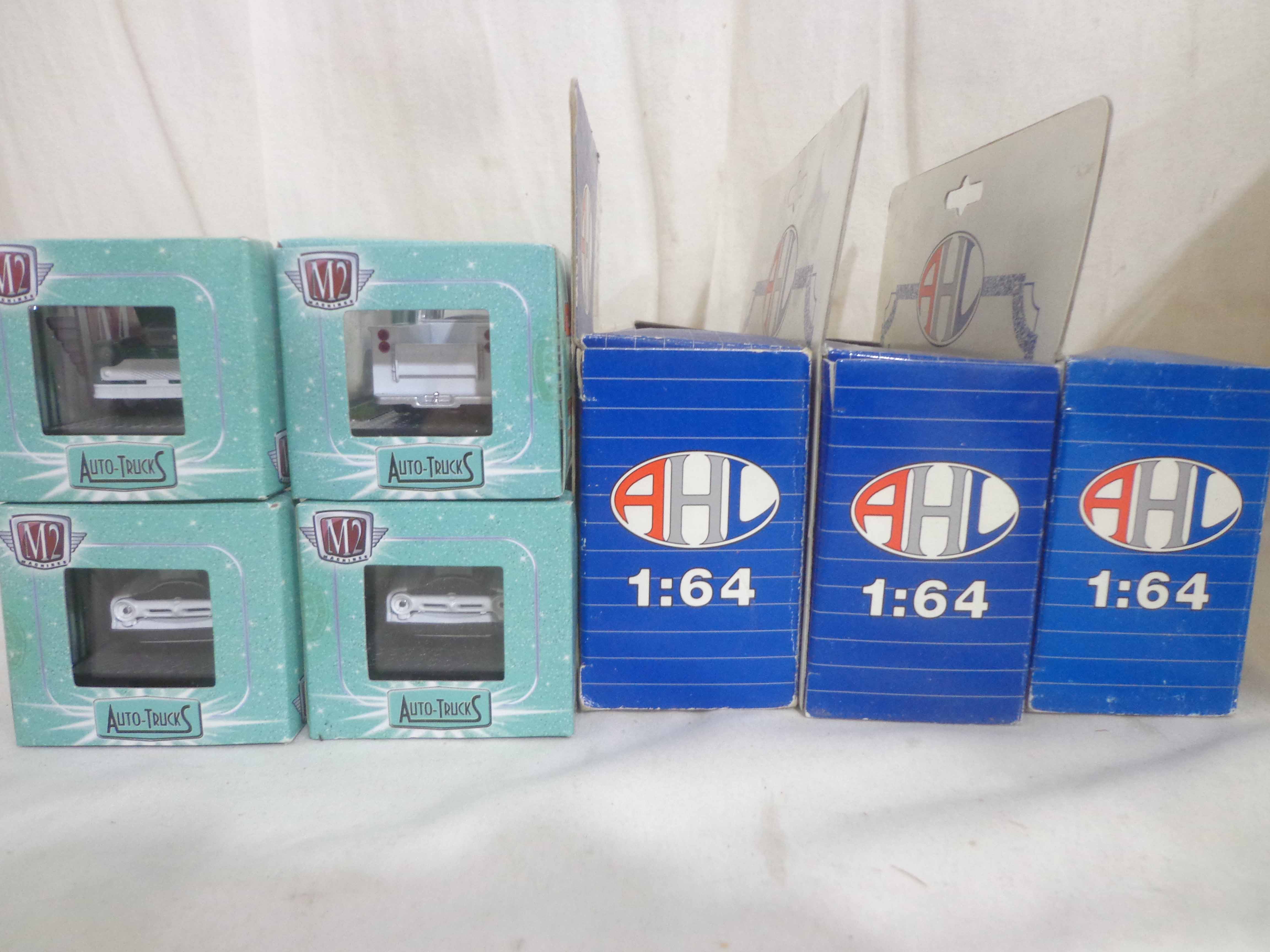 These are twelve Assorted AHL/M2Machines 1:64/1:43 Scale Diecast Vehicles. Examine closely; what is pictured is what you will receive. Original Boxes. Please add $35.00 for US-48 Shipping and Insurance (more west of the Mississipi). |