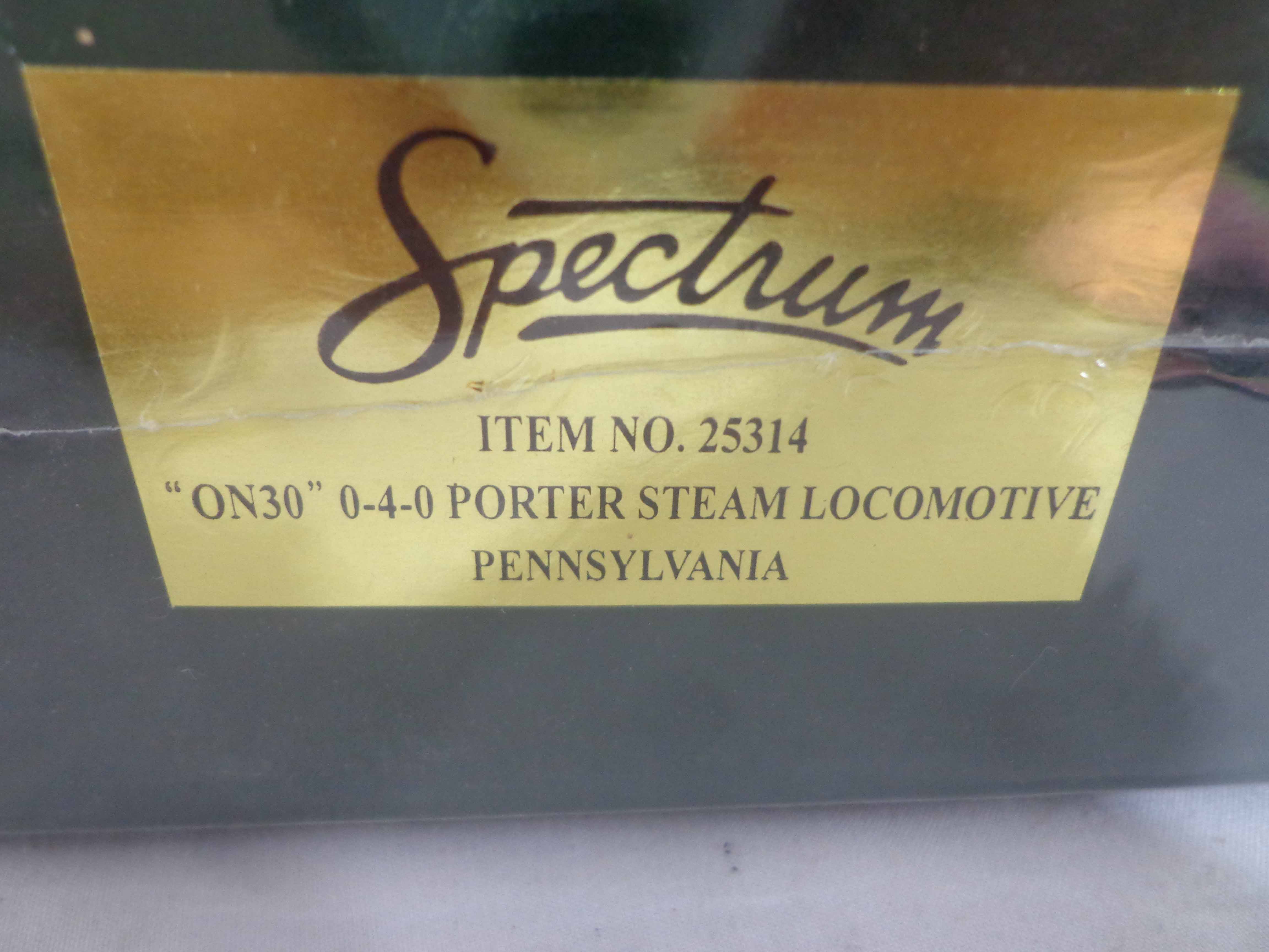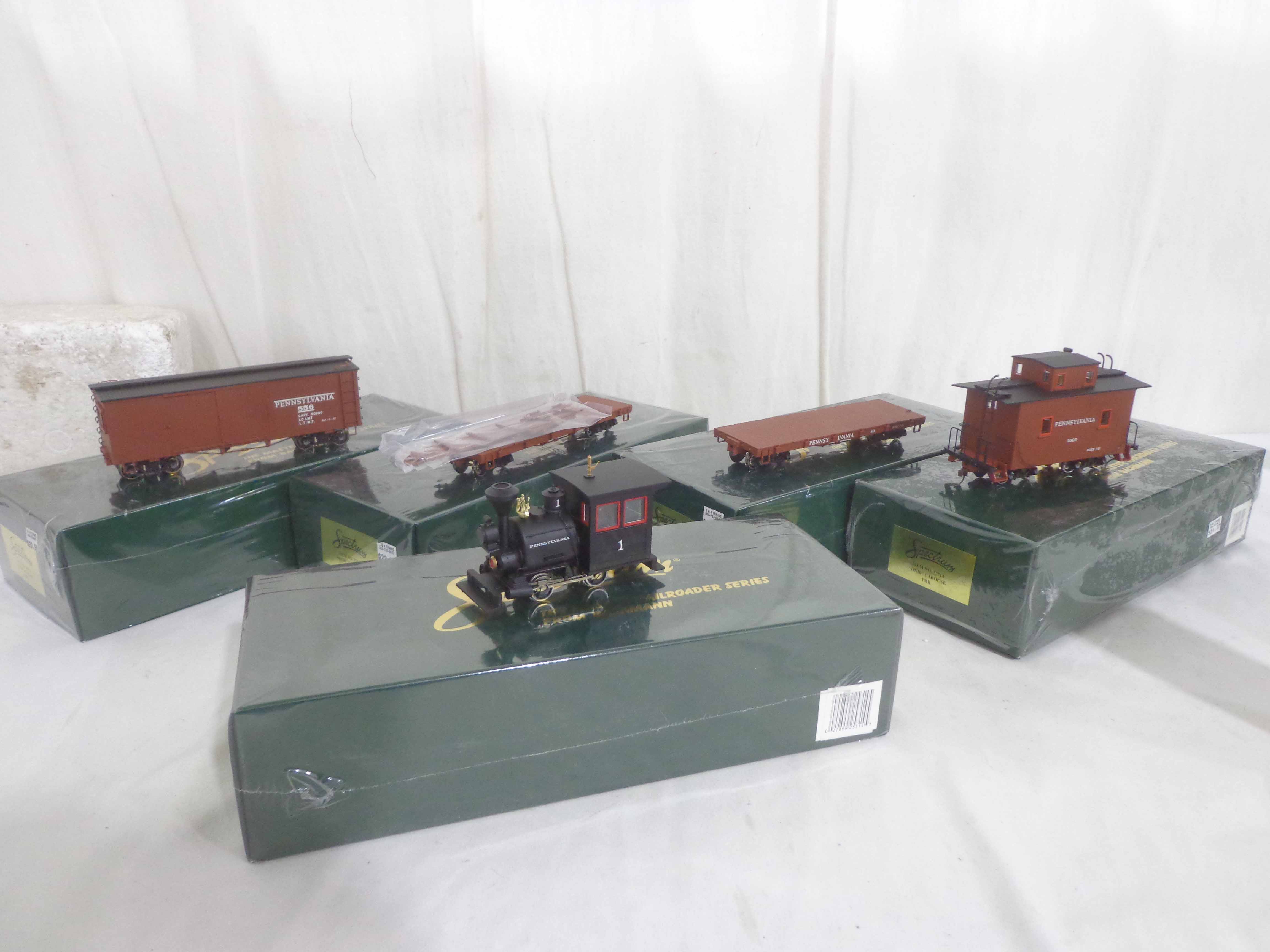 Spectrum On30 Gauge: #25314 Pennsylvania Porter 0-4-0 Engine, #27014 Pennsylvania Box Car, #27214 Pennsylvania Gondola, #27314 Pennsylvania Flat Car and #27714 Pennsylvania Caboose/OBs