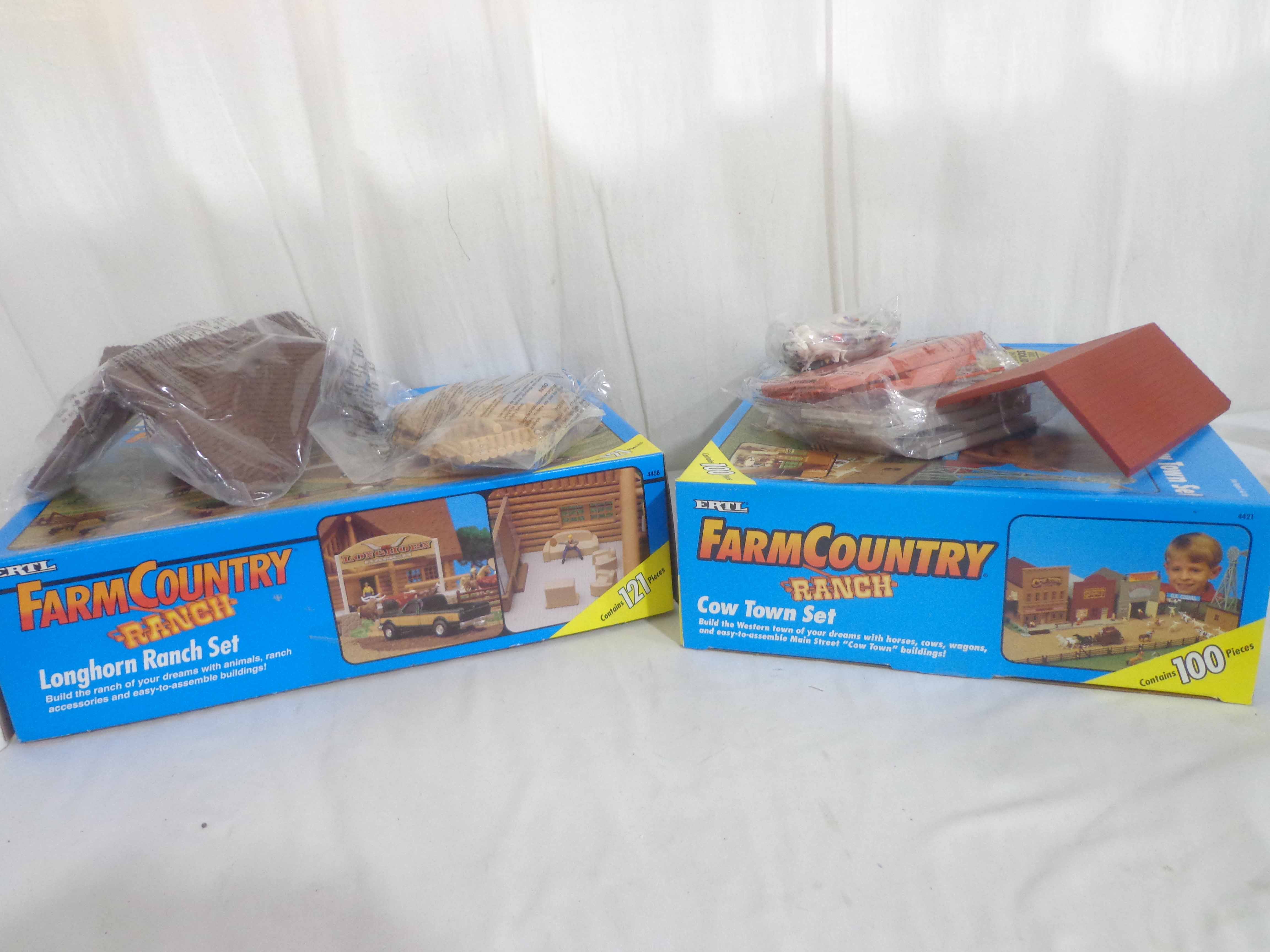 Ertl #4458 Farm Country Longhorn Ranch Set and #4421 Farm Country Cow Town Set/OBs