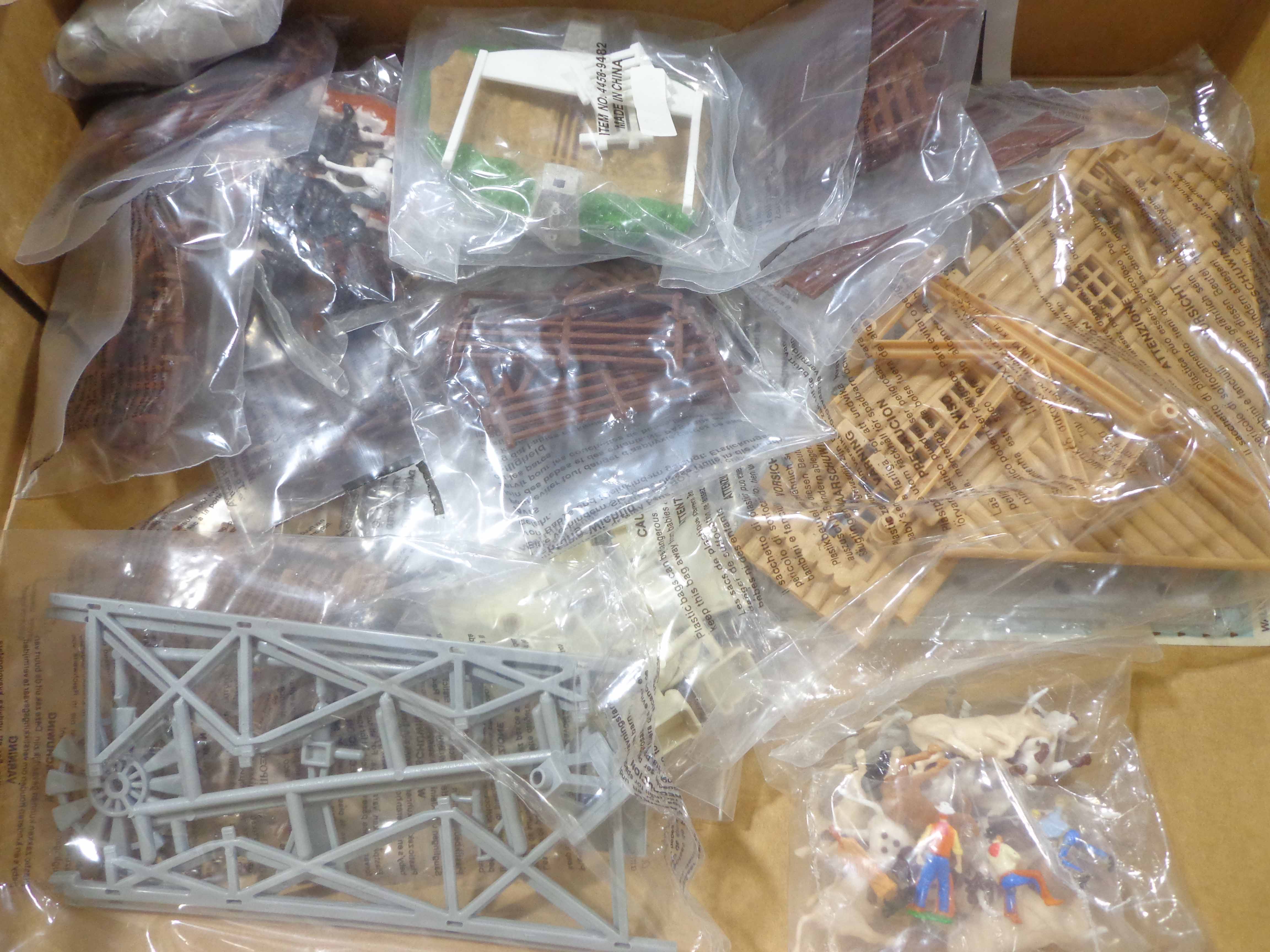 These are the Ertl #4458 Farm Country Longhorn Ranch Set and #4421 Farm Country Cow Town Set. Original Boxes. Examine closely; what is pictured is what you will receive. Please add $45.00 for US-48 Shipping and Insurance (more west of the Mississippi). |
