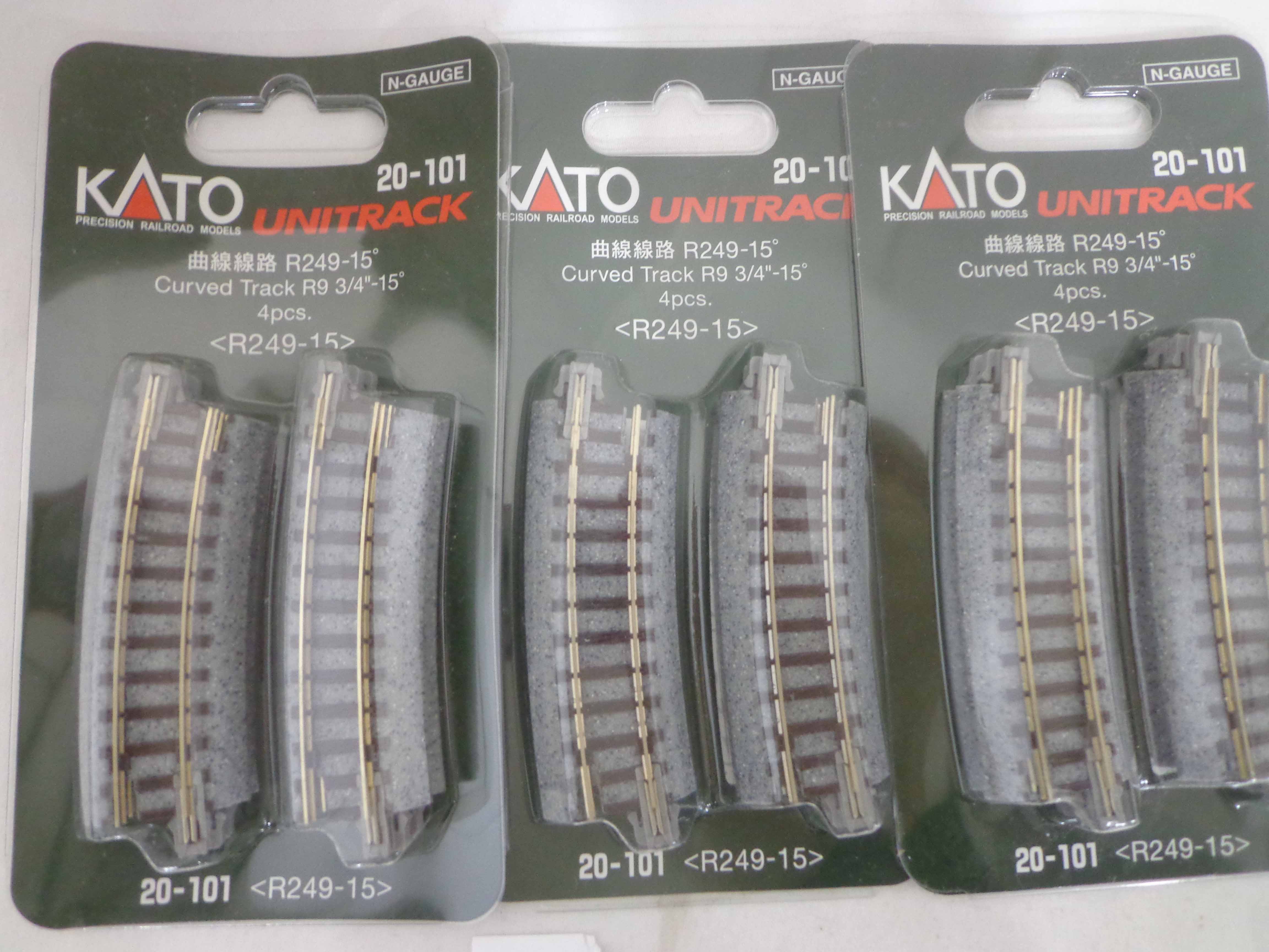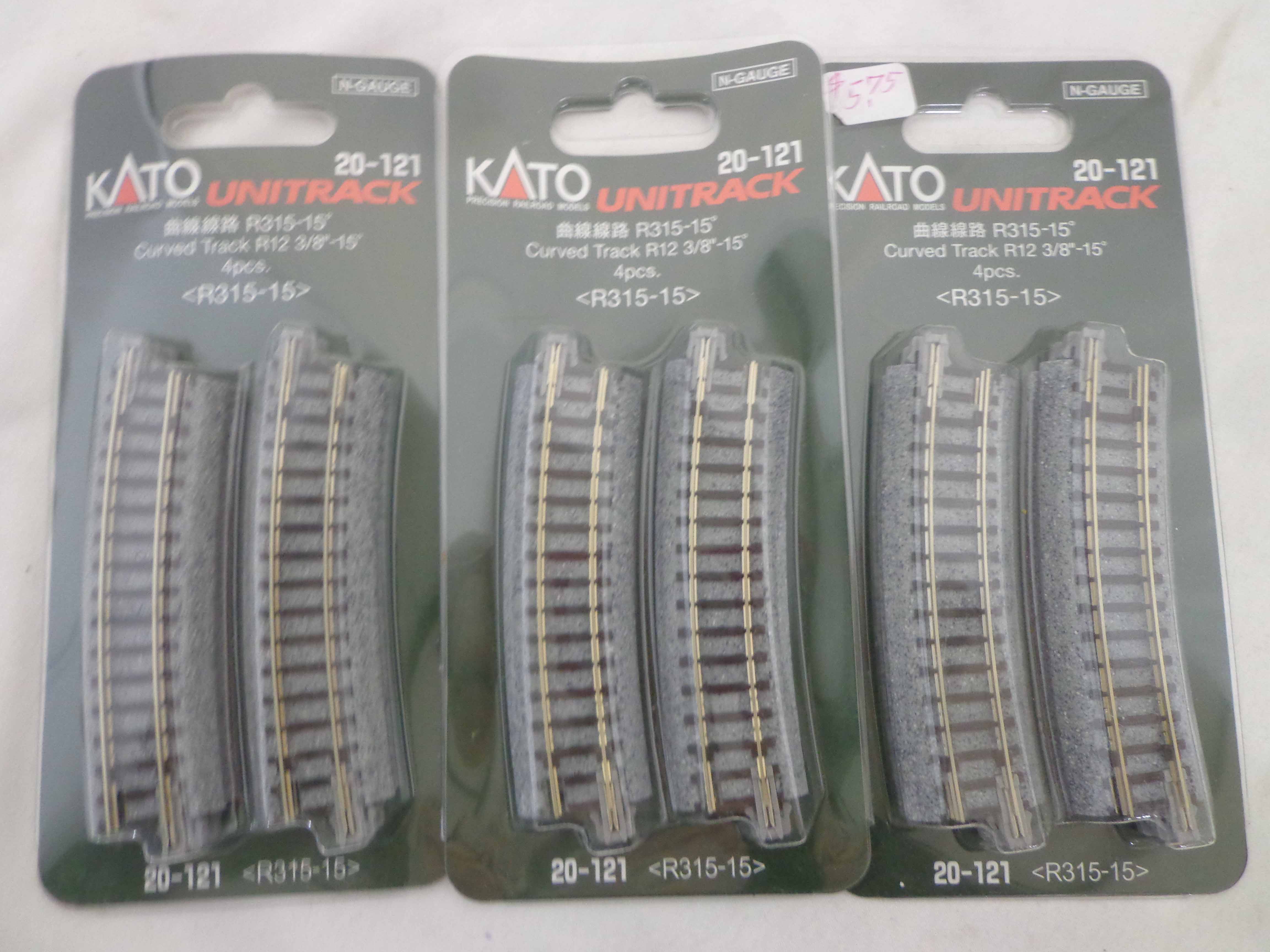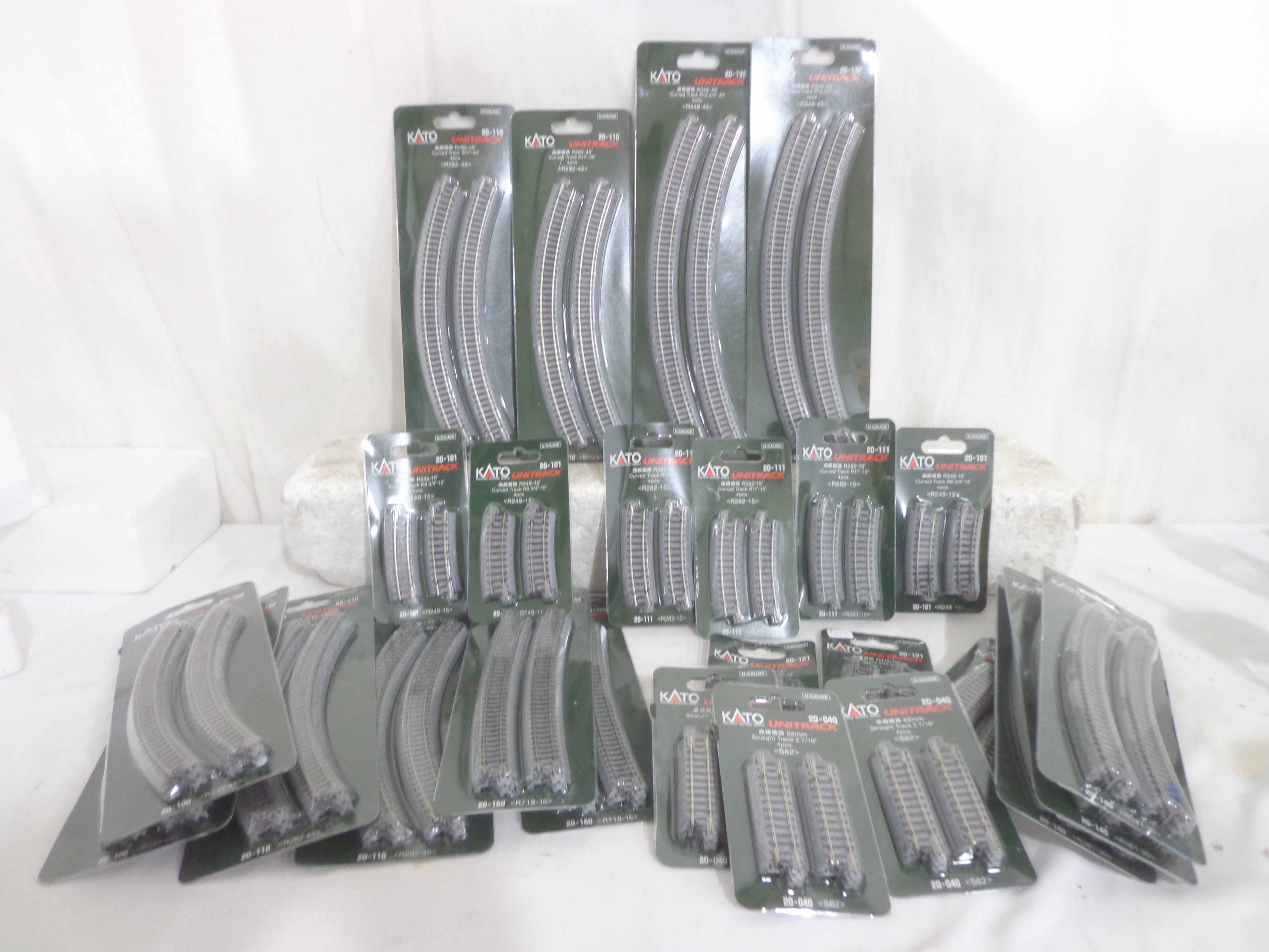 These are twenty-five Assorted Kato Unitrack Sets in N Gauge. Blister Packs. Examine closely; what is pictured is what you will receive. Please add $45.00 for US-48 Shipping and Insurance (more west of the Mississippi). |