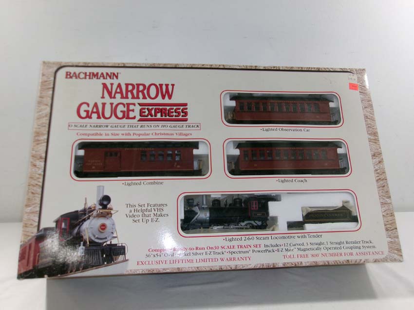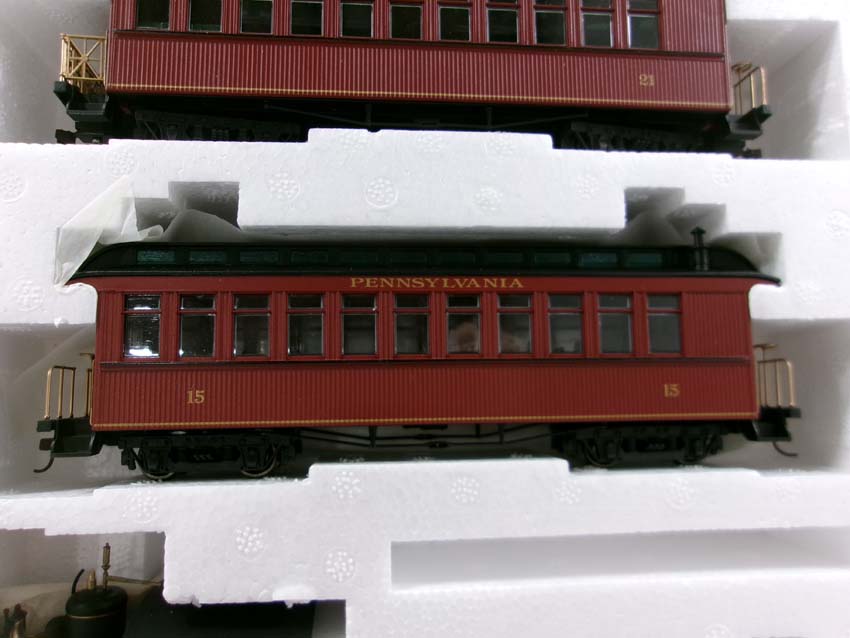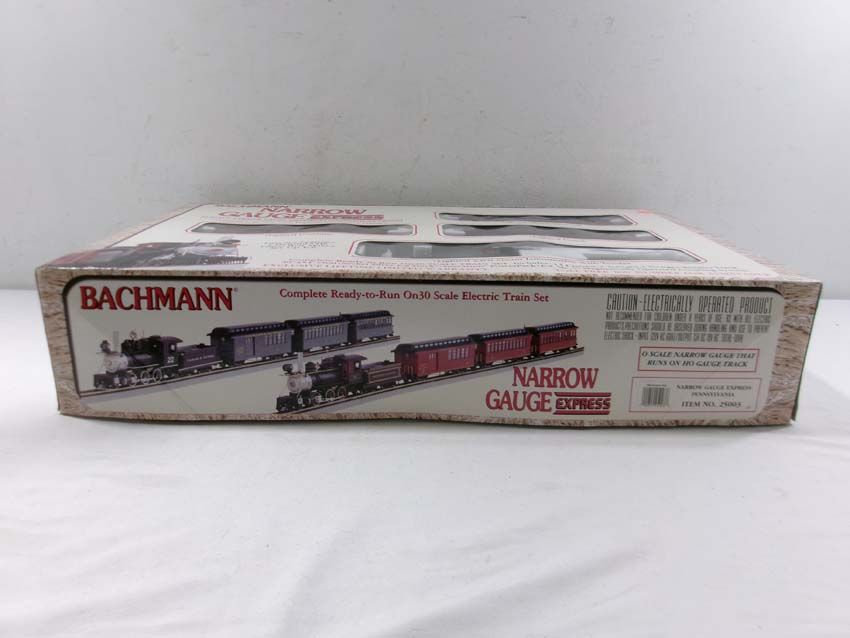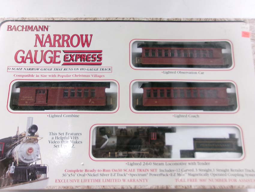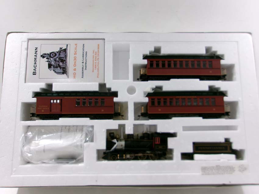 These are the Bachmann Narrow Gauge/HO/ON30 Track PRR 2-6-0 Steam Narrow Gauge Express Passenger Set. Original Box. Examine closely; what is pictured is what you will receive. Please add $40.00 for US-48 Shipping and Insurance (more west of the Mississippi).