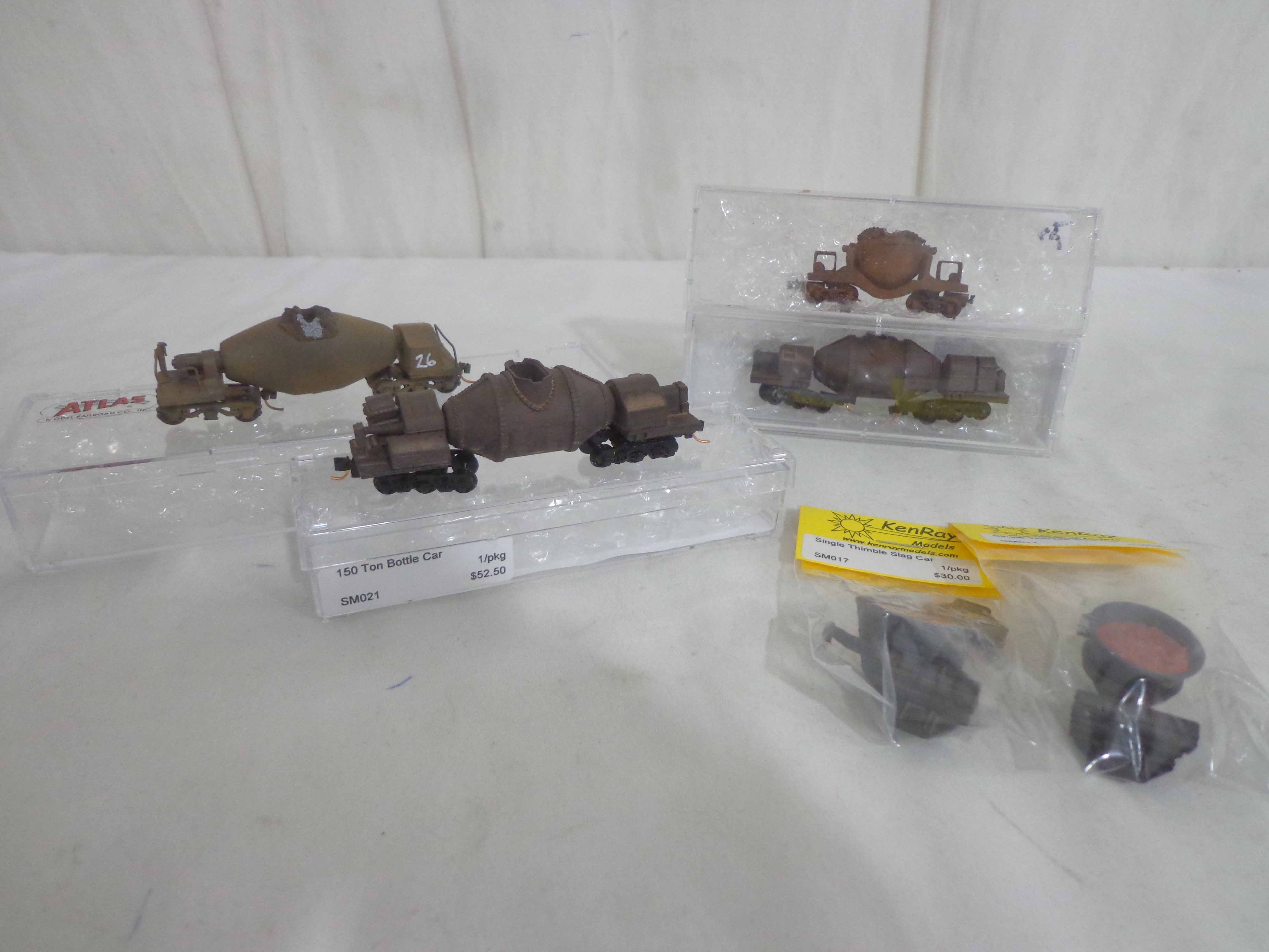 6 Assorted Manufactures N Gauge: Slag Cars/Plastic Cases/Packages