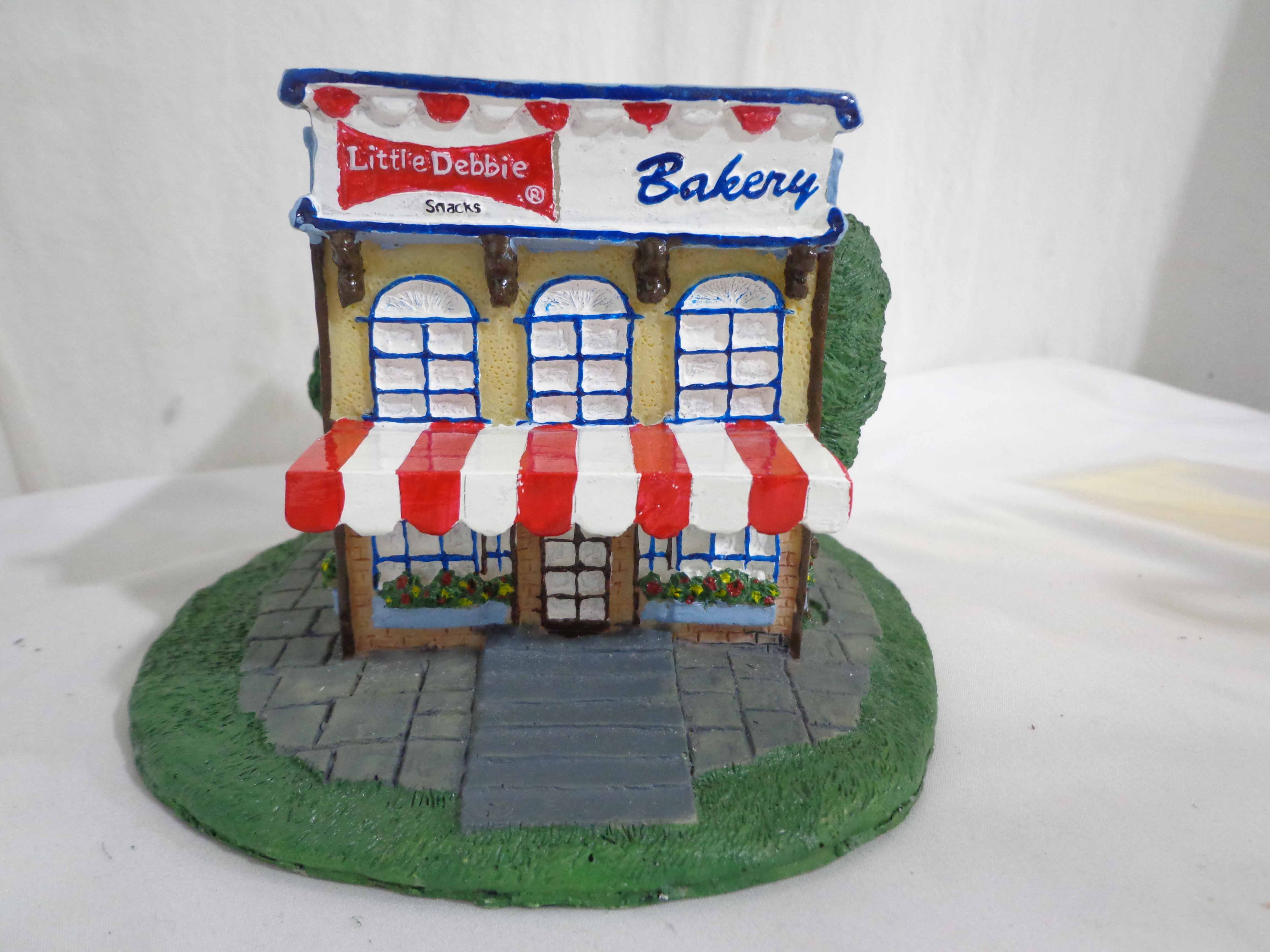 Dept 56/Lemax #54890 Treetop Tree House, #58393 Ye Old Lamplighter, #54901 Harley Davidson Sign, #84848 Animated Giraffe Cage and Little Debbie Village Bakery/OBs
