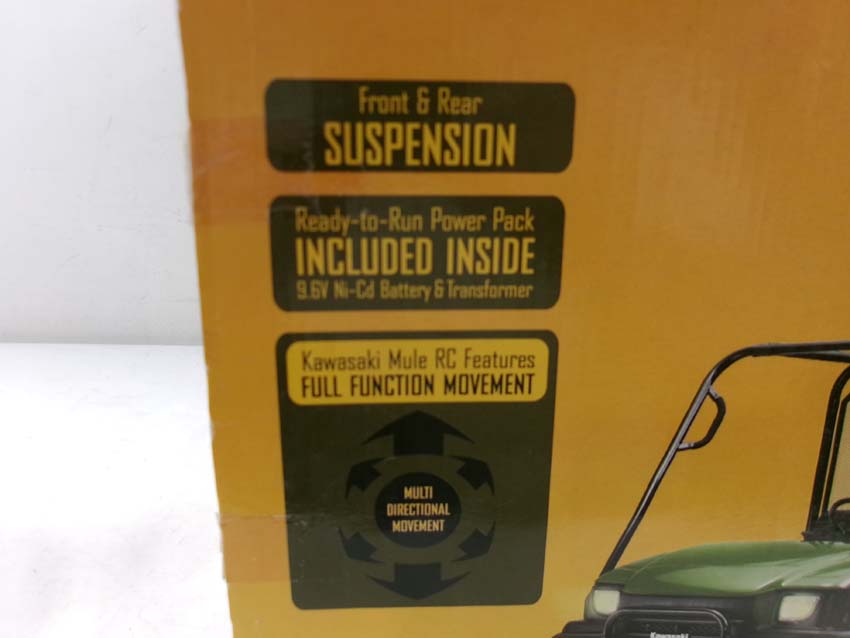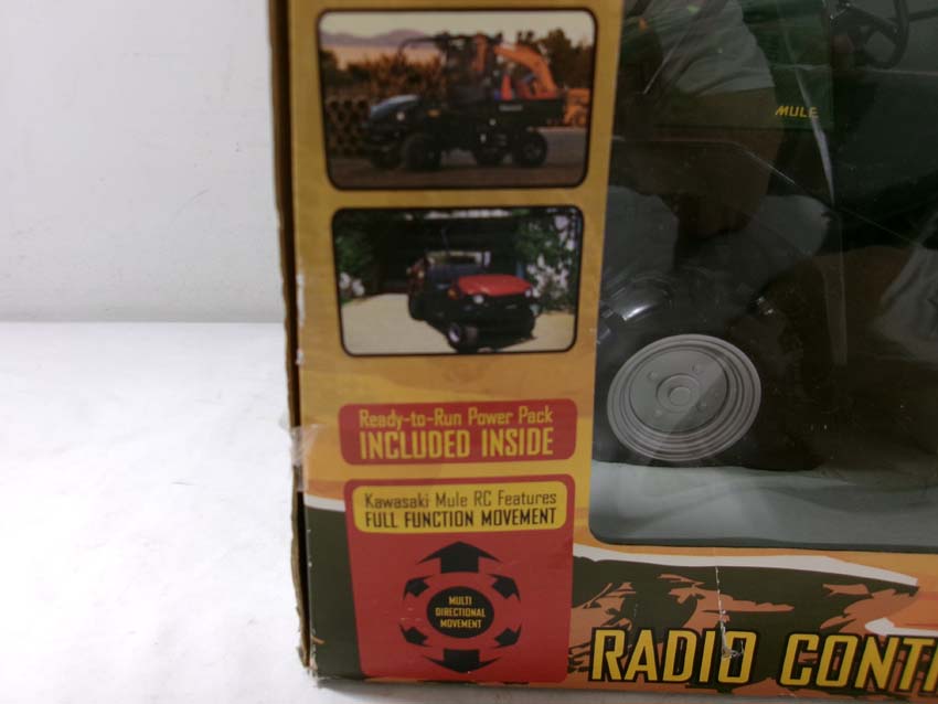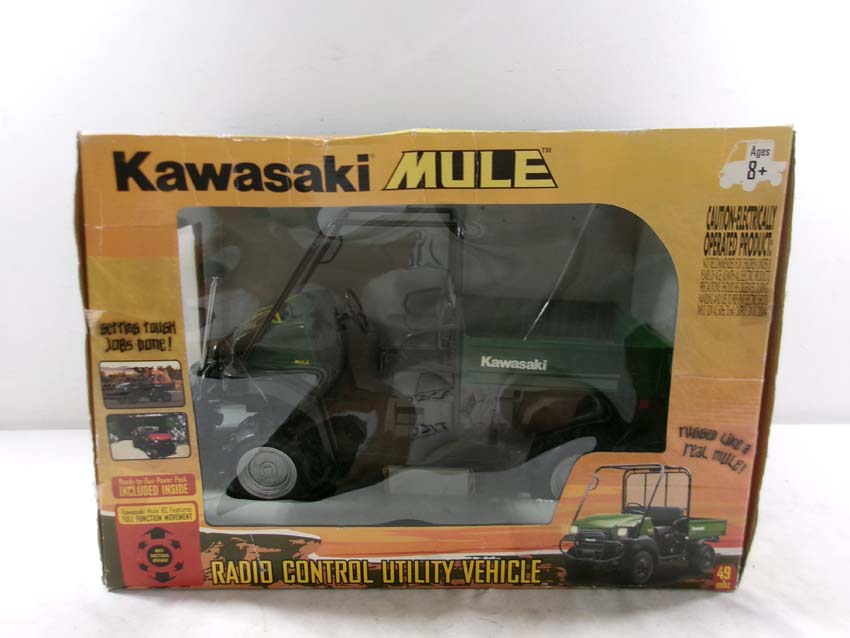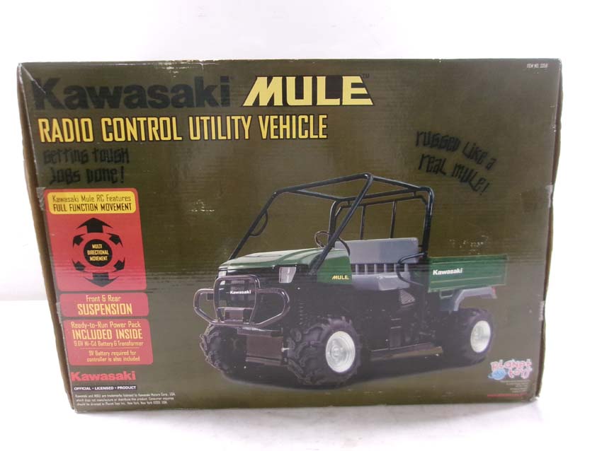 This is the Planet Toys #3358 Remote Control Kawasaki Mule (18"L). Original Box. Examine closely; what is pictured is what you will receive. Please add $30.00 for US-48 Shipping and Insurance (more west of the Mississippi). |