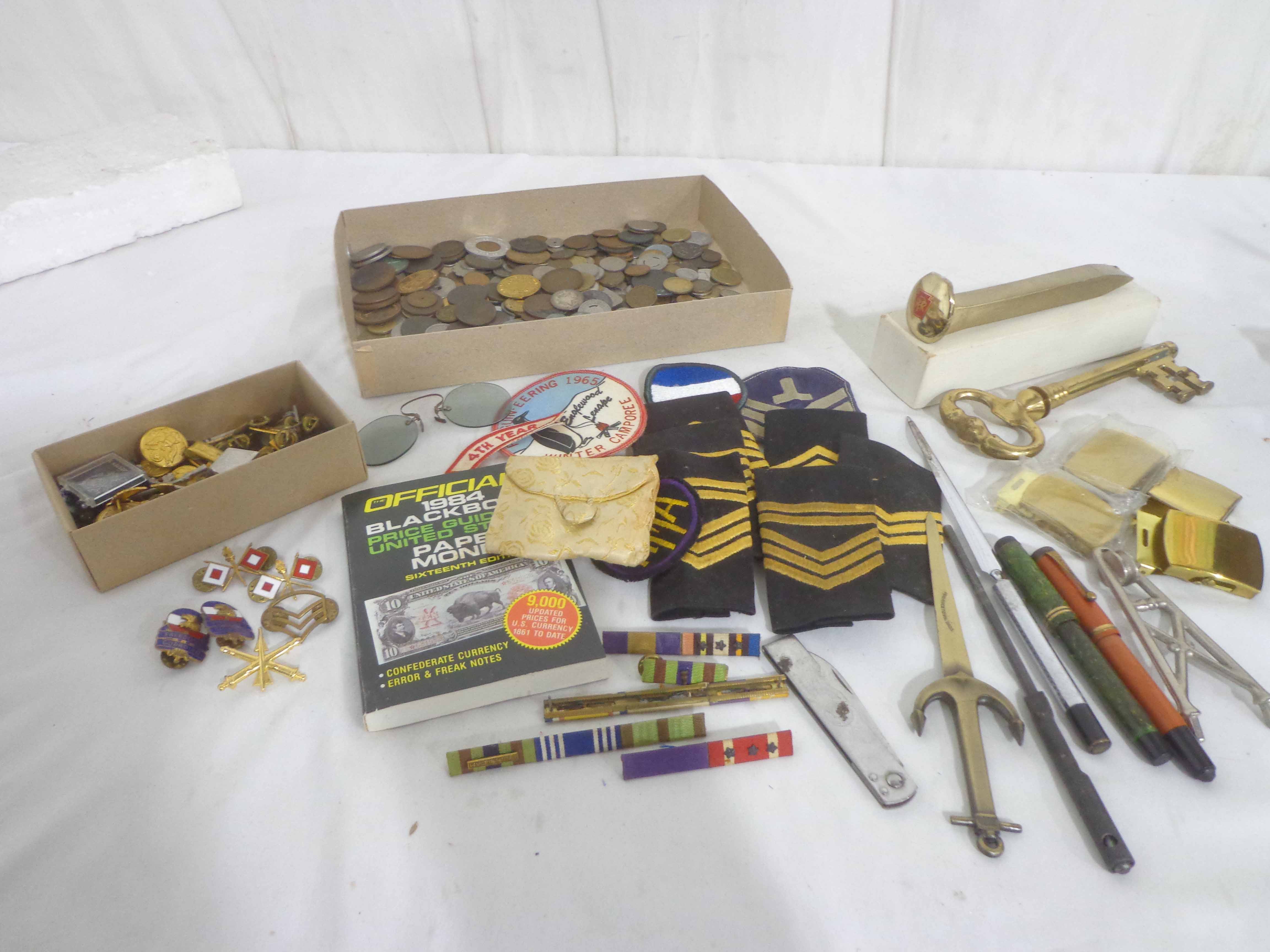 Assorted Manufactures Military Pins, Coins, Patches and Miscellanous Items (some brass)