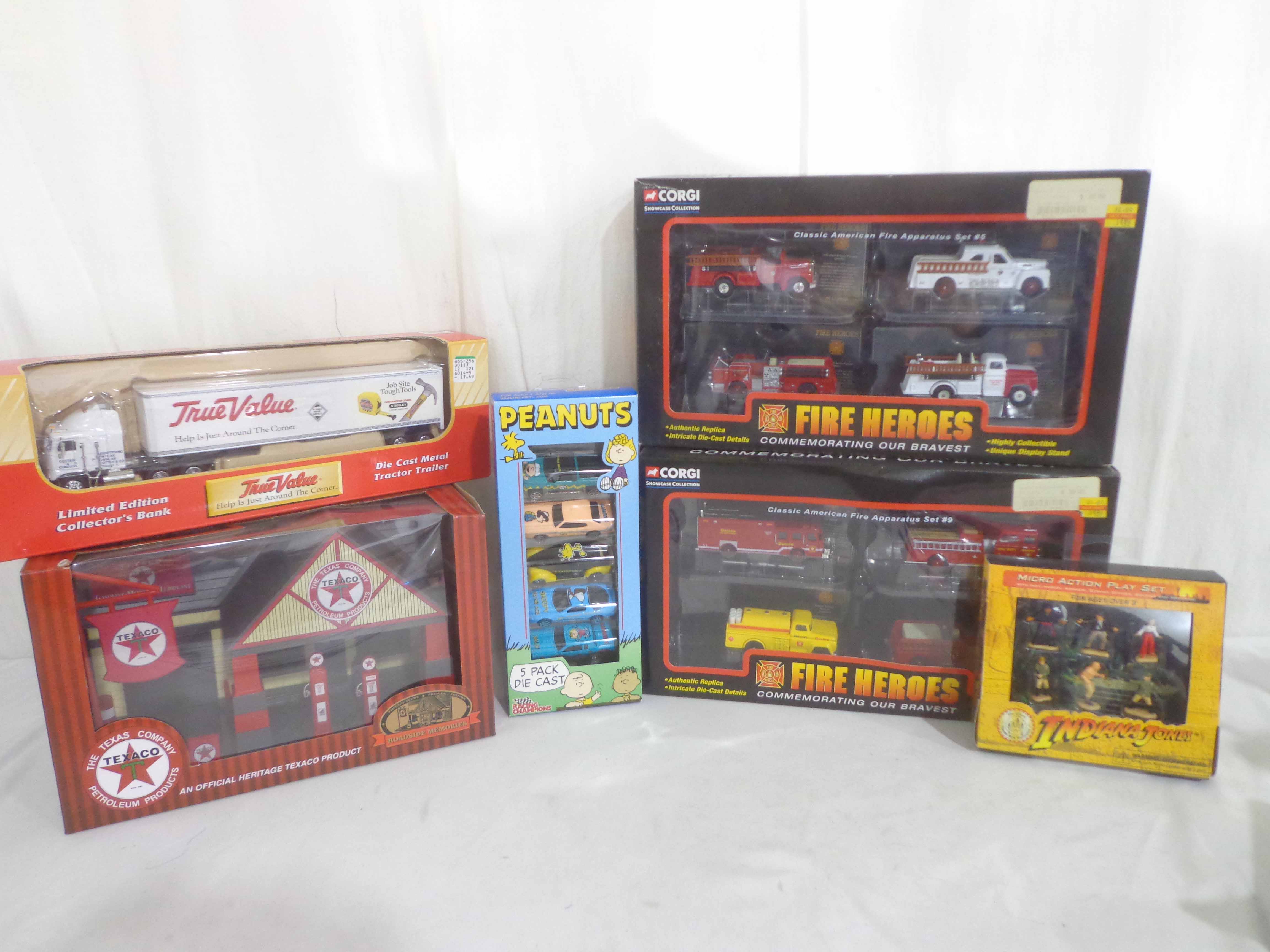 These are six Assorted Manufactures Assorted Scale Die-cast Vehicles and Accessories (two sets of four and one set of five). Original Boxes. Examine closely; what is pictured is what you will receive. Please add $40.00 for US-48 Shipping and Insurance (more west of the Mississippi). |