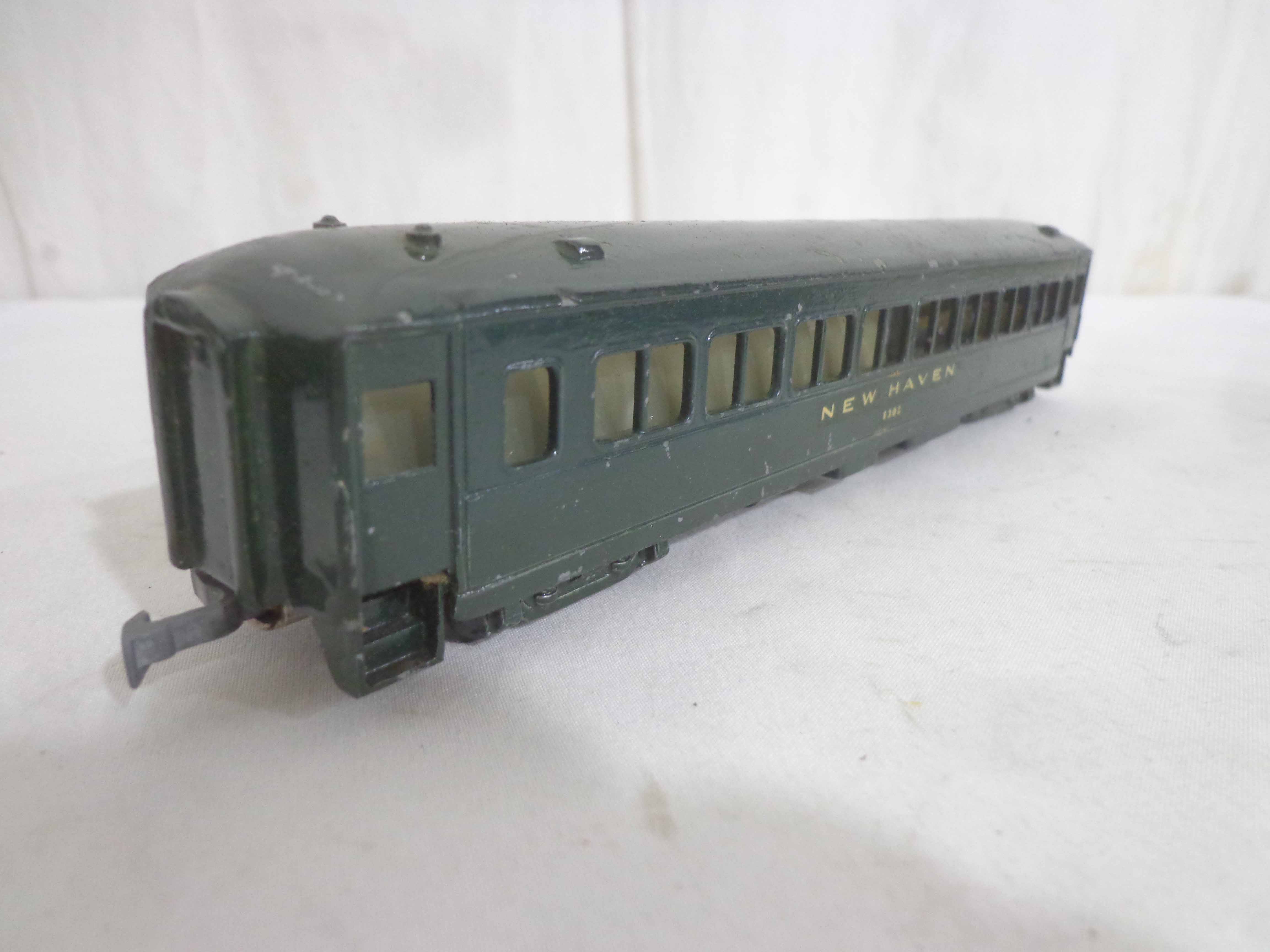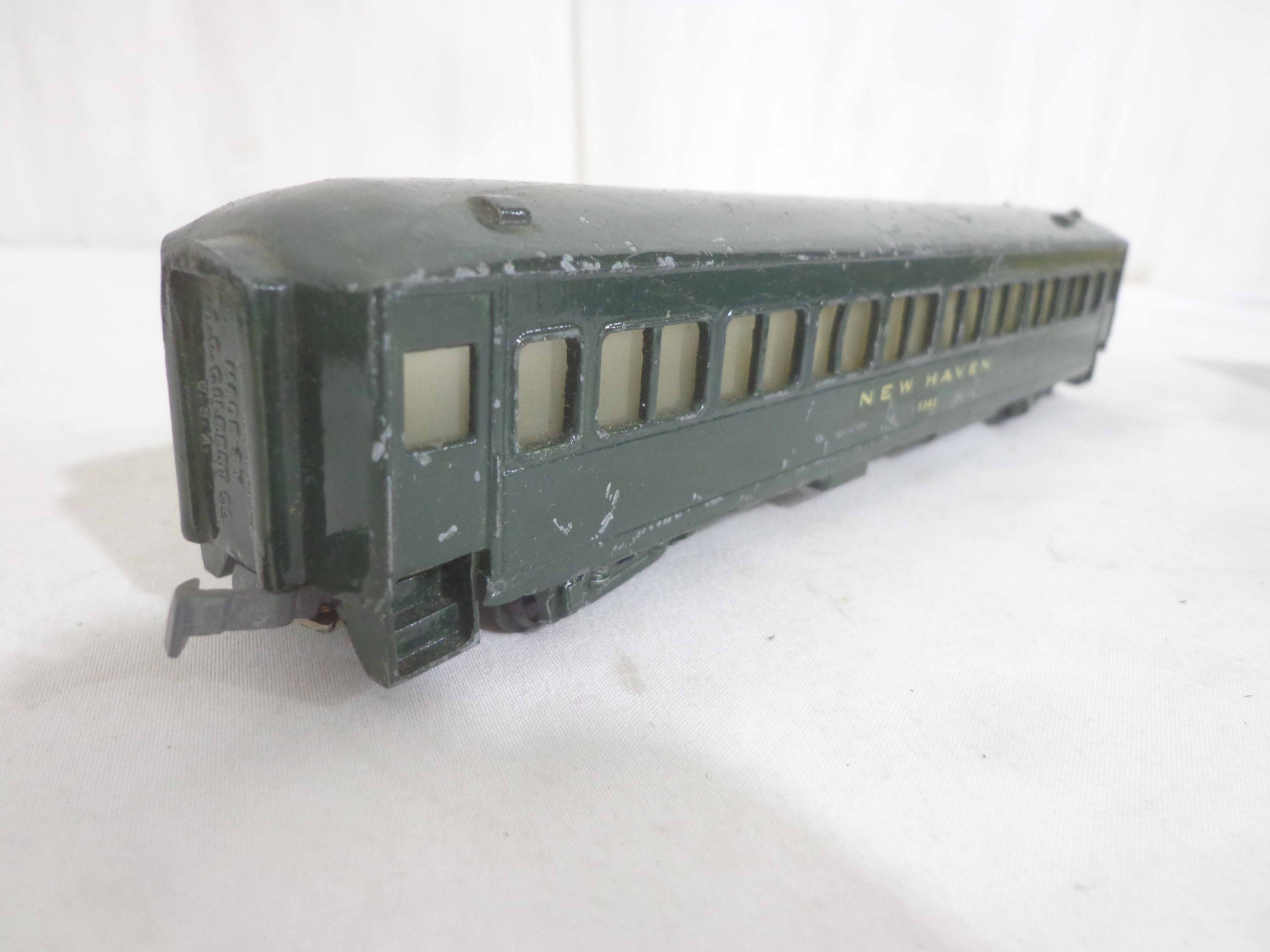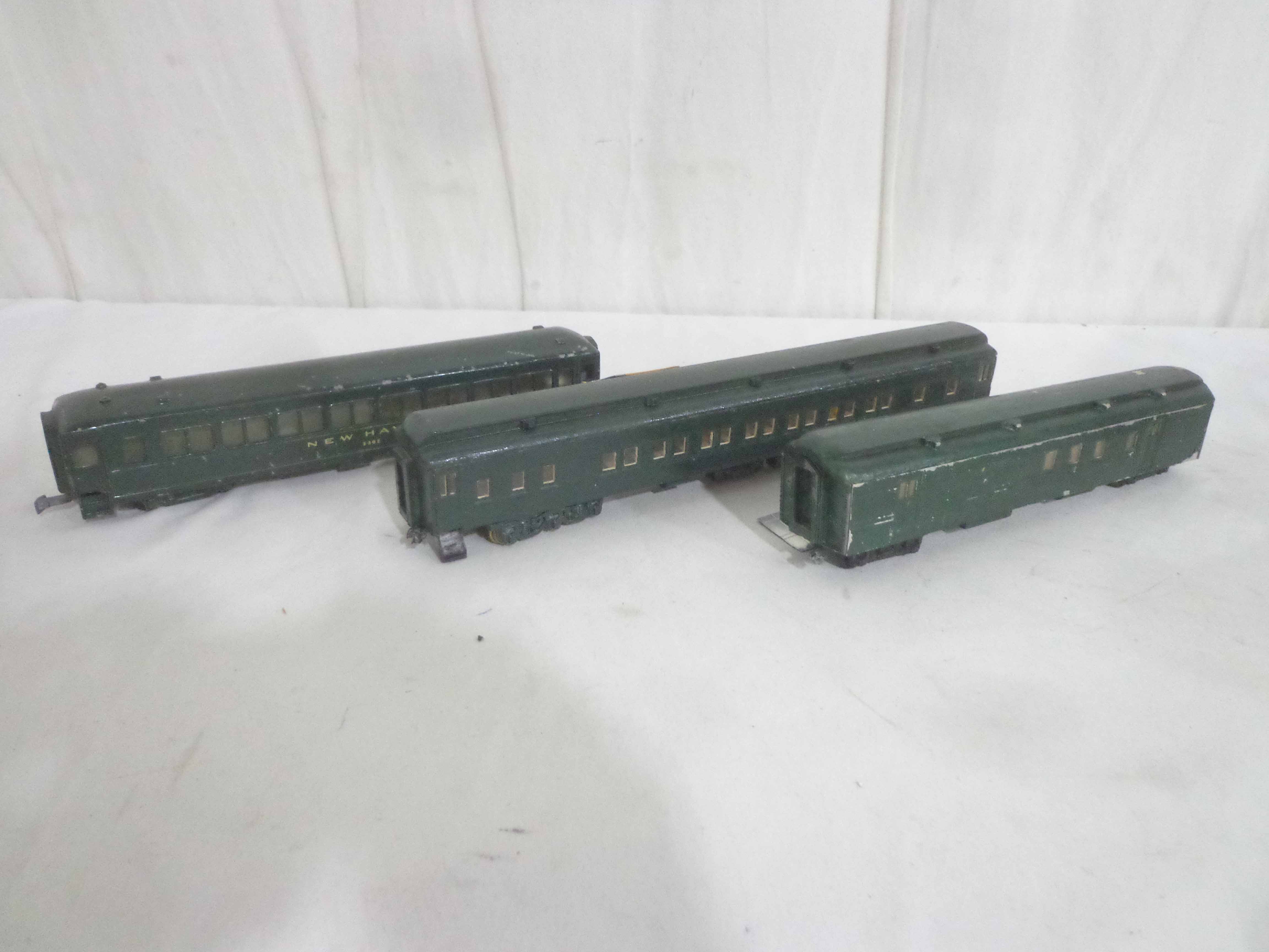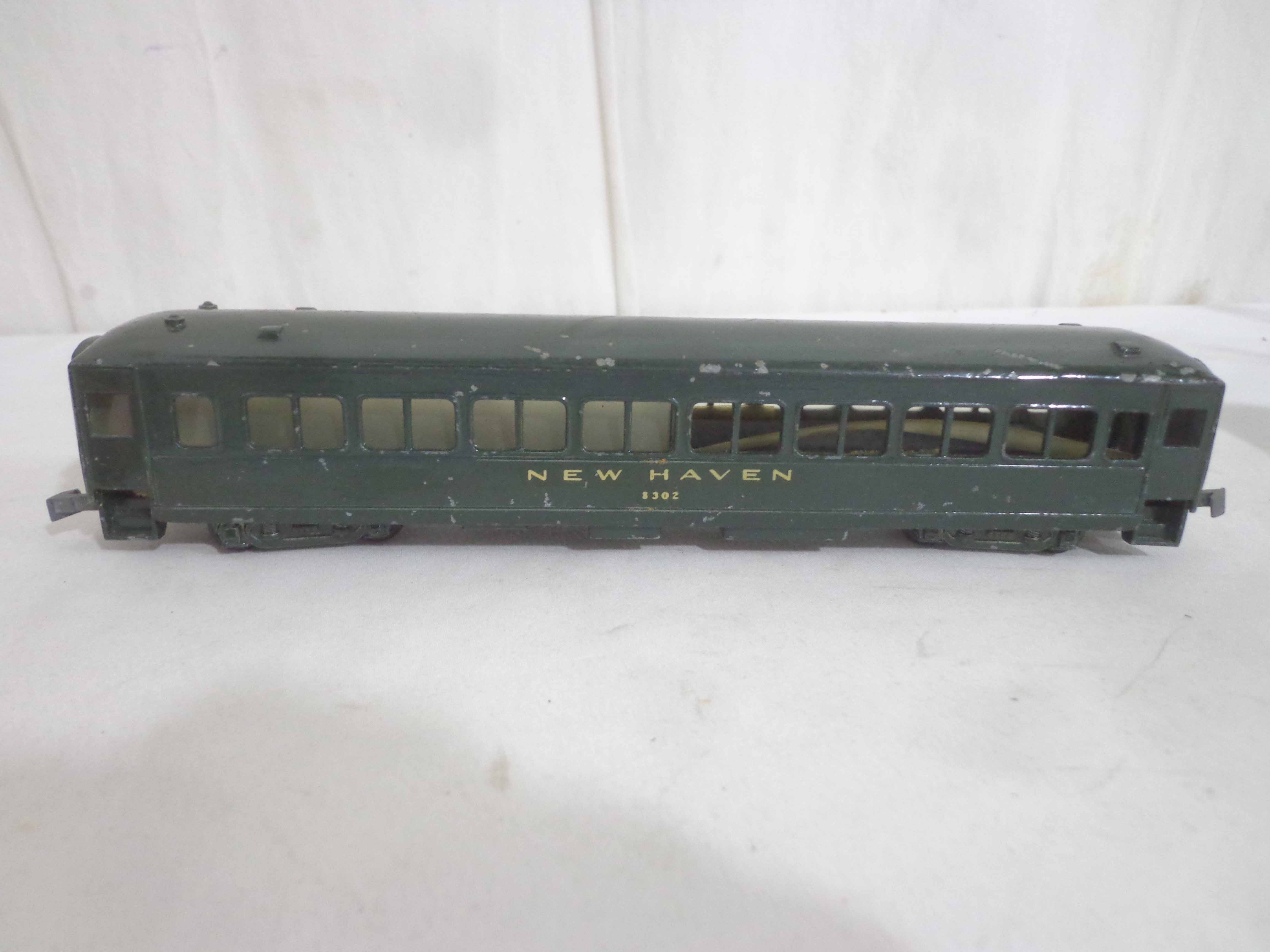 These are the AF/Gilbert/Unknown Manufacture HO Gauge Metal and Wood #8302 New Haven Passenger Car and two Unmarked Passenger Cars (repainted, missing couplers). No Boxes. Examine closely; what is pictured is what you will receive. Please add $30.00 for US-48 Shipping and Insurance (more west of the Mississippi).
